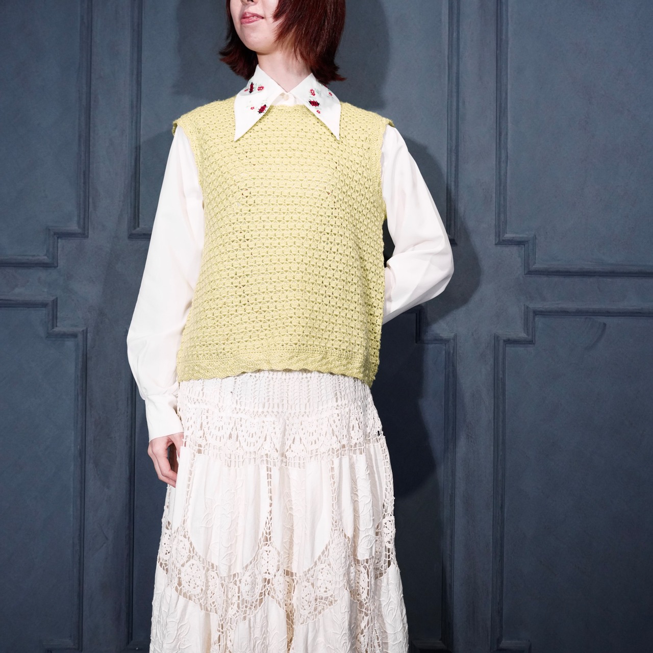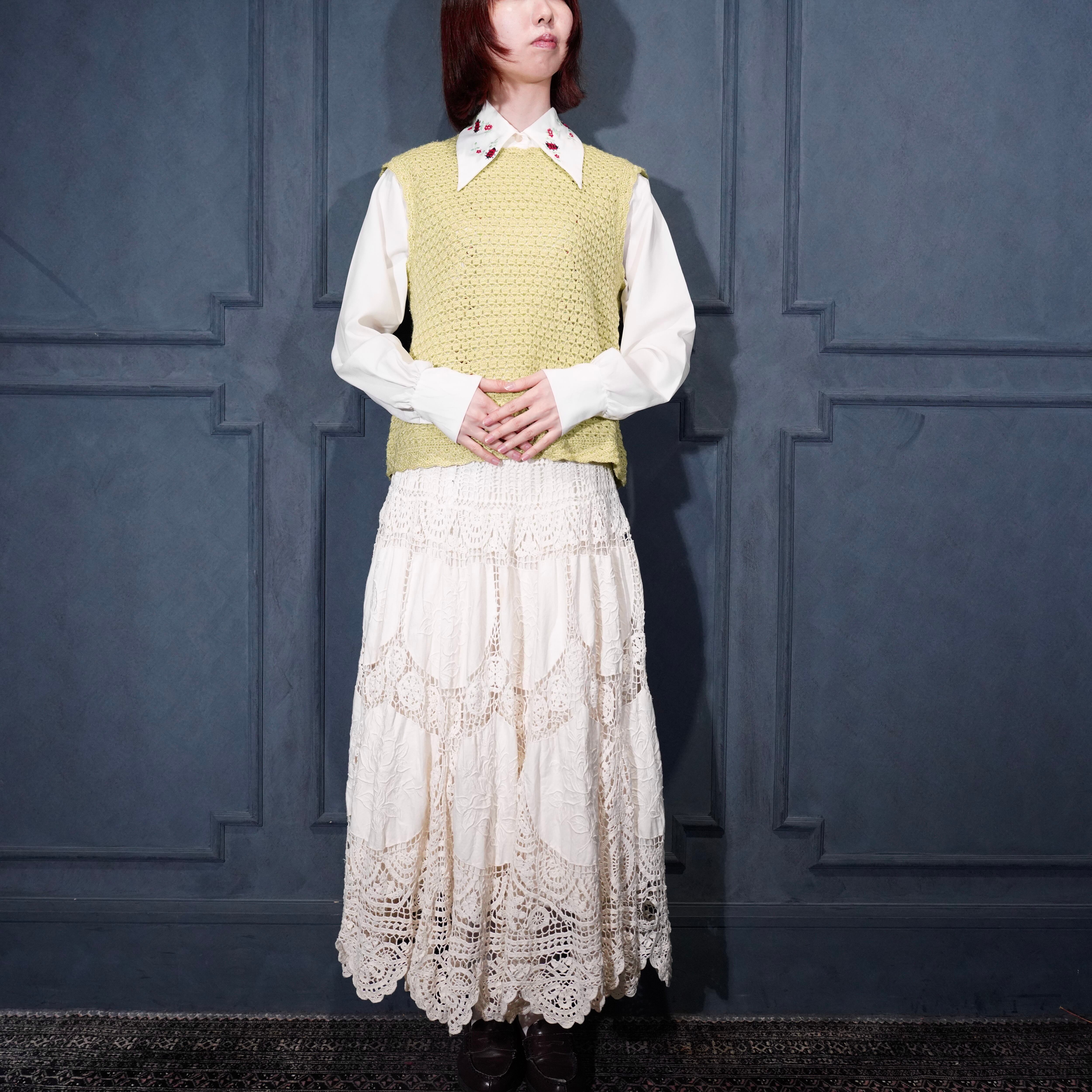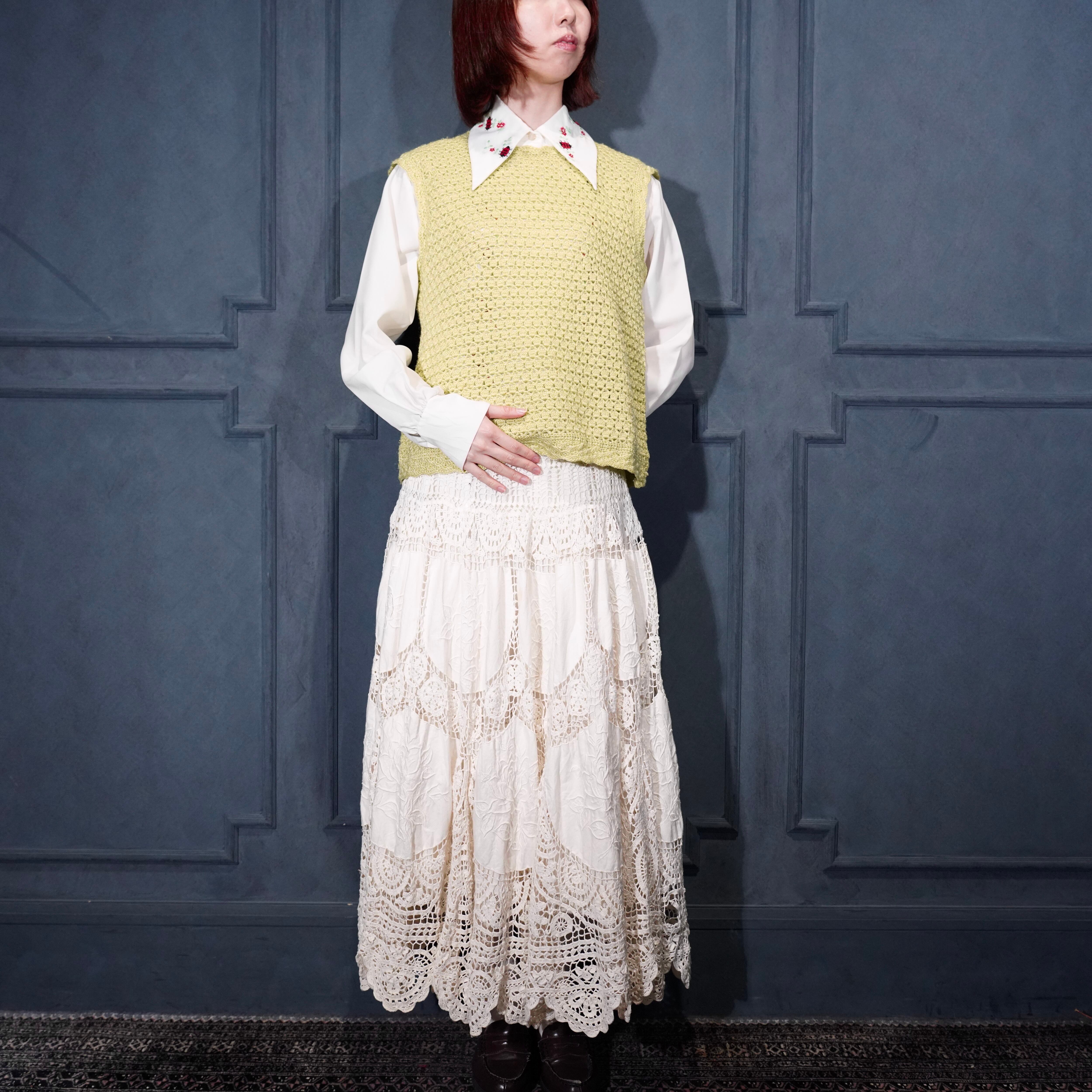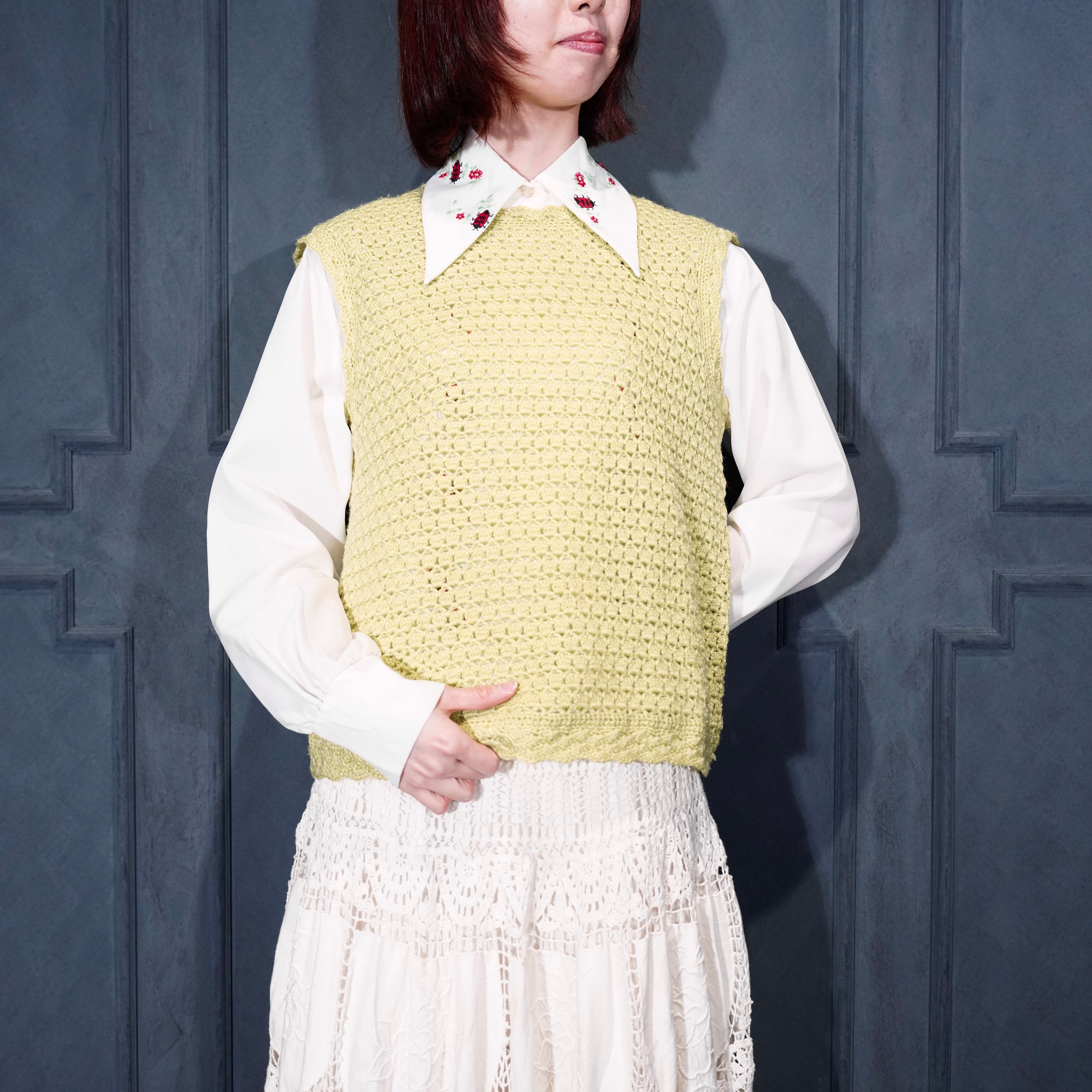 USA VINTAGE CROCHET DESIGN KNIT VEST/アメリカ古着鍵編みデザインニットベスト
