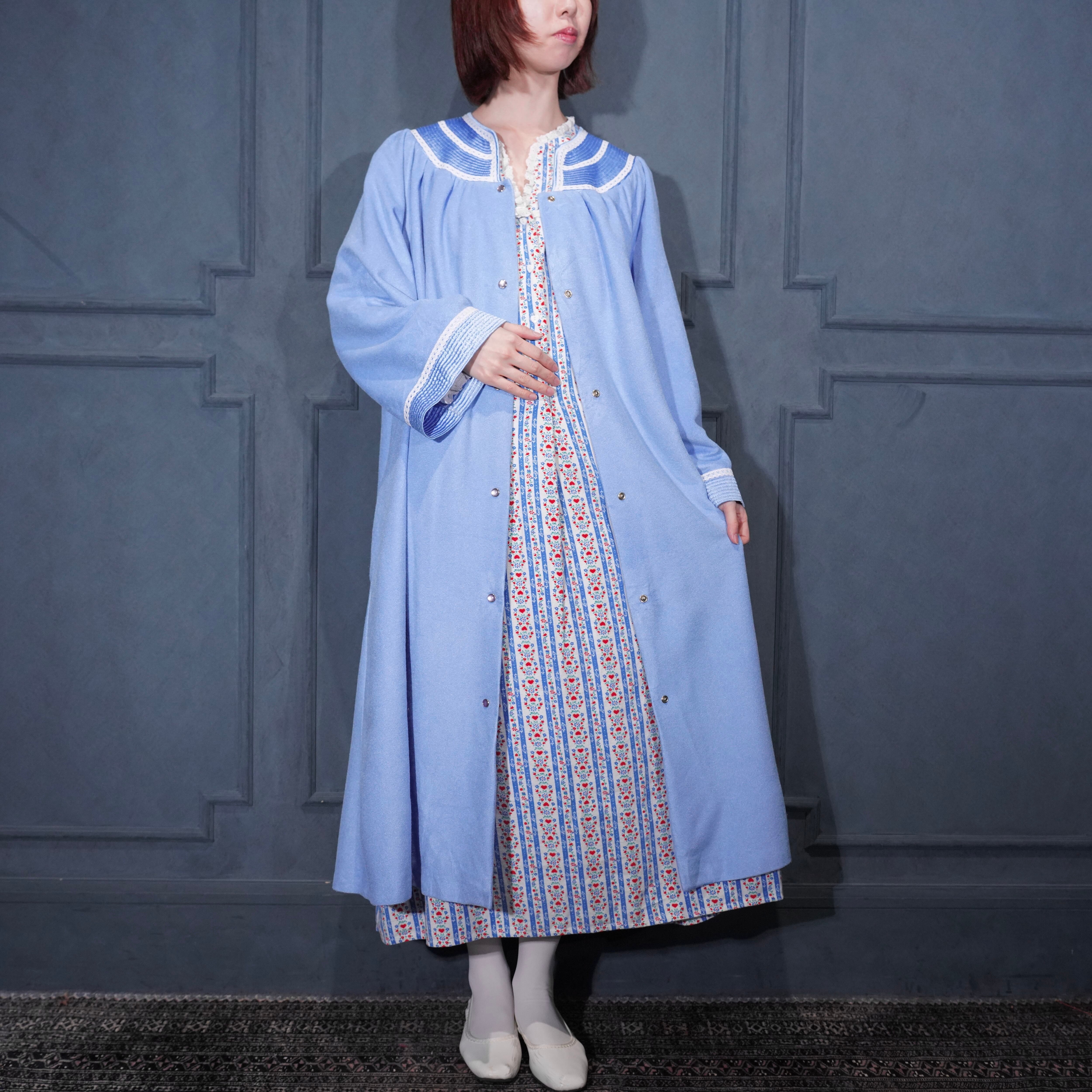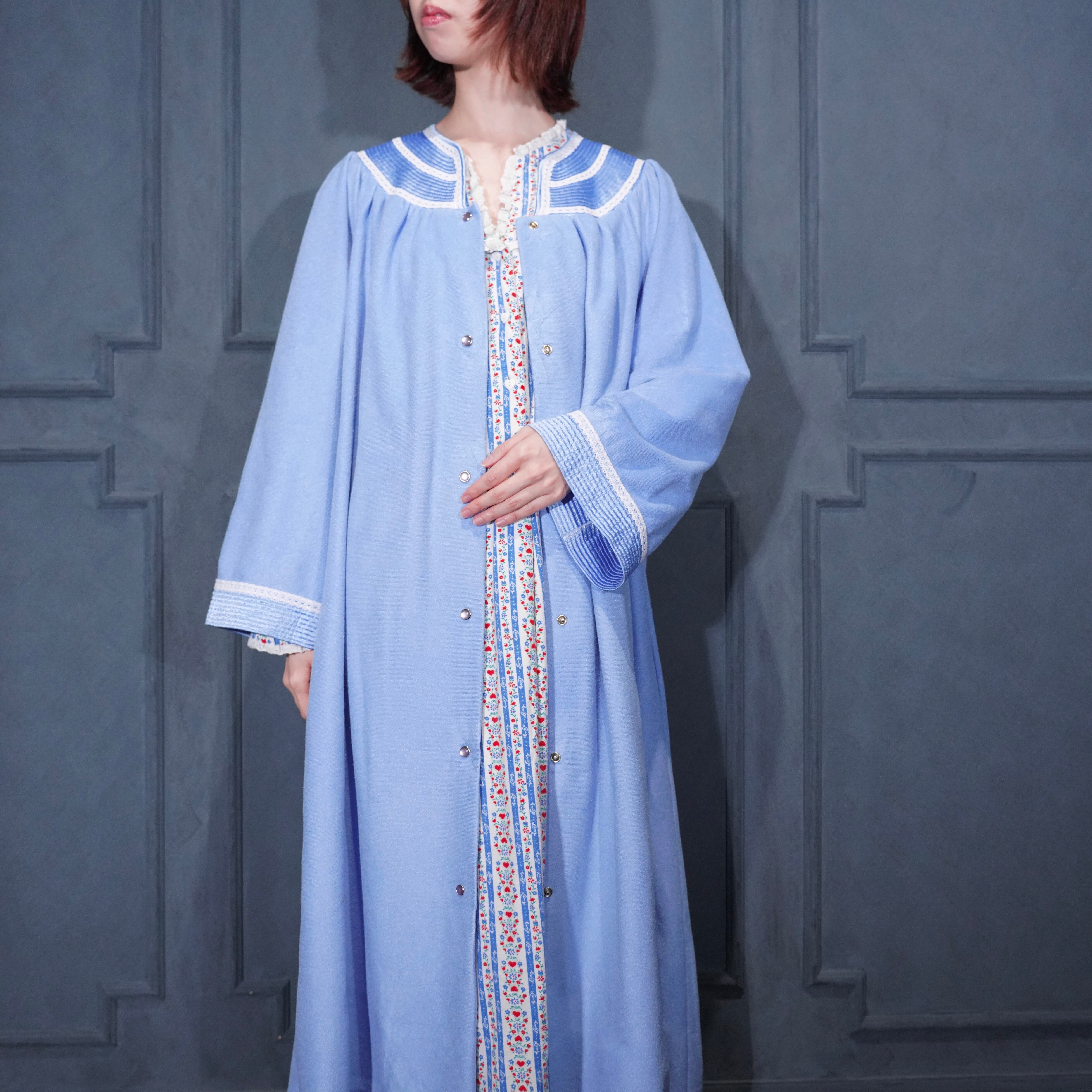 70's~80's USA VINTAGE LACE DESIGN NIGHTY DRESS GAWN COAT MADE IN USA/70年代~80年代アメリカ古着レースデザインナイティドレスガウンコート(ワンピース)