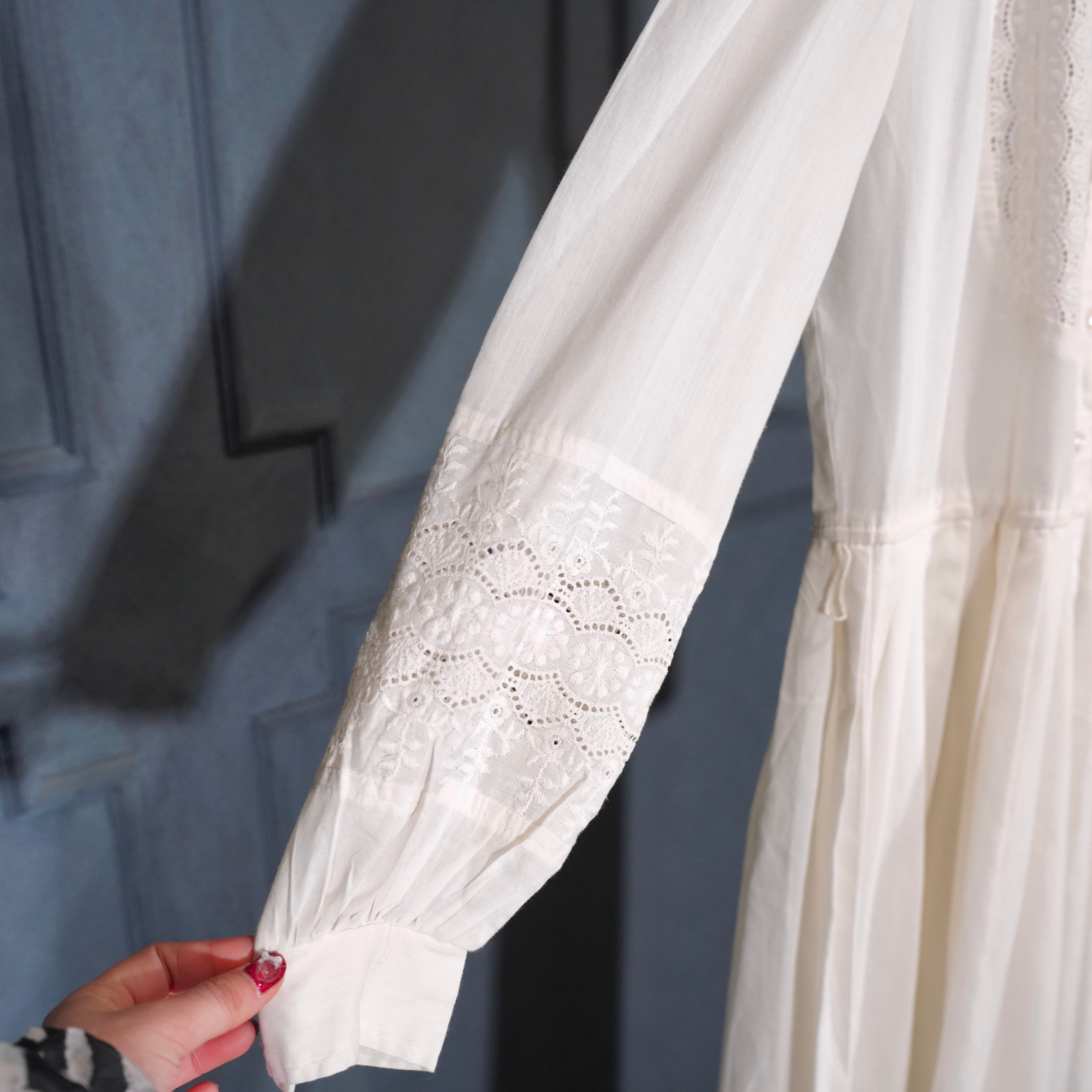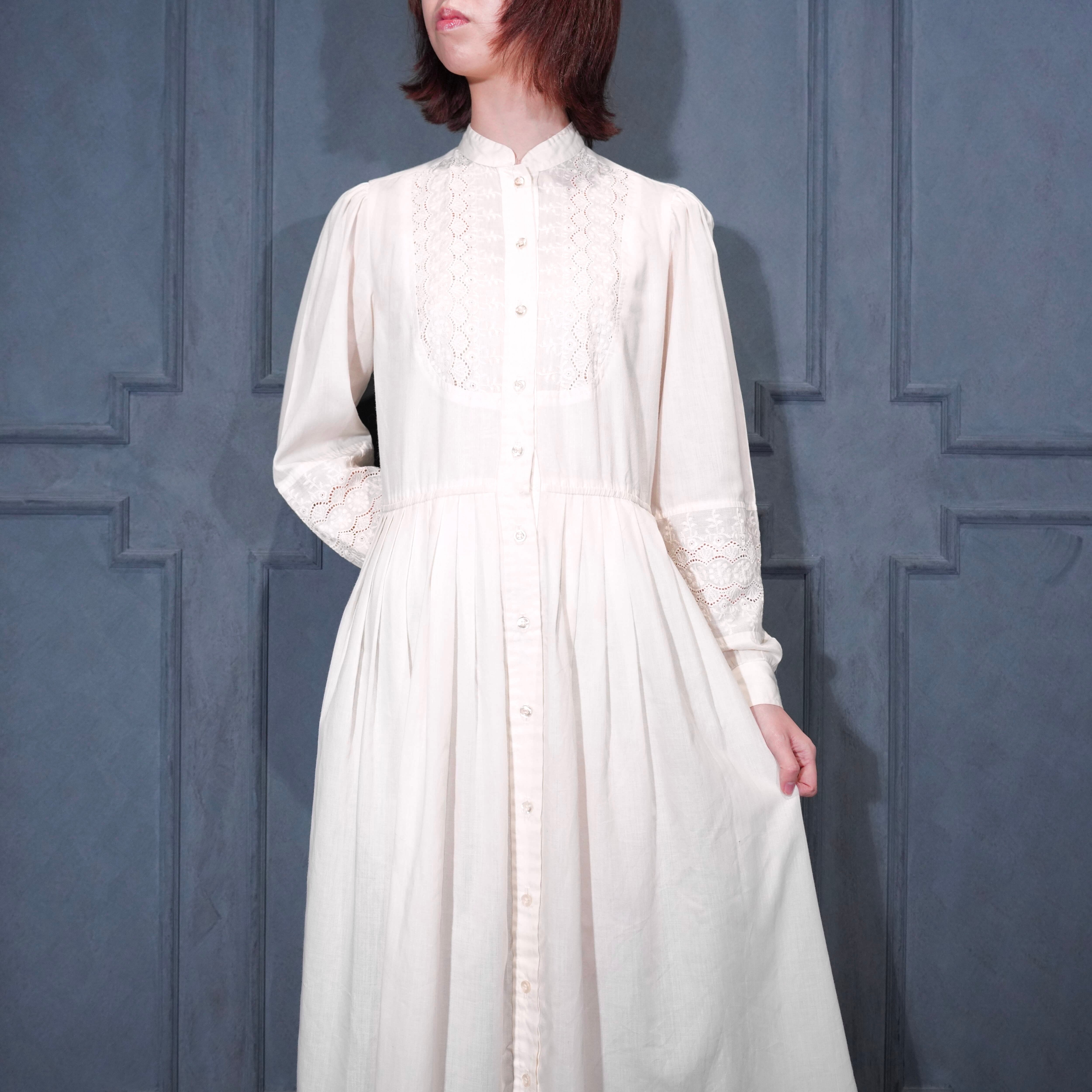 70's USA VINTAGE Serbin DESIGNED BY MARIANNE LACE DESIGN SHIRT ONE PIECE/70年代アメリカ古着レースデザインシャツワンピース