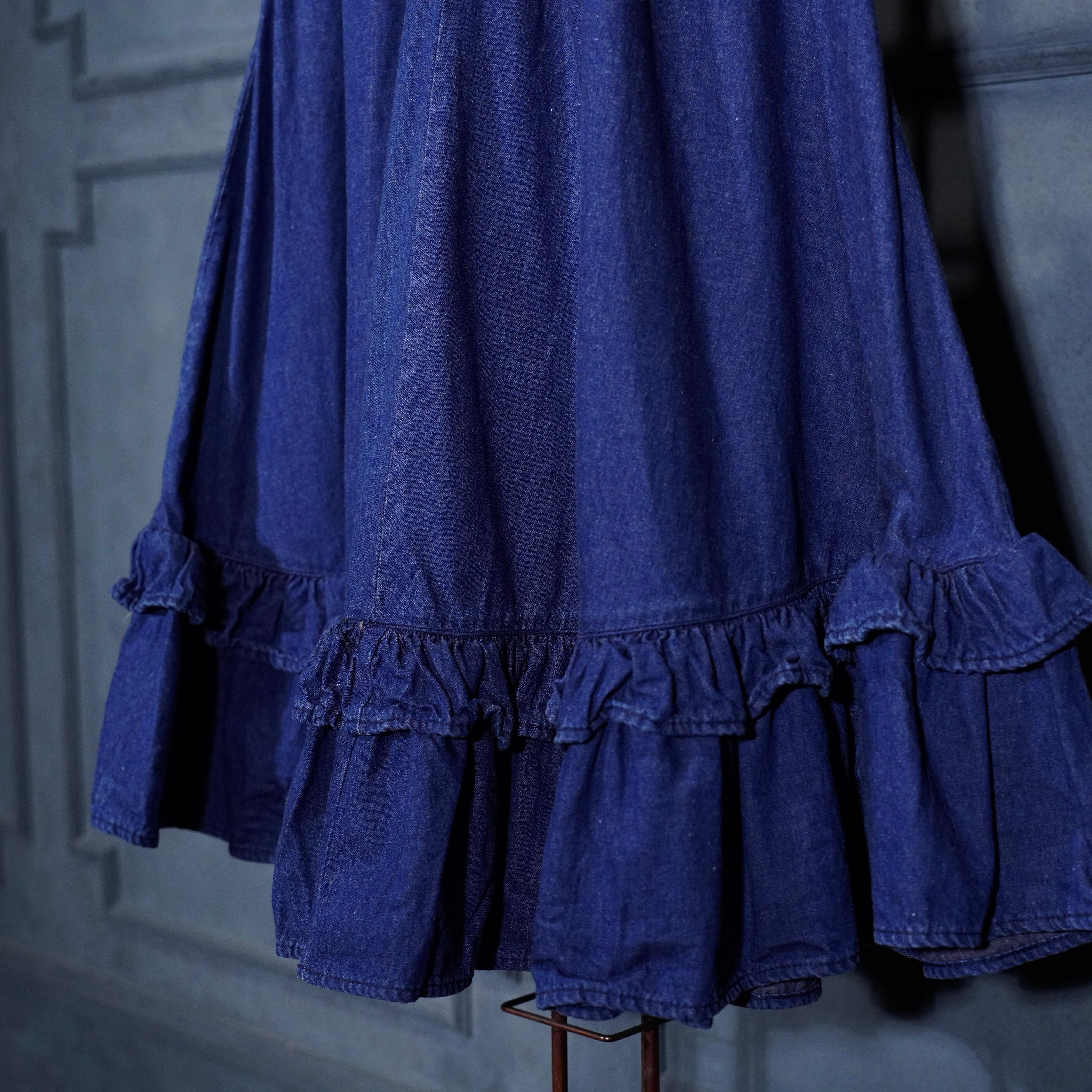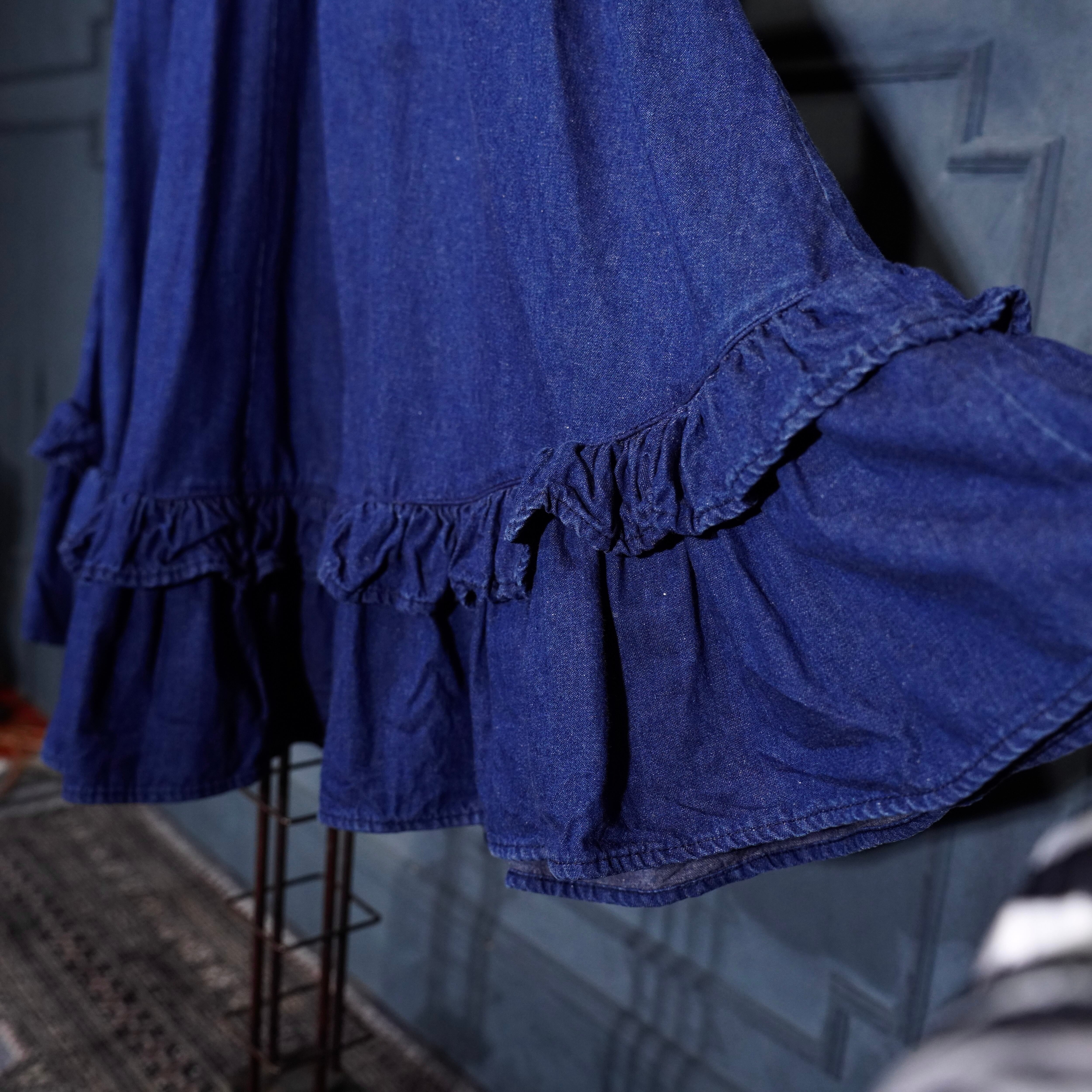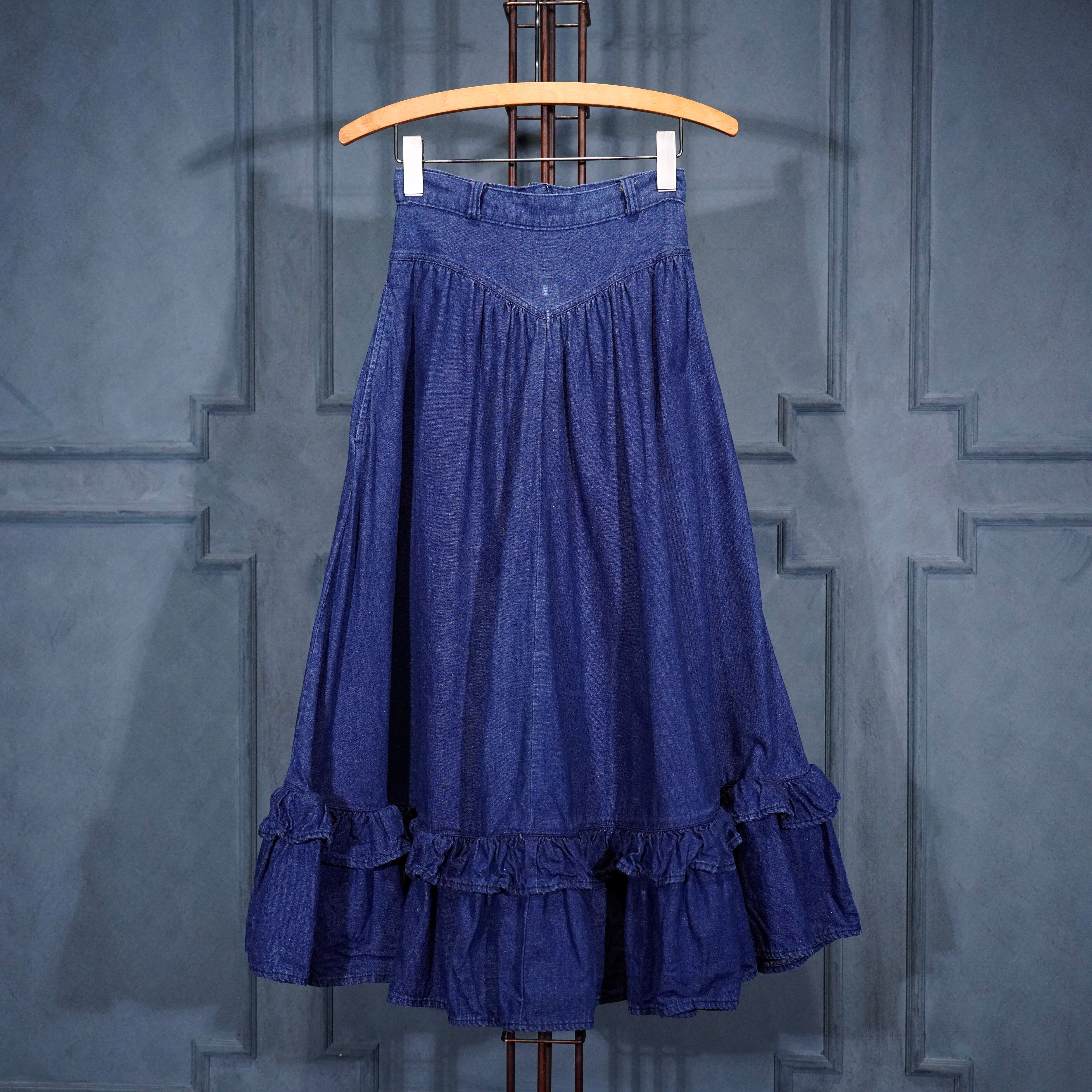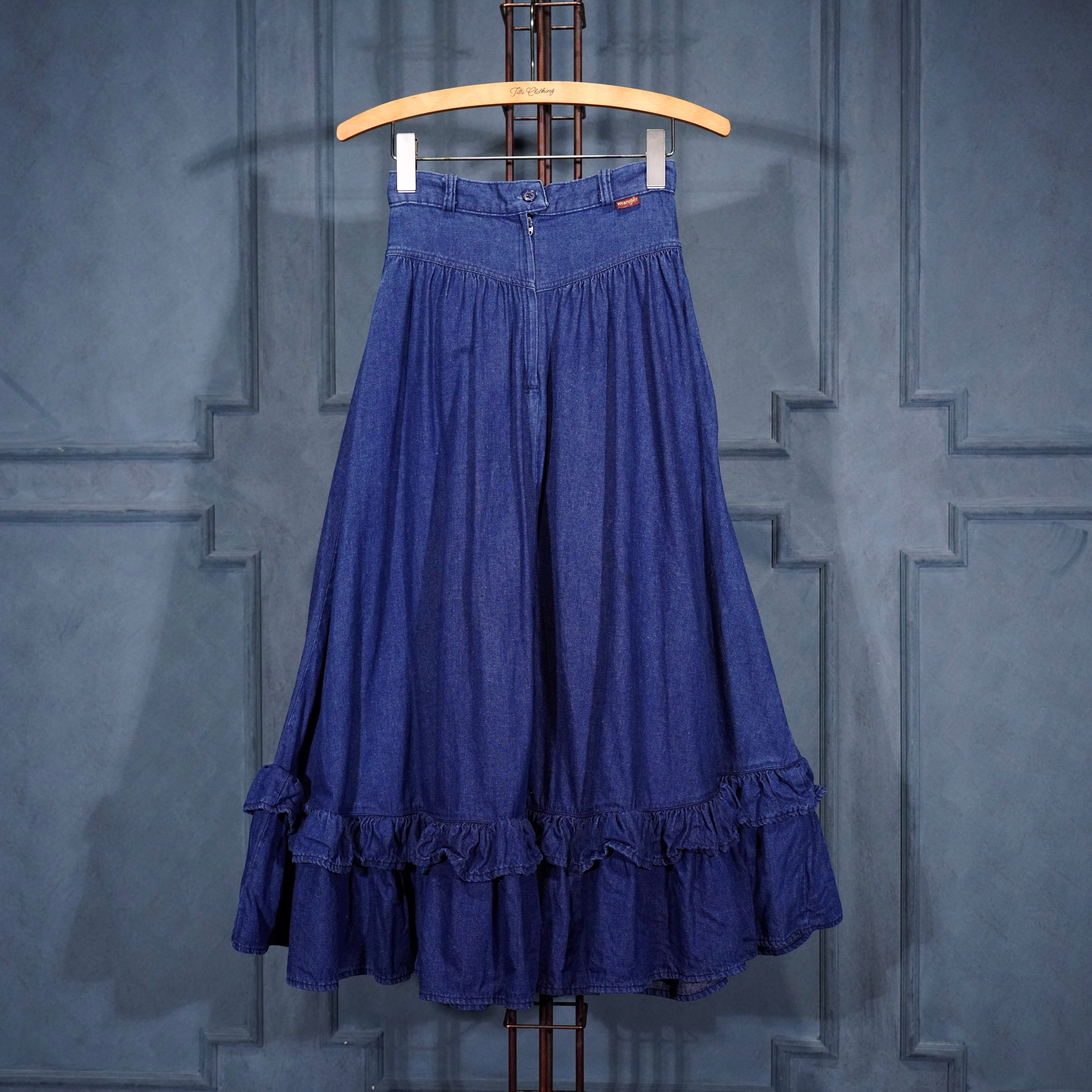 80’s USA VINTAGE Wrangler FRILL DESIGN DENIM LONG SKIRT/80年代アメリカ古着ラングラーフリルデザインデニムロングスカート