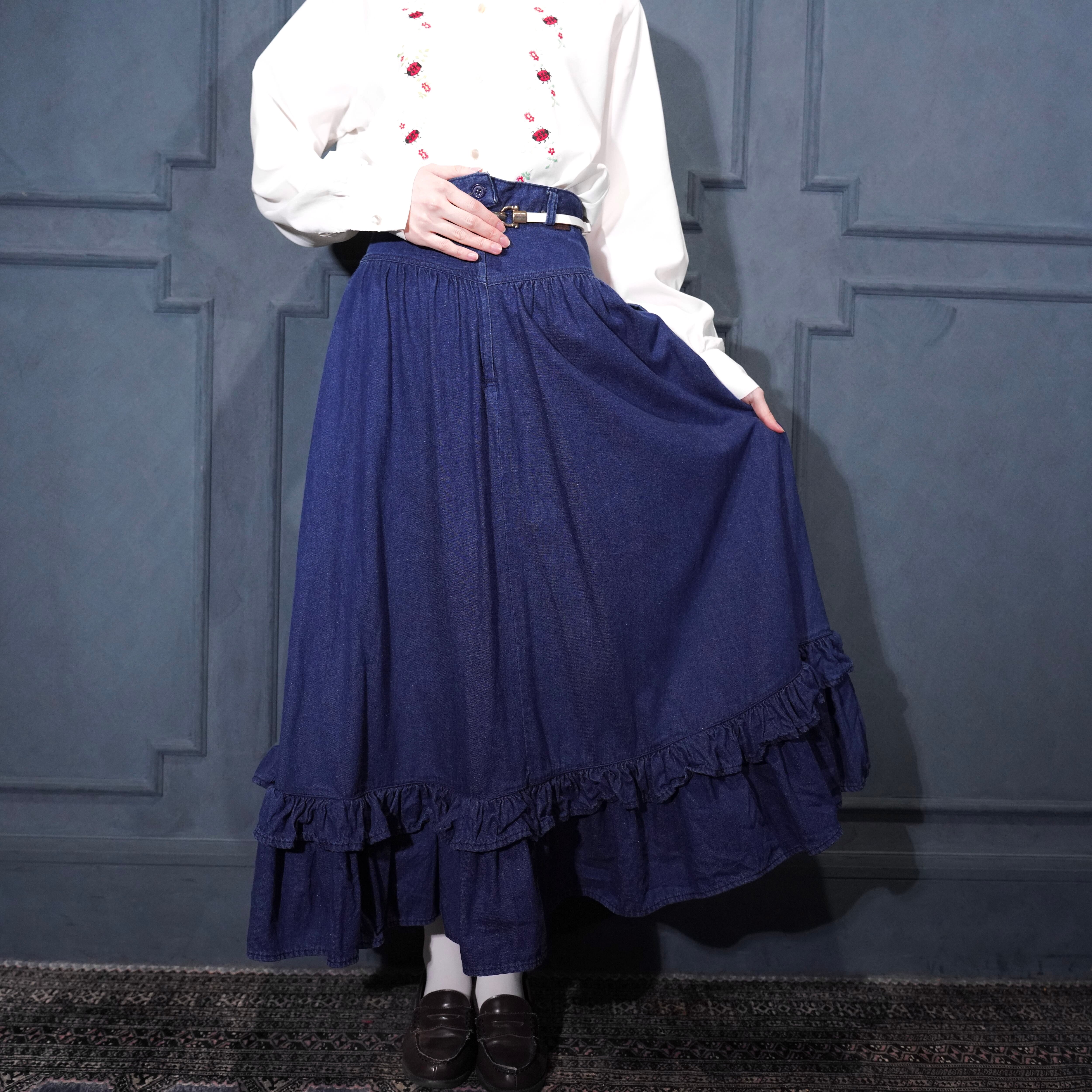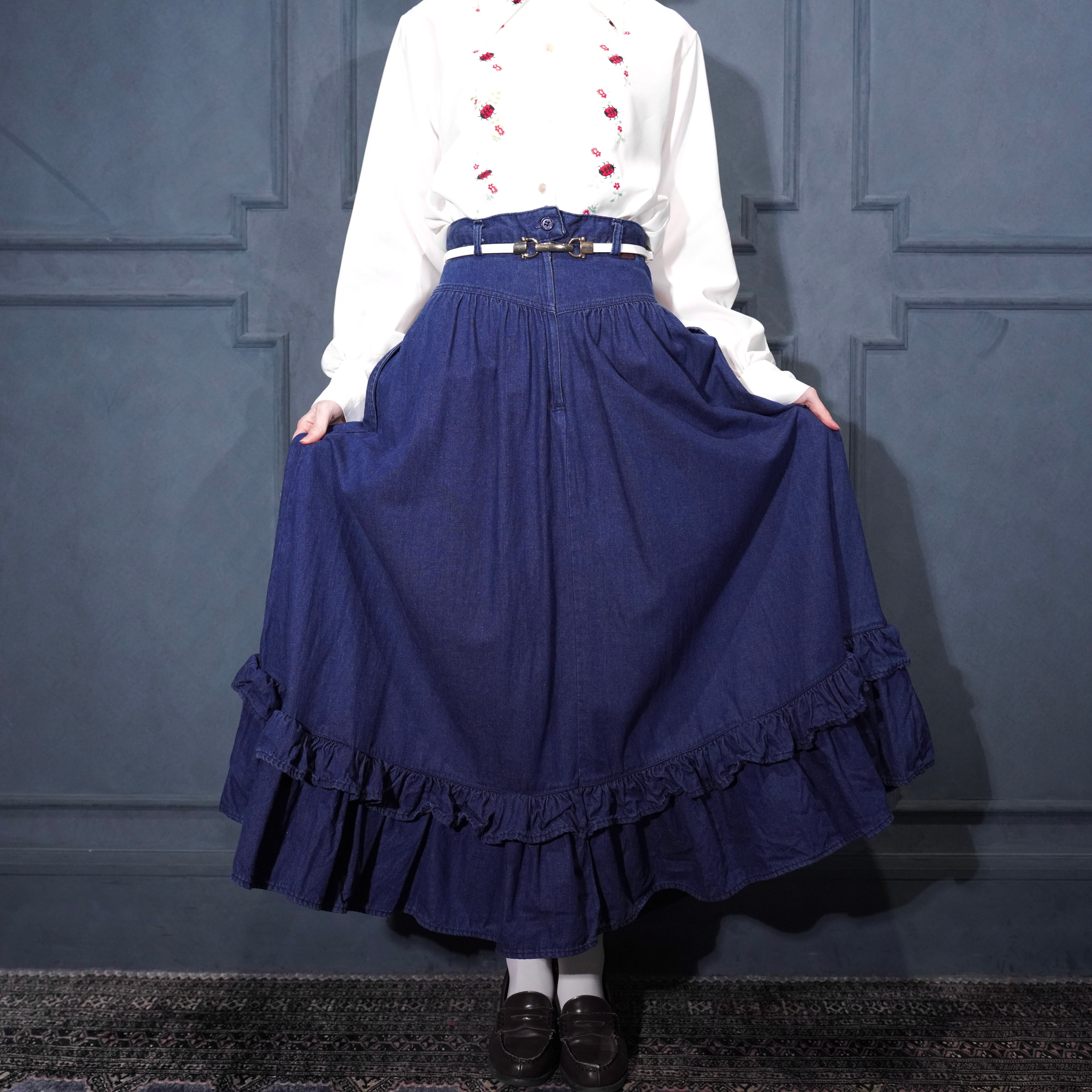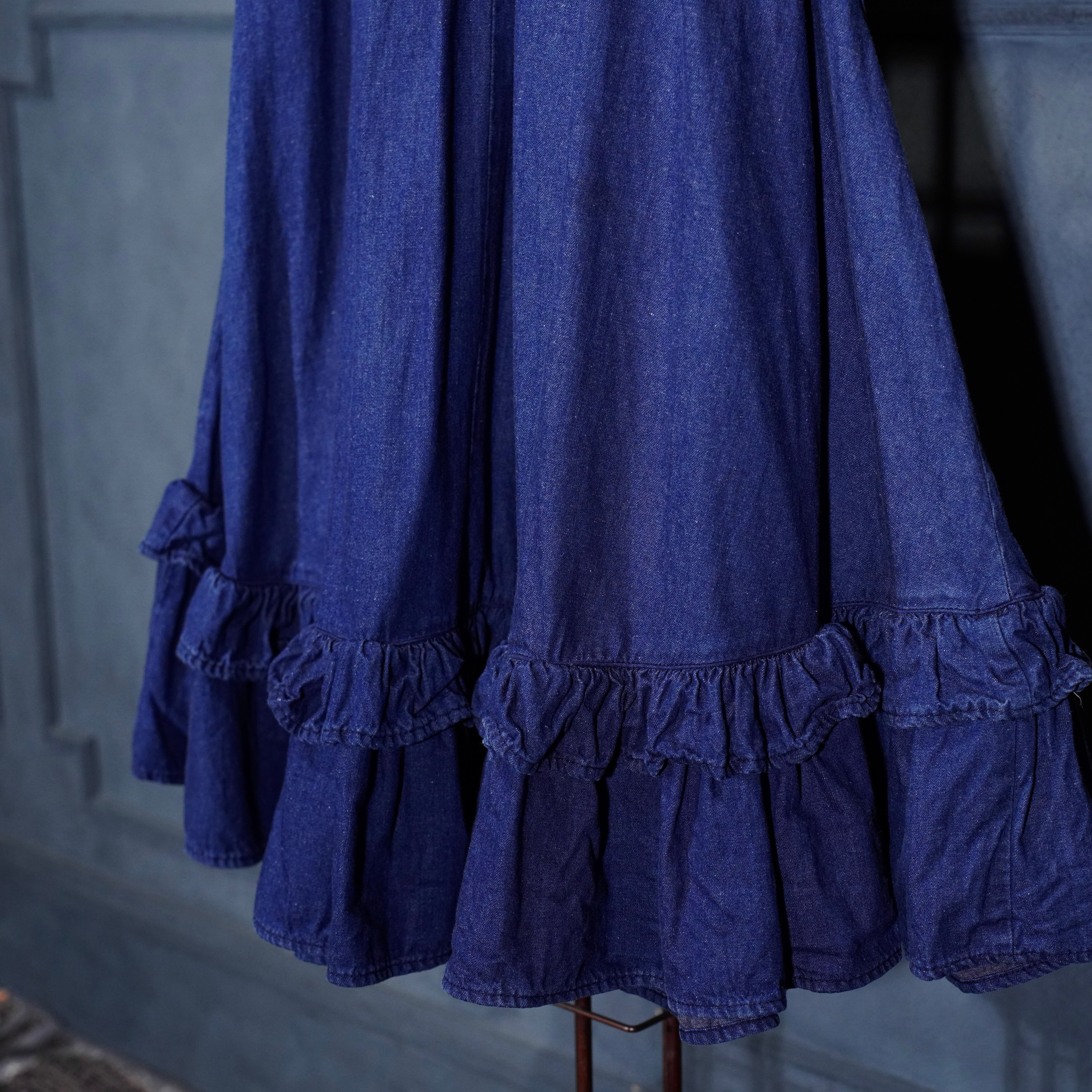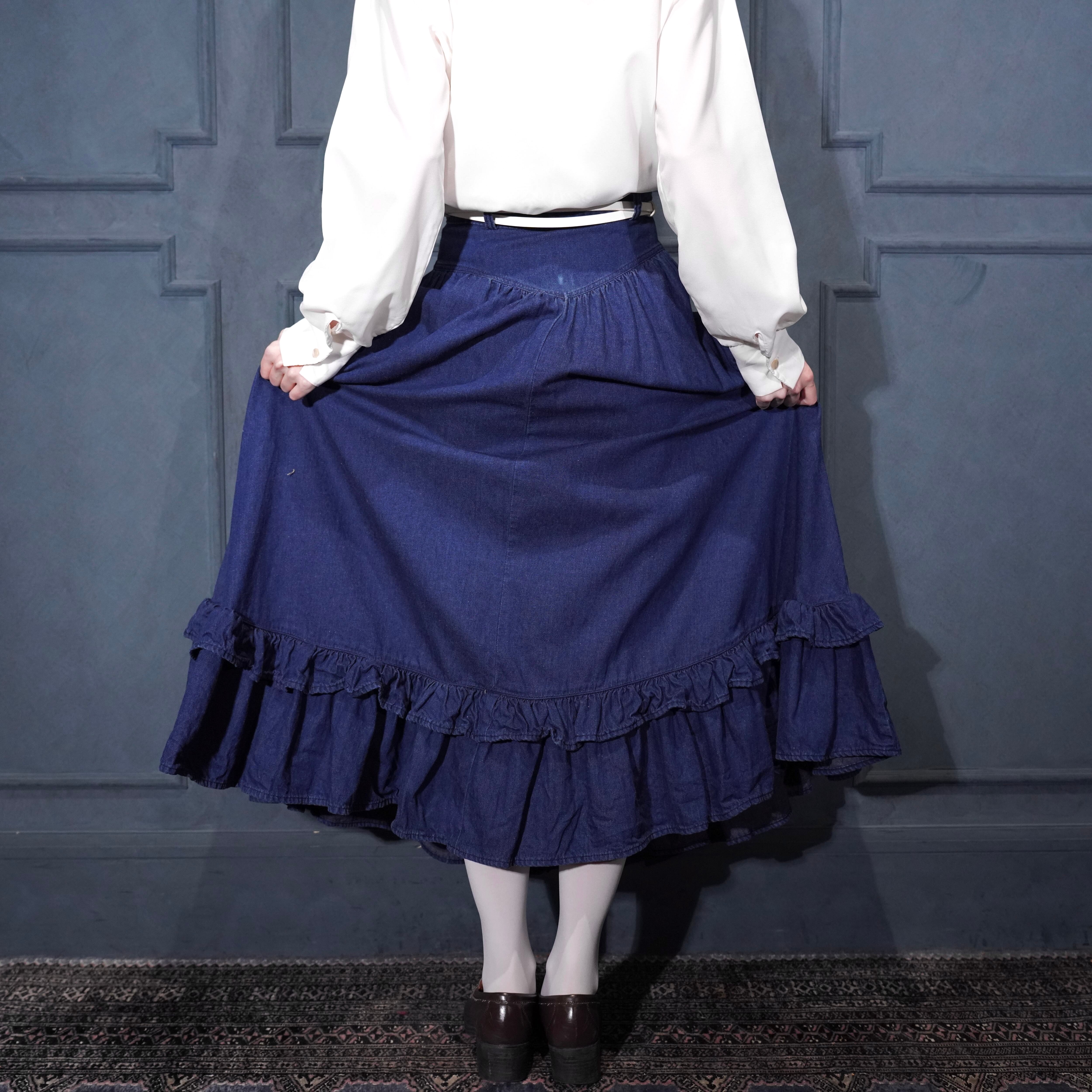 80’s USA VINTAGE Wrangler FRILL DESIGN DENIM LONG SKIRT/80年代アメリカ古着ラングラーフリルデザインデニムロングスカート