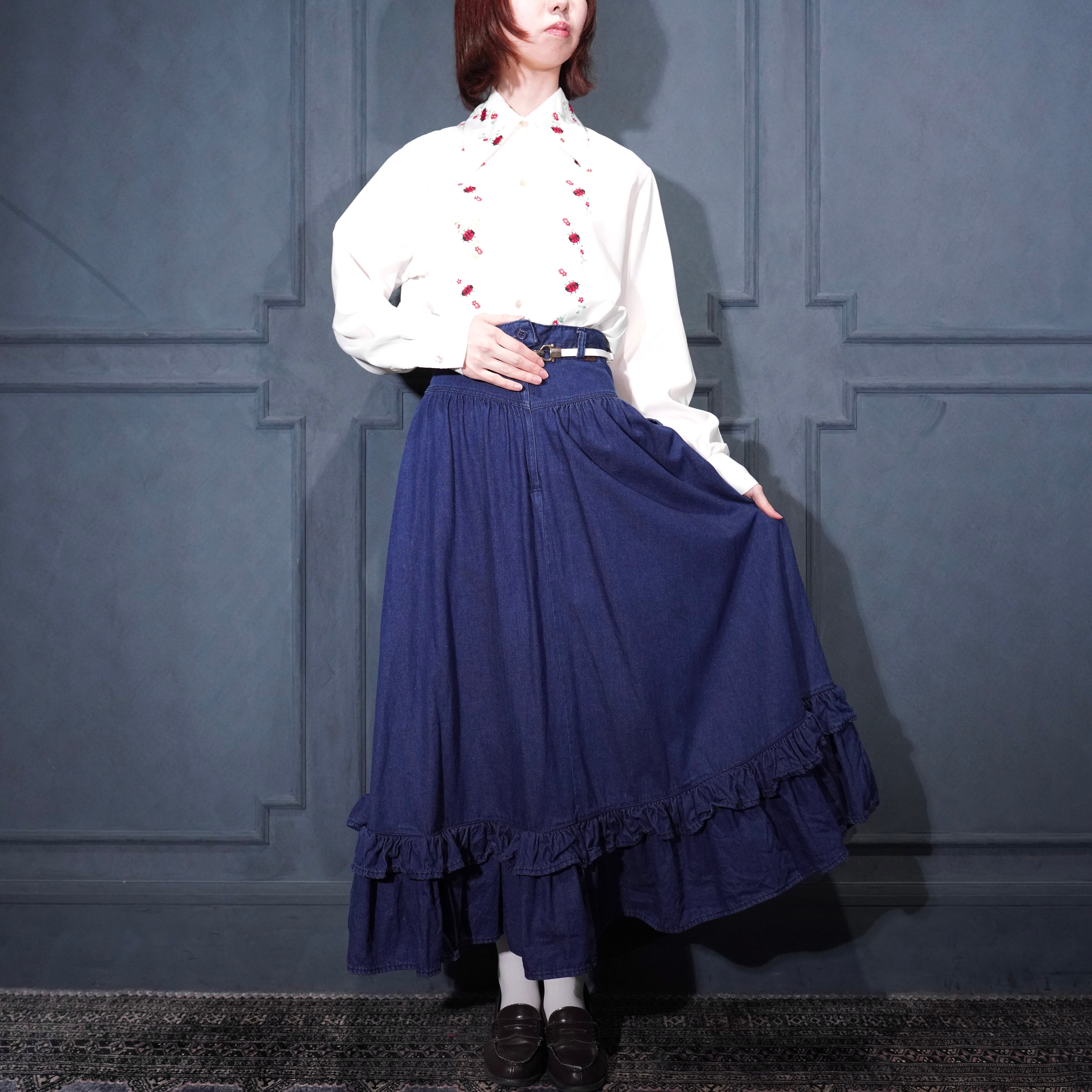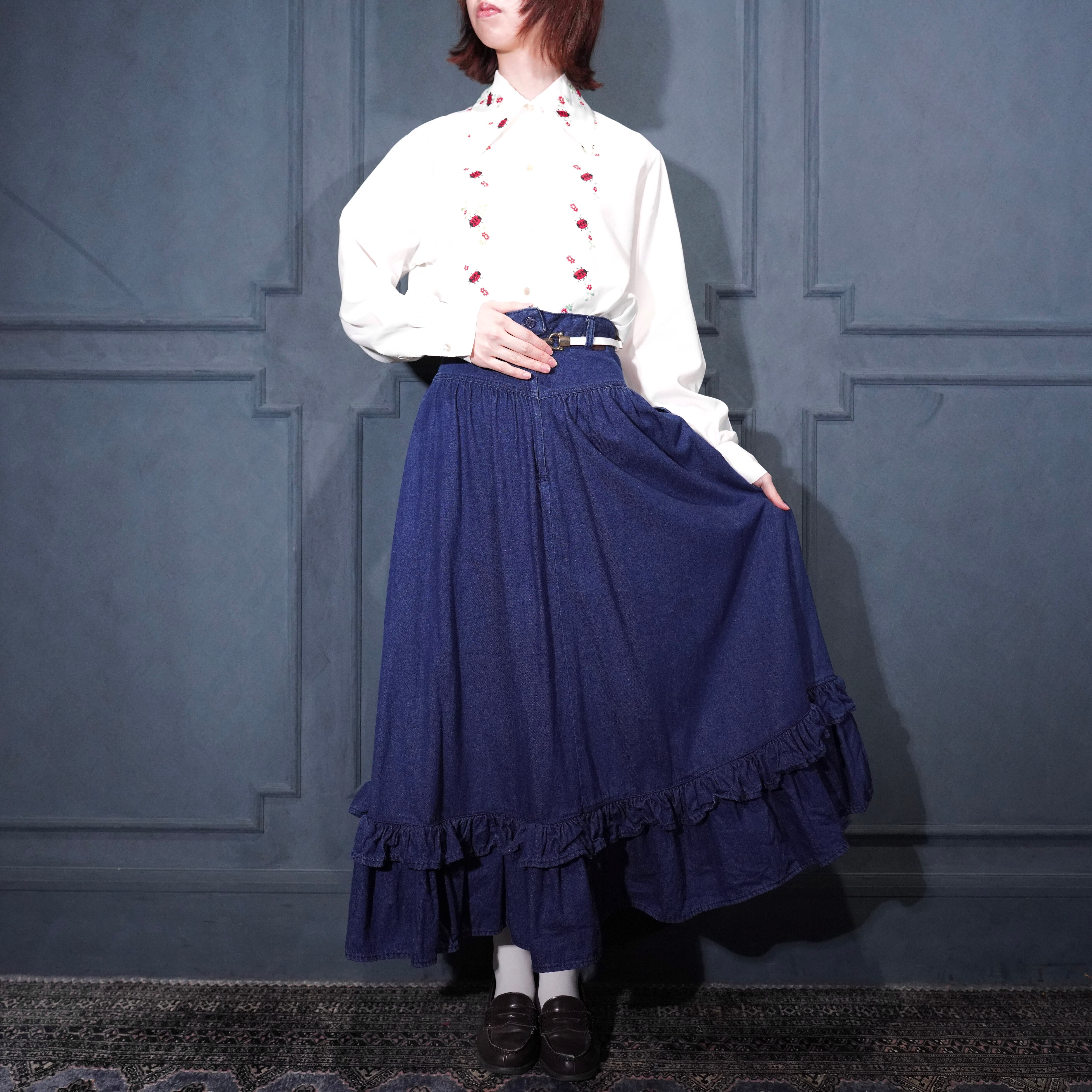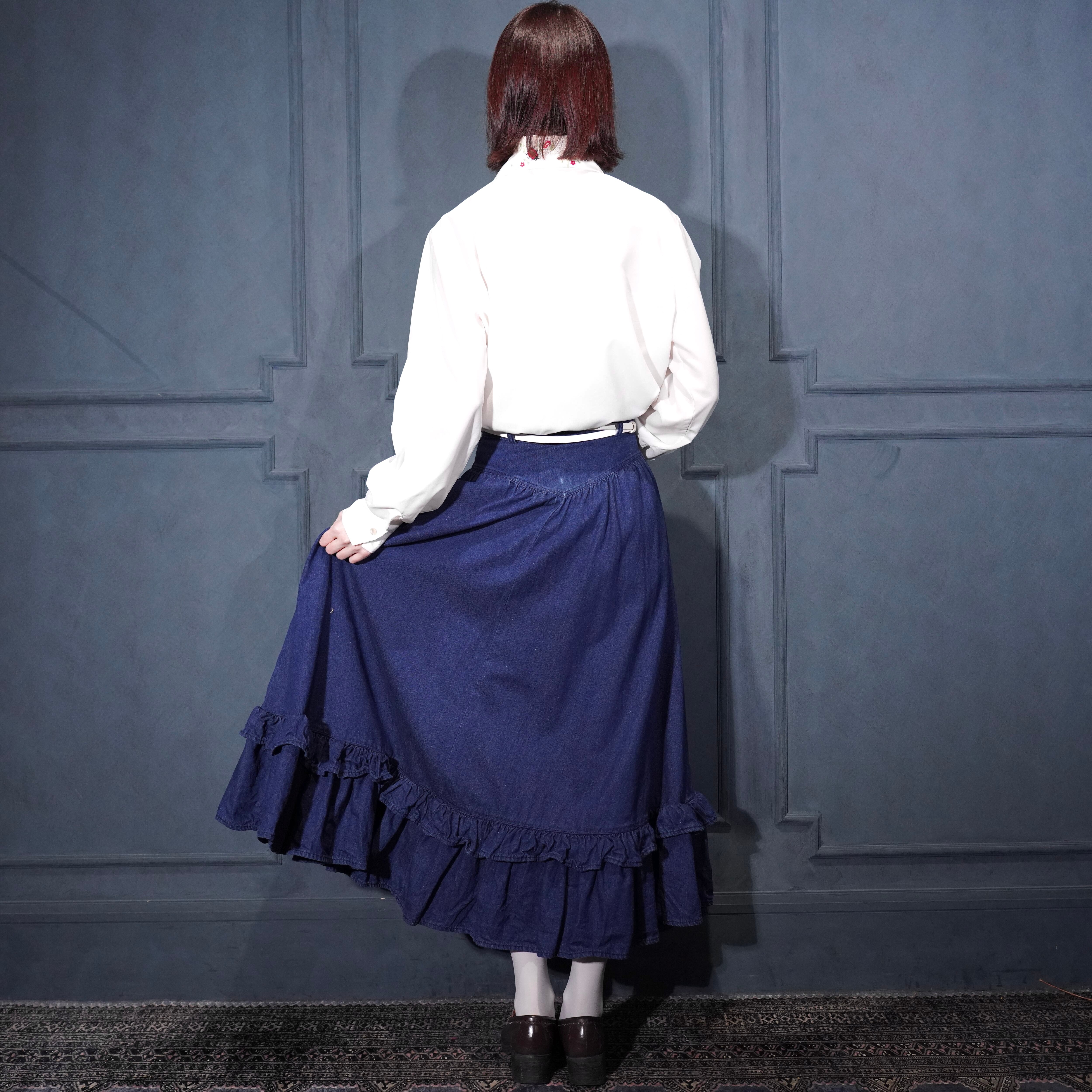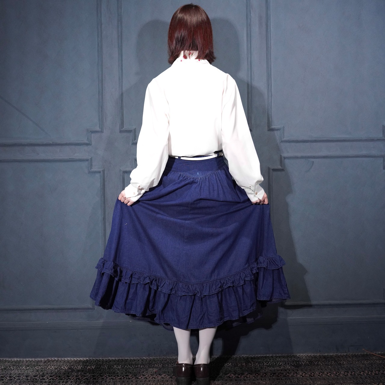 80’s USA VINTAGE Wrangler FRILL DESIGN DENIM LONG SKIRT/80年代アメリカ古着ラングラーフリルデザインデニムロングスカート