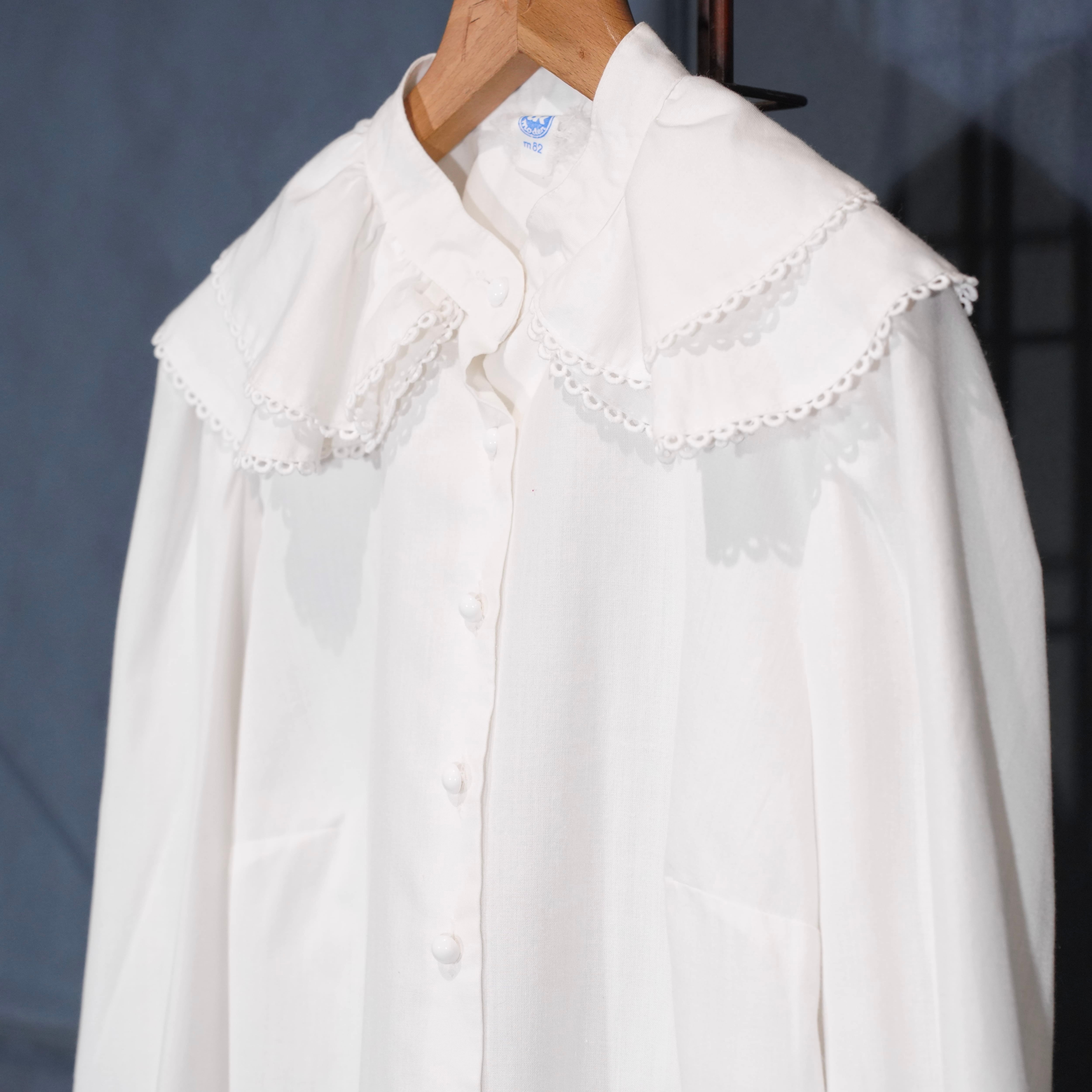 EU VINTAGE dk moden DOUBLE BIG COLLAR DESIGN BLOUSE/ヨーロッパ古着ダブルビッグカラーデザインブラウス