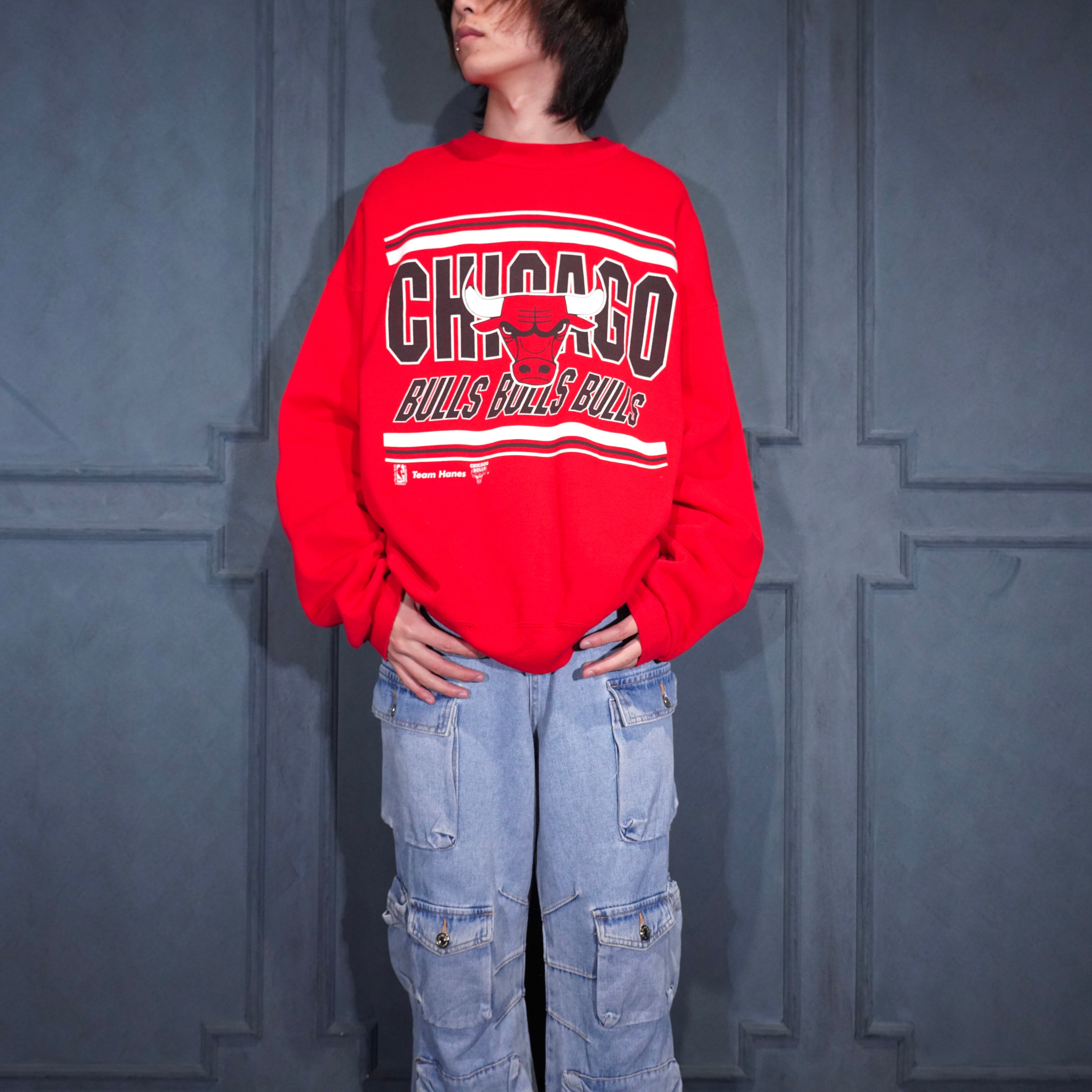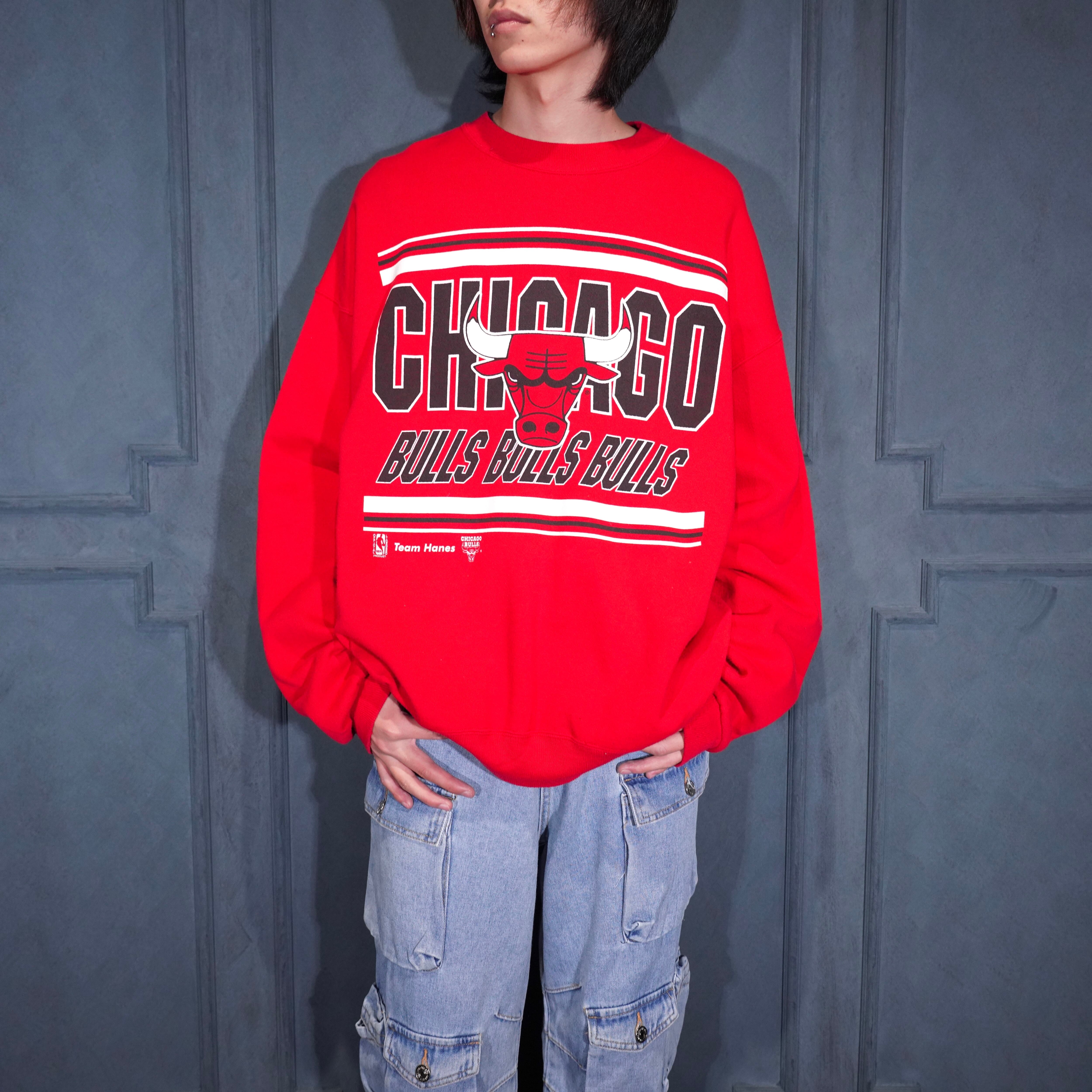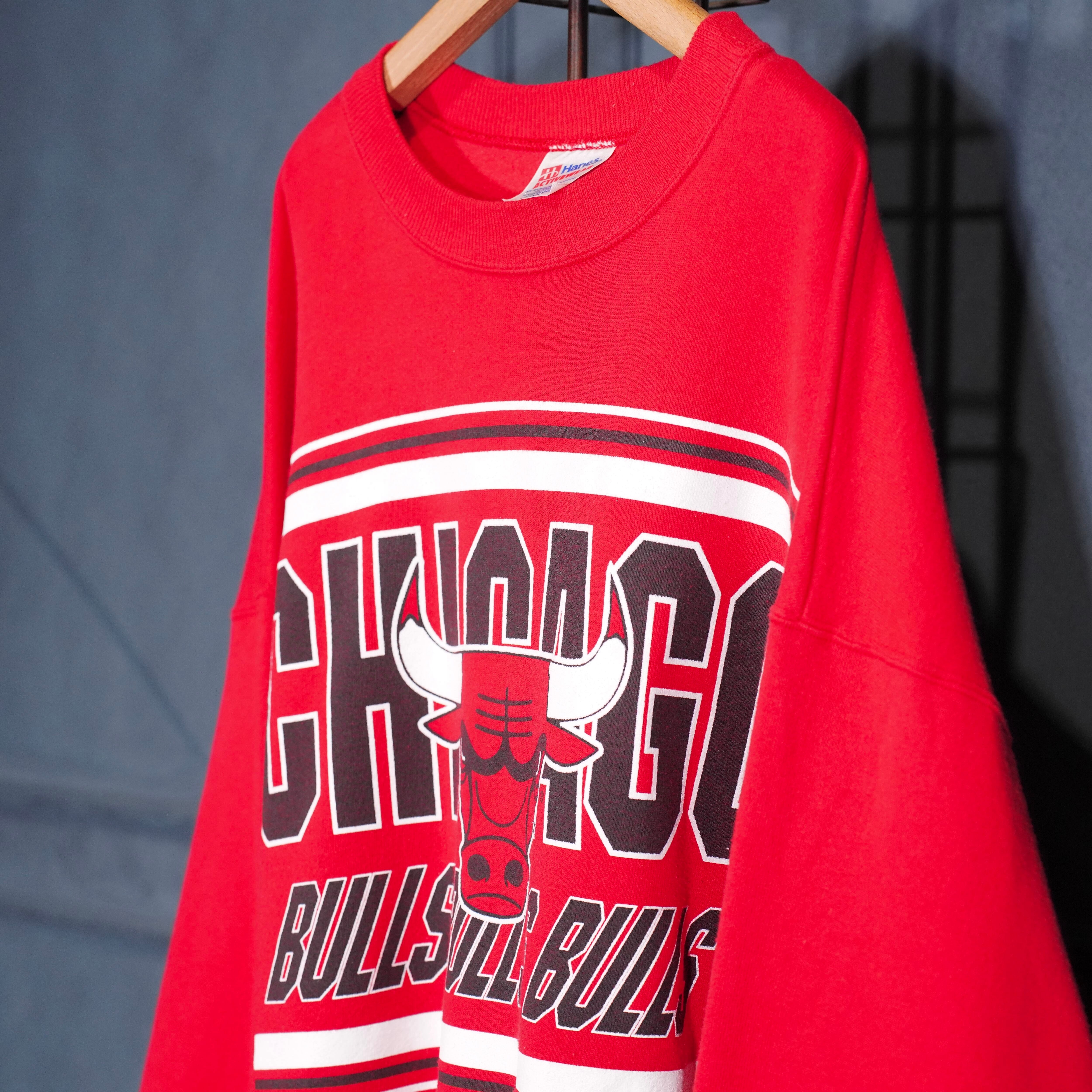 90's USA VINTAGE Hanes ACTIVEWEAR NBA CHICAGO BULLS TEAM PRINT DESIGN SWEAT SHIRT/90年代アメリカ古着ヘインツNBAチームシカゴブルスプリントデザインスウェット