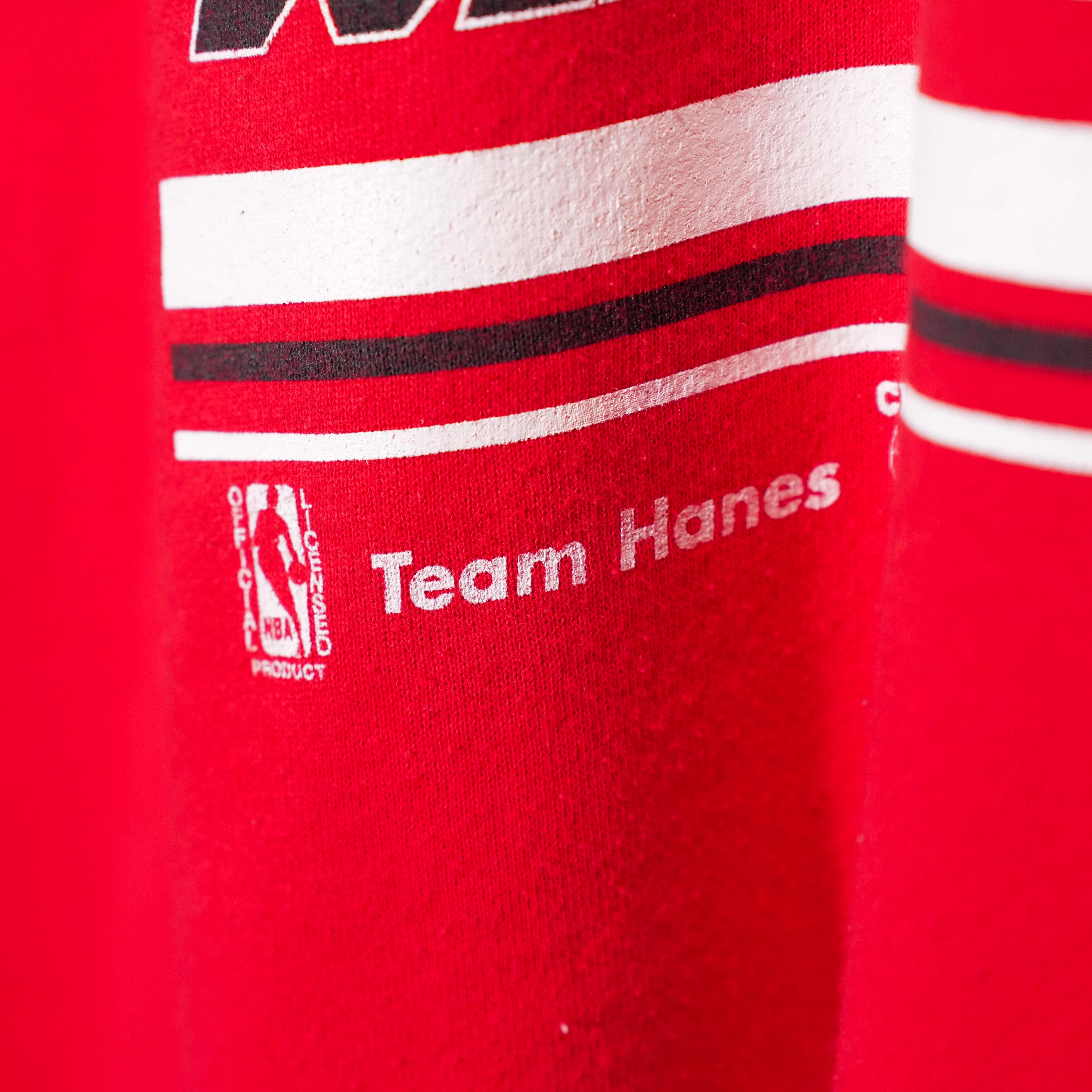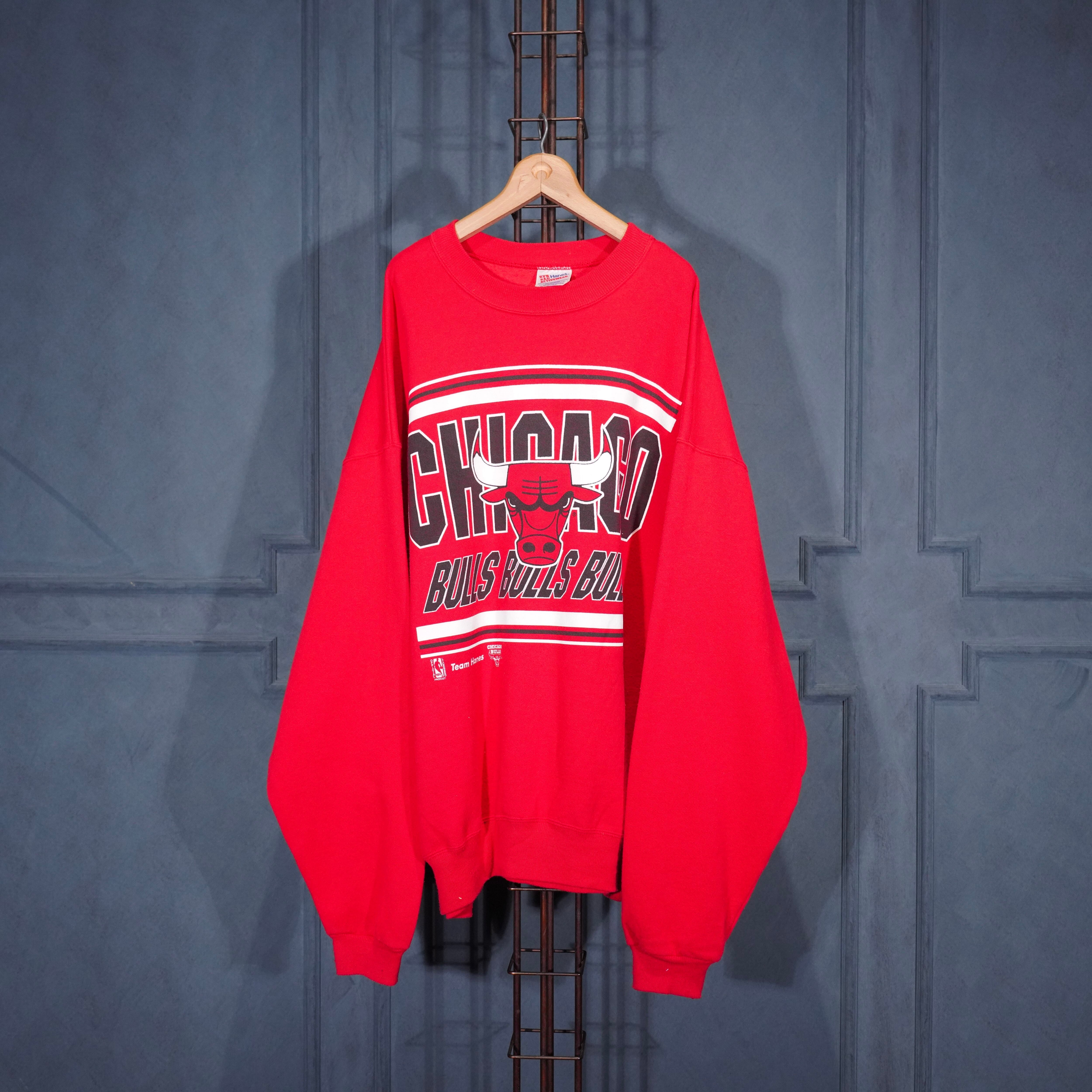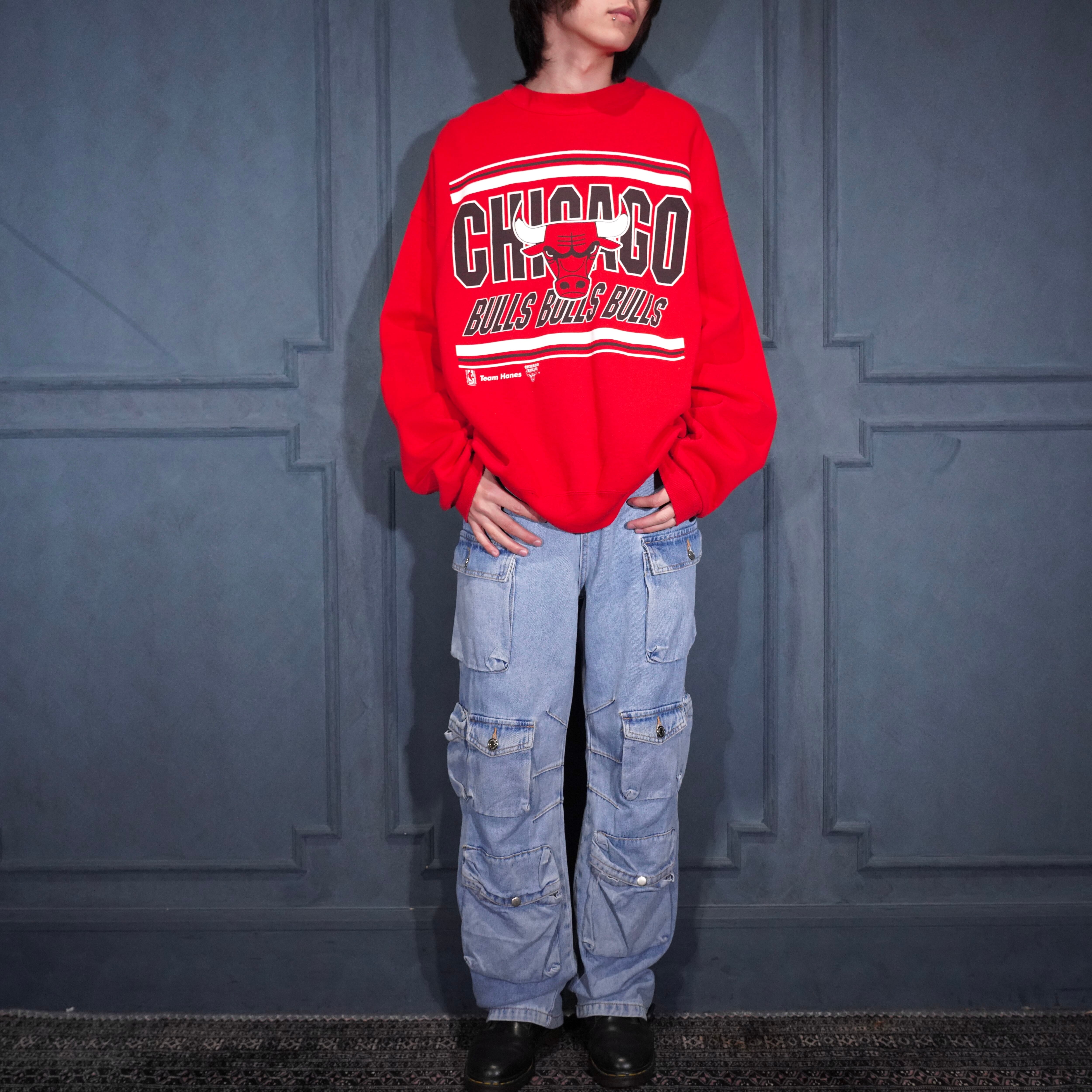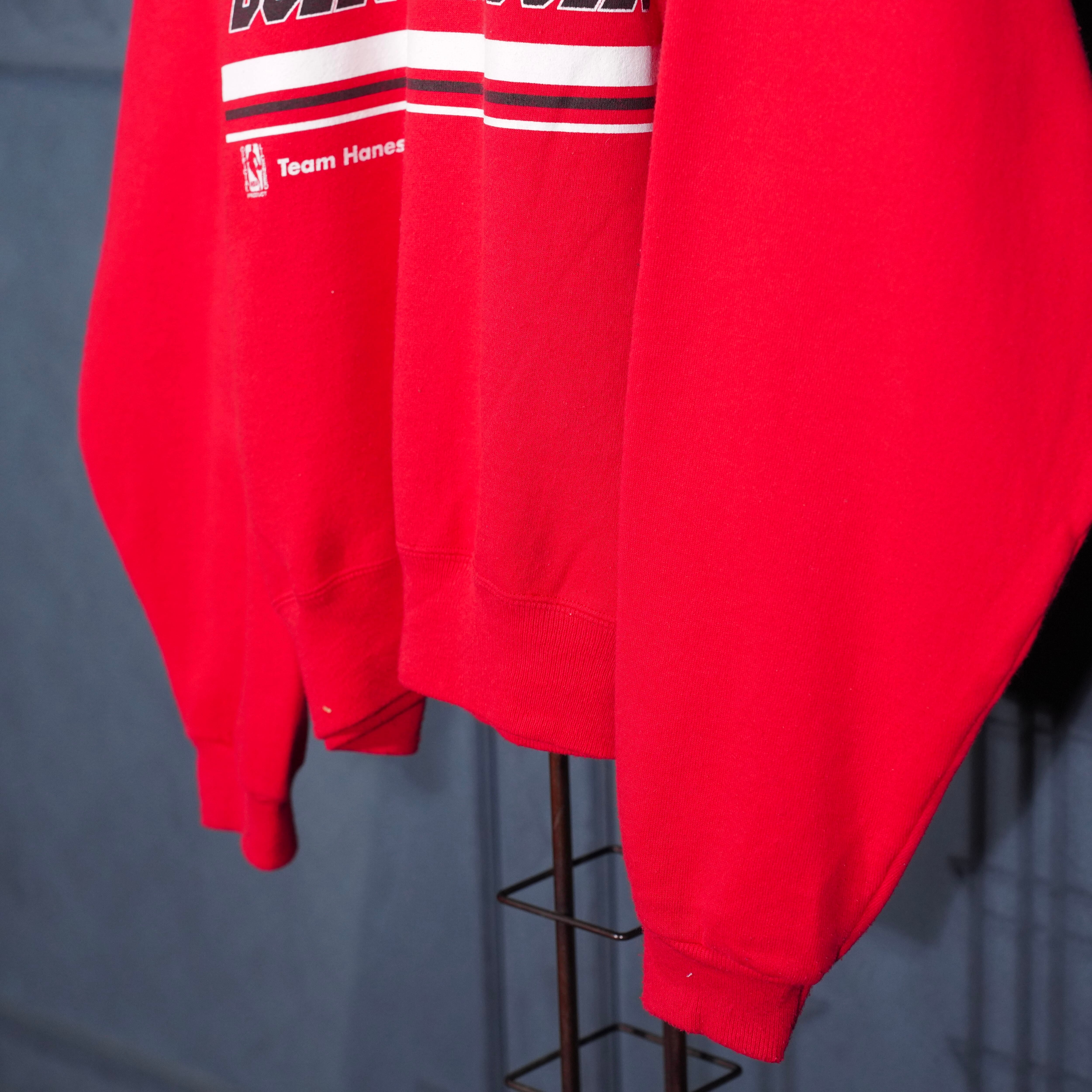 90's USA VINTAGE Hanes ACTIVEWEAR NBA CHICAGO BULLS TEAM PRINT DESIGN SWEAT SHIRT/90年代アメリカ古着ヘインツNBAチームシカゴブルスプリントデザインスウェット