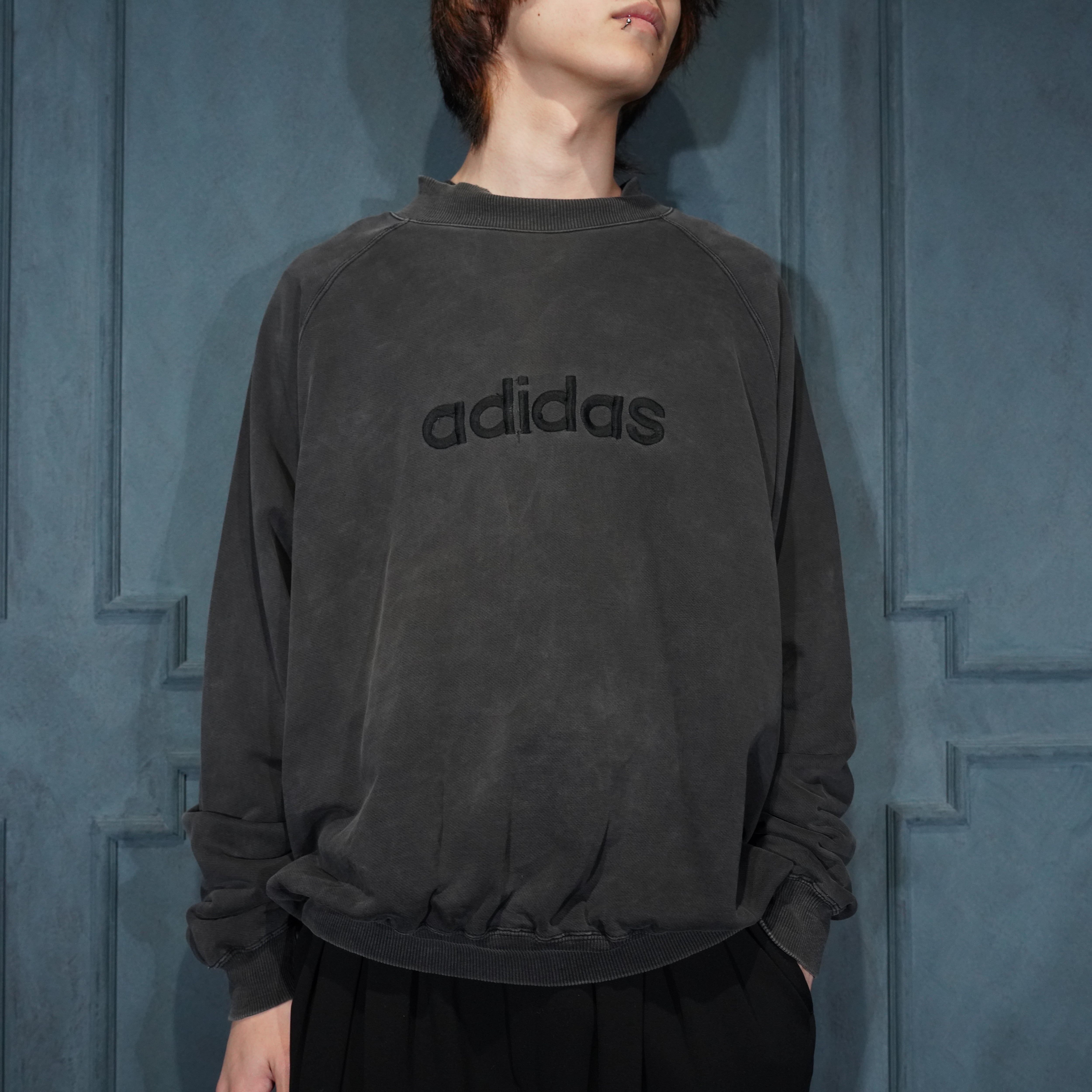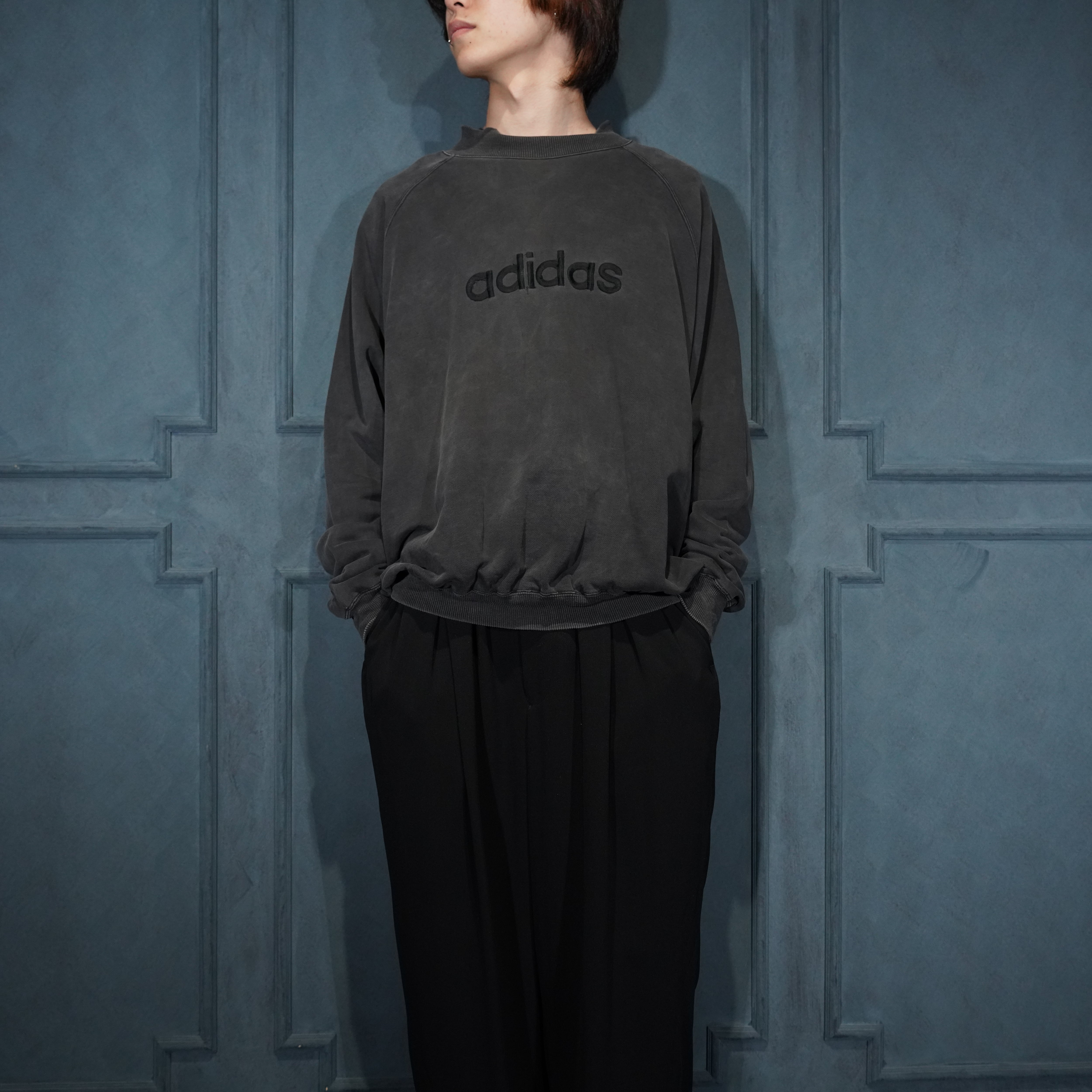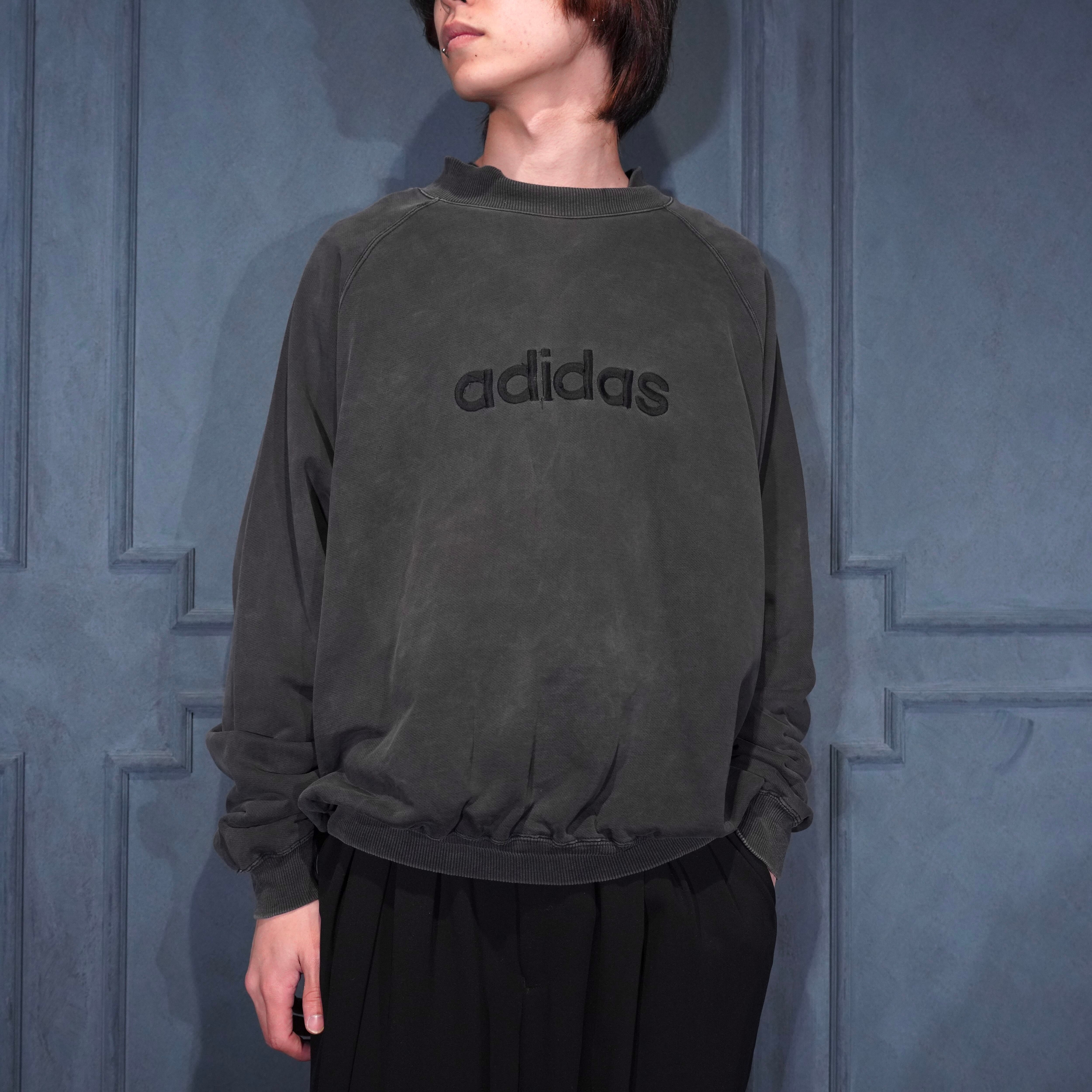 90's EU VINTAGE adidas BLACK FADED DESIGN SWEAT SHIRT/90年代アメリカ古着アディダスブラックフェードデザインスウェット