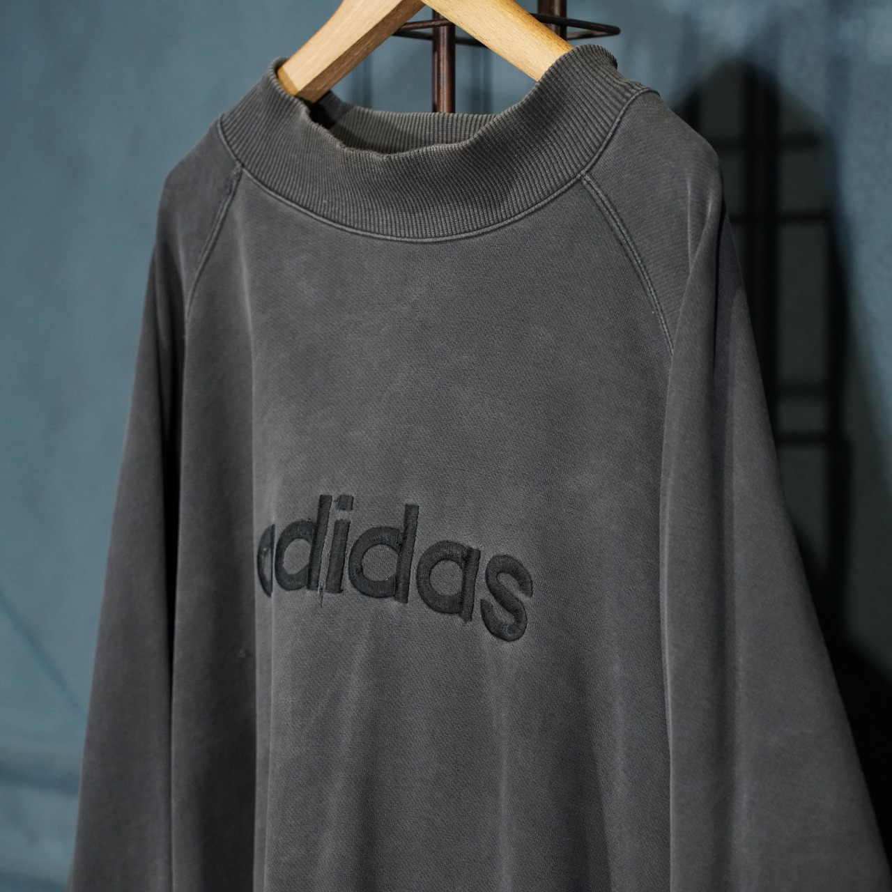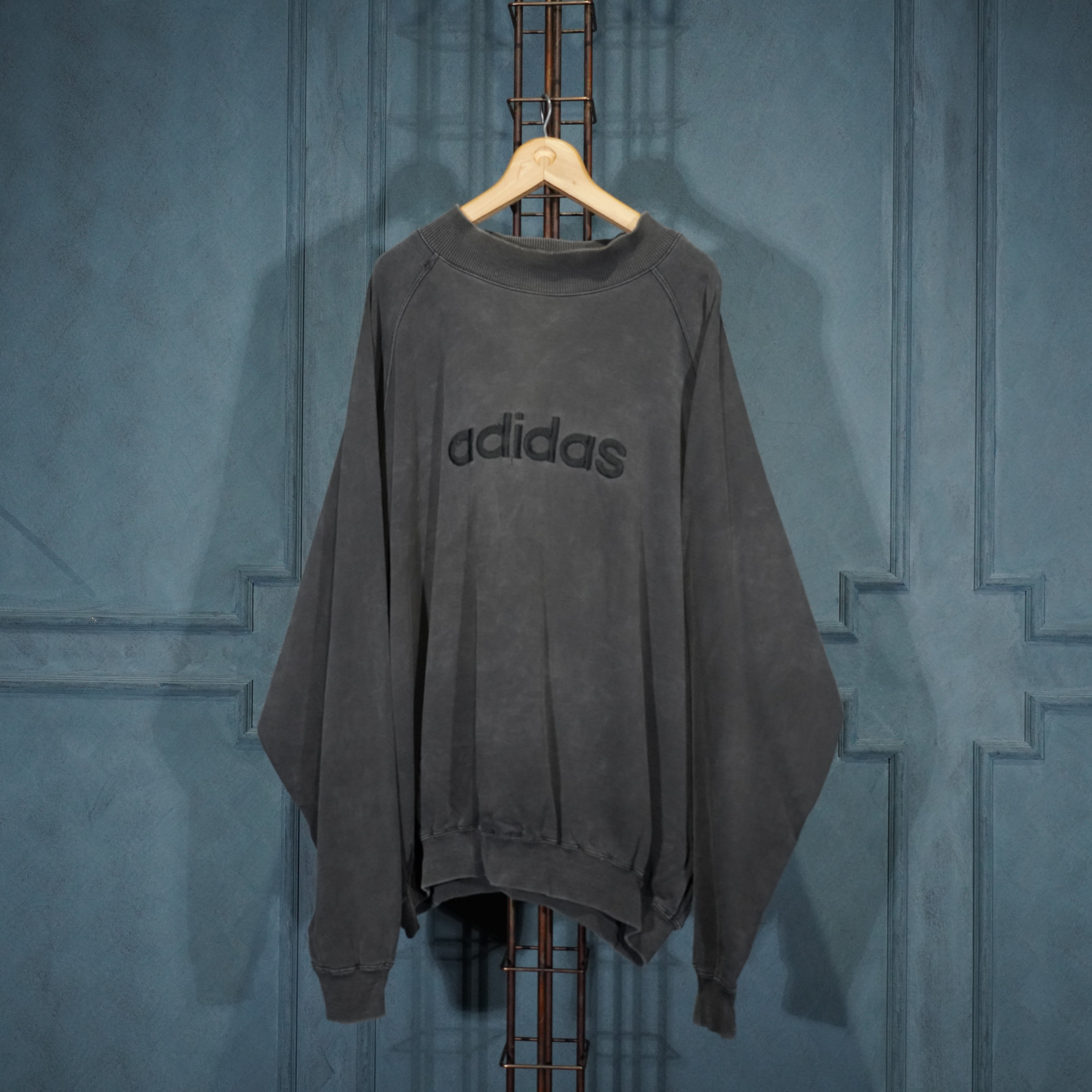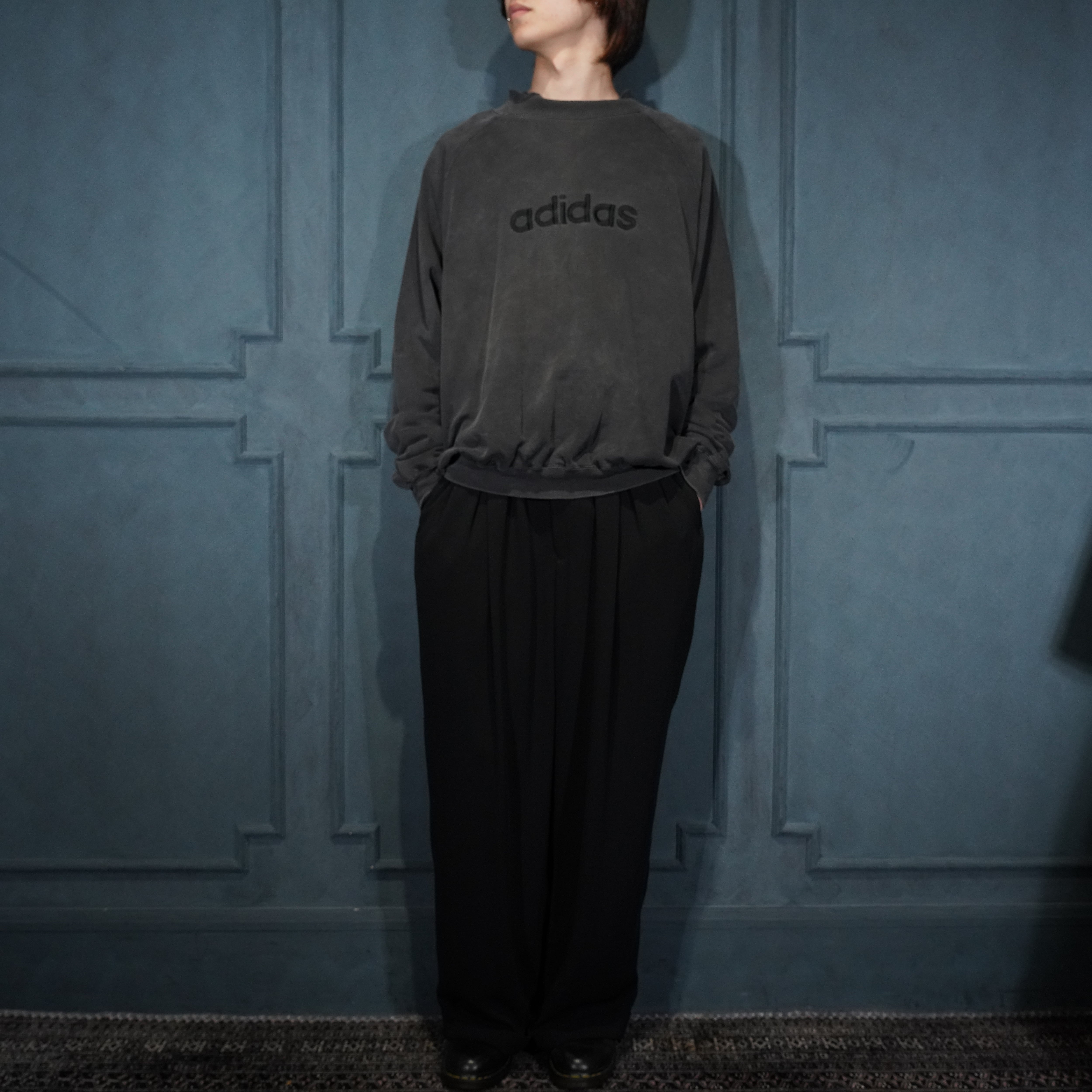 90's EU VINTAGE adidas BLACK FADED DESIGN SWEAT SHIRT/90年代アメリカ古着アディダスブラックフェードデザインスウェット