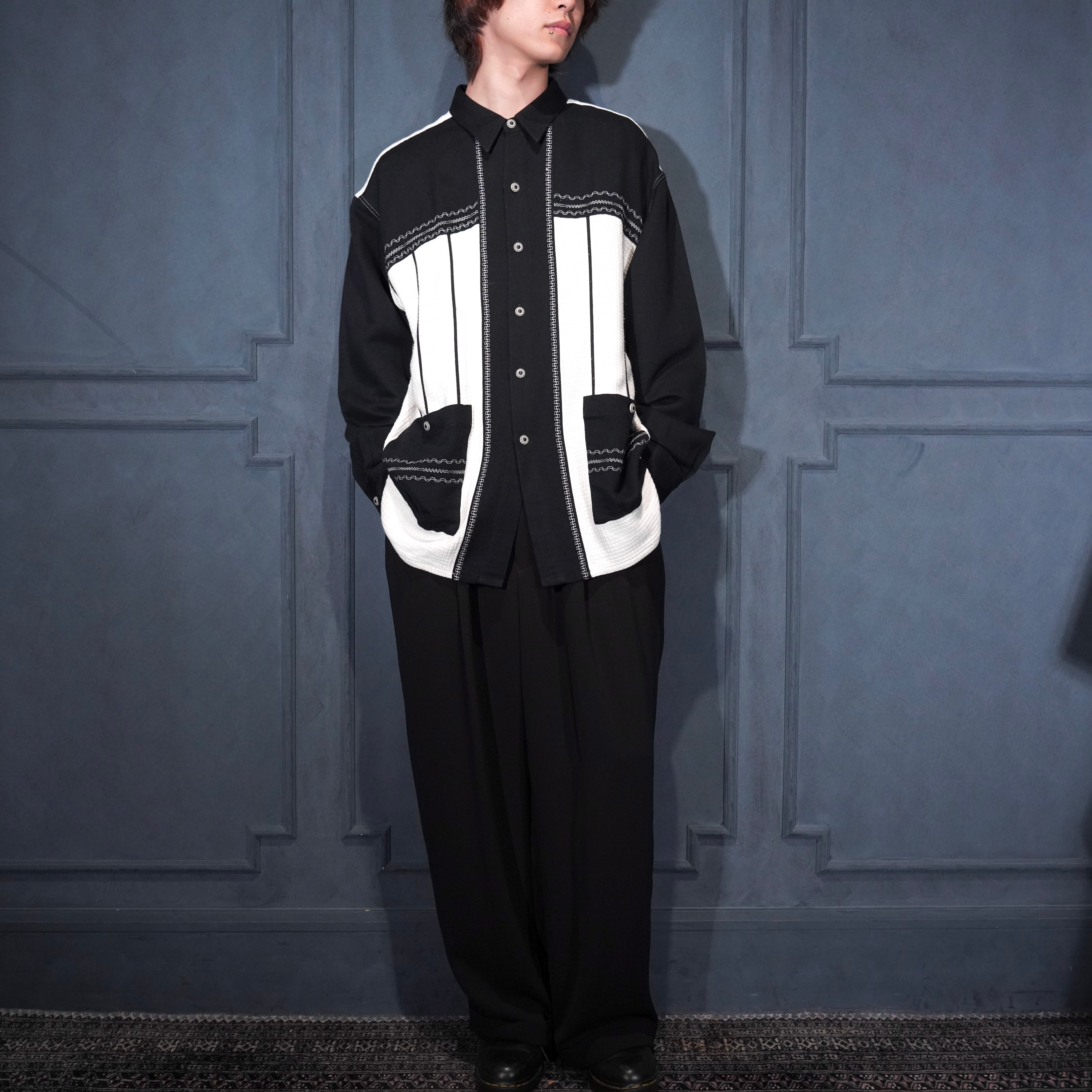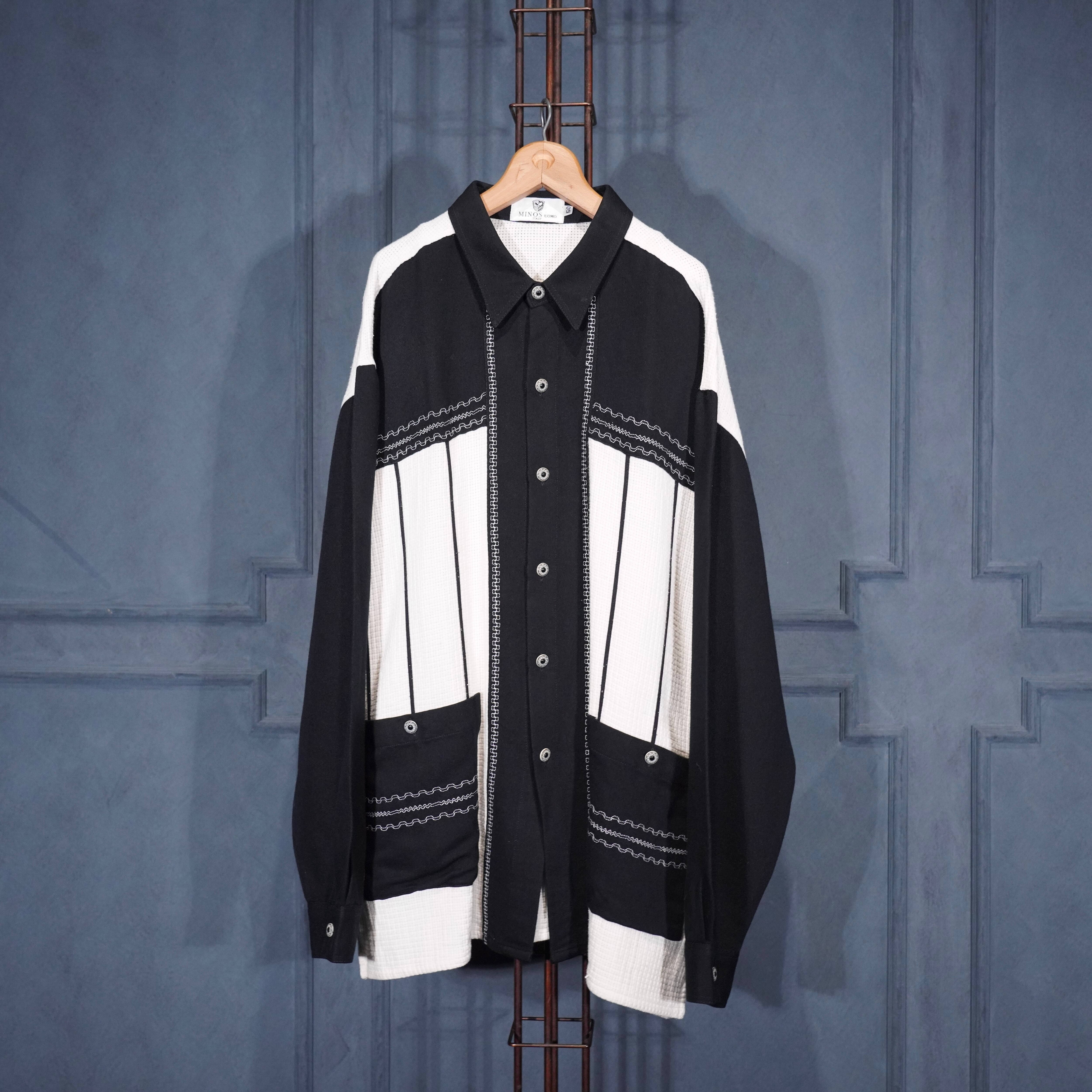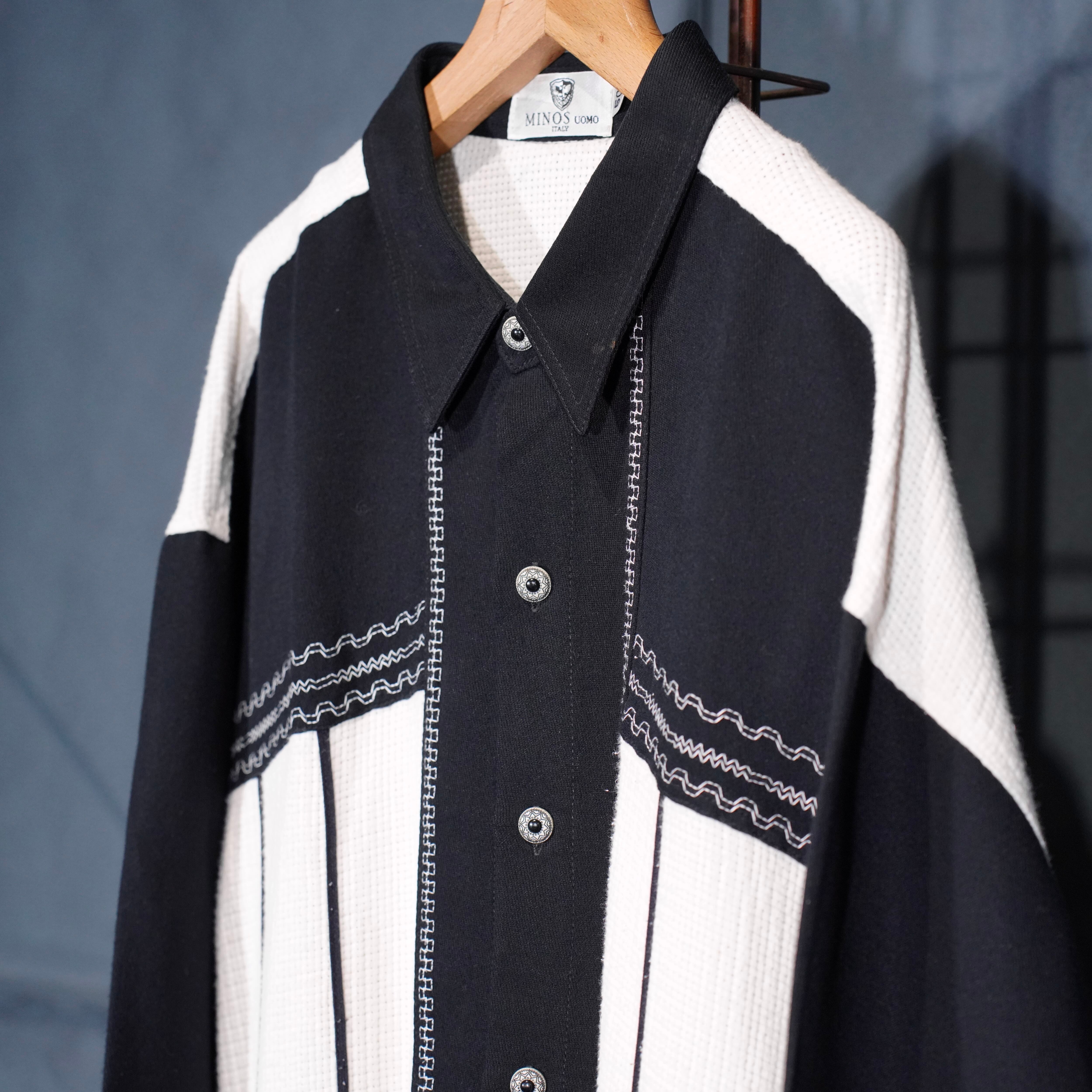 EU VINTAGE MINOS UOMO DESIGN BUTTON 2 TONE SHIRT/ヨーロッパ古着デザインボタン2トーンシャツ