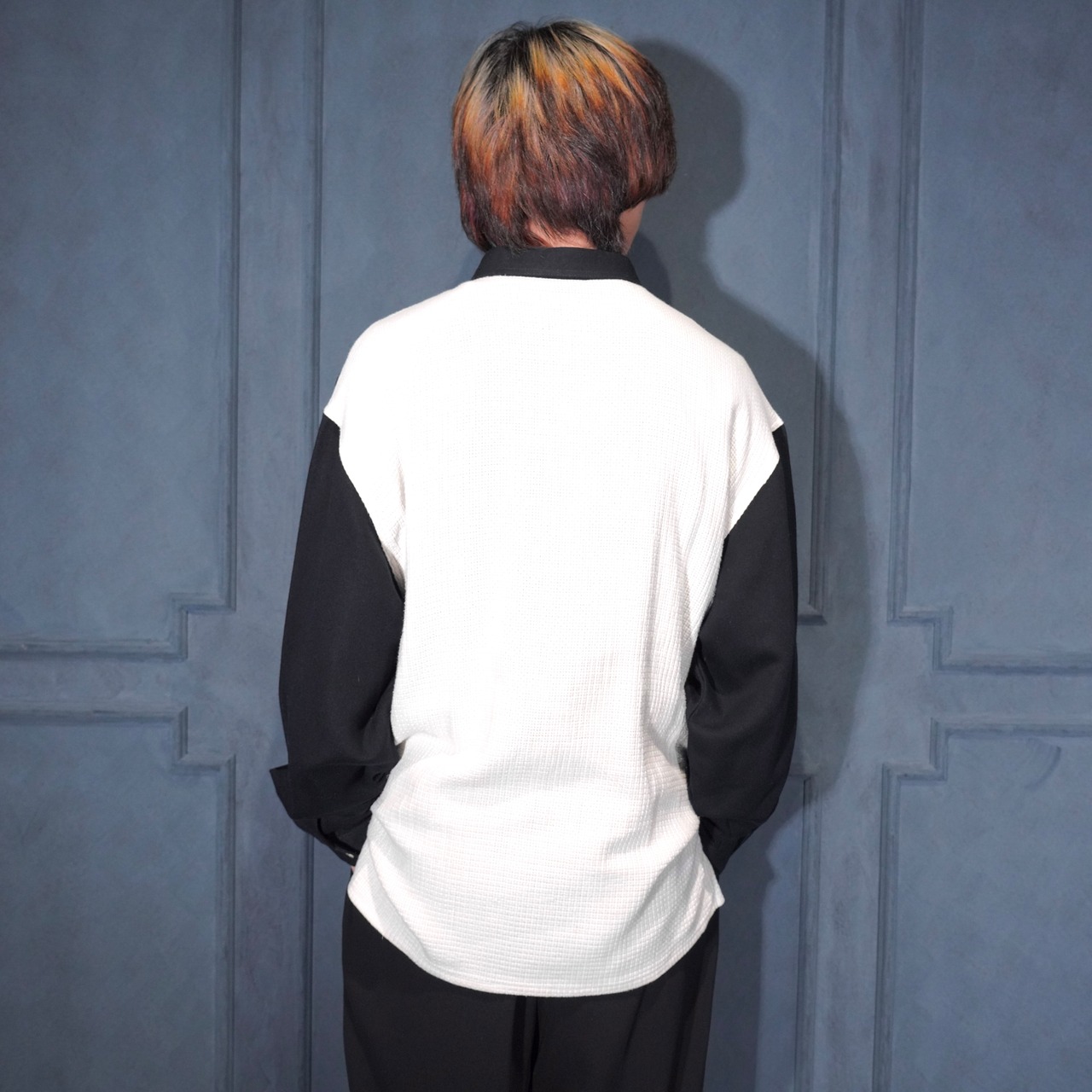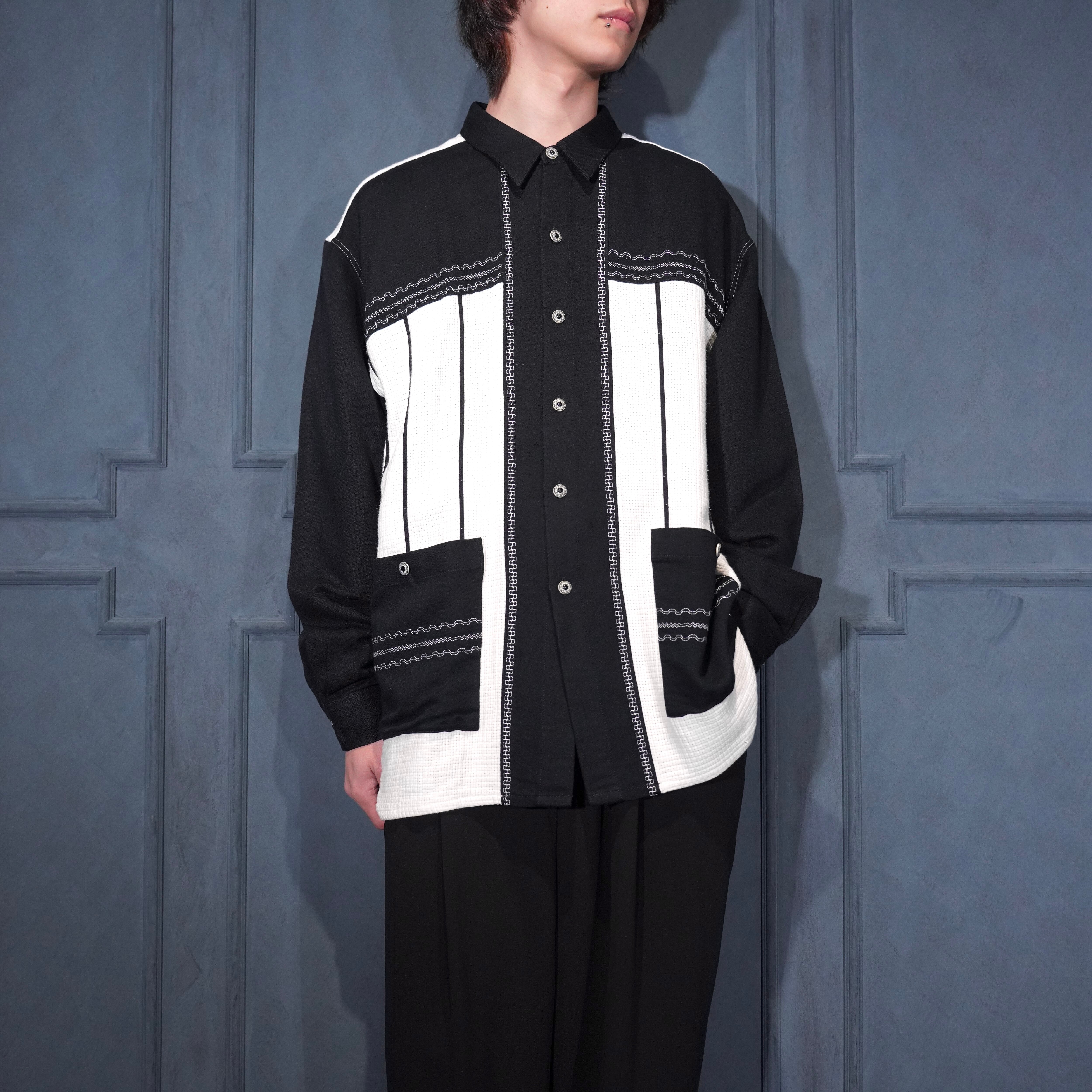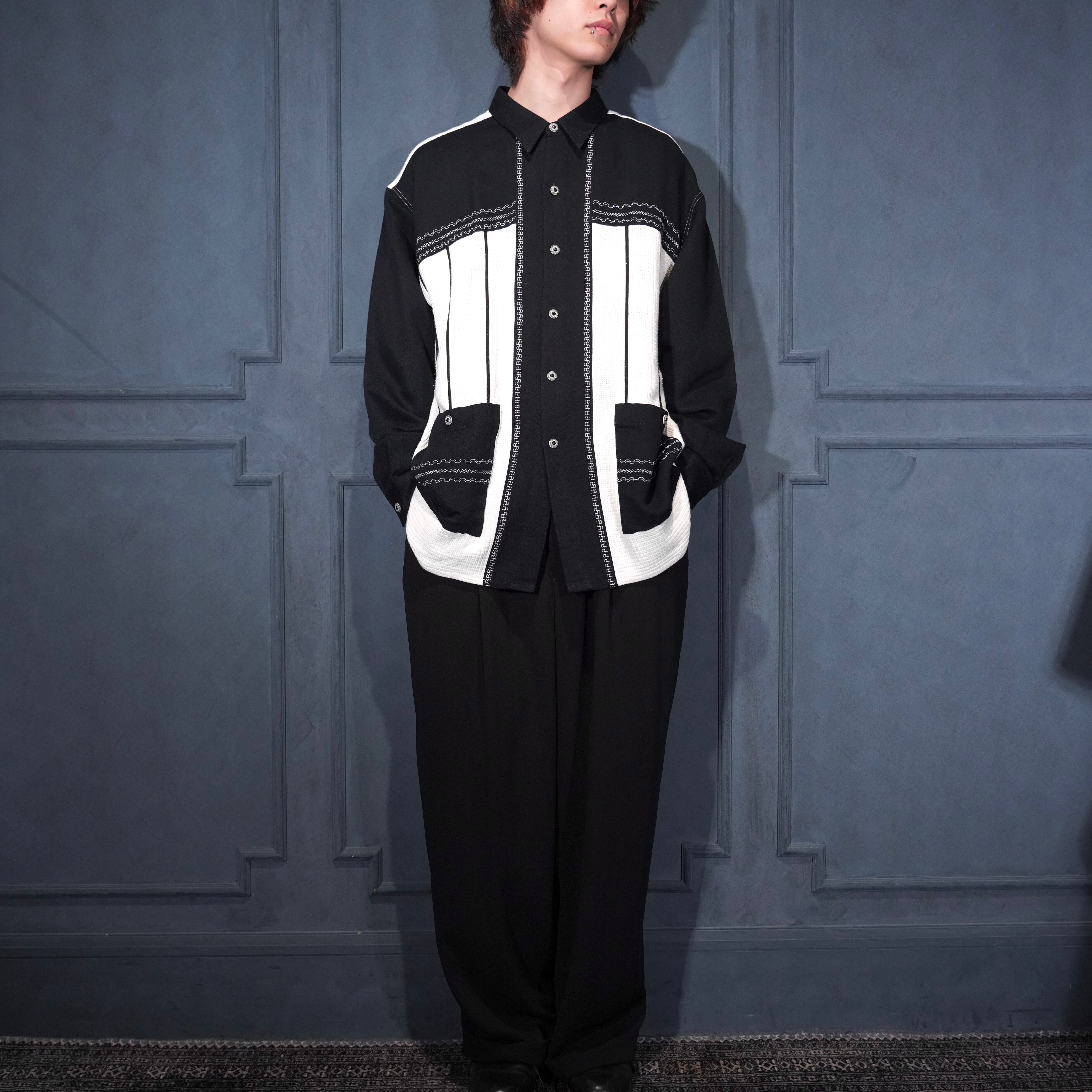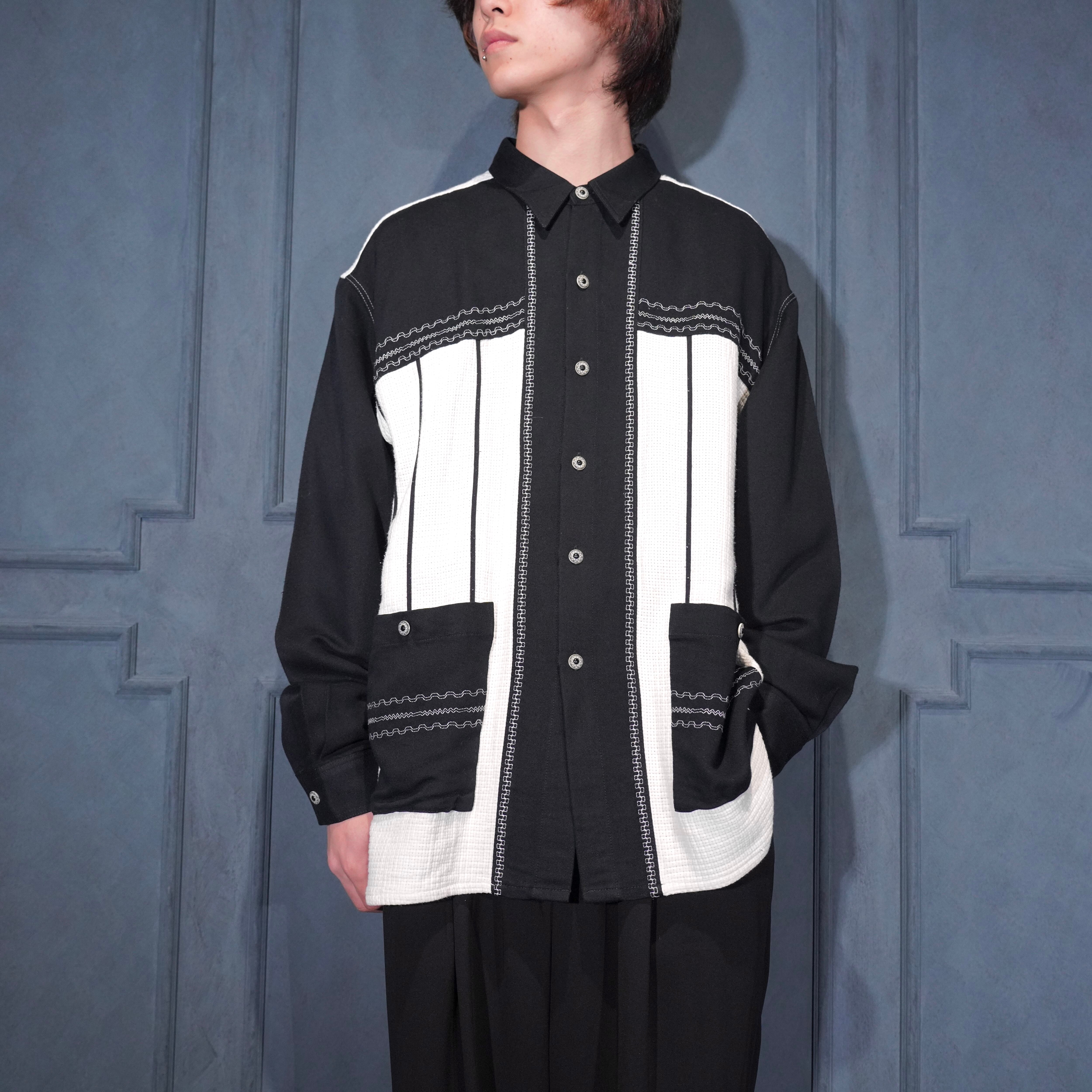 EU VINTAGE MINOS UOMO DESIGN BUTTON 2 TONE SHIRT/ヨーロッパ古着デザインボタン2トーンシャツ