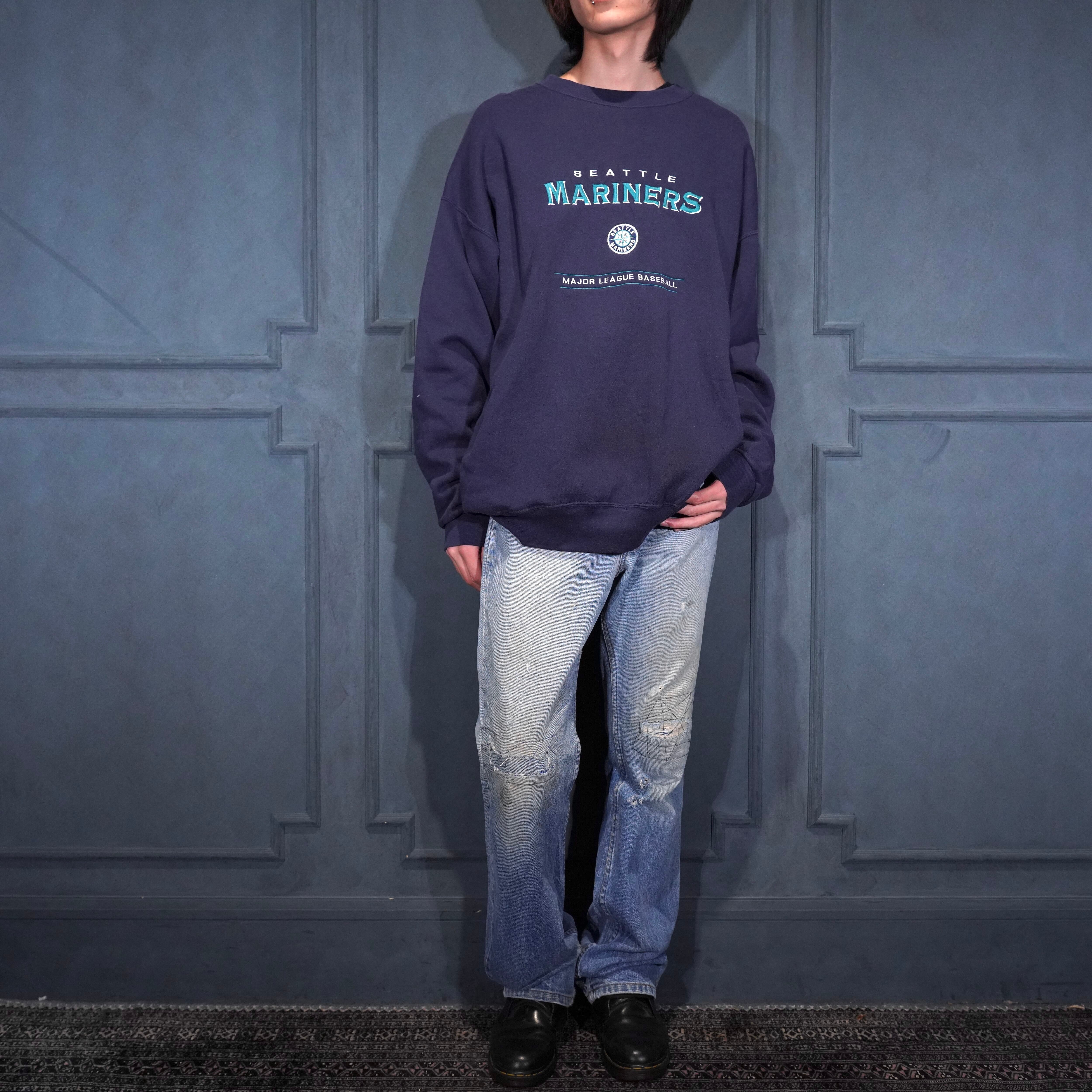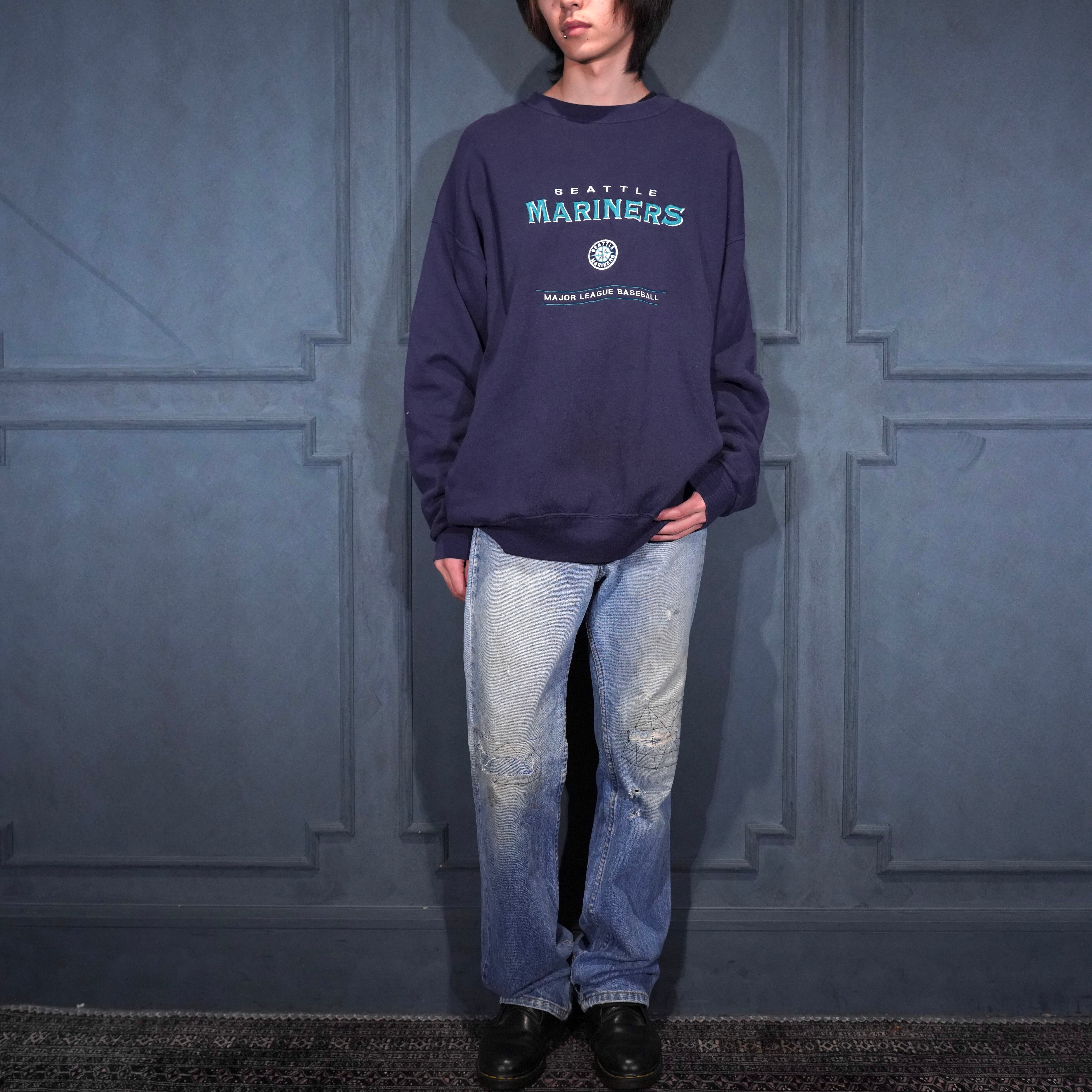 USA VINTAGE Lee SPORT MLB TEAM SEATTLE MARINERS LOGO EMBROIDERY DESIGN SWEAT SHIRT/アメリカ古着リーメジャーリーグチームシアトルマリナーズロゴ刺繍デザインスウェット