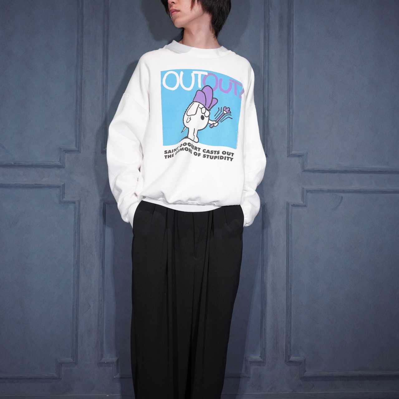 80's USA VINTAGE FRUIT OF THE LOOM HEAVY CHARACTER PRINT DESIGN SWEAT SHIRT/80年代アメリカ古着キャラクタープリントデザインスウェット