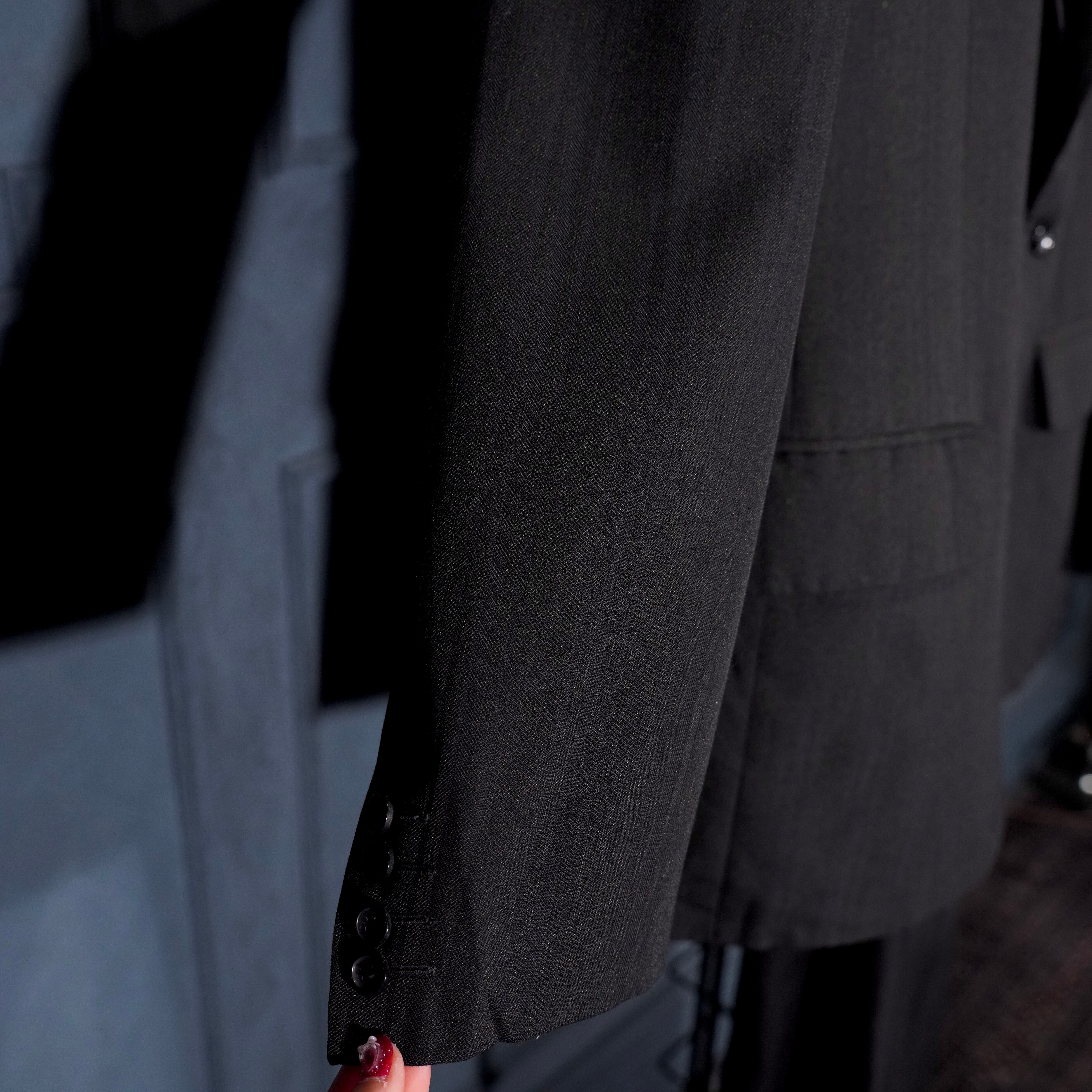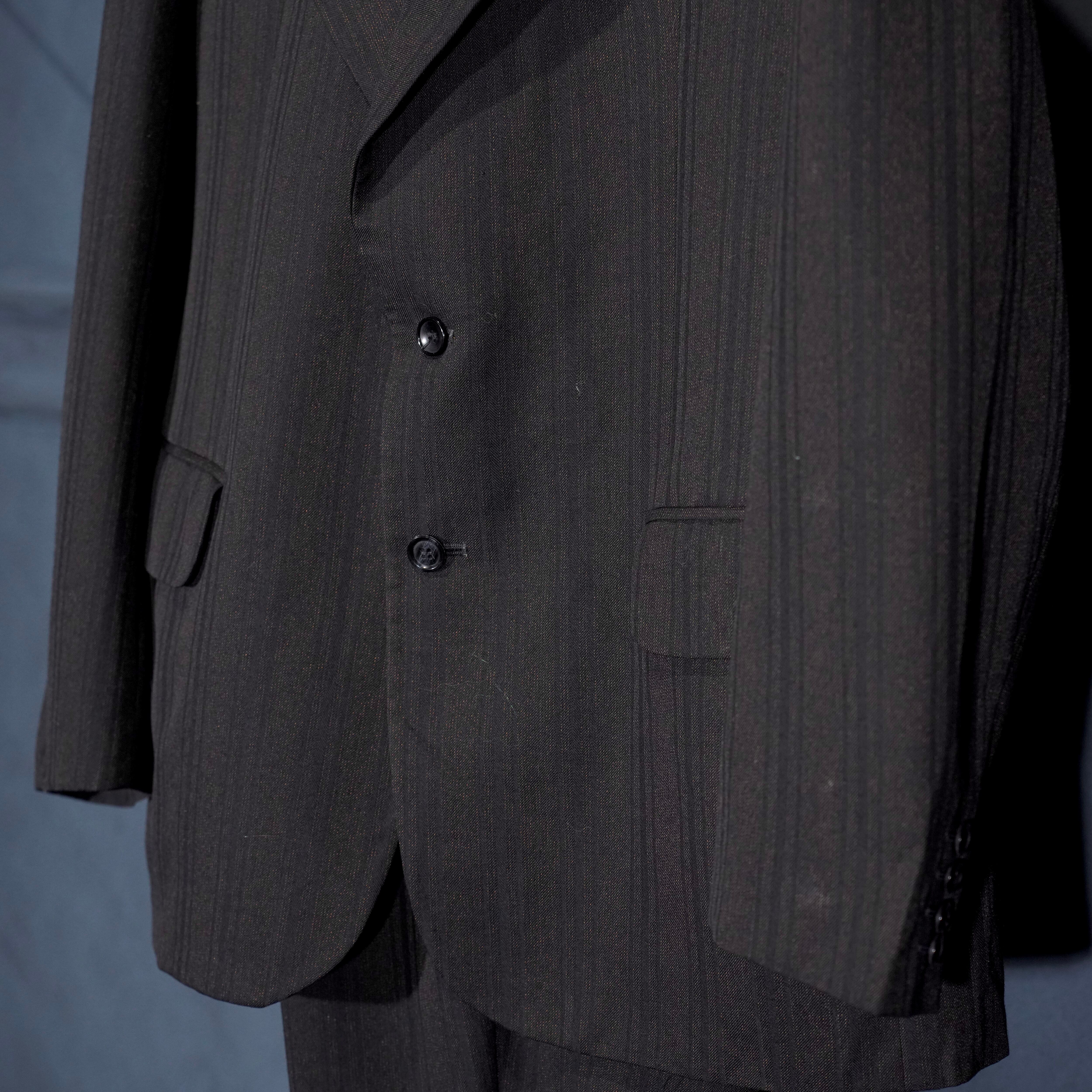 EU VINTAGE VEB Bekleidung Berlin STRIPE PATTERNED WOVEN DESIGN WOOL FLARE SLACKS PANTS SET UP SUIT/ヨーロッパ古着ストライプ柄織デザインウールフレアスラックスセットアップスーツ