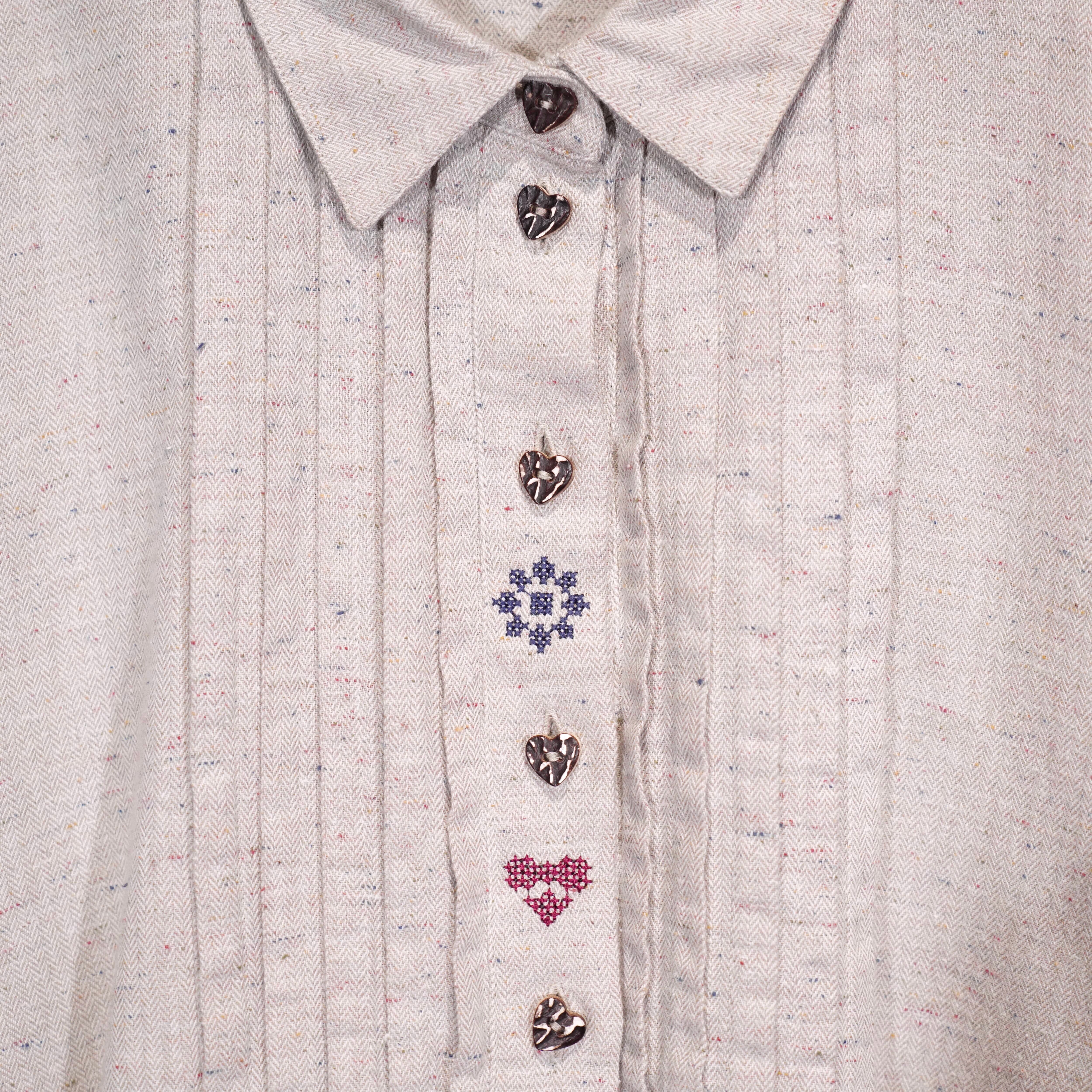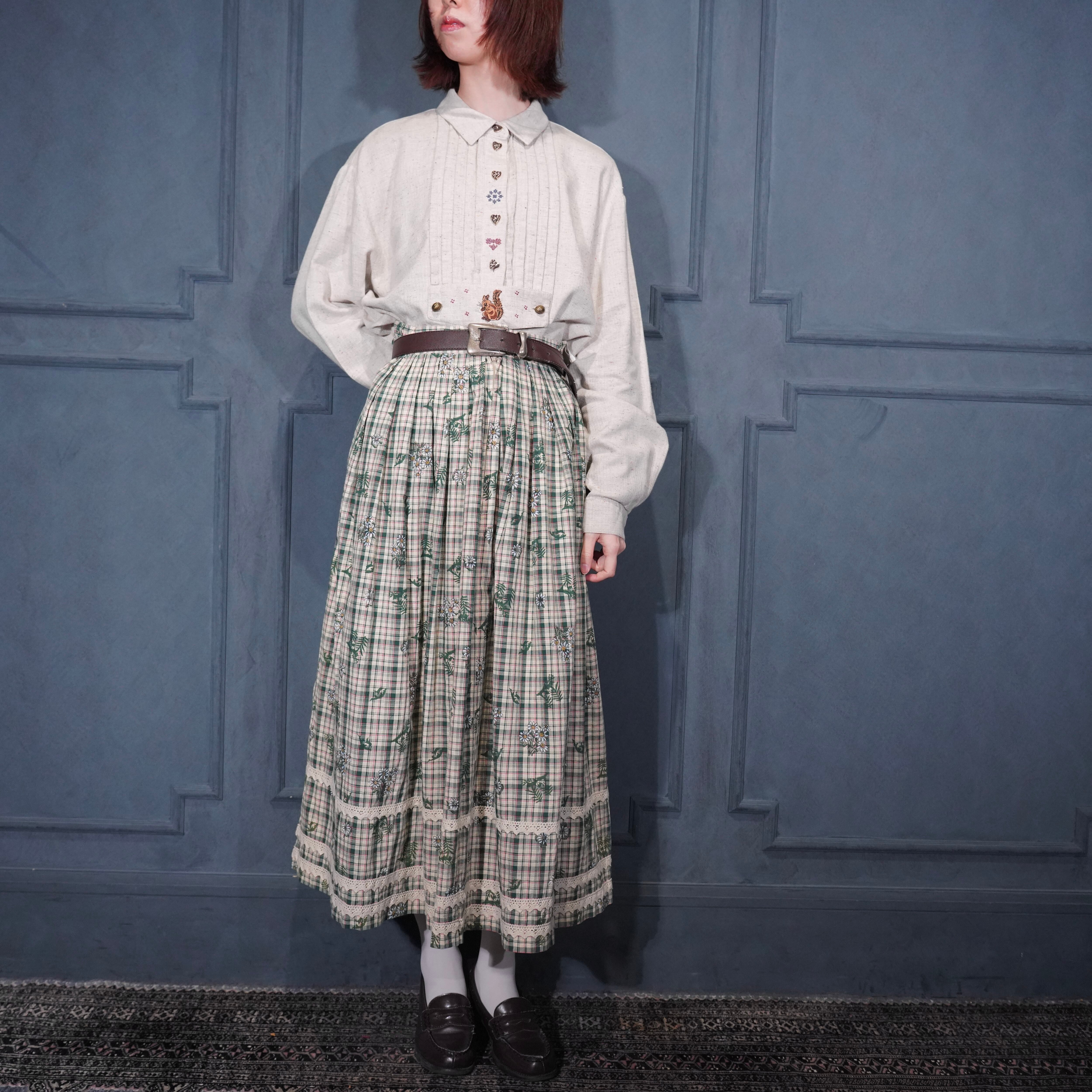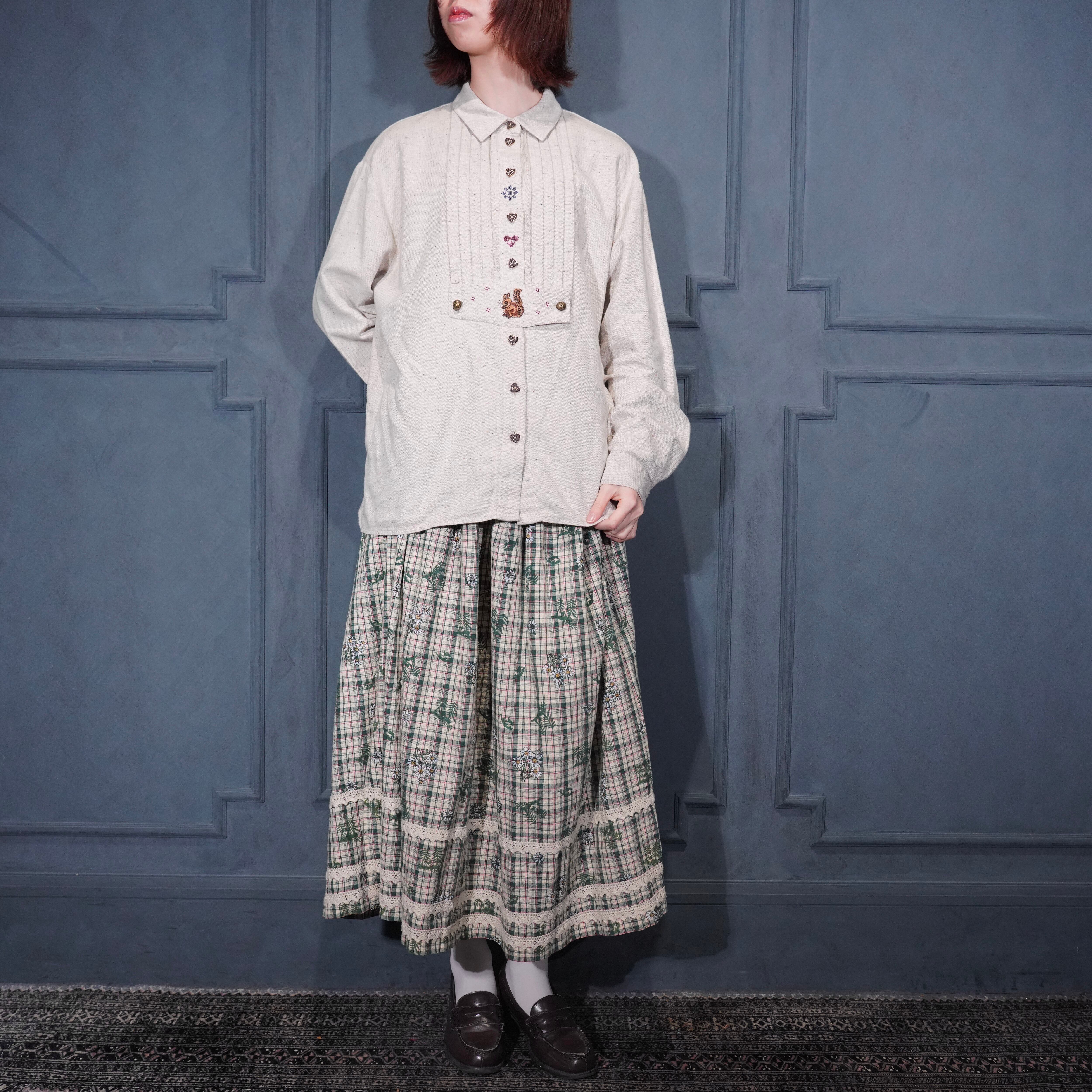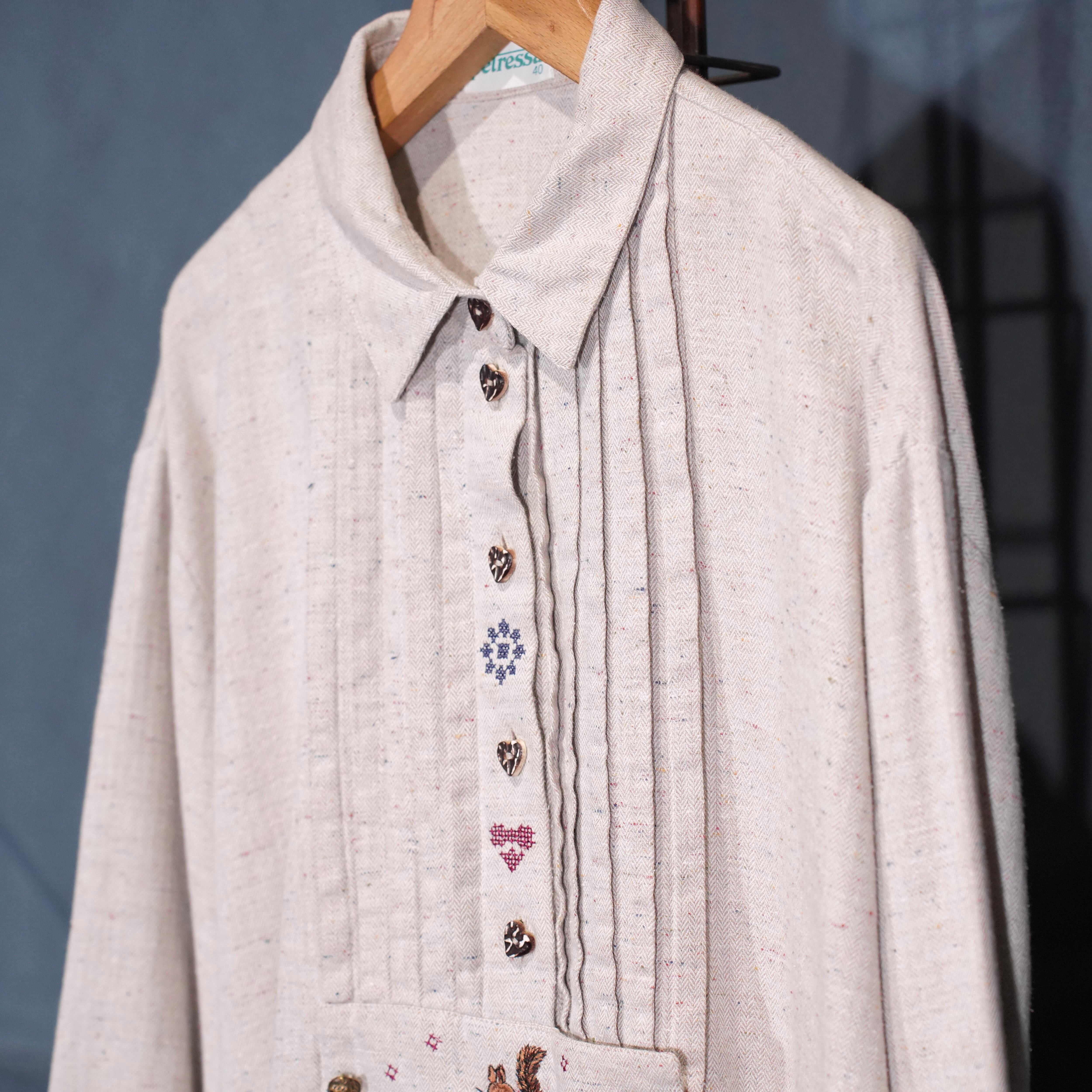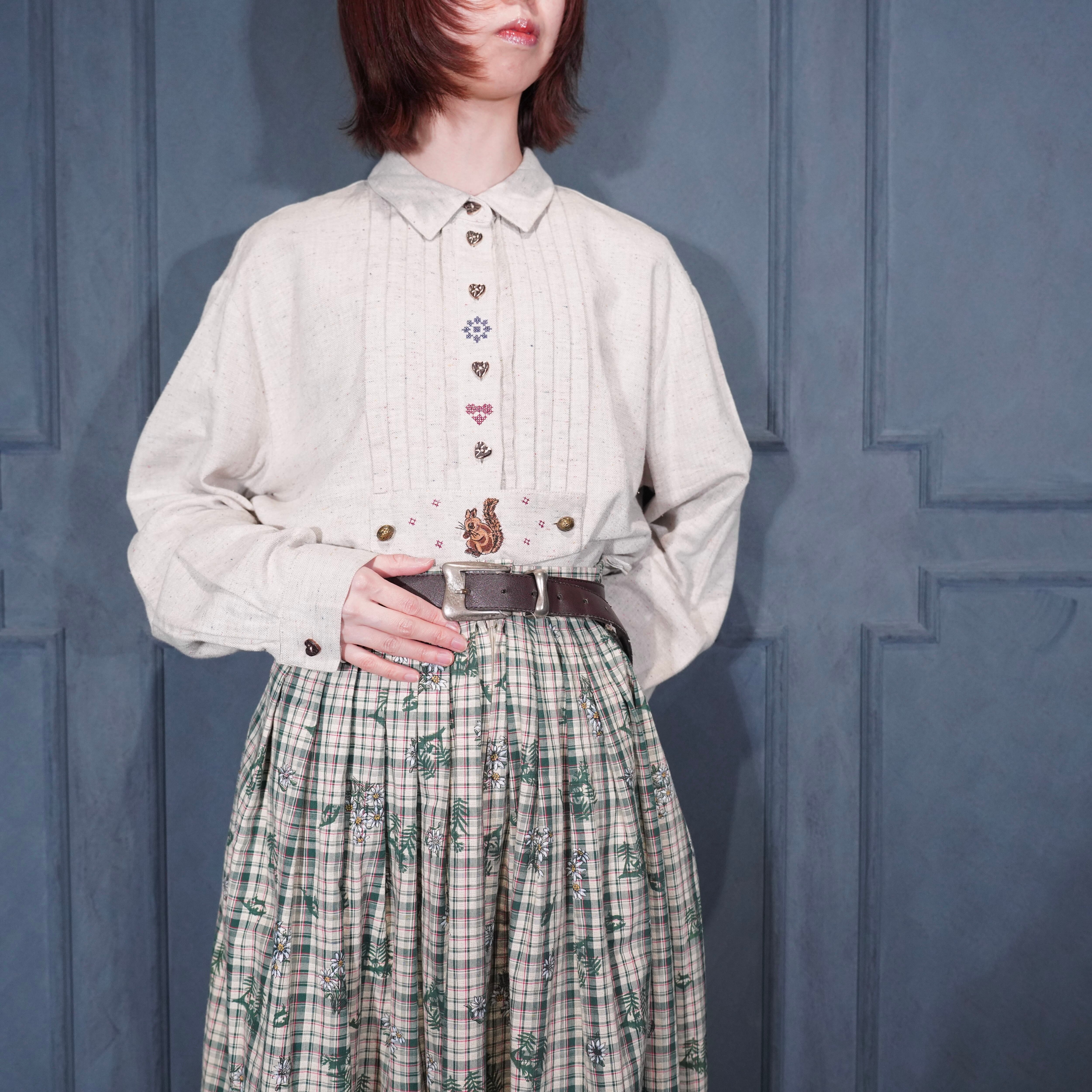 EU VINTAGE petressa SQUIRREL EMBROIDERY HEART BUTTON DESIGN TYROLEAN SHIRT/ヨーロッパ古着リス刺繍ハートボタンデザインチロリアンシャツ
