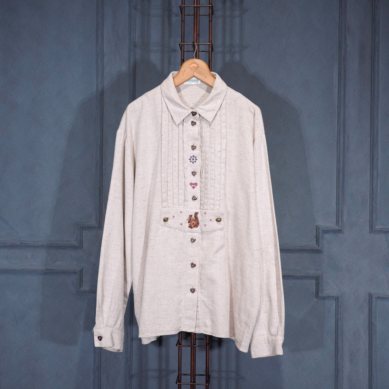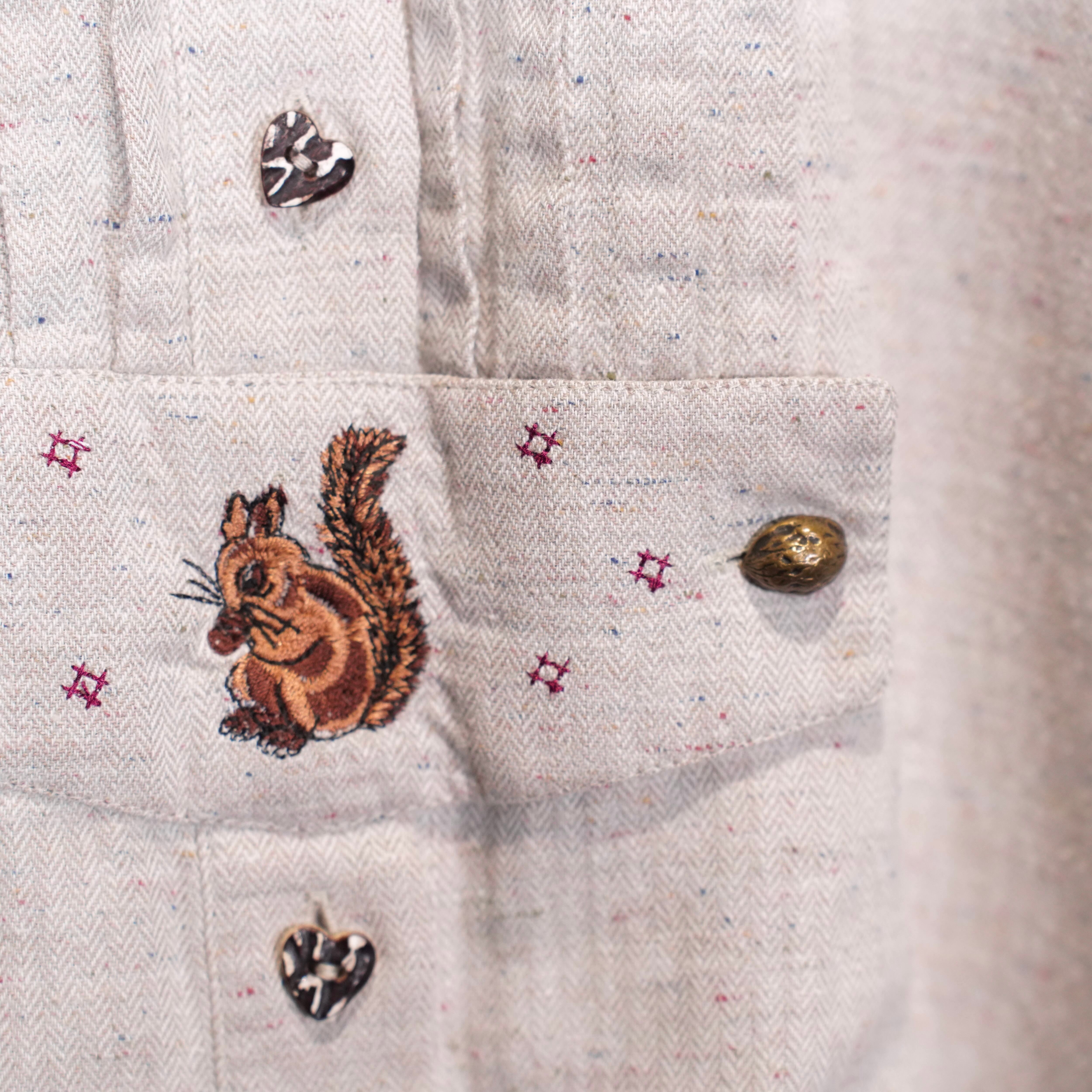 お客様専用ページ EU VINTAGE petressa SQUIRREL EMBROIDERY HEART BUTTON DESIGN TYROLEAN SHIRT/ヨーロッパ古着リス刺繍ハートボタンデザインチロリアンシャツ