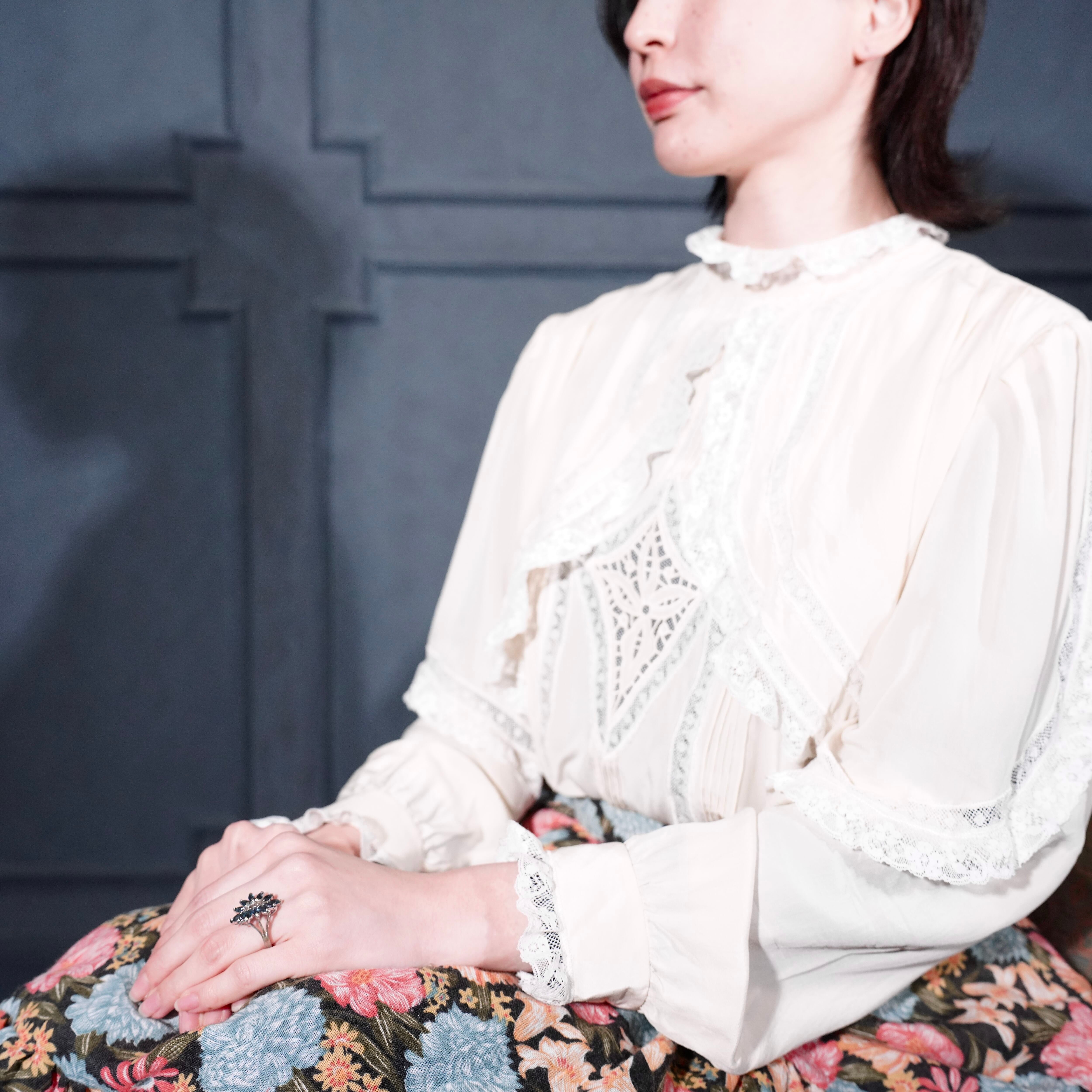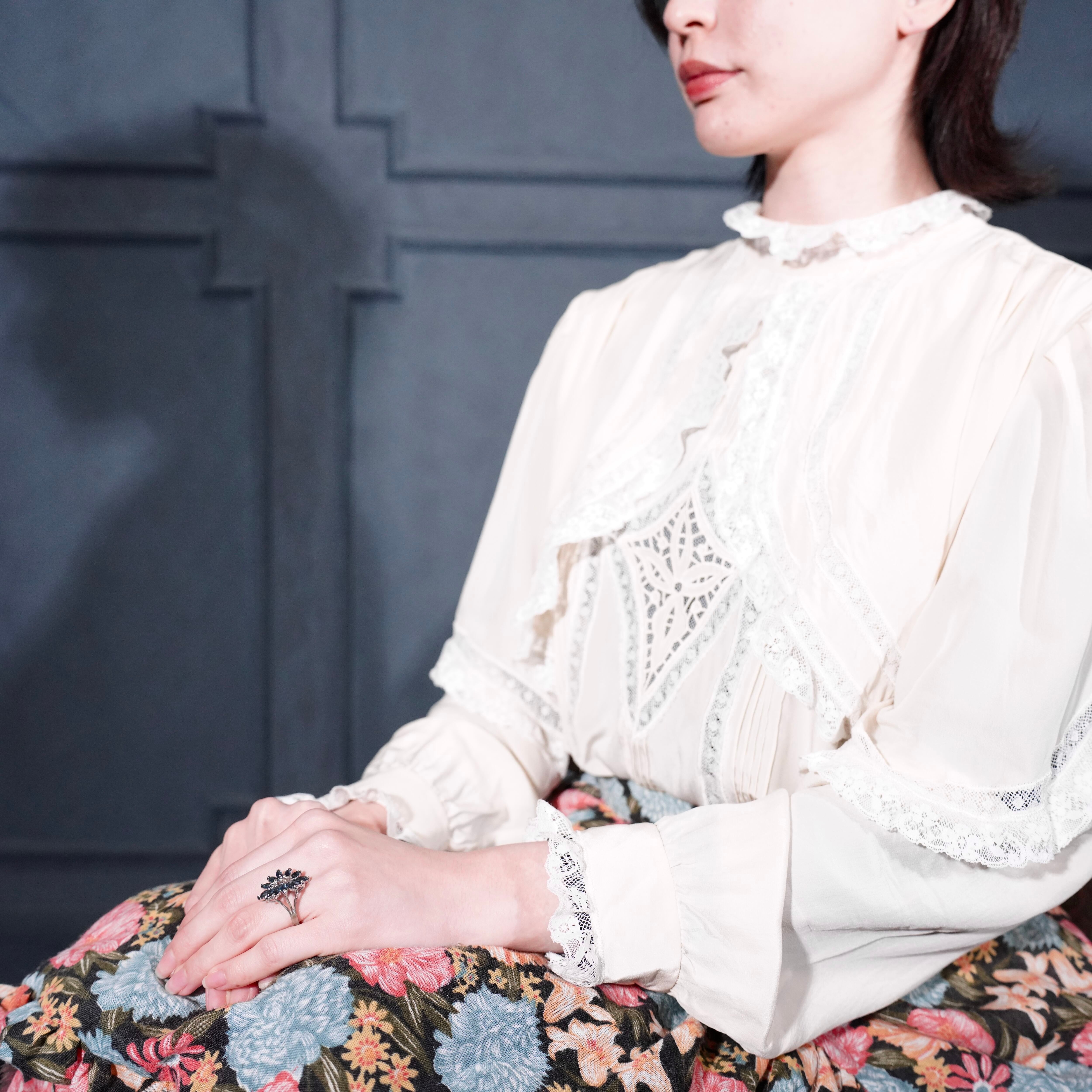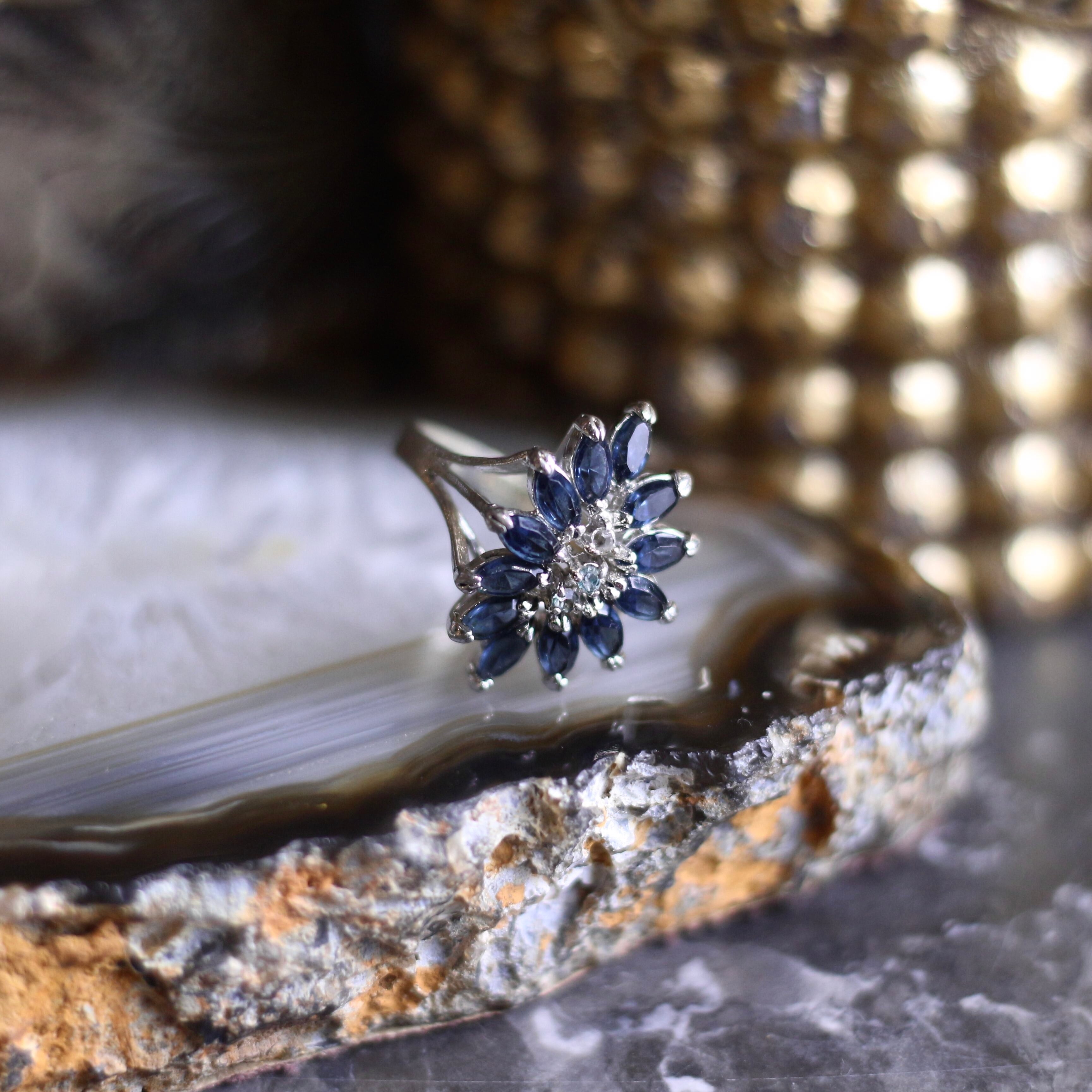 USA VINTAGE CLEAR STONE FLOWER DESIGN RING/アメリカ古着クリアストーンお花デザインリング