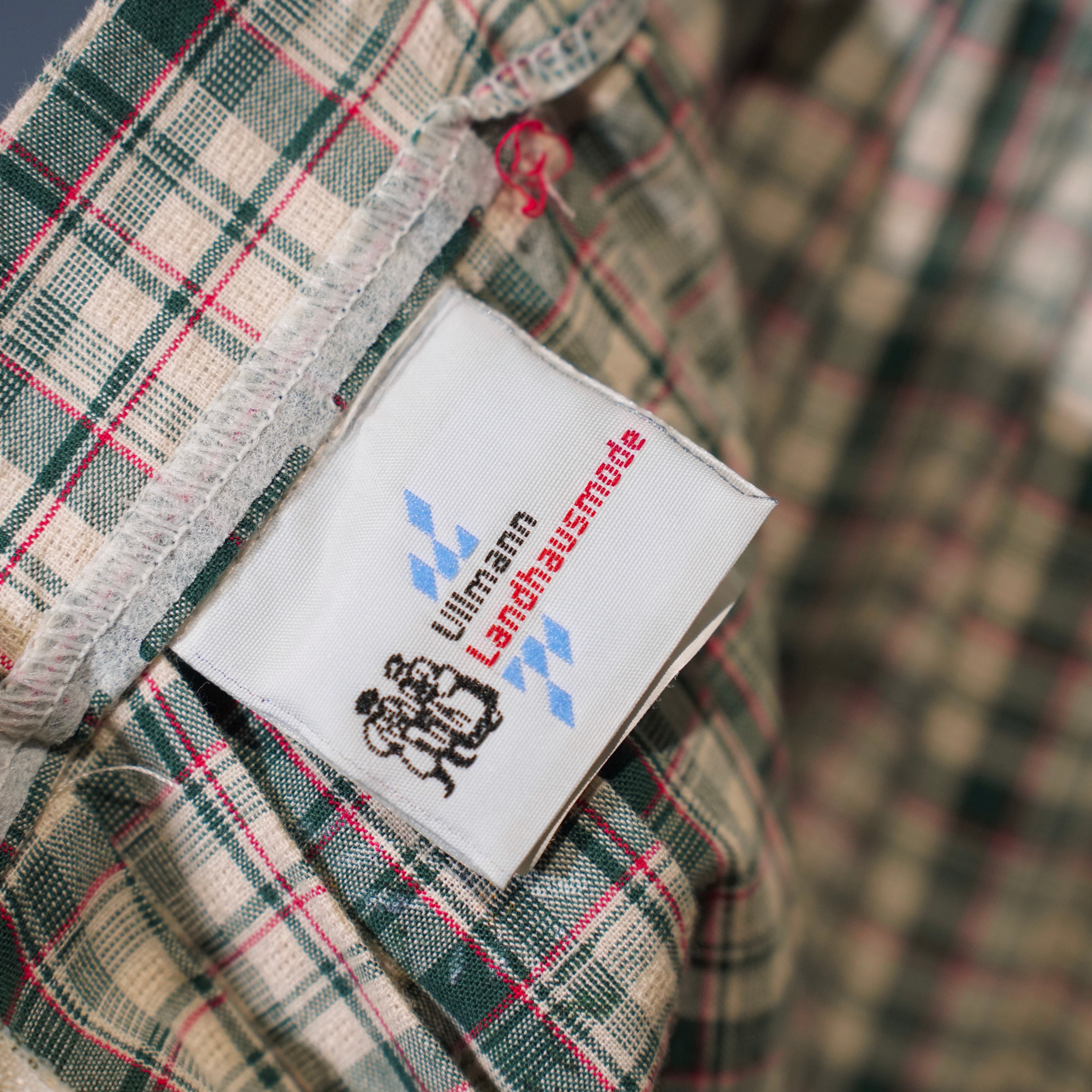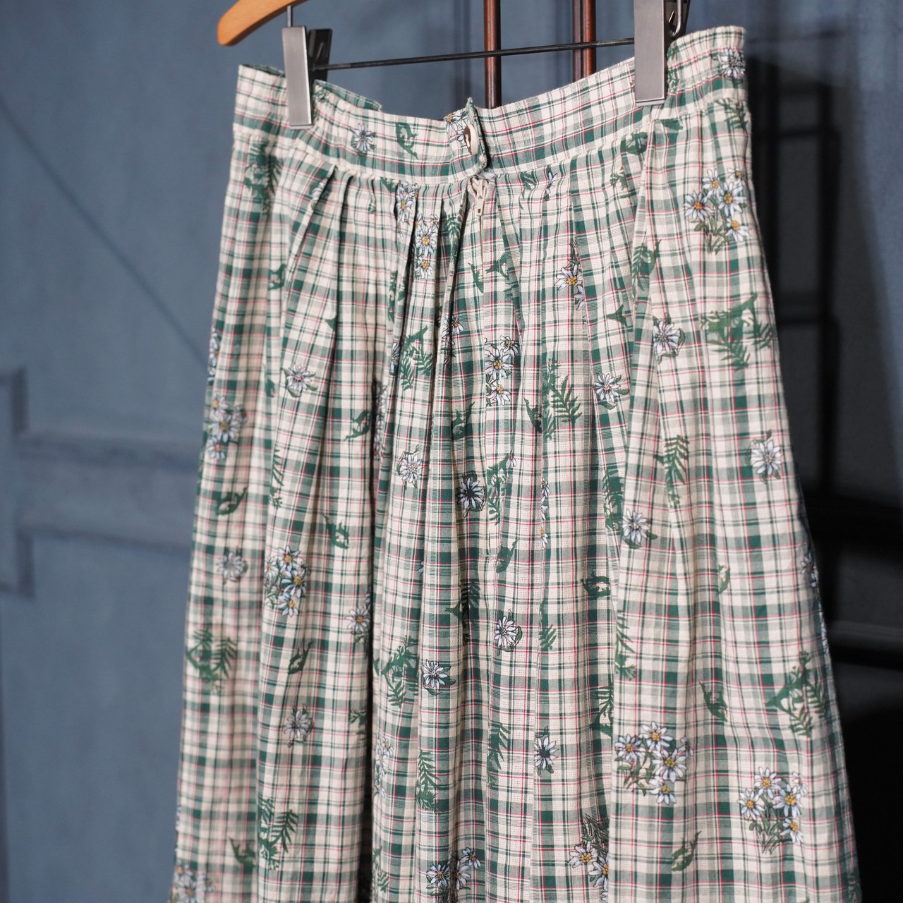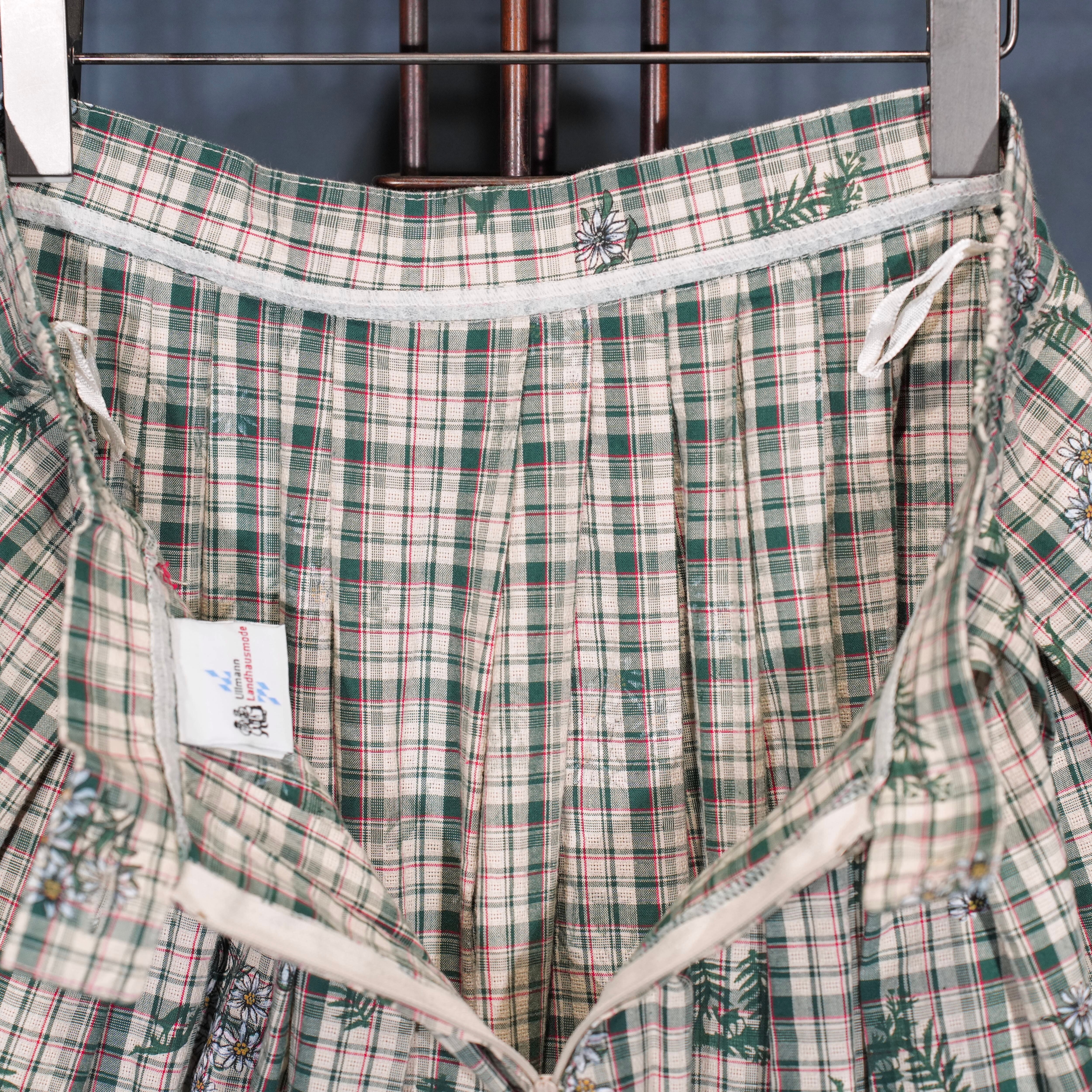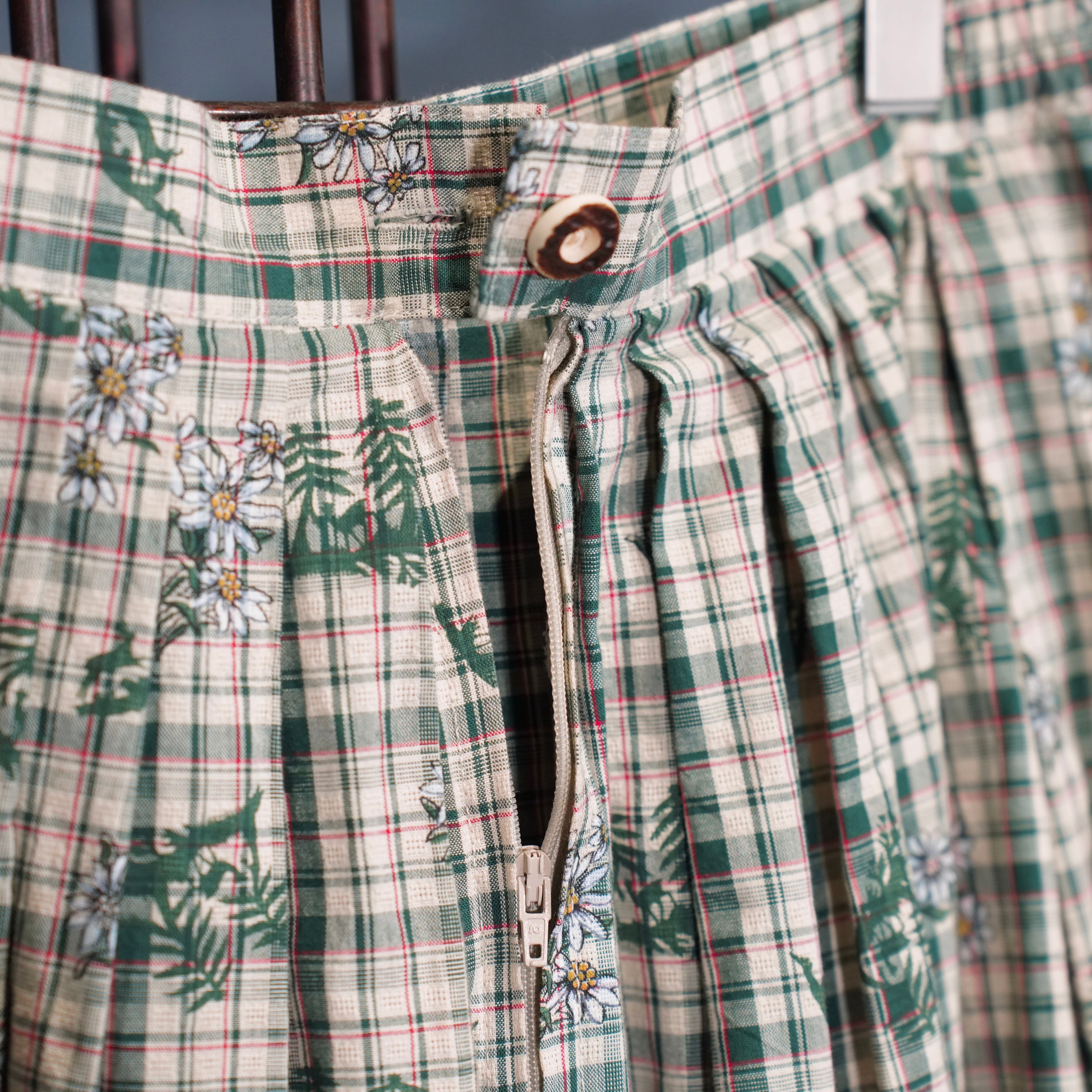 EU VINTAGE Ullmann Landhausmode CHECK PATTERNED FLOWER EMBROIDERY LACE DESIGN LONG SKIRT/ヨーロッパ古着チェック柄お花刺繍レースデザインロングスカート