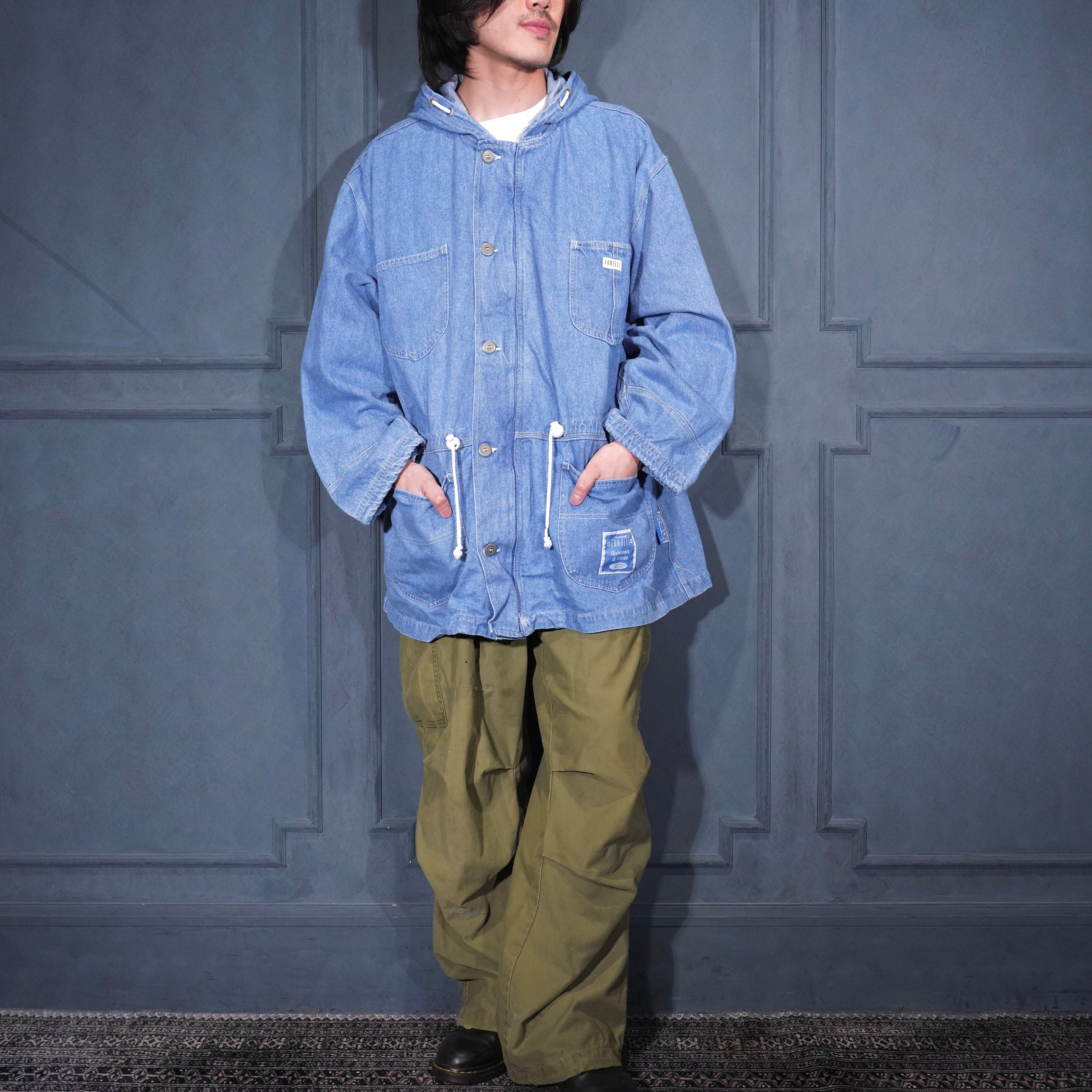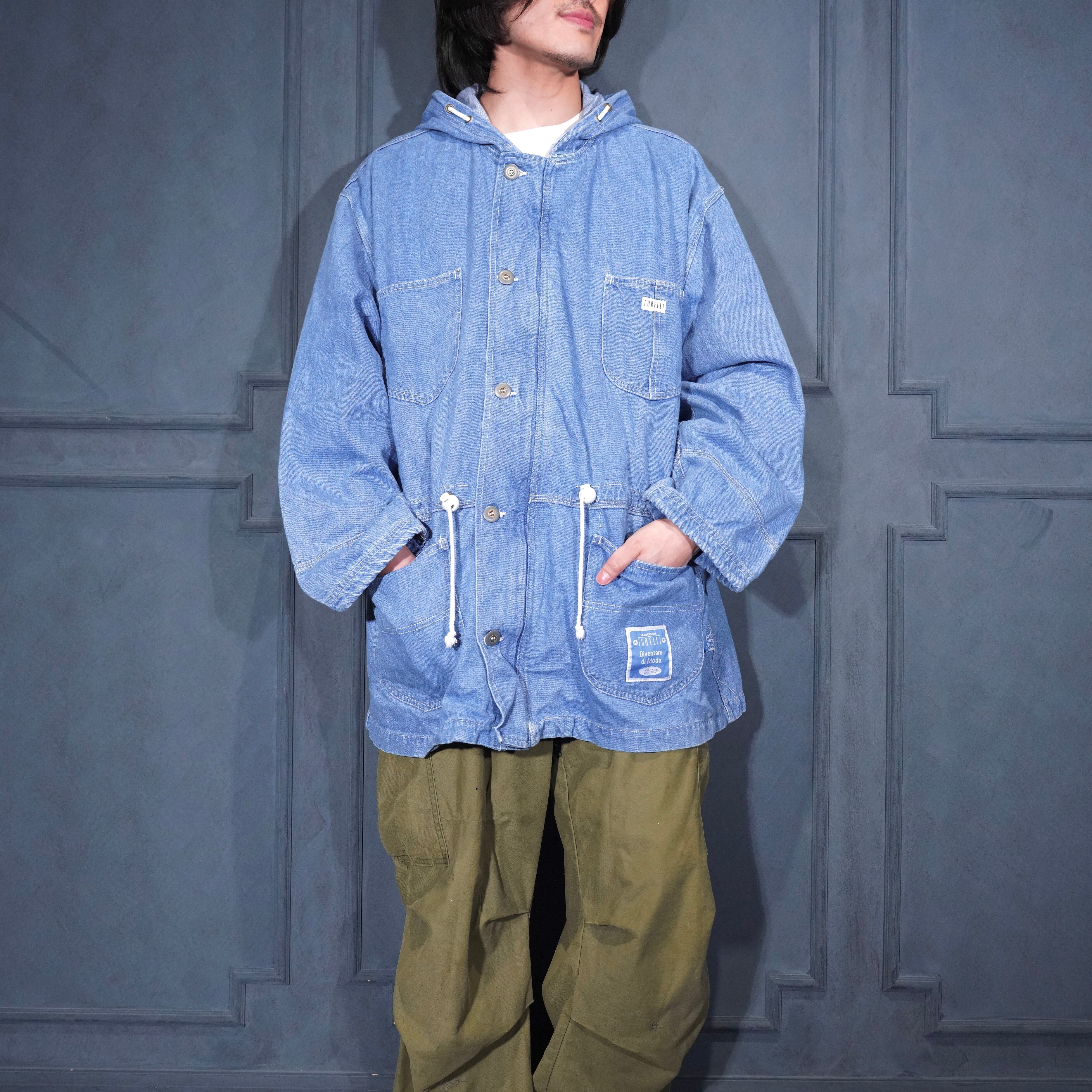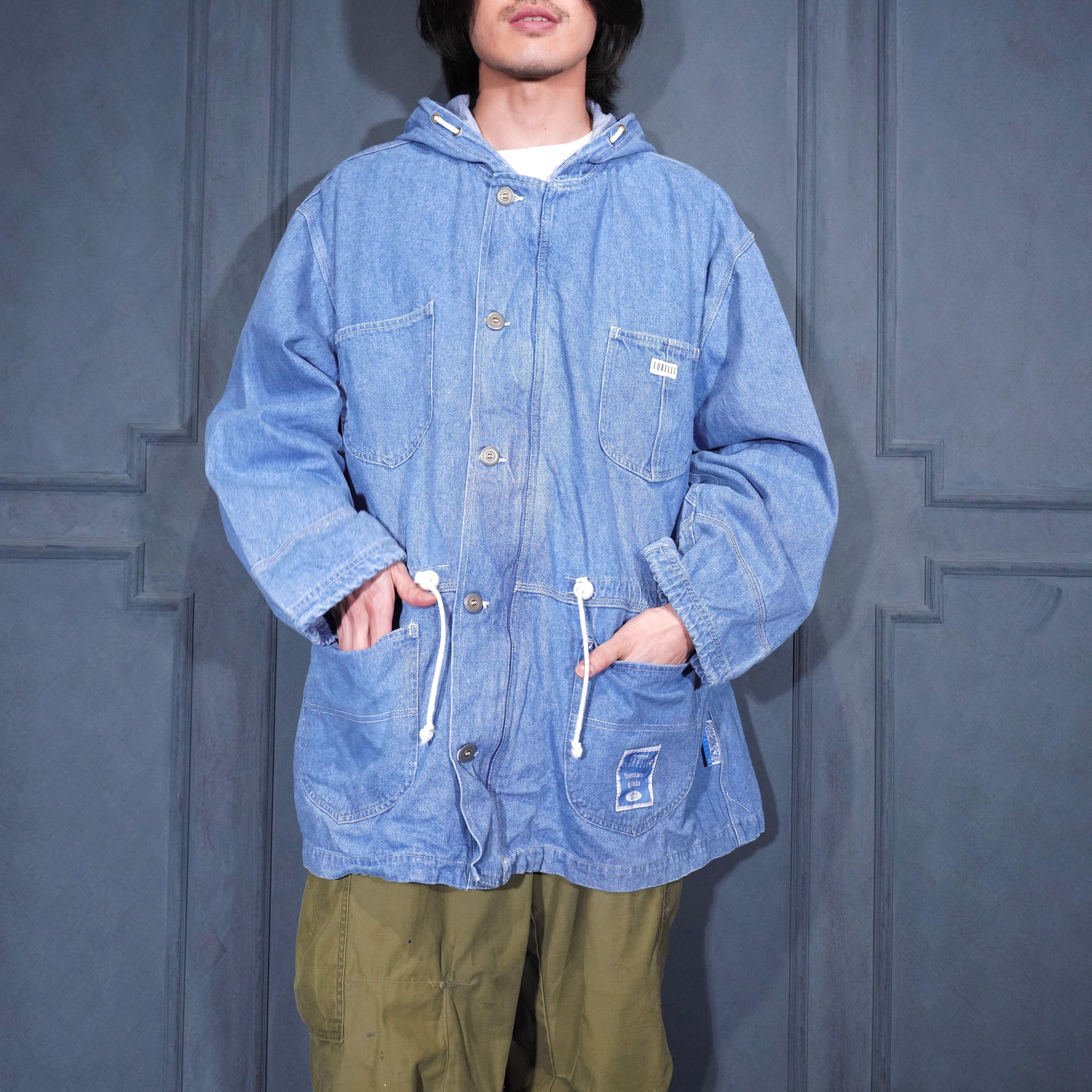 USA VINTAGE FORELLI DENIM HOODIE HALF COAT/アメリカ古着デニムフーディハーフコート