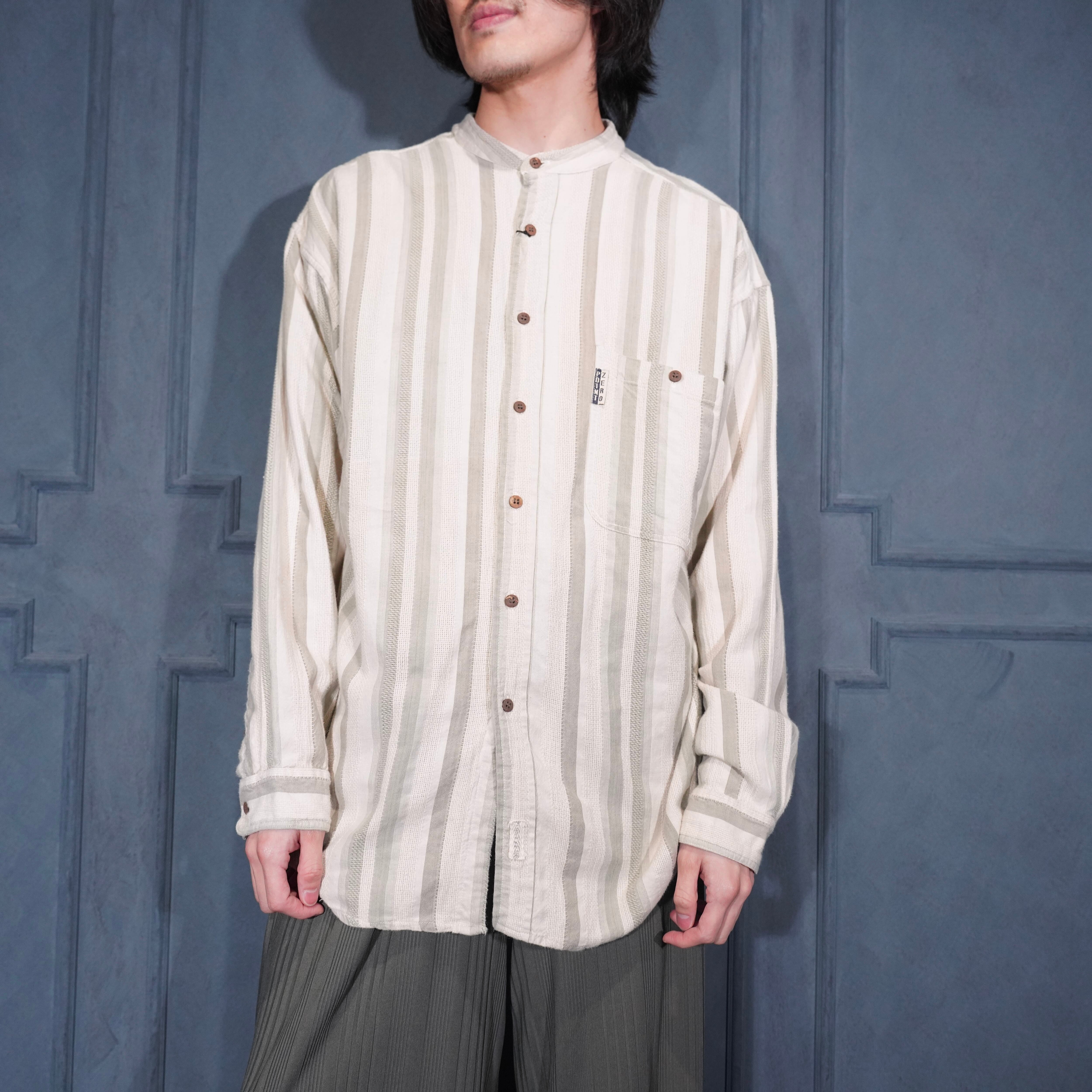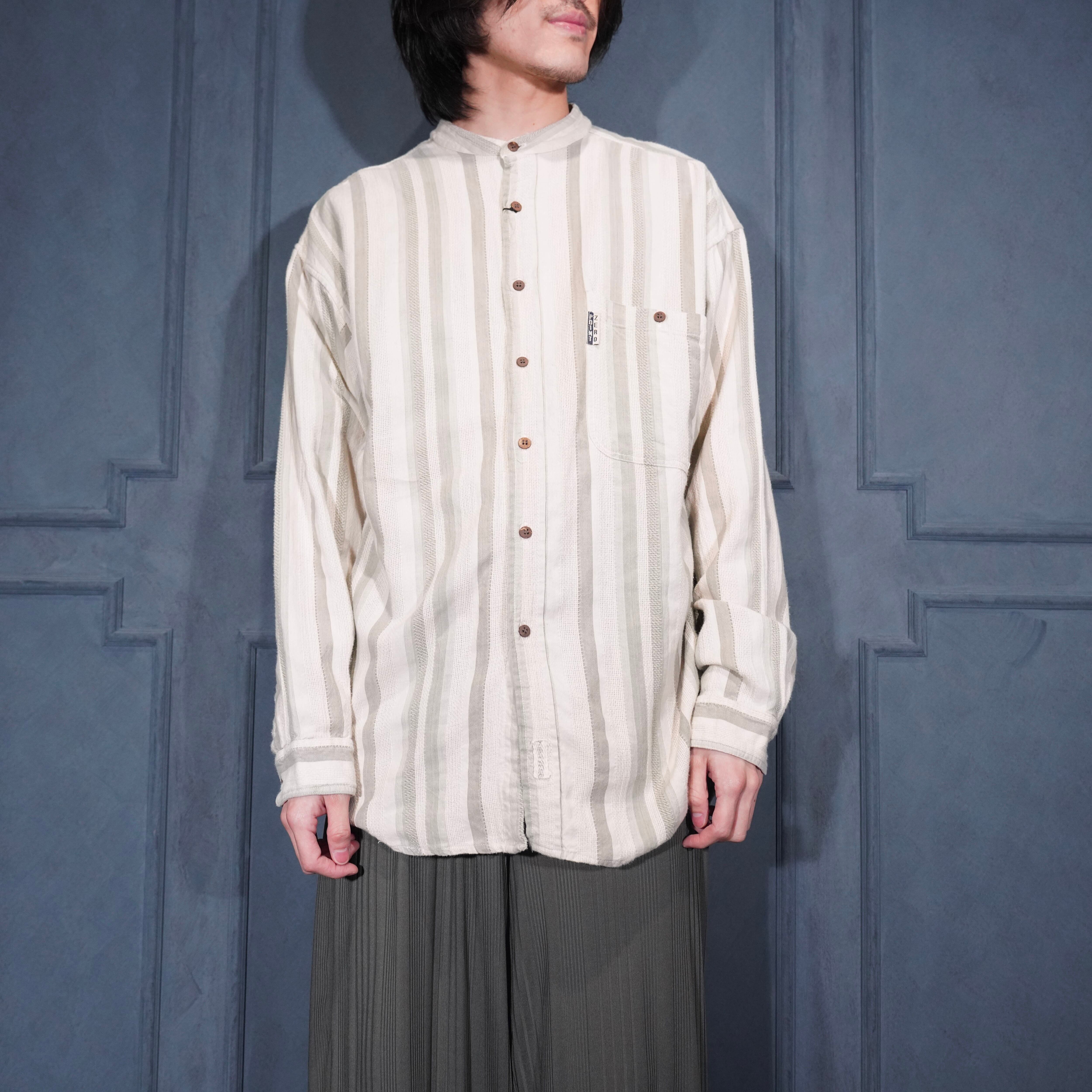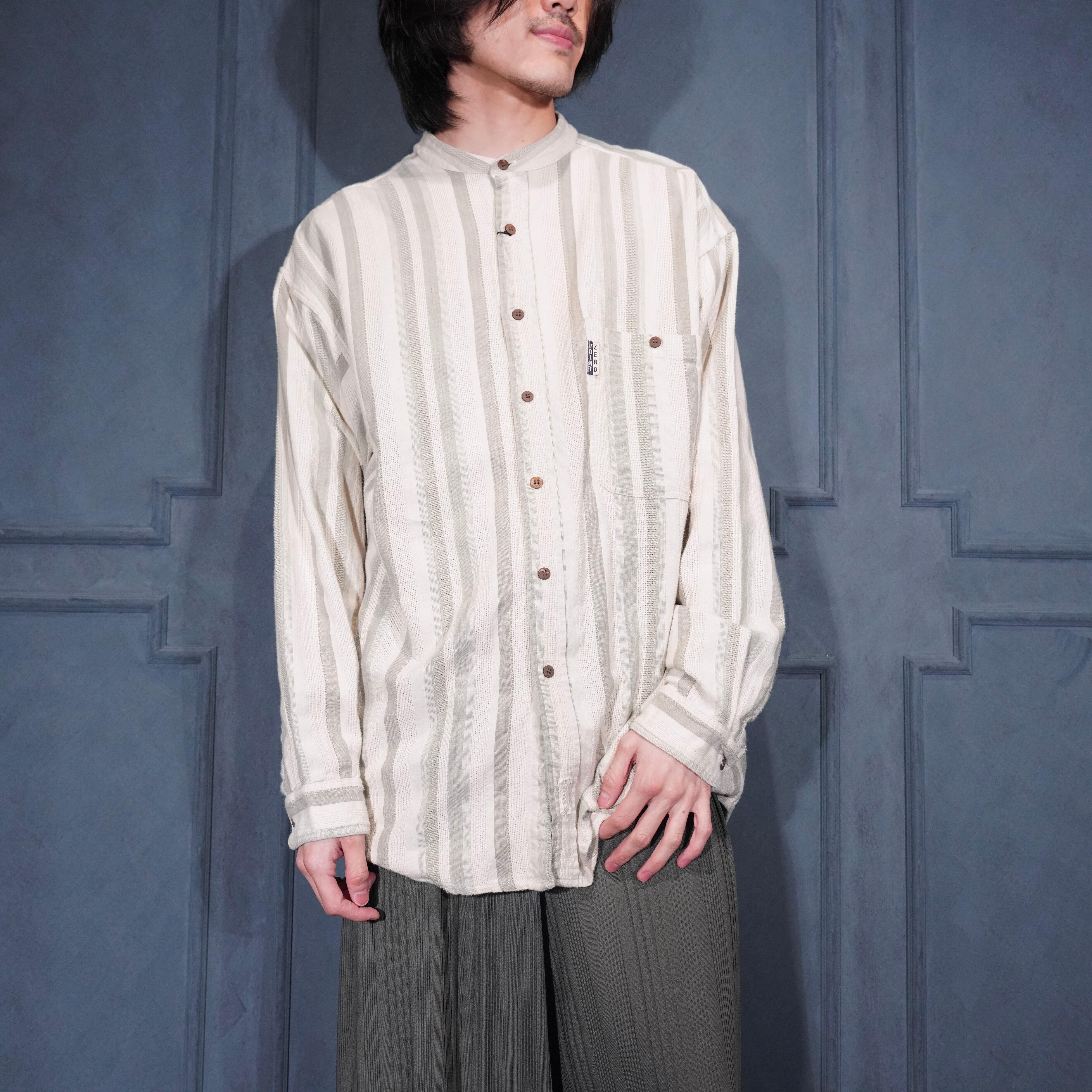 USA VINTAGE POINT ZERO BAND COLLAR STRIPE PATTERNED WOVEN DESIGN SHIRT/アメリカ古着バンドカラー織ストライプ柄デザインシャツ