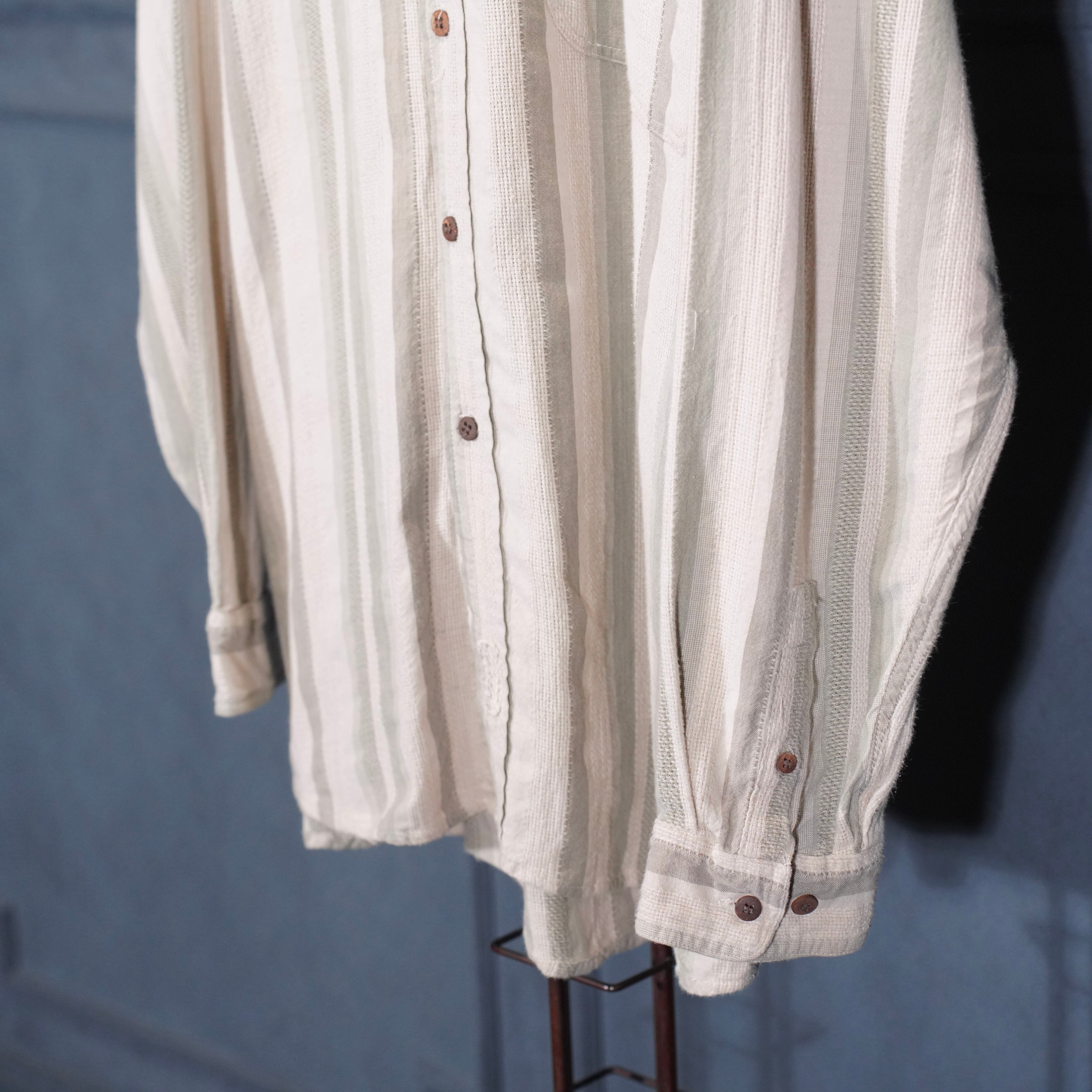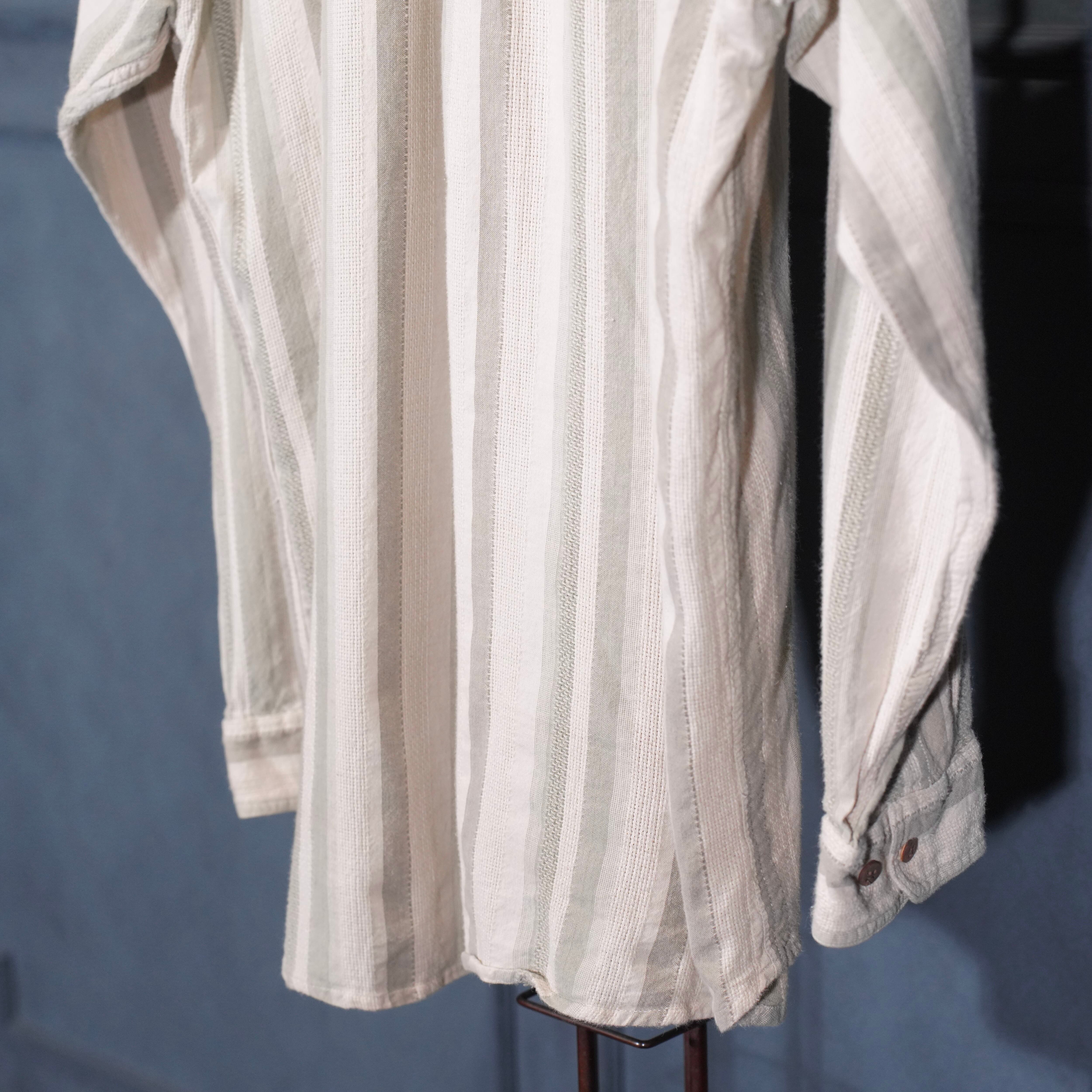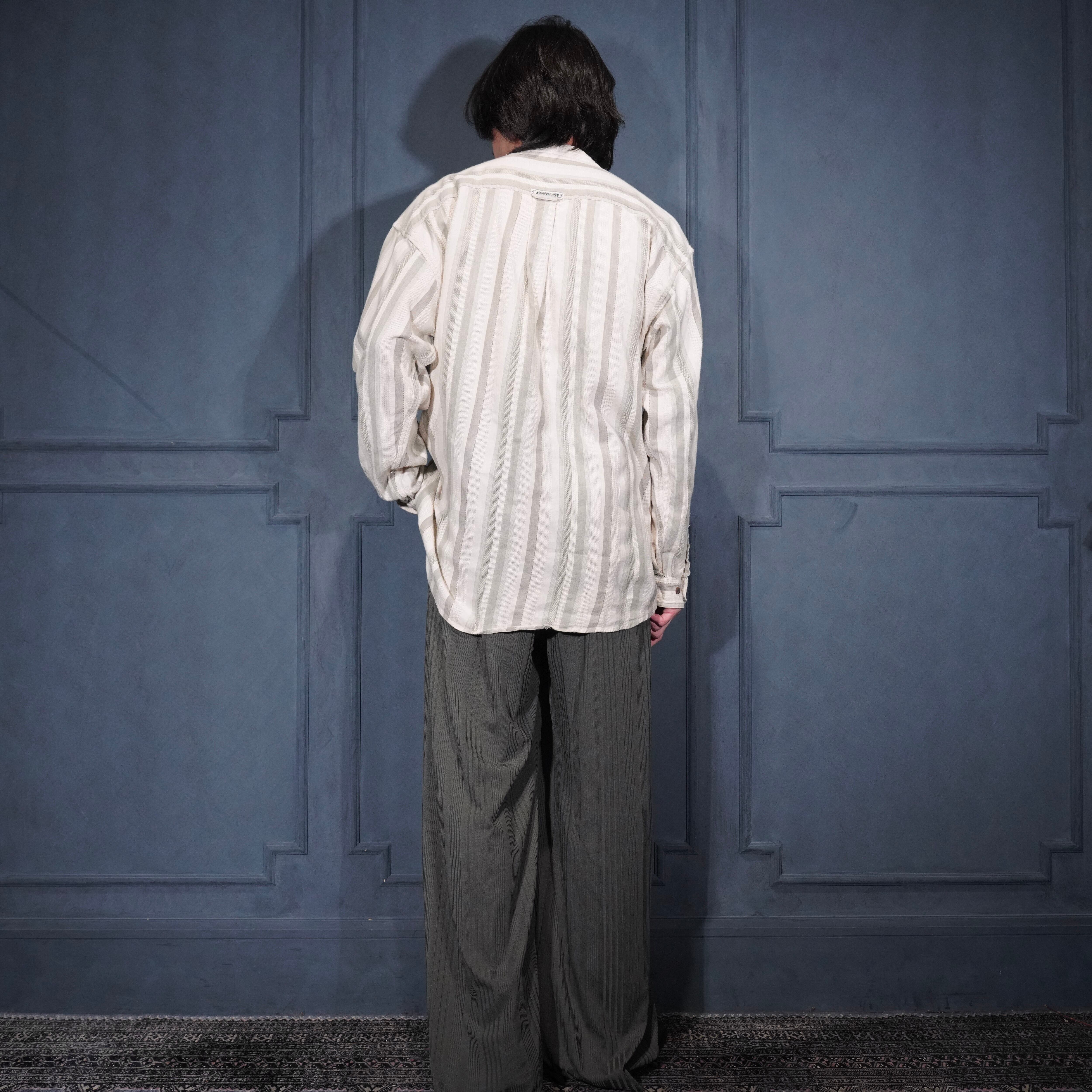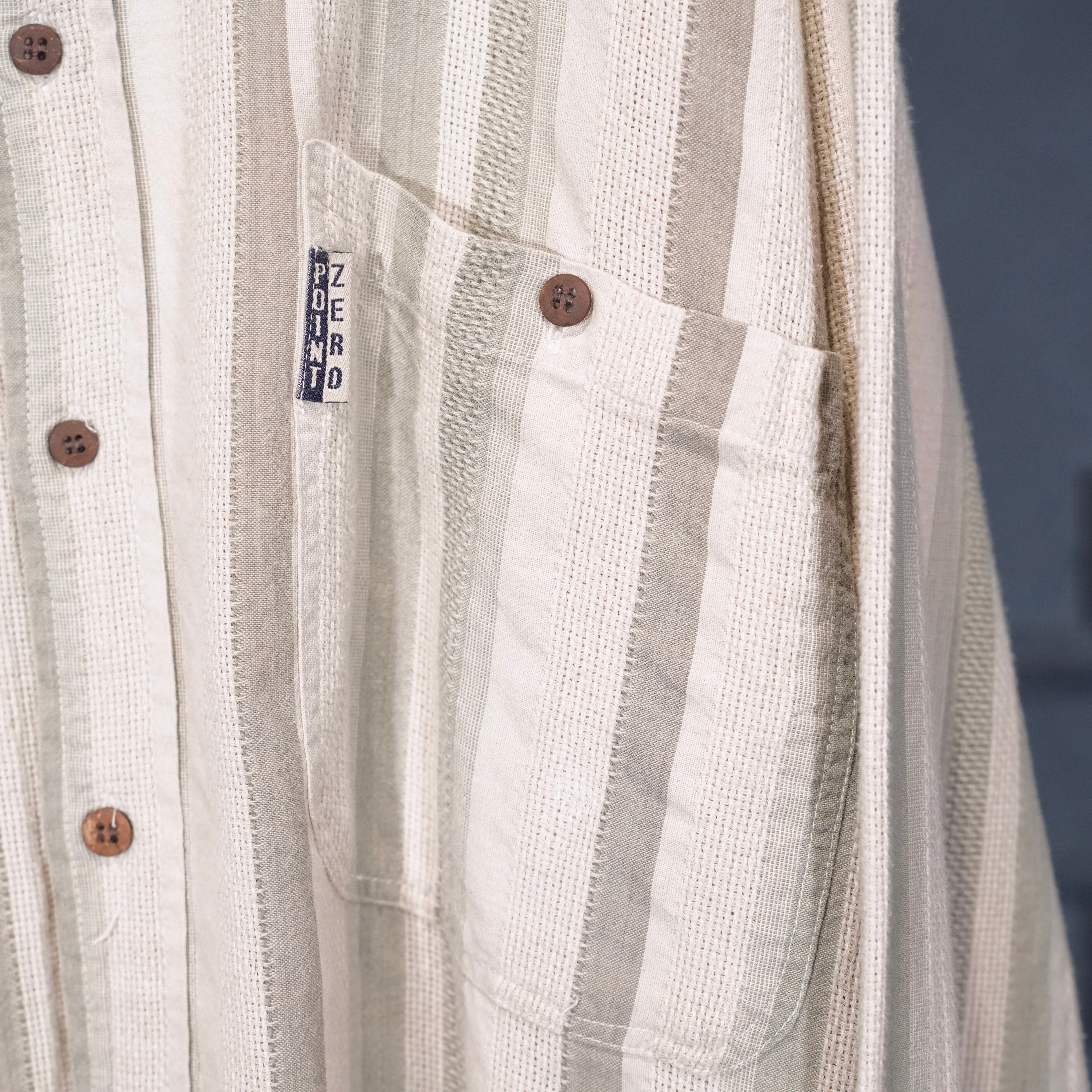 USA VINTAGE POINT ZERO BAND COLLAR STRIPE PATTERNED WOVEN DESIGN SHIRT/アメリカ古着バンドカラー織ストライプ柄デザインシャツ