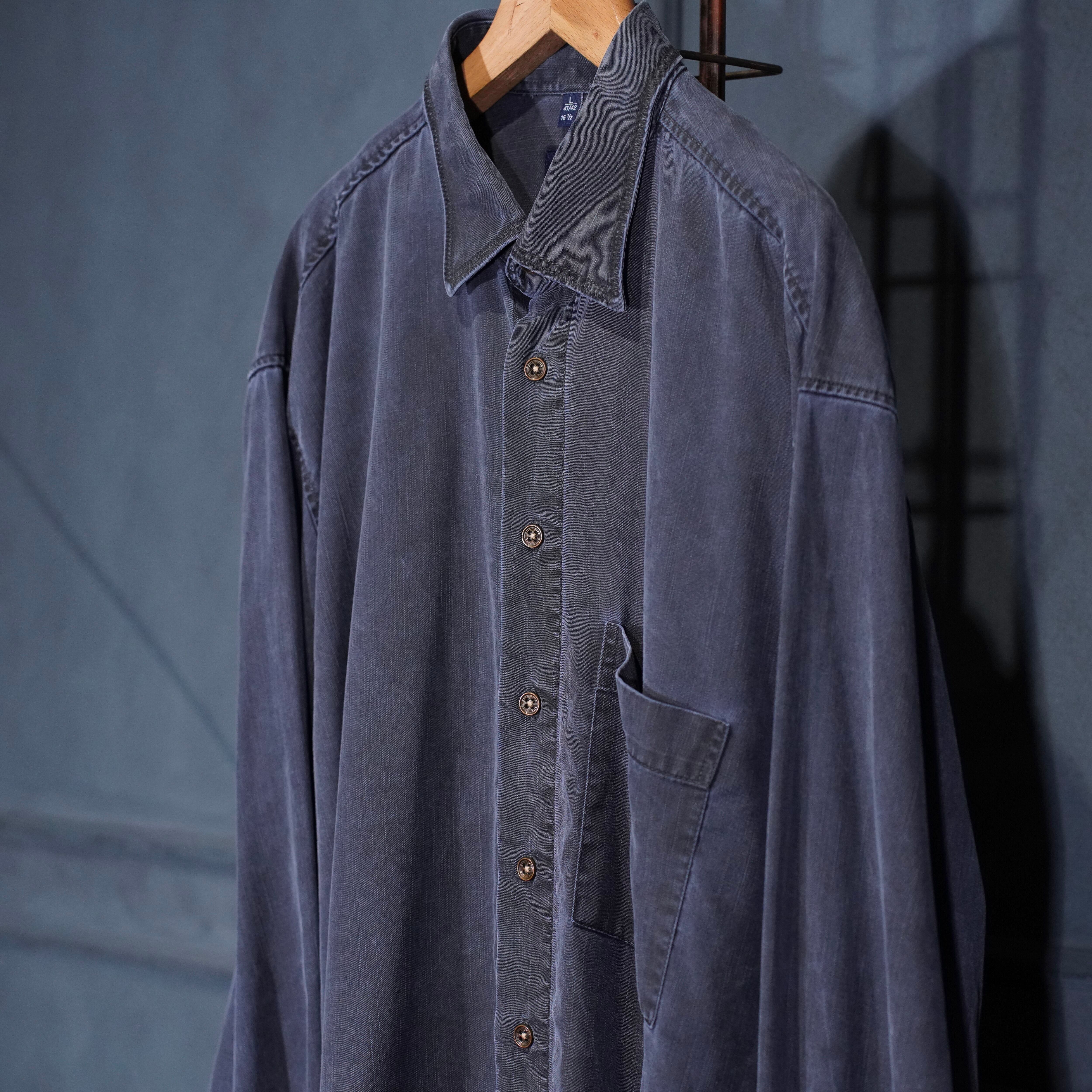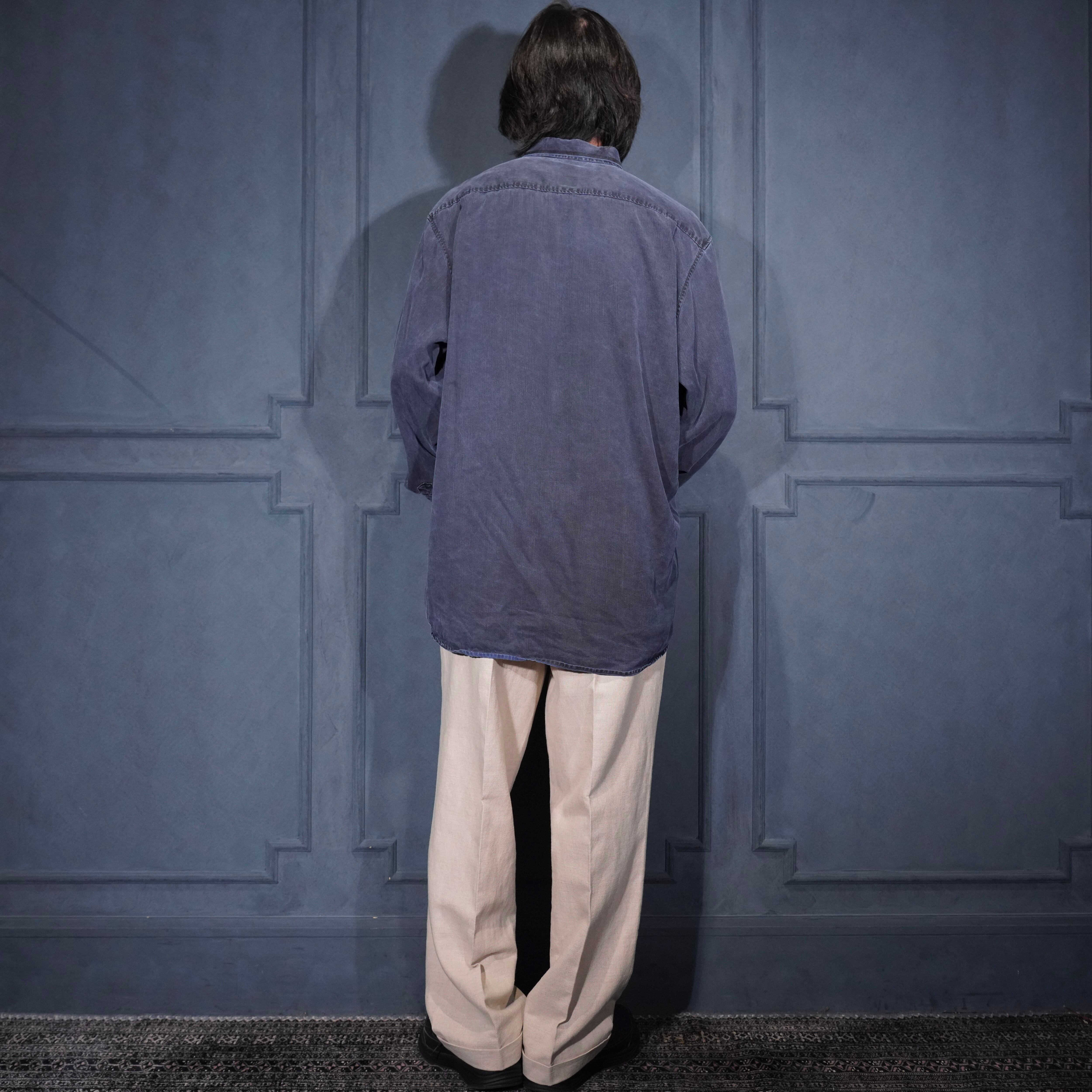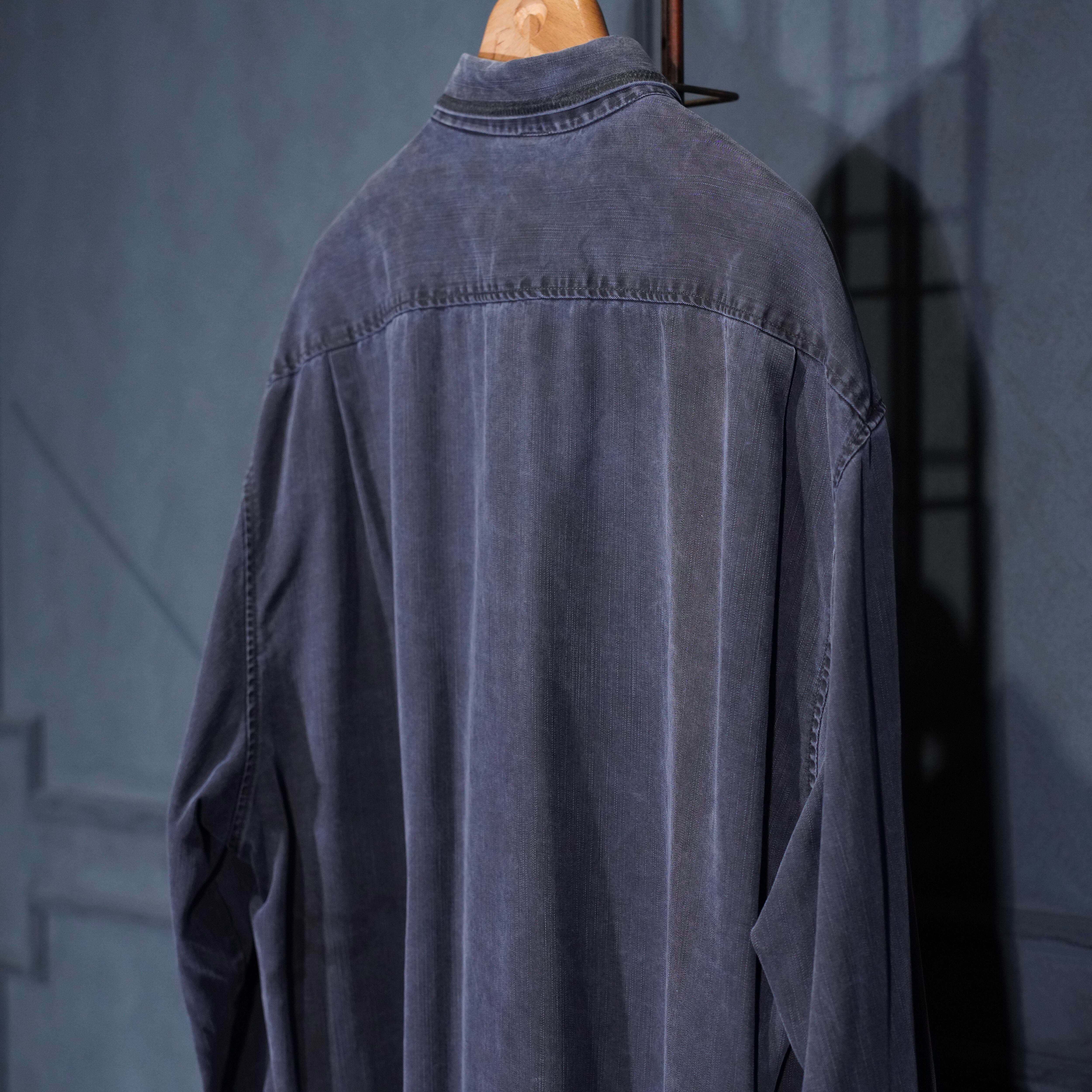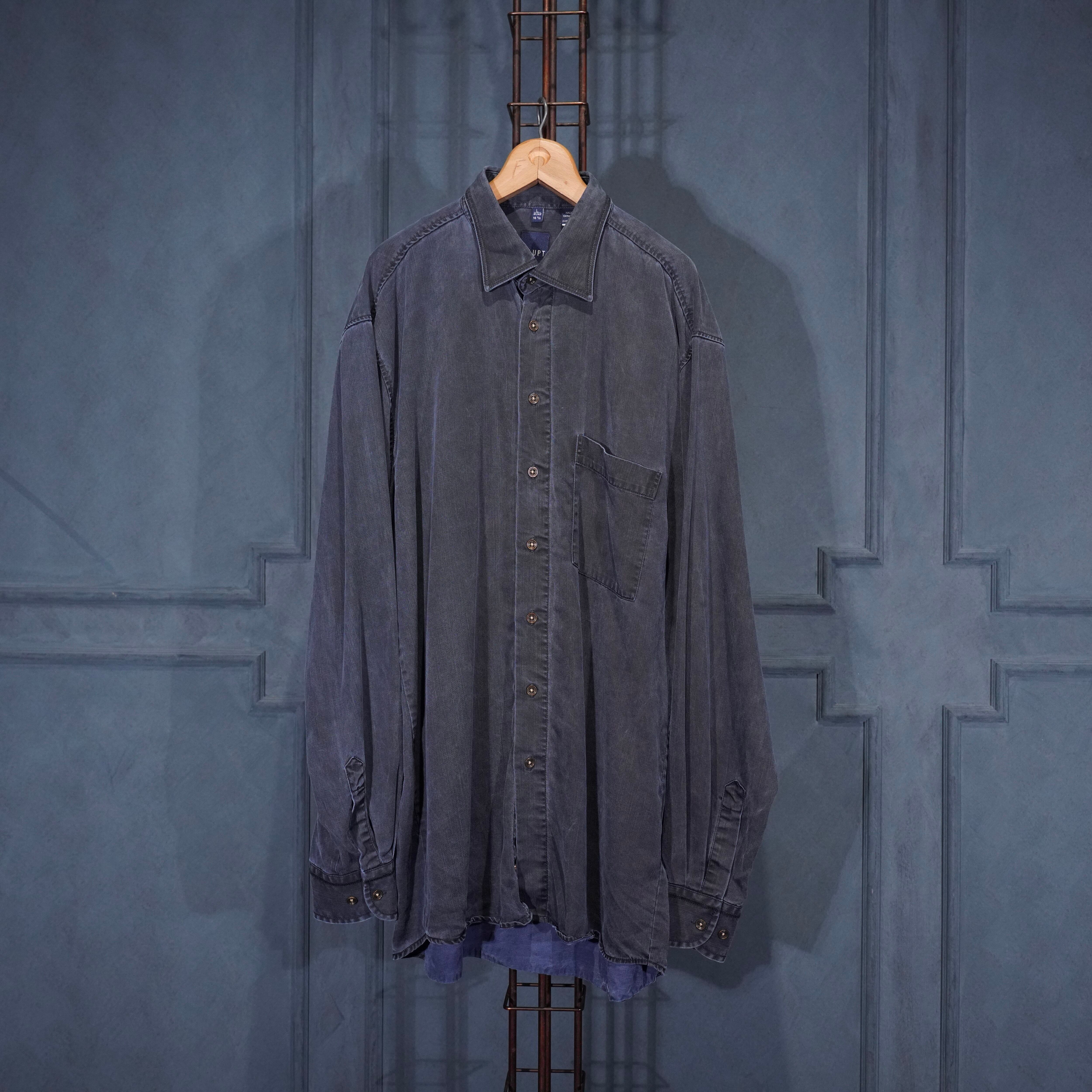 USA VINTAGE HAUPT GERMANY NAVY COLOR FADED DESIGN LINEN SHIRT/アメリカ古着ネイビーカラーフェードデザインリネンシャツ