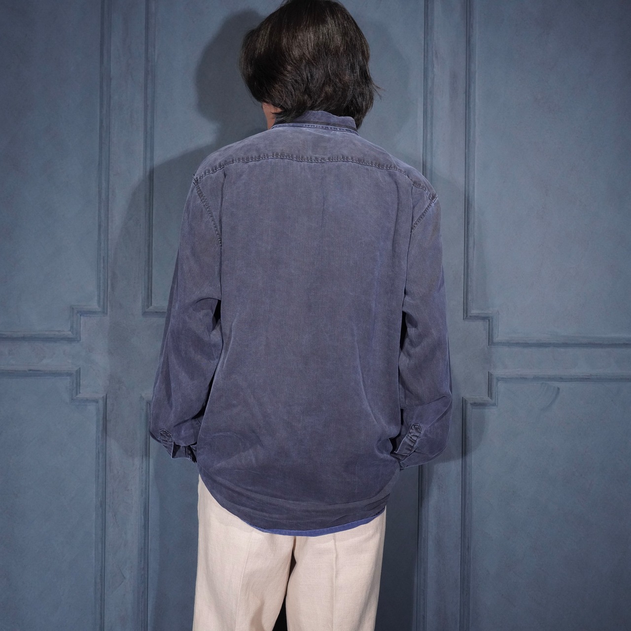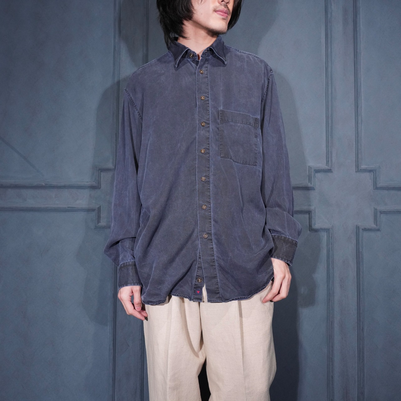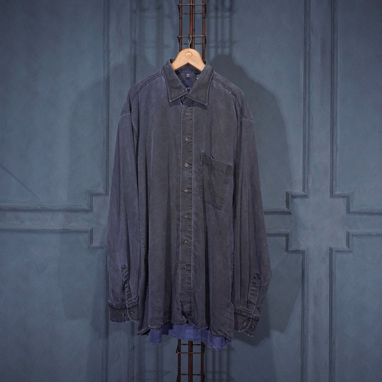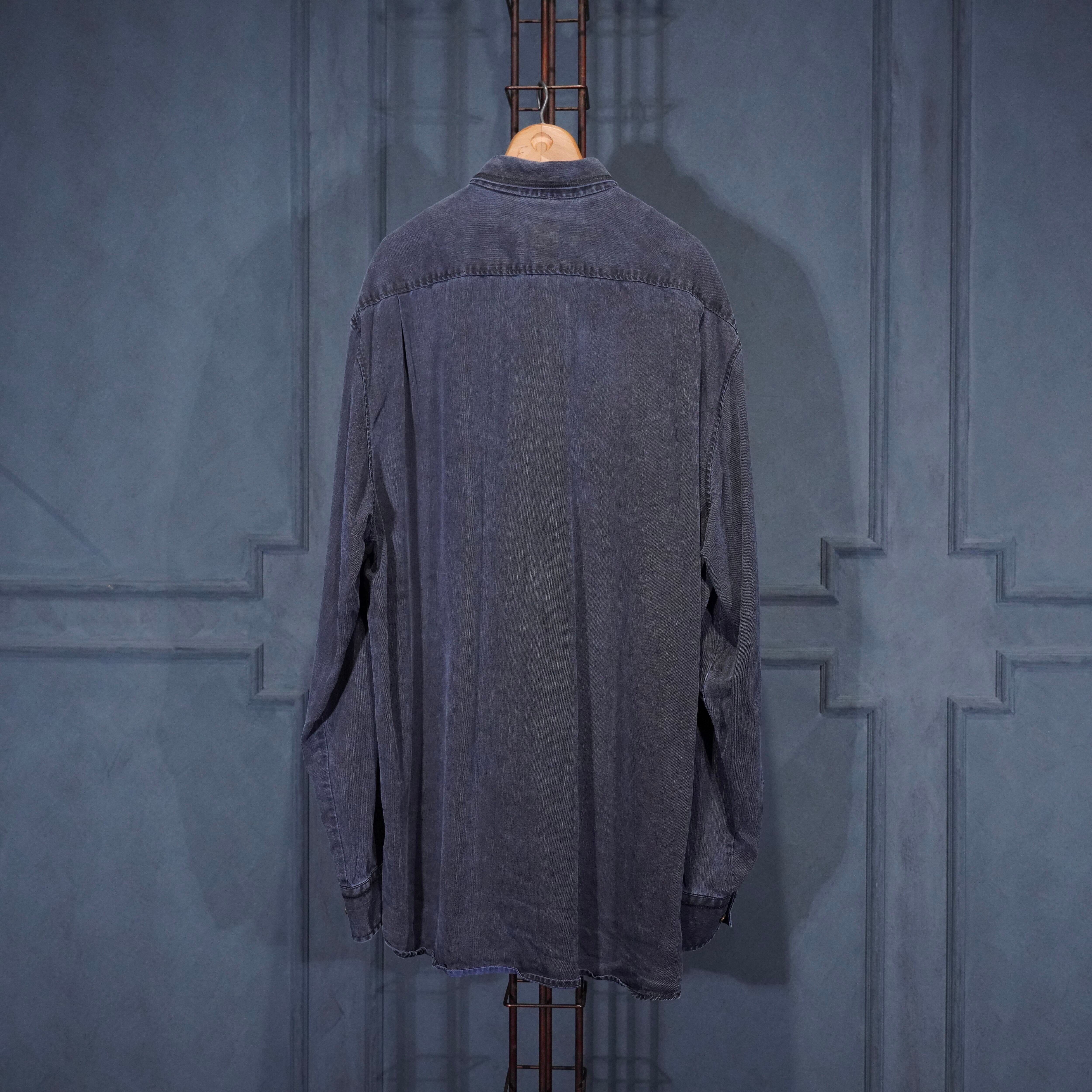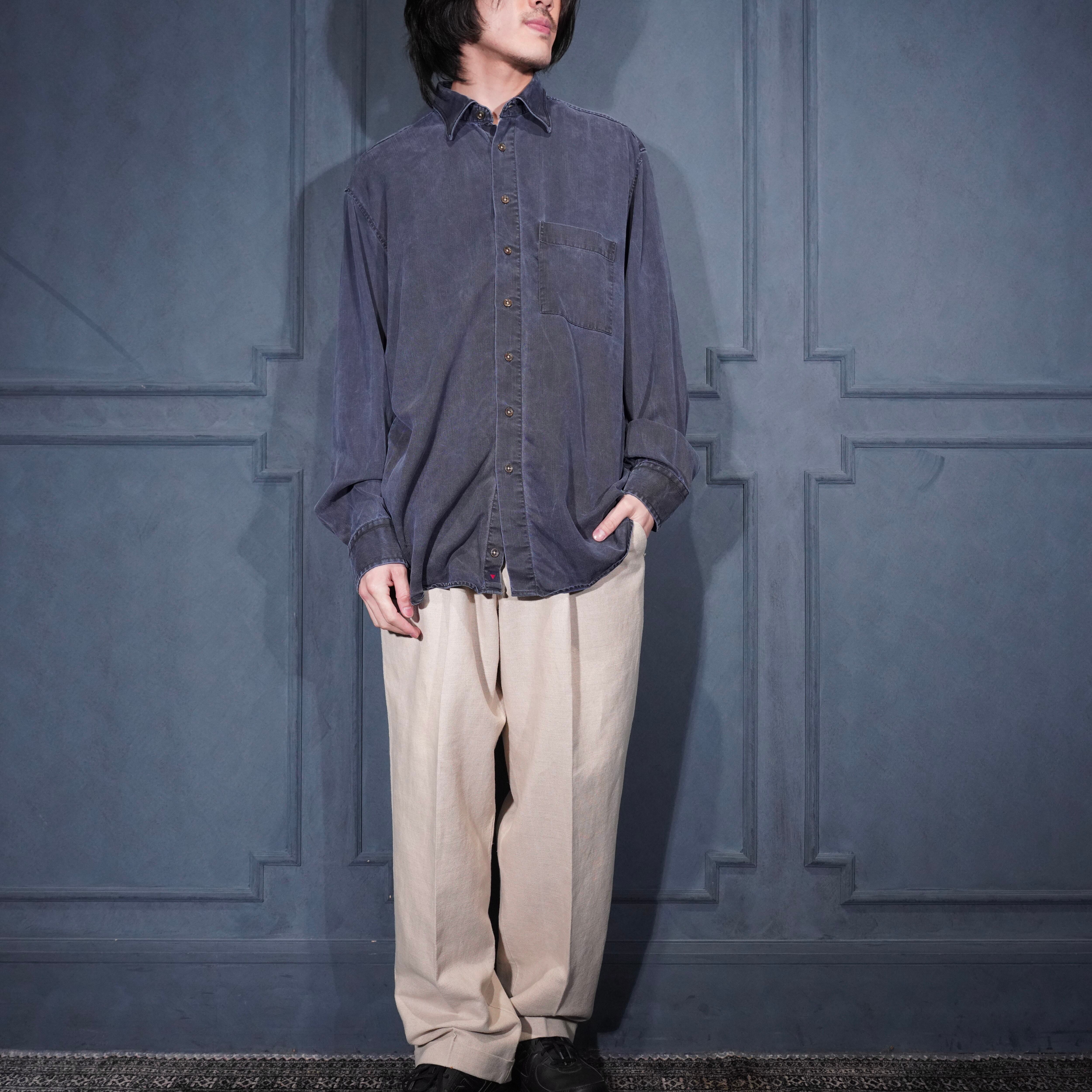 USA VINTAGE HAUPT GERMANY NAVY COLOR FADED DESIGN LINEN SHIRT/アメリカ古着ネイビーカラーフェードデザインリネンシャツ