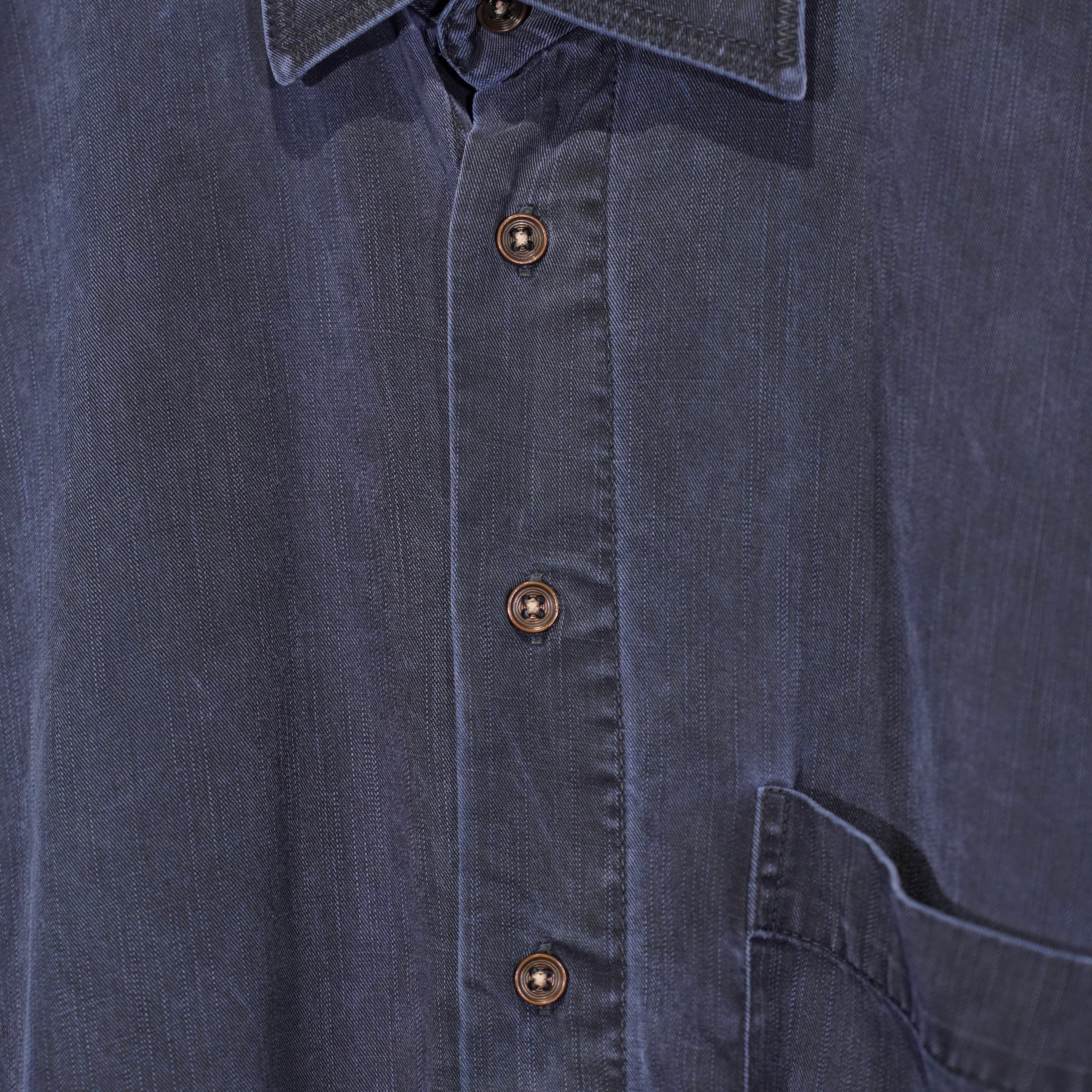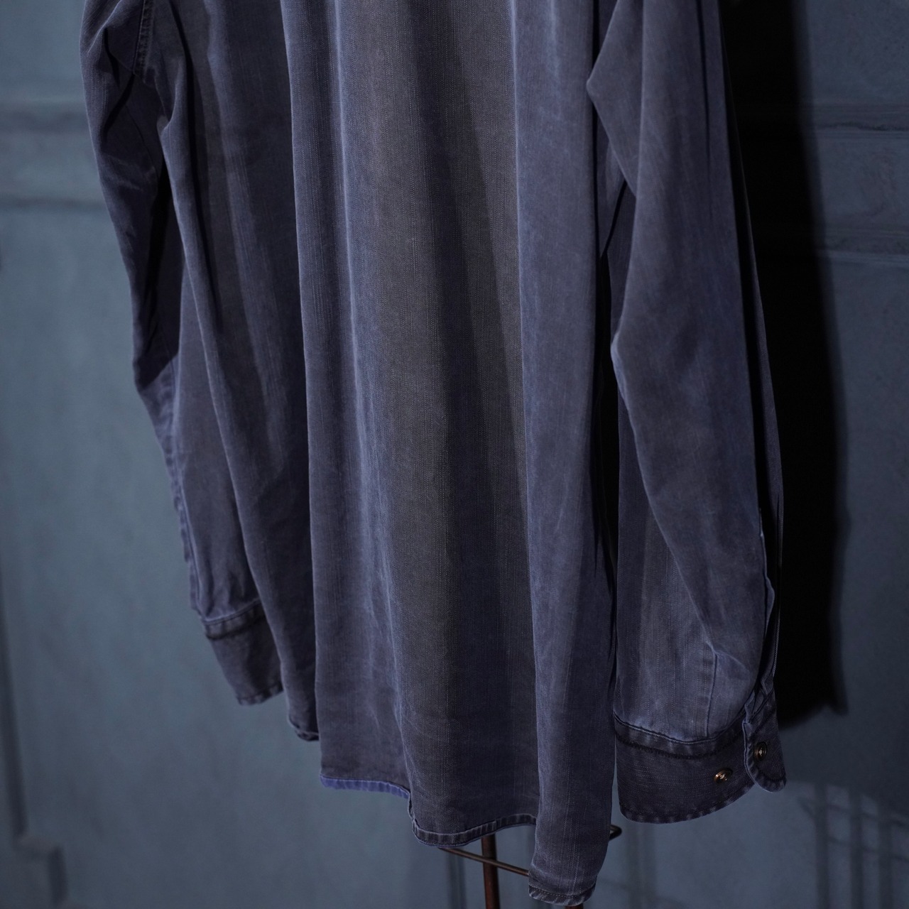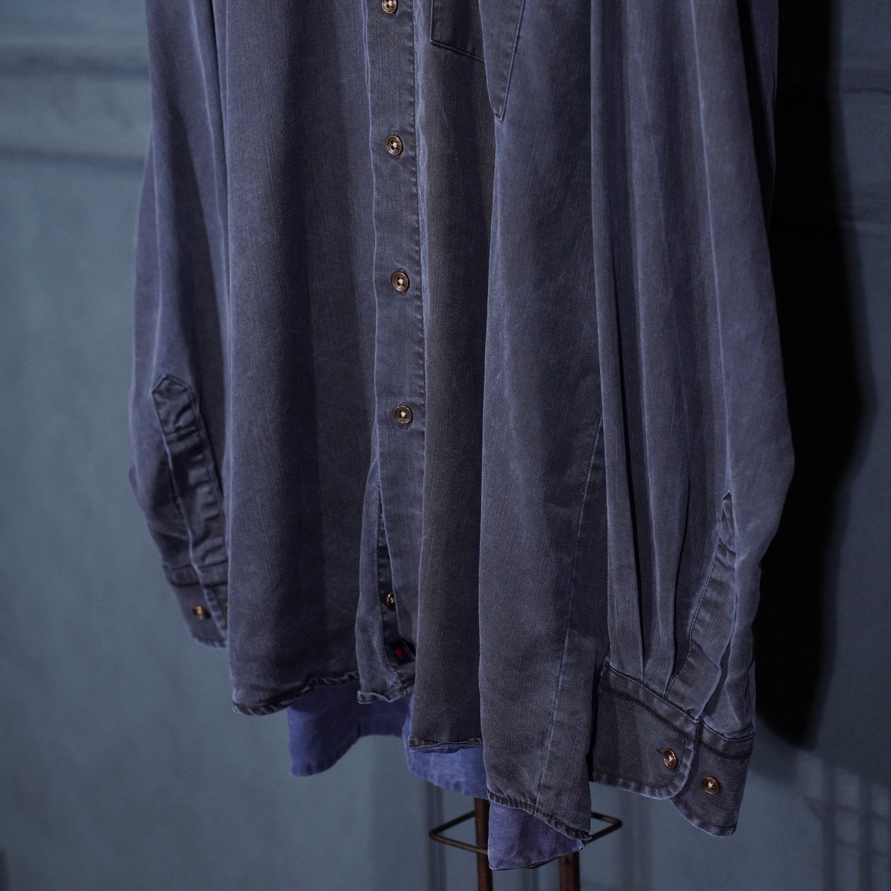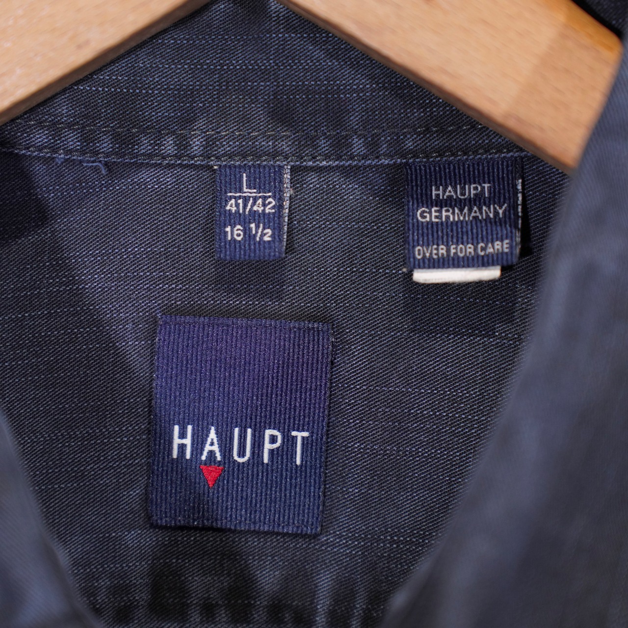 USA VINTAGE HAUPT GERMANY NAVY COLOR FADED DESIGN LINEN SHIRT/アメリカ古着ネイビーカラーフェードデザインリネンシャツ