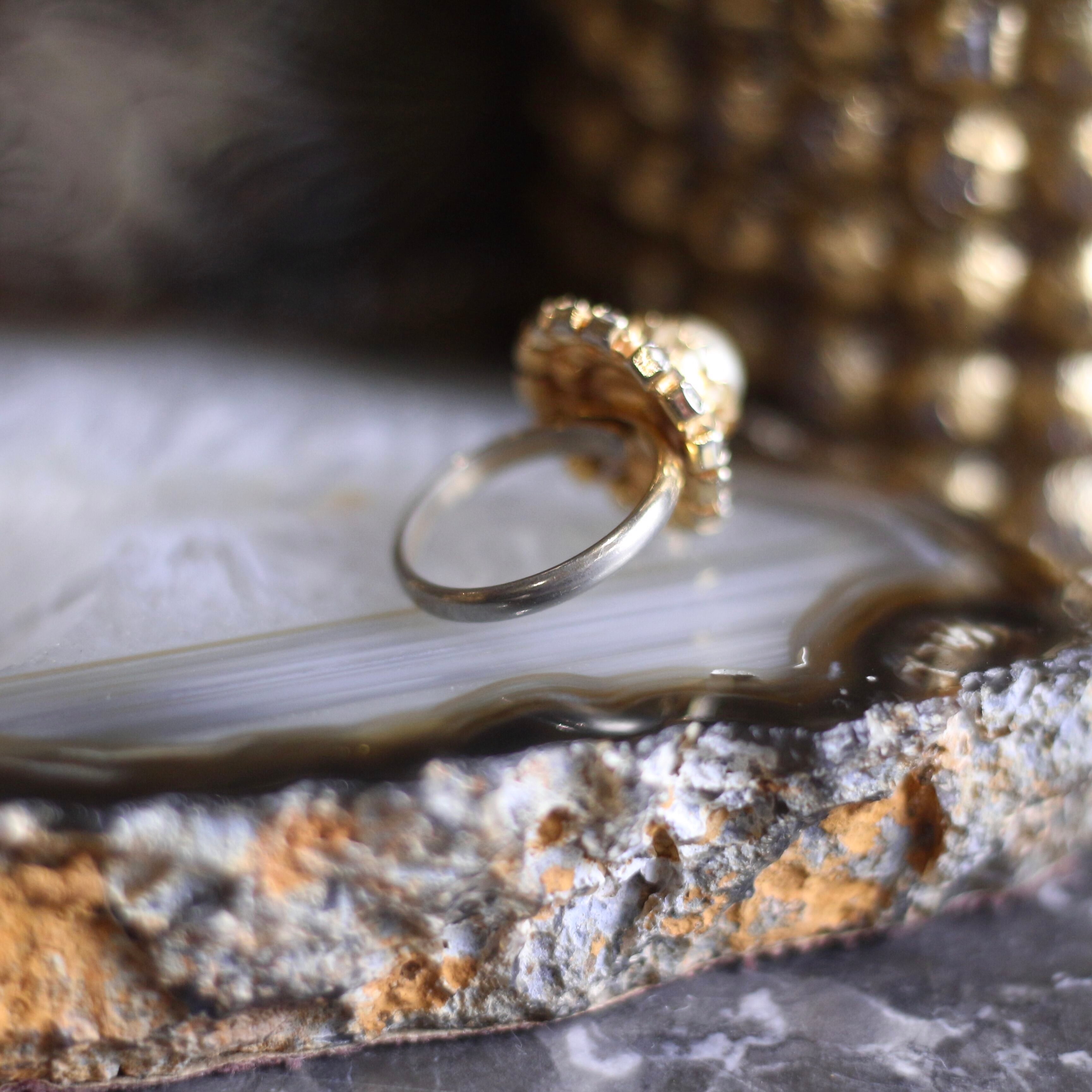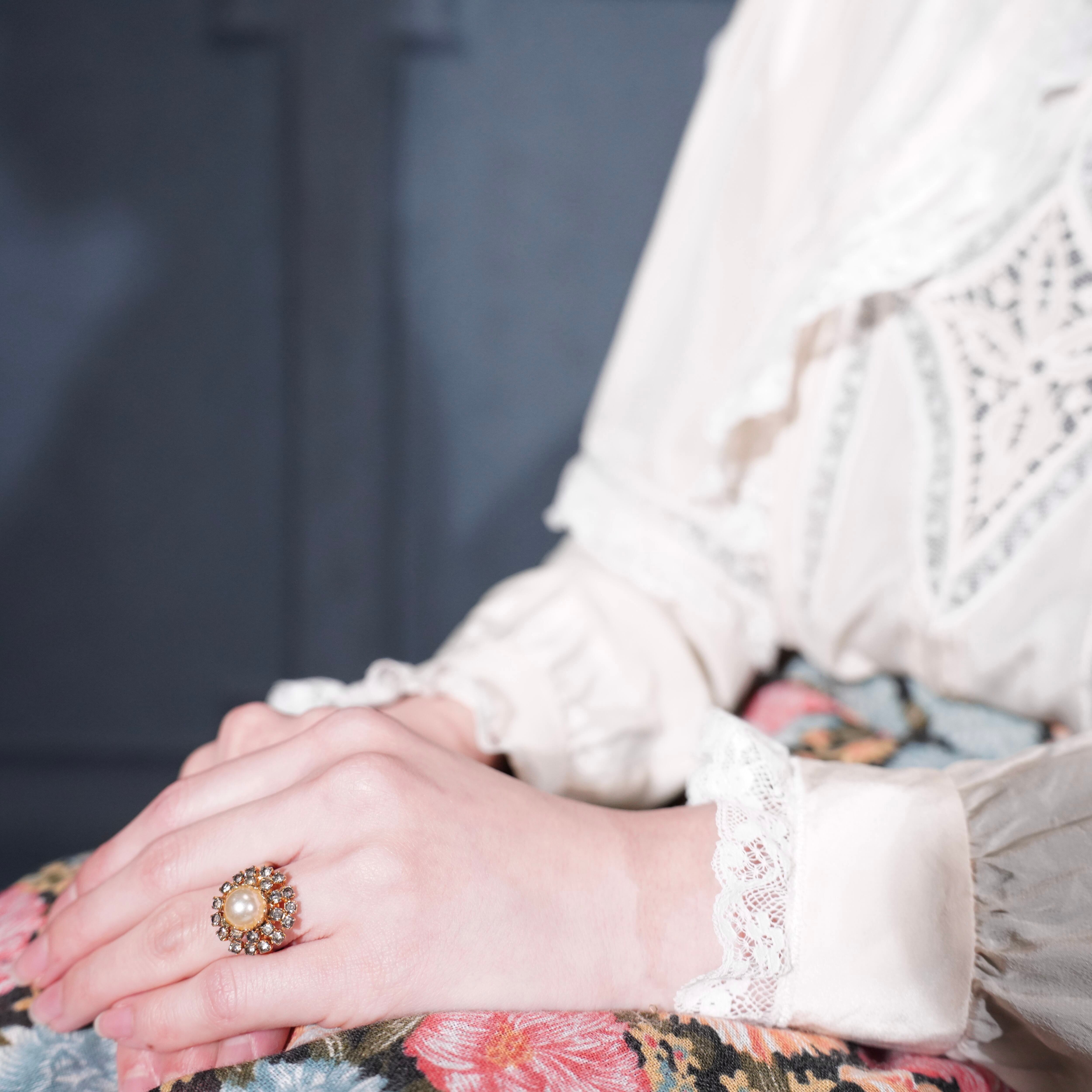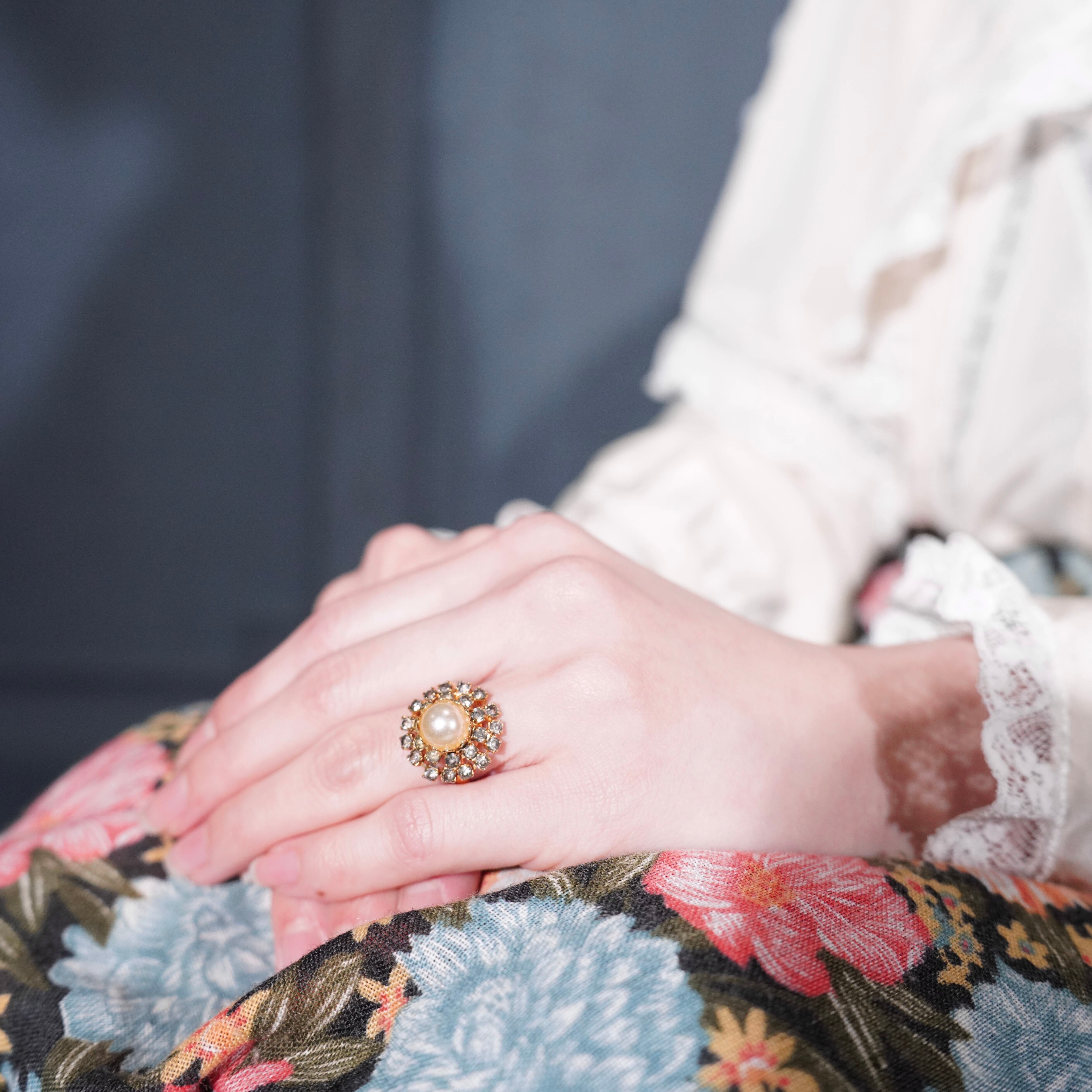 USA VINTAGE CLEAR STONE PEARL DESIGN RING/アメリカ古着クリアストーンパールデザインリング