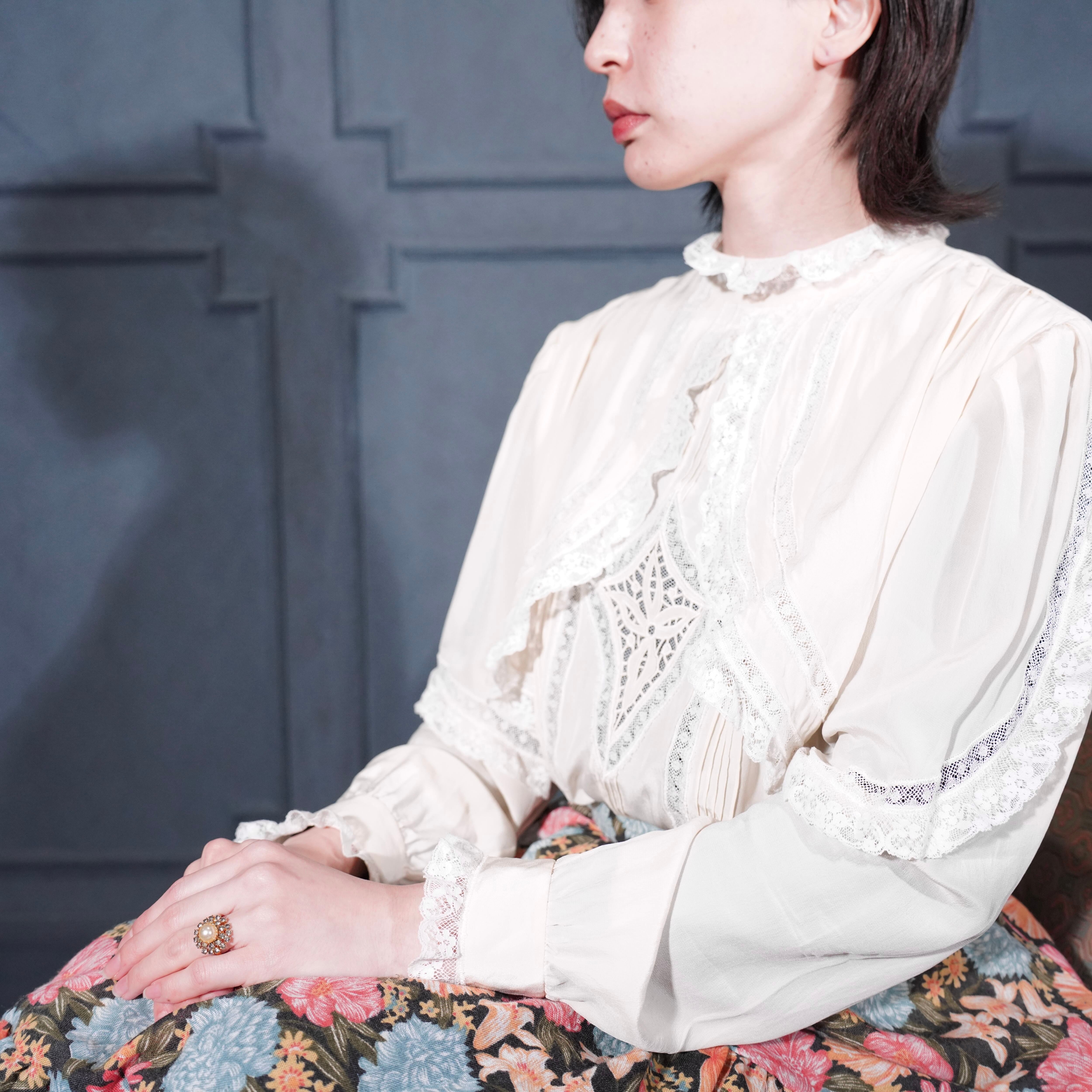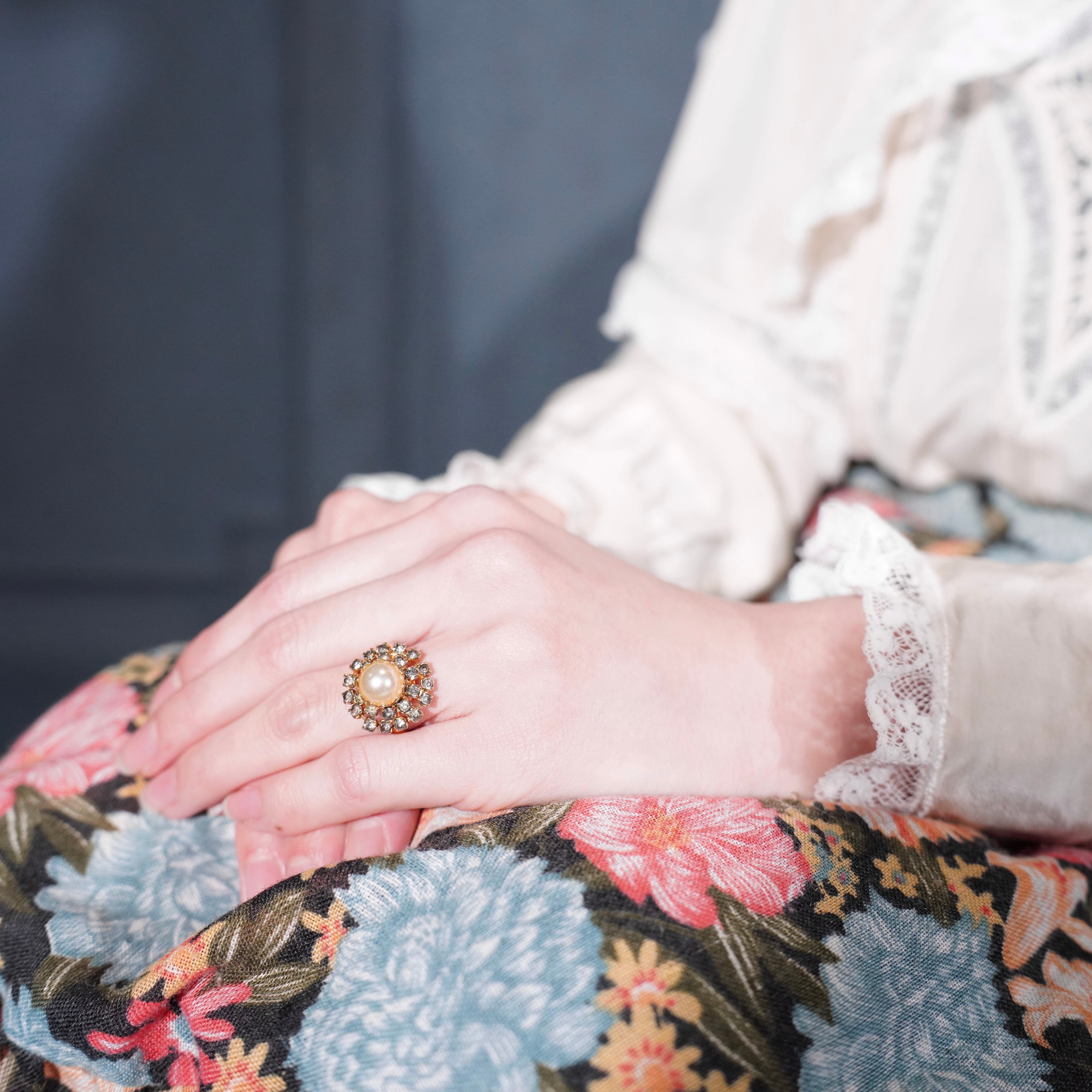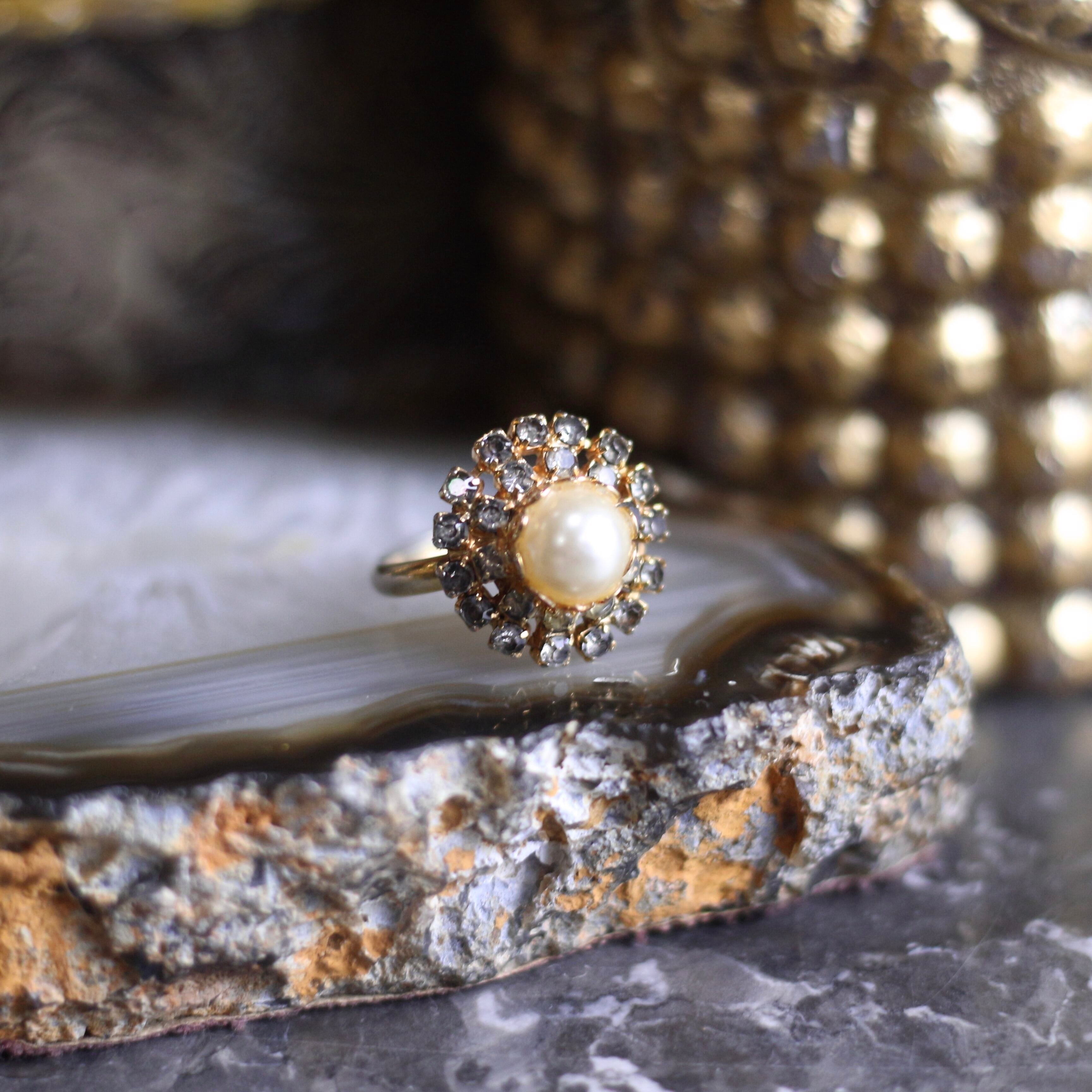 USA VINTAGE CLEAR STONE PEARL DESIGN RING/アメリカ古着クリアストーンパールデザインリング