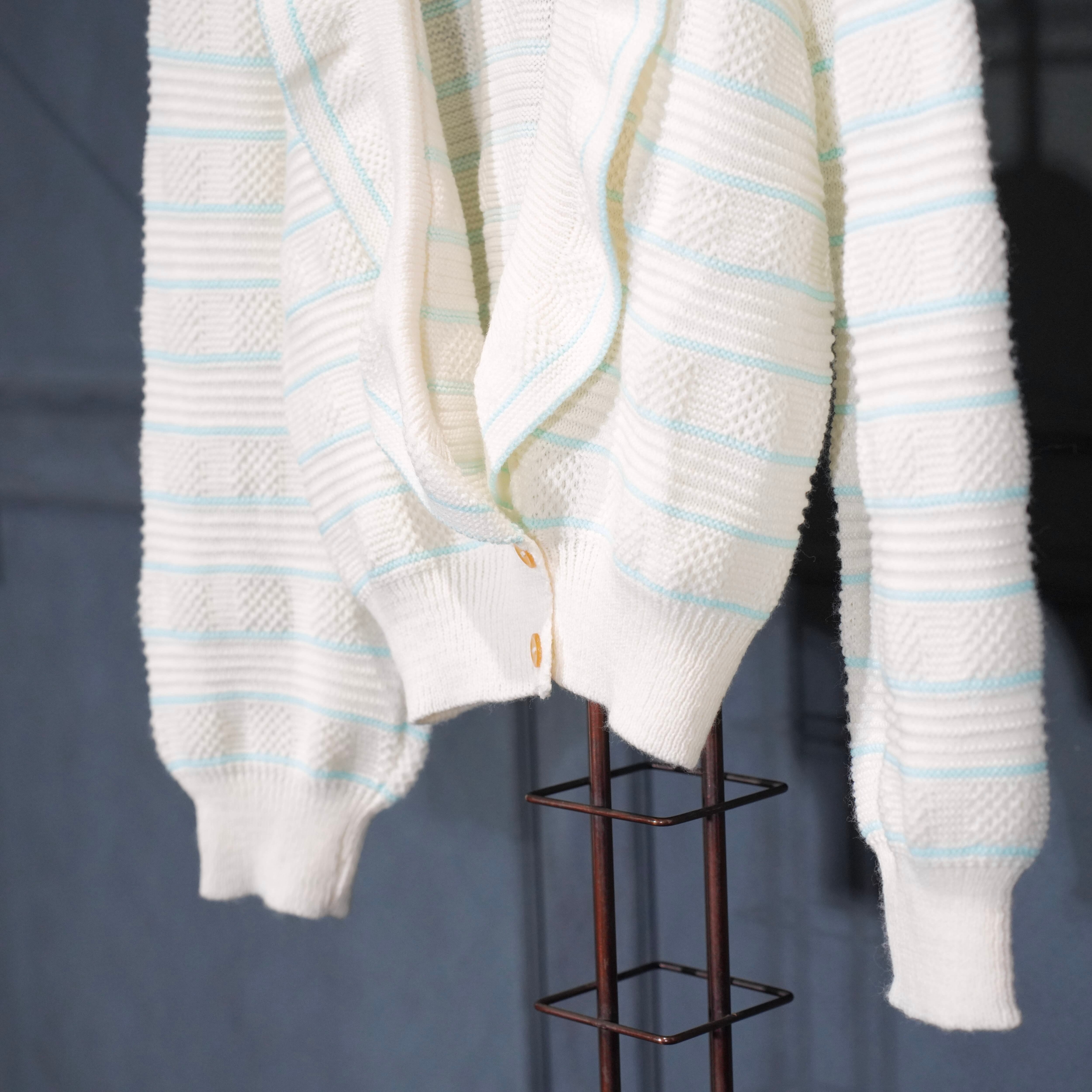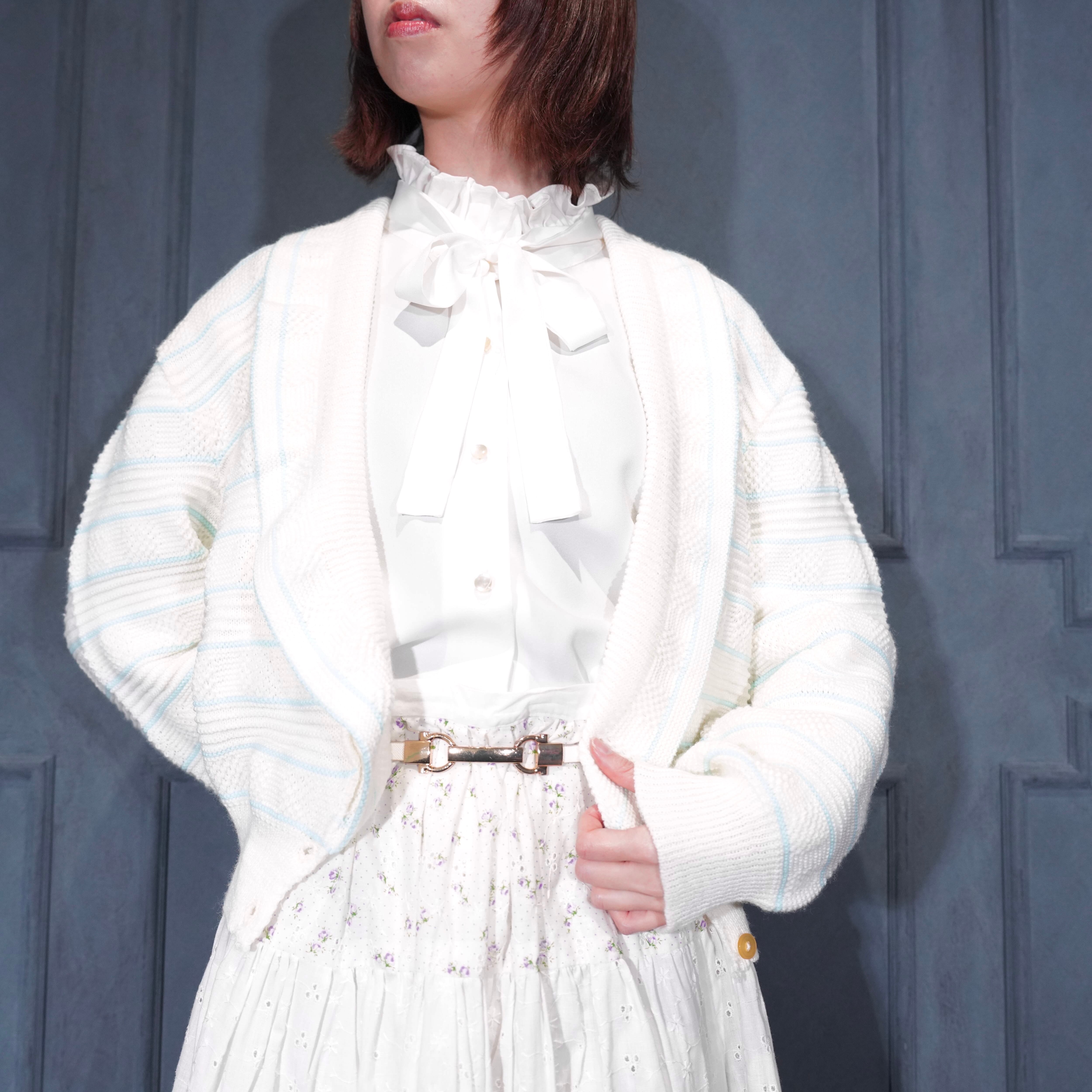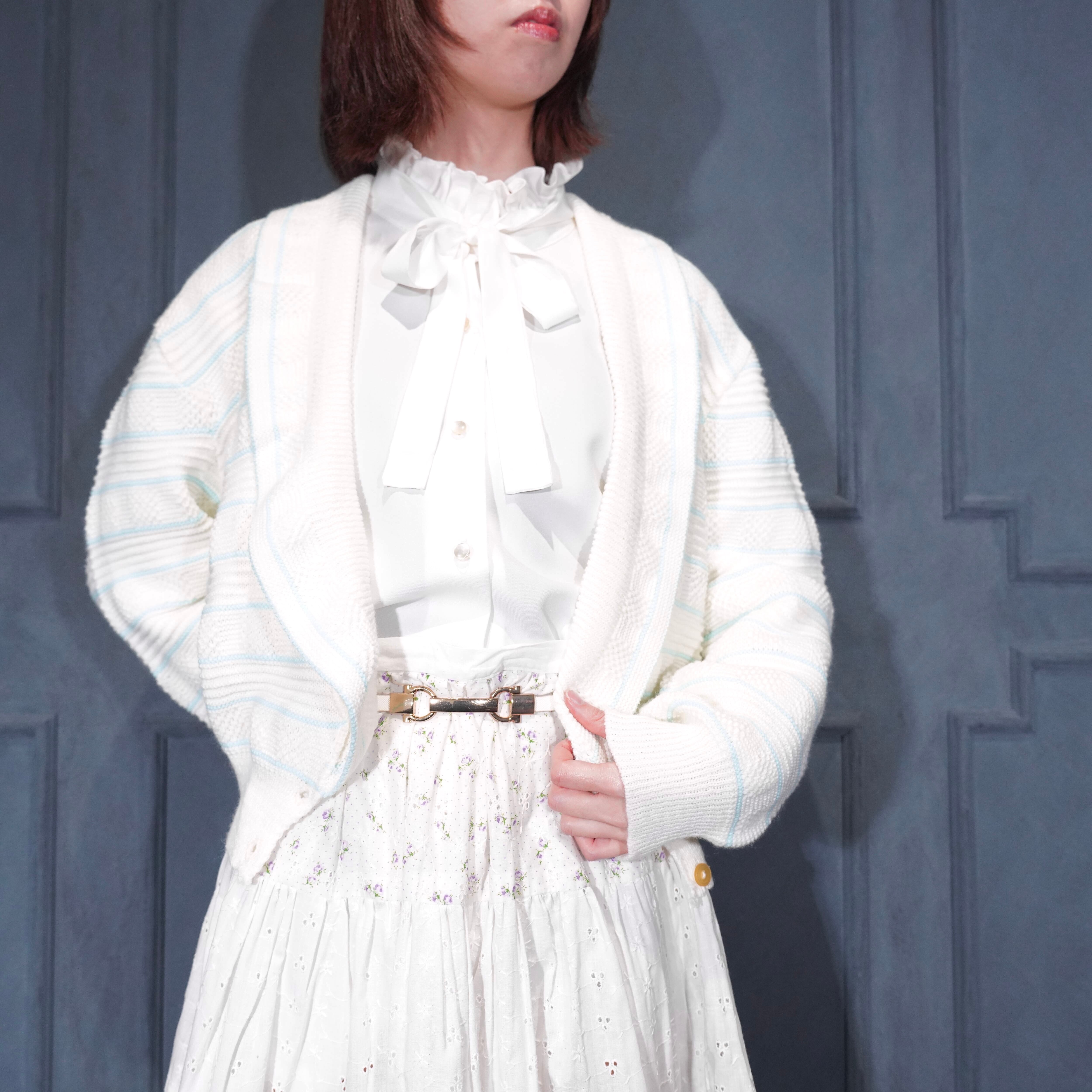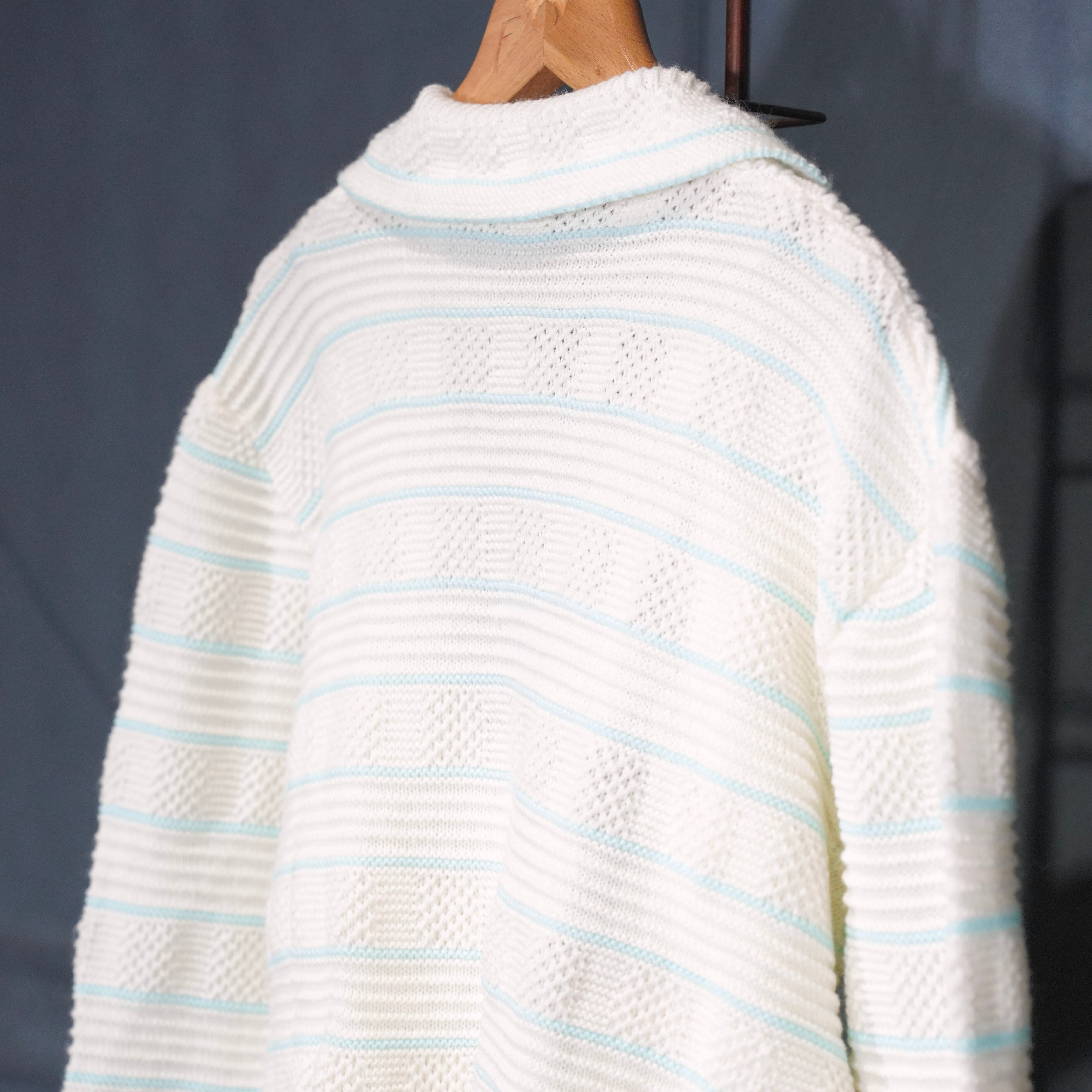 USA VINTAGE BORDER PATTERNED SHAWL COLLAR WOVEN DESIGN KNIT CARDIGAN/アメリカ古着ボーダー柄ショールカラー織デザインニットカーディガン