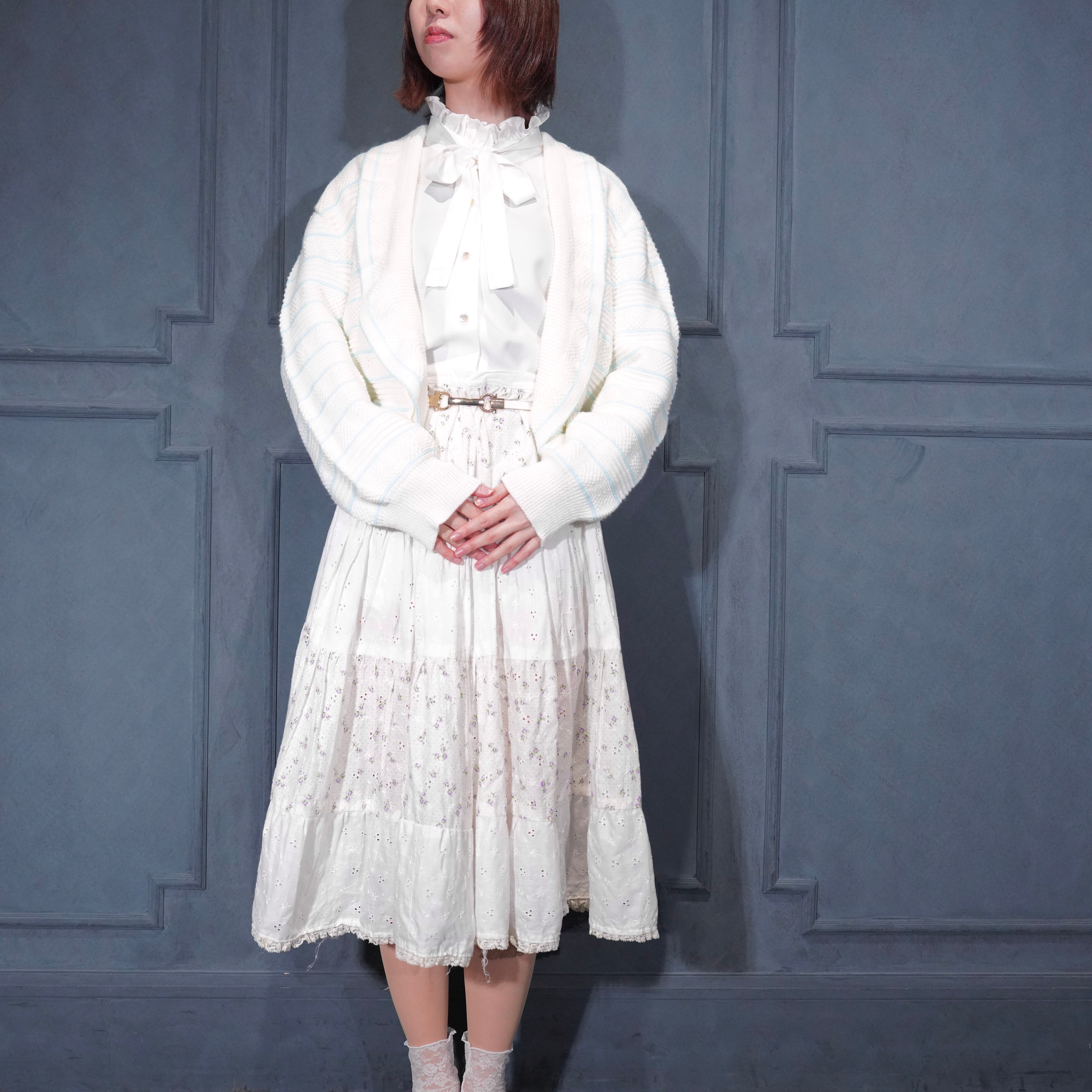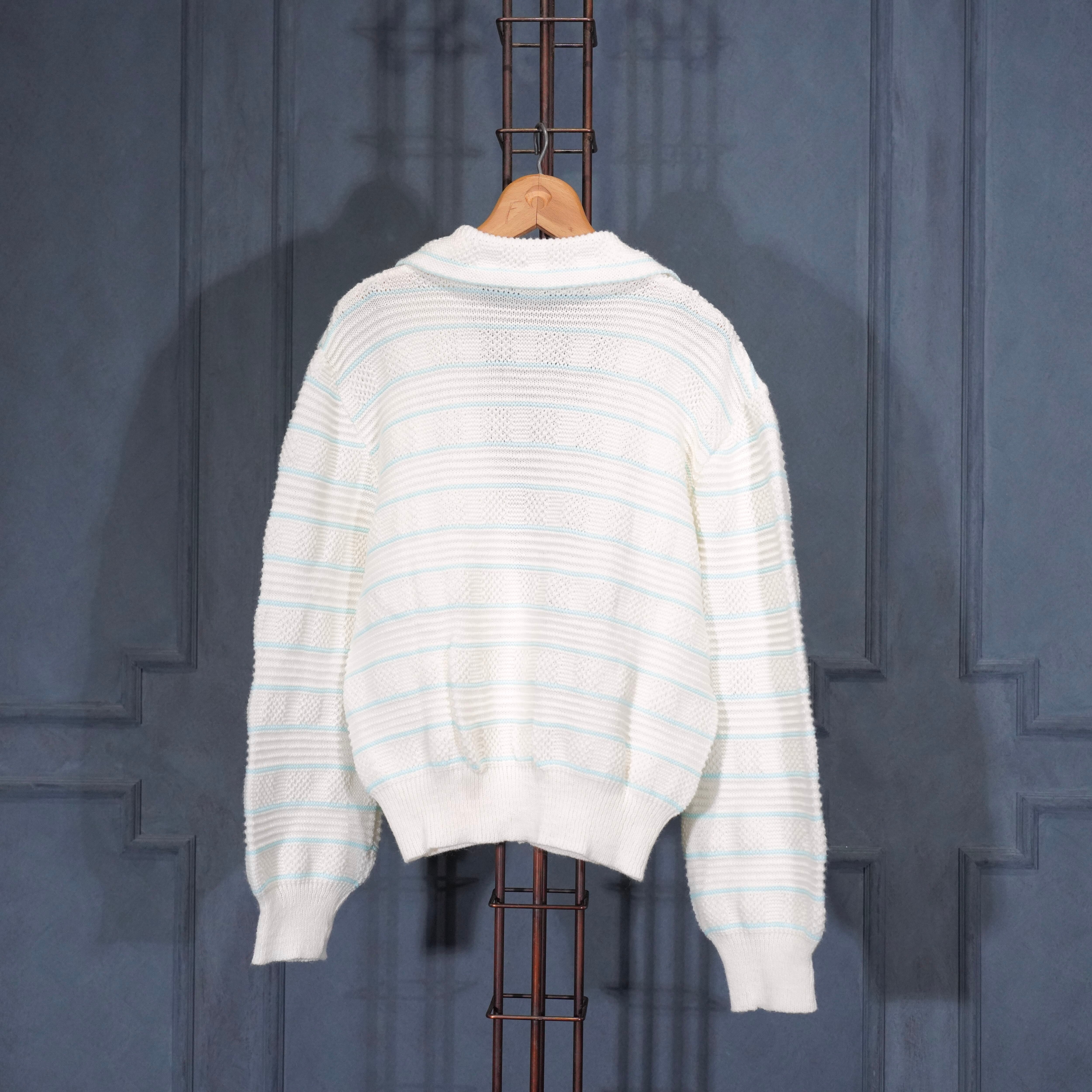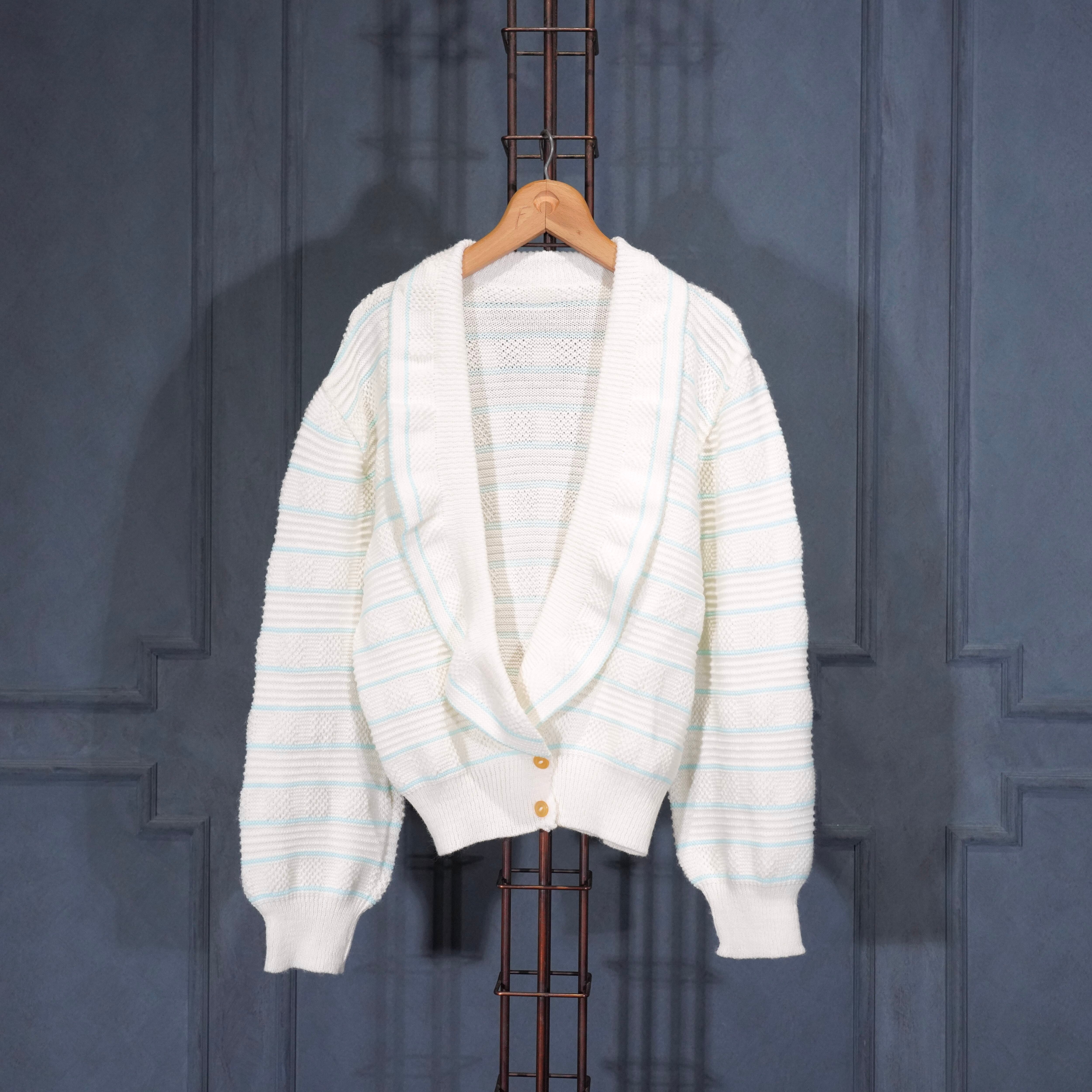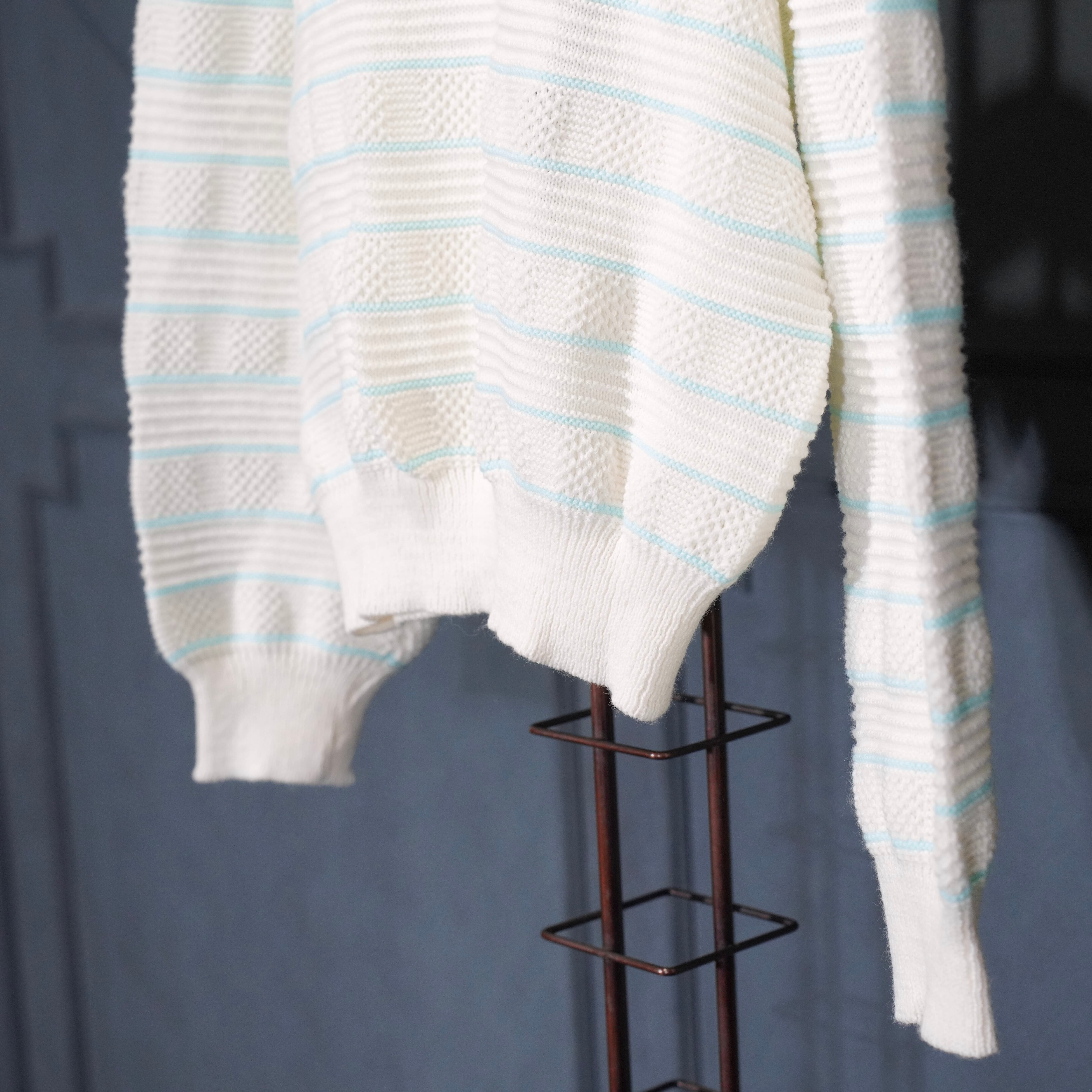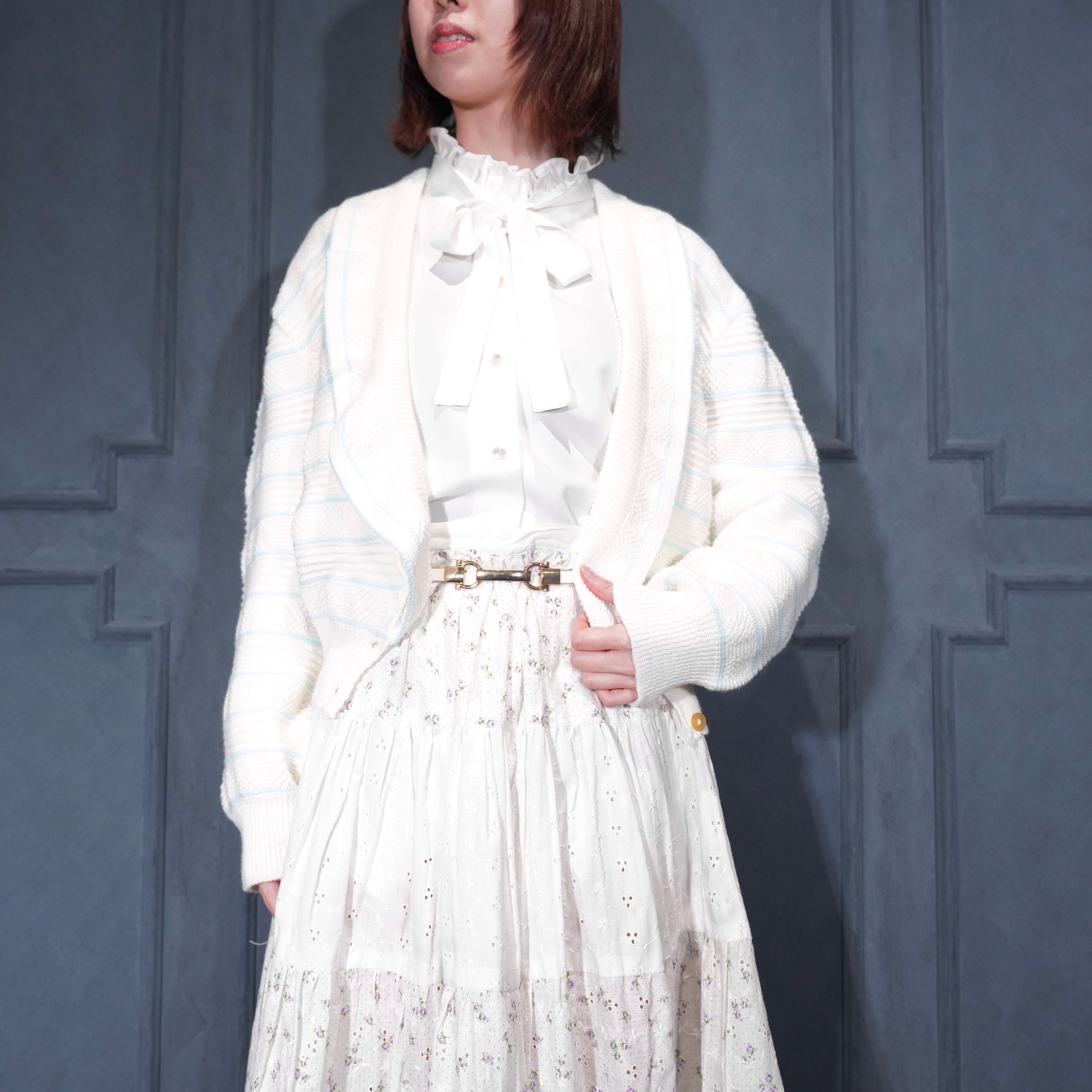 USA VINTAGE BORDER PATTERNED SHAWL COLLAR WOVEN DESIGN KNIT CARDIGAN/アメリカ古着ボーダー柄ショールカラー織デザインニットカーディガン
