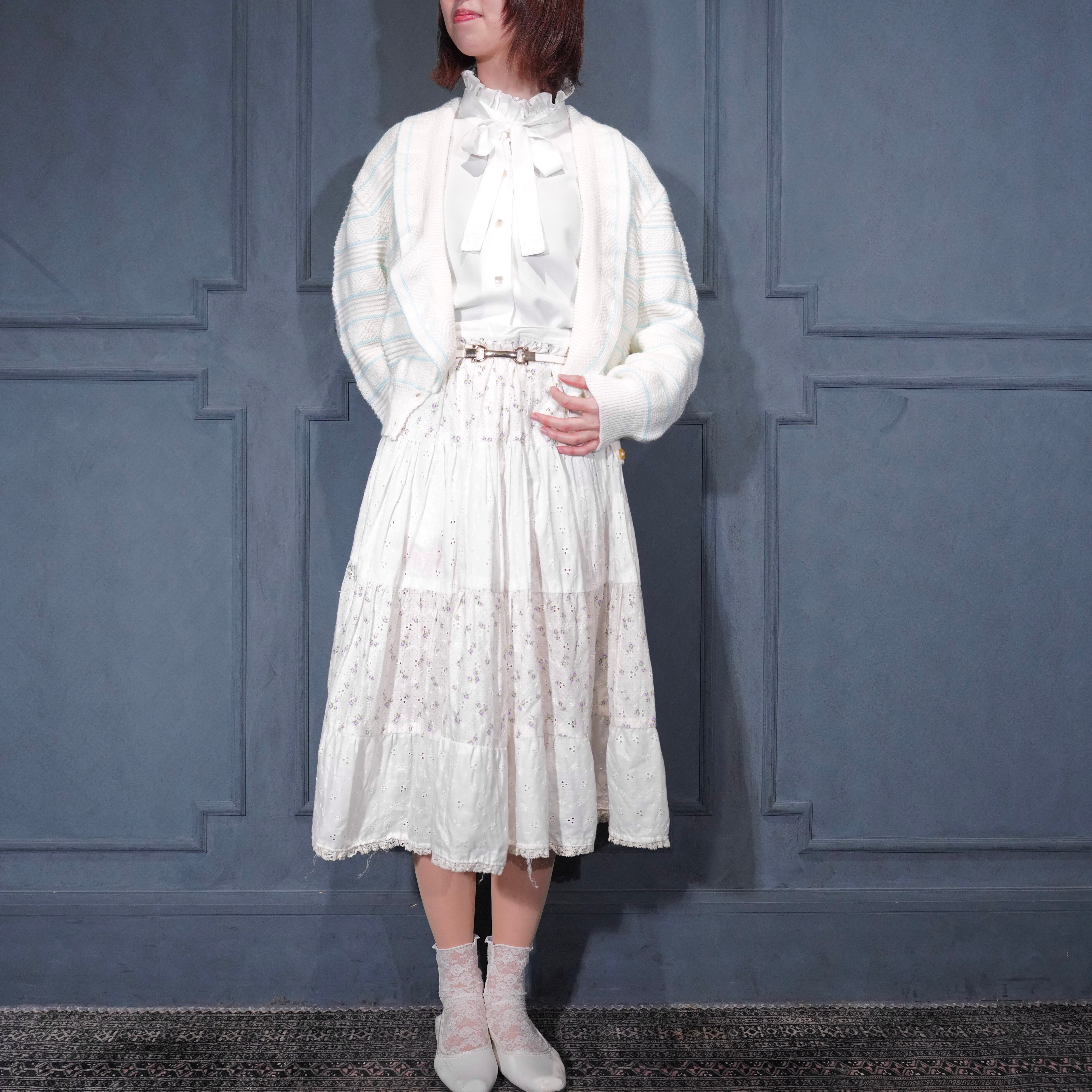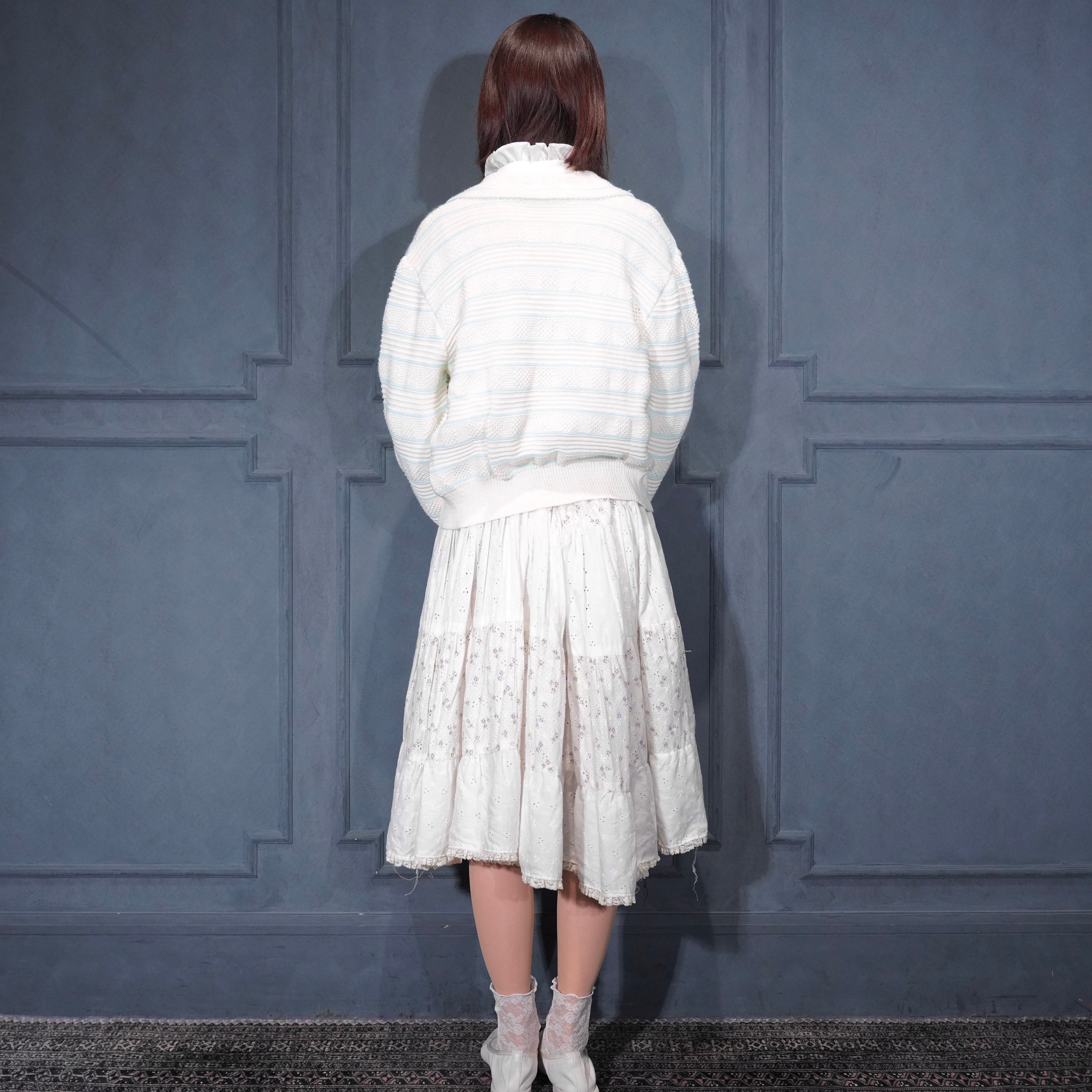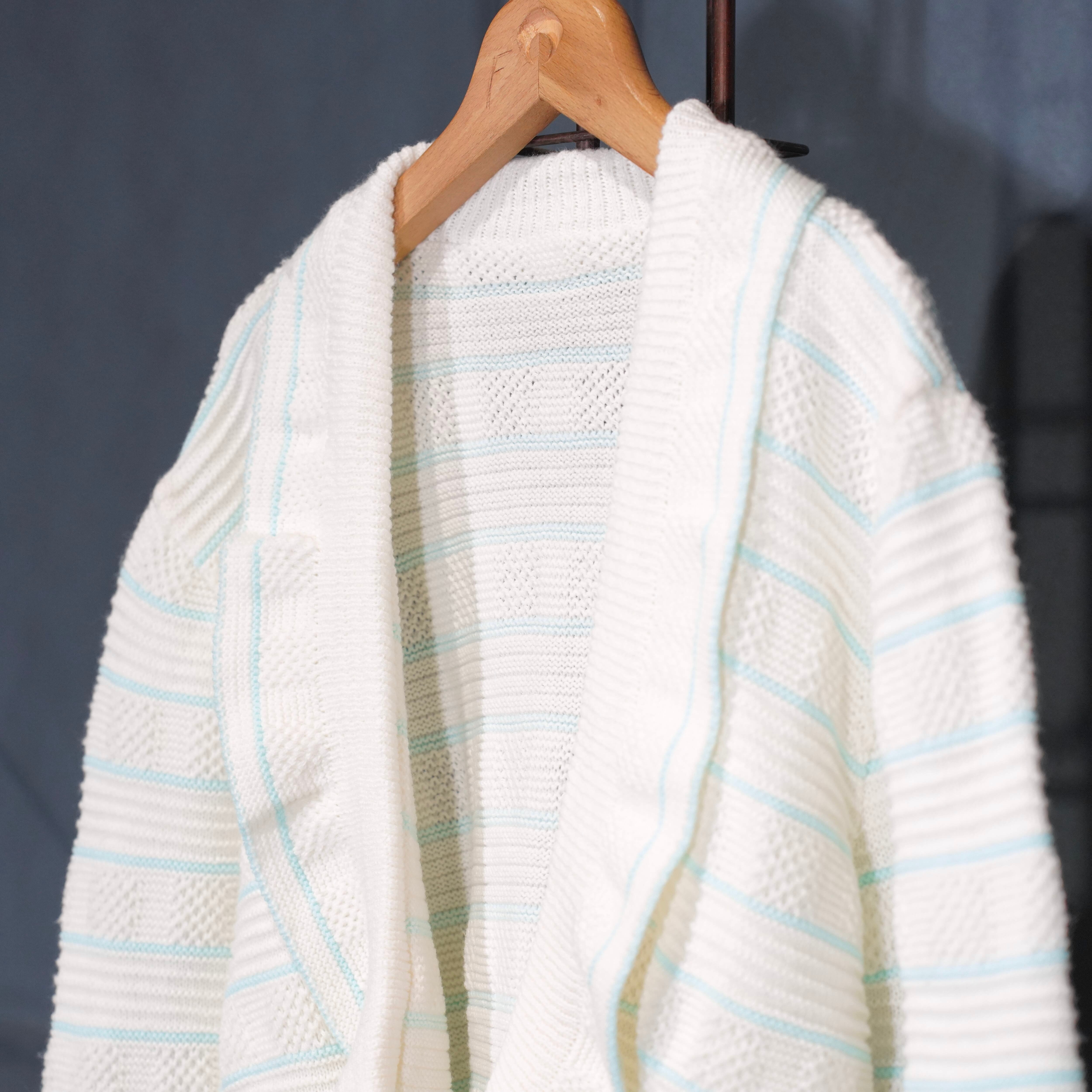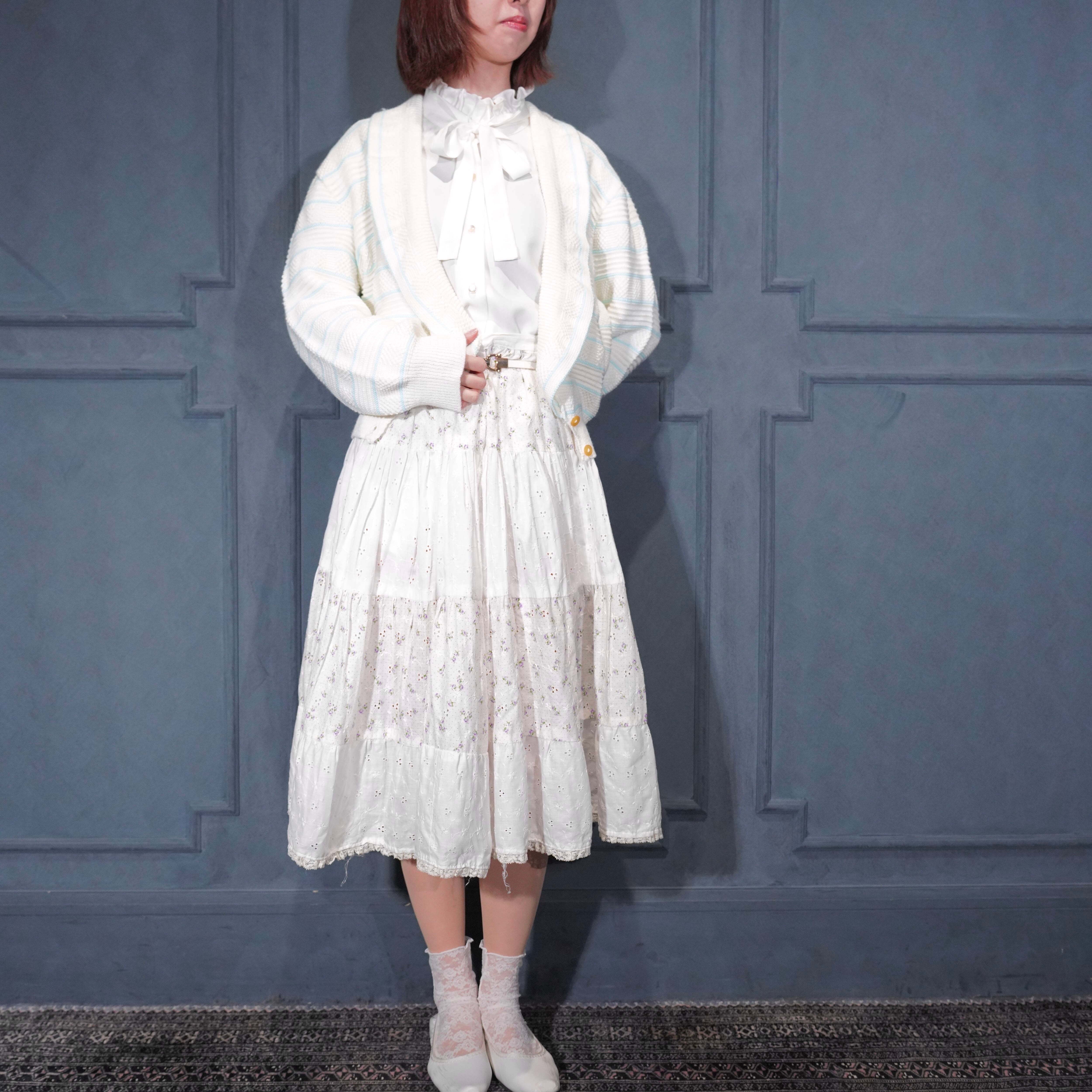 USA VINTAGE BORDER PATTERNED SHAWL COLLAR WOVEN DESIGN KNIT CARDIGAN/アメリカ古着ボーダー柄ショールカラー織デザインニットカーディガン