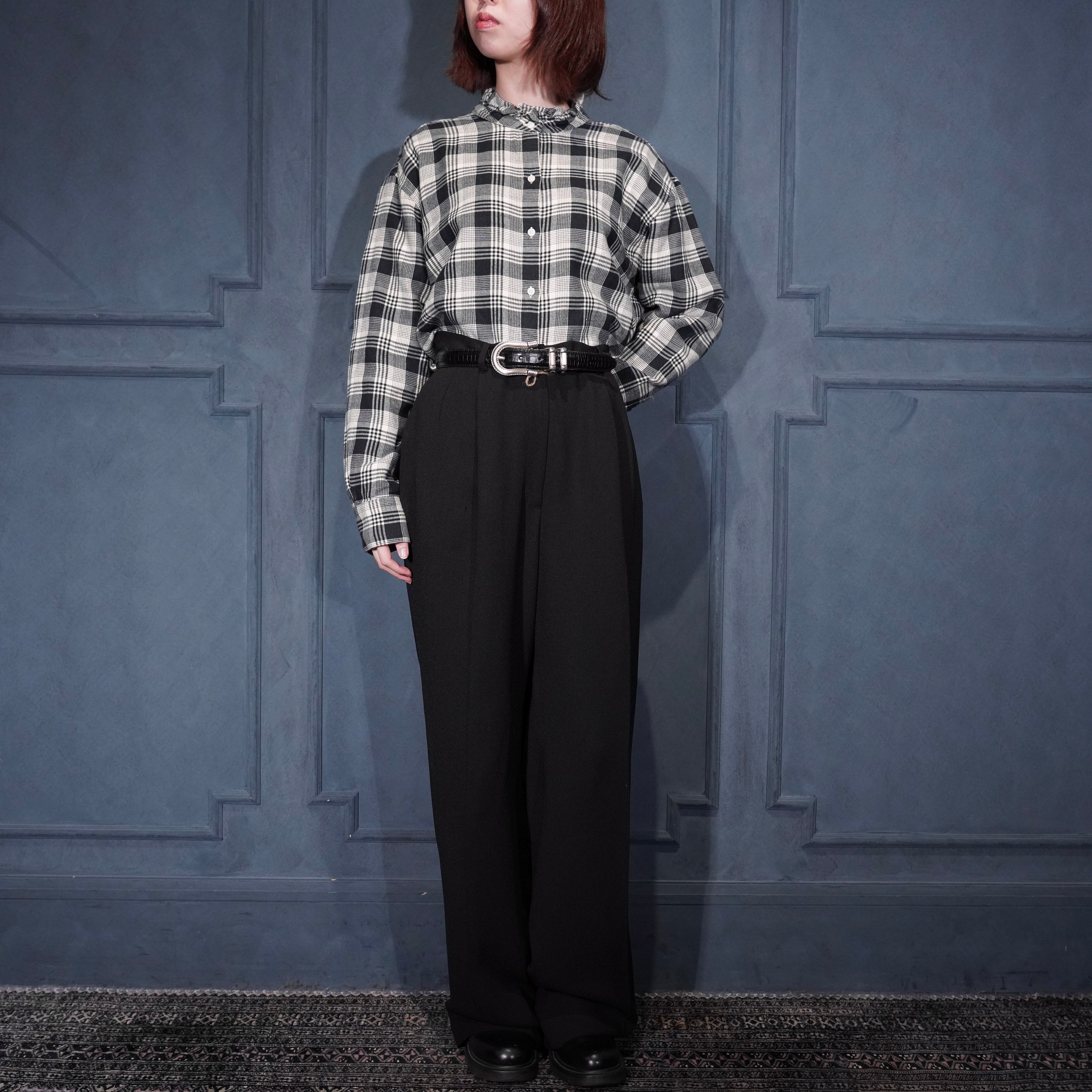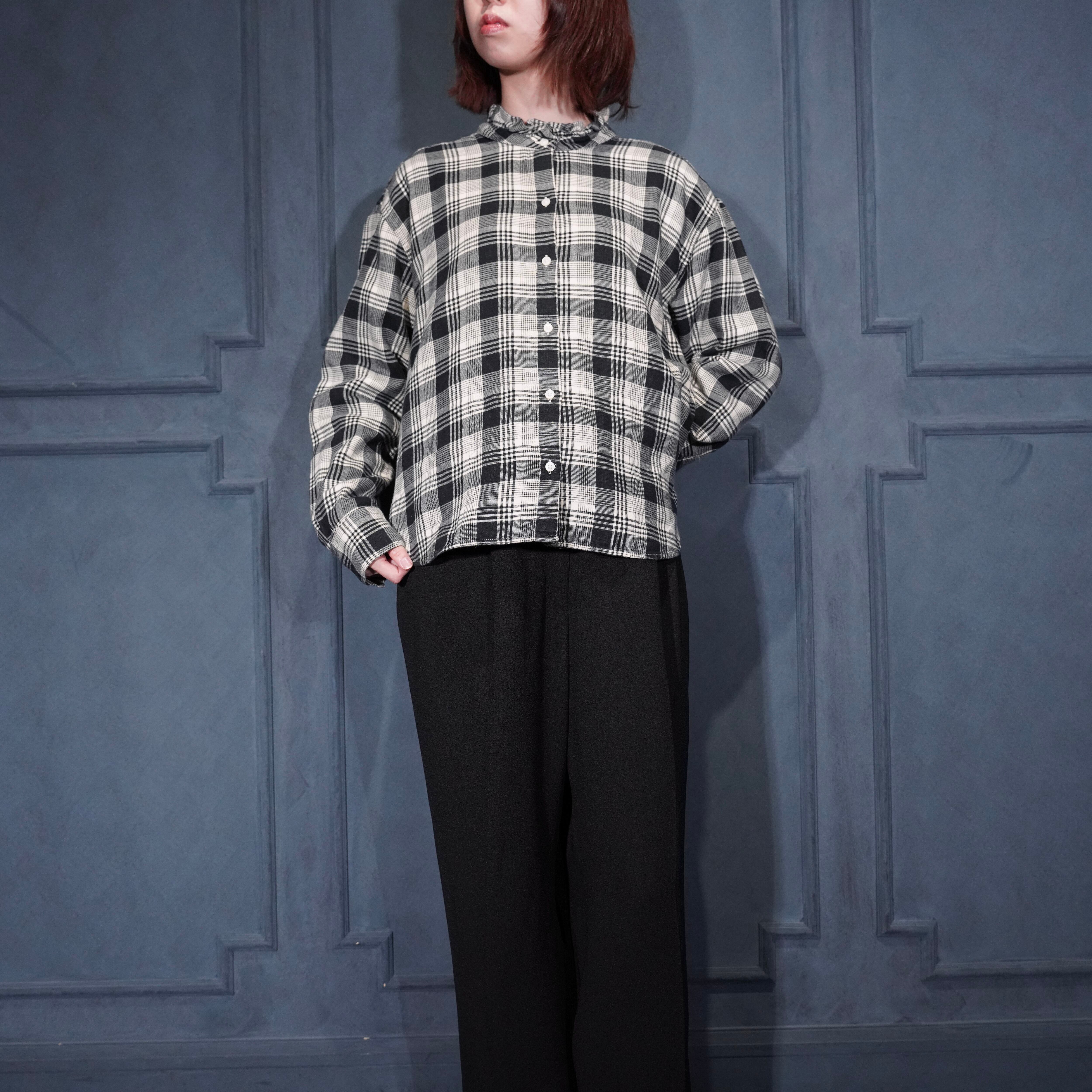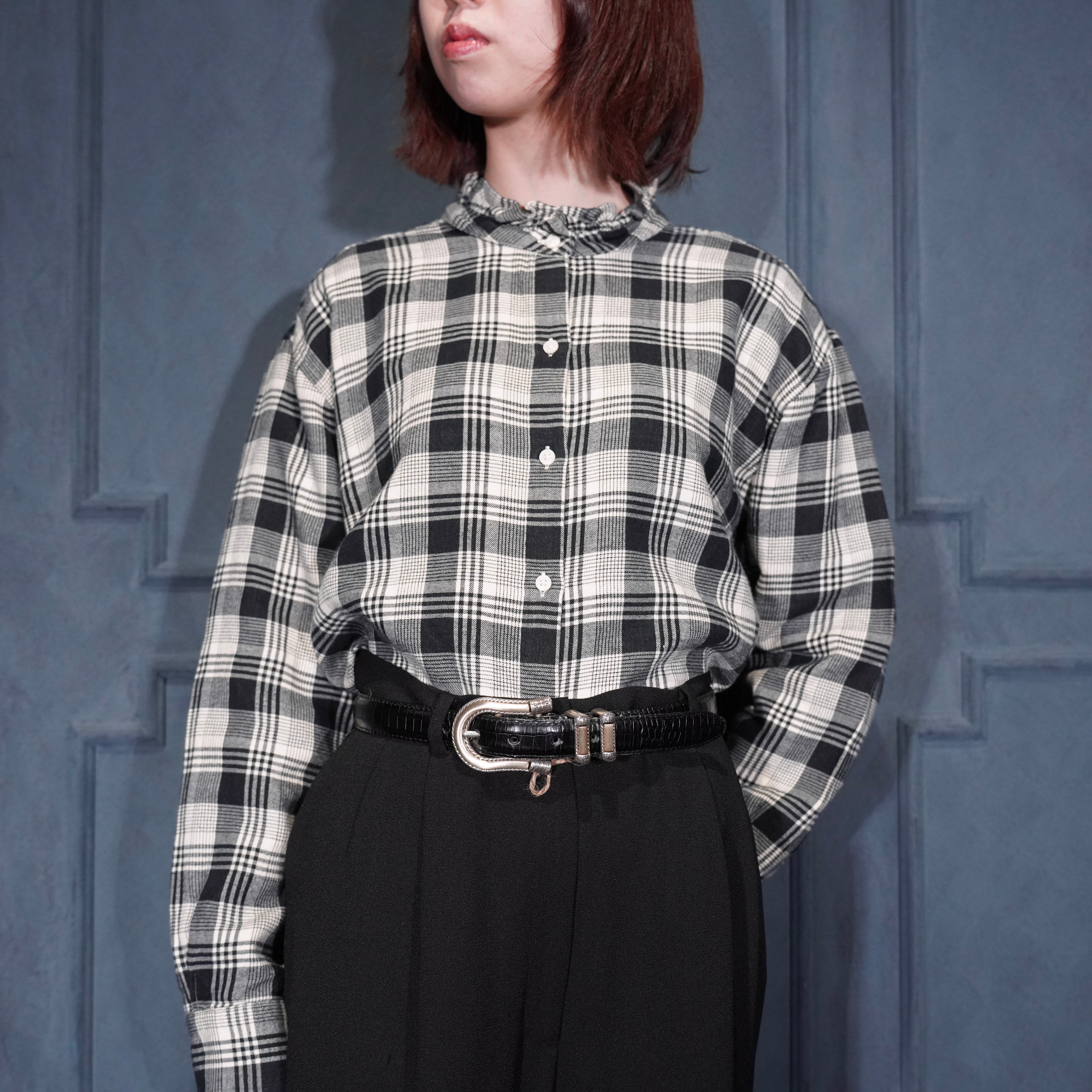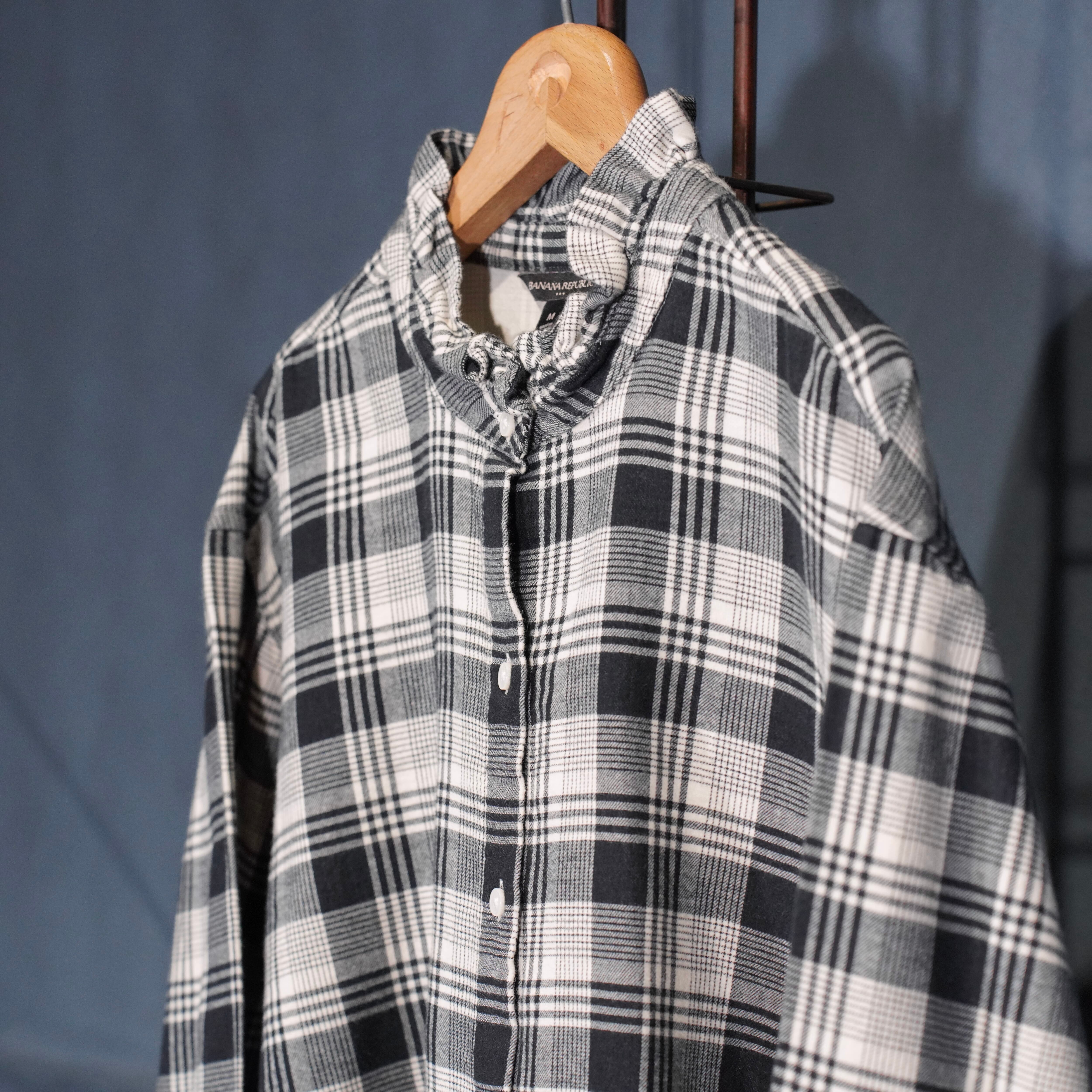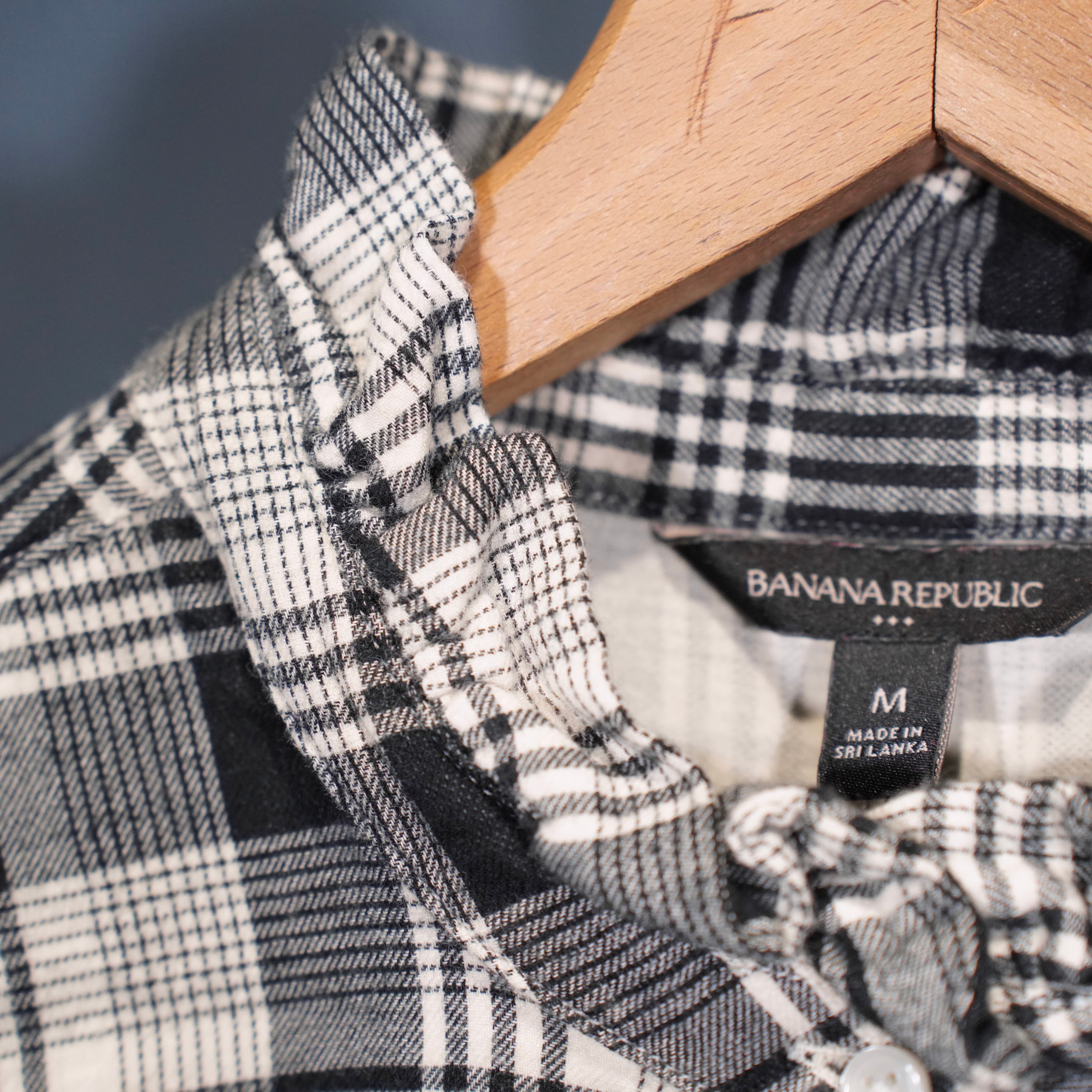 USA VINTAGE BANANA REPUBLIC CHECK PATTERNED FRILL COLLAR COTTON FLANNEL SHIRT/アメリカ古着バナナリパーブリックチェック柄フリル襟デザインコットンフランネルシャツ