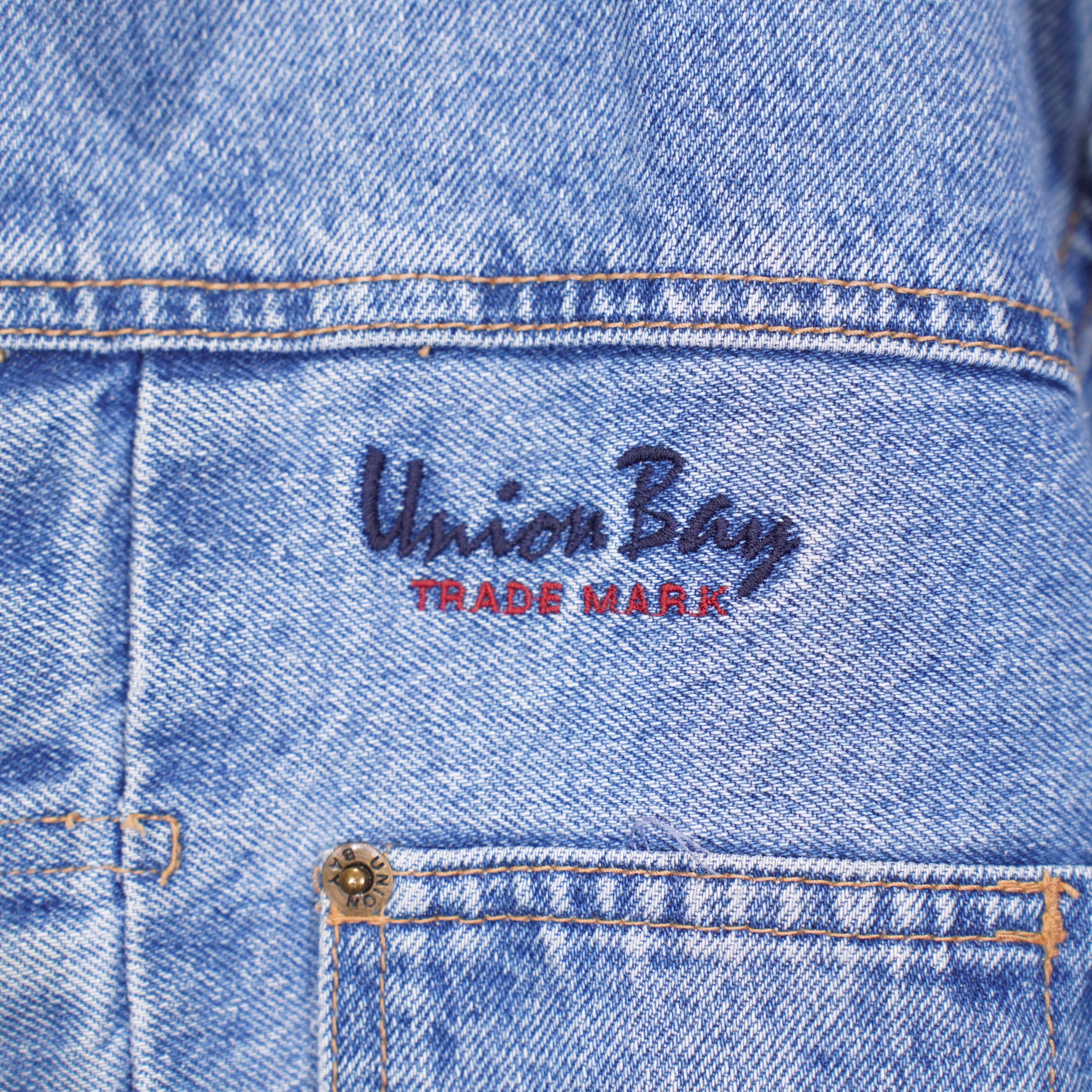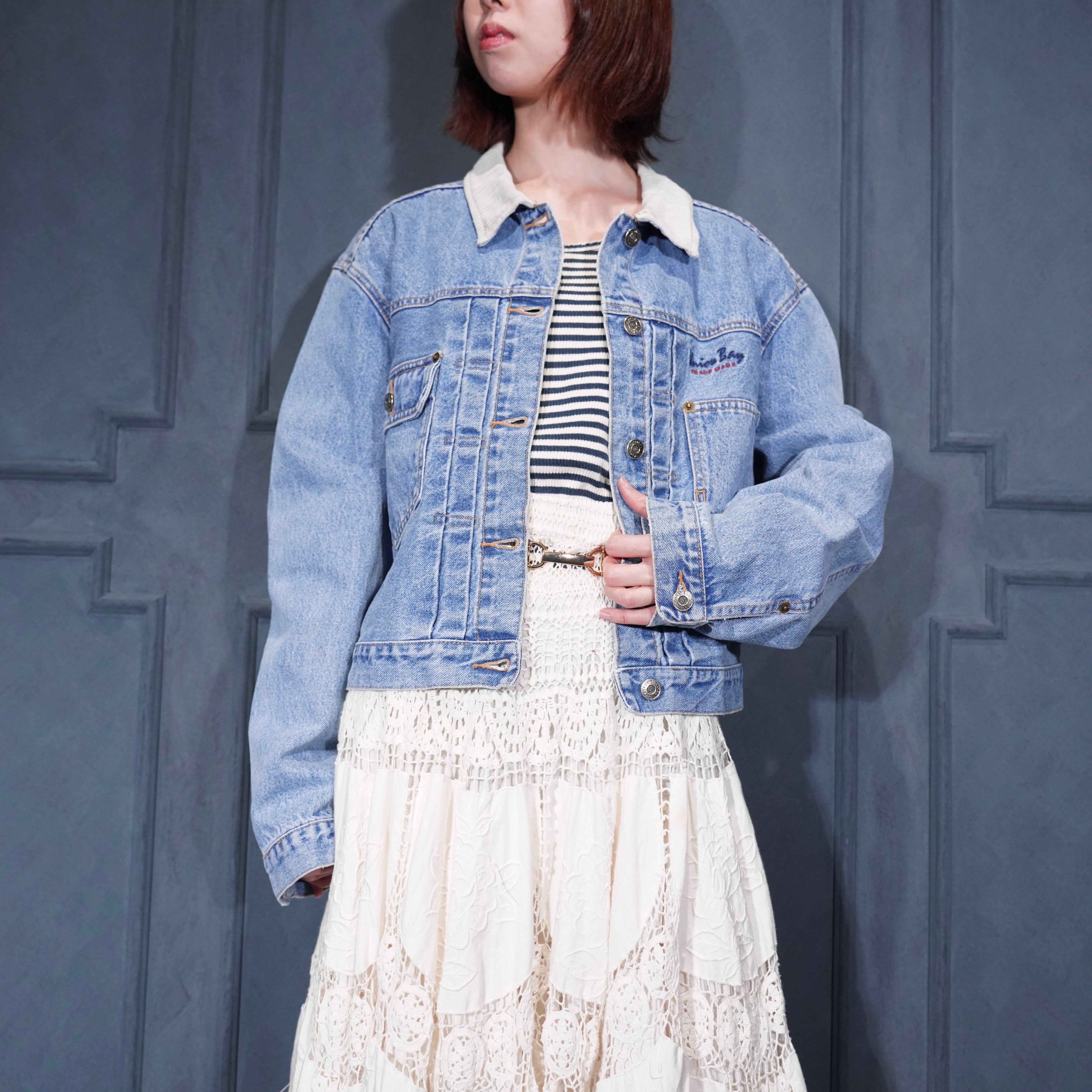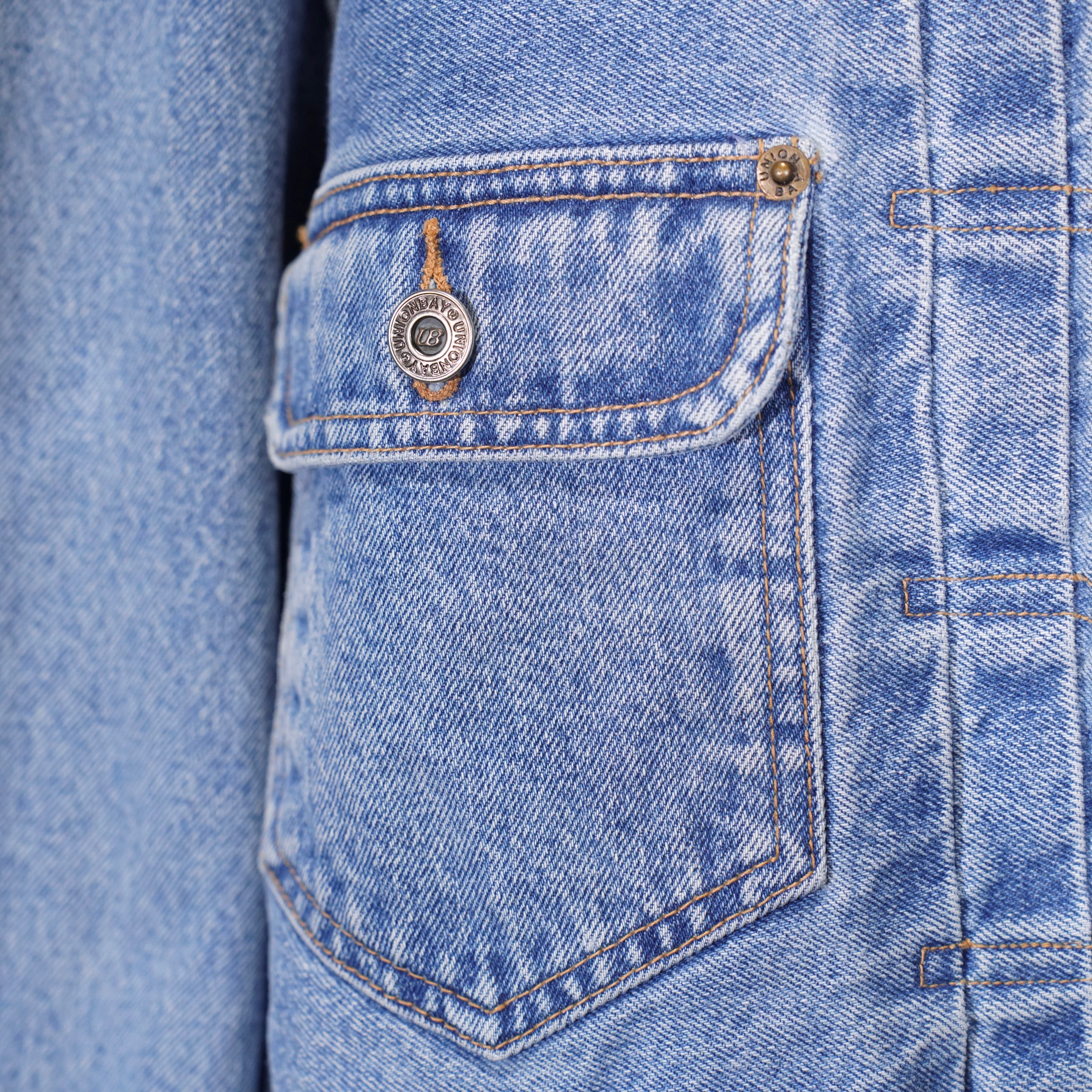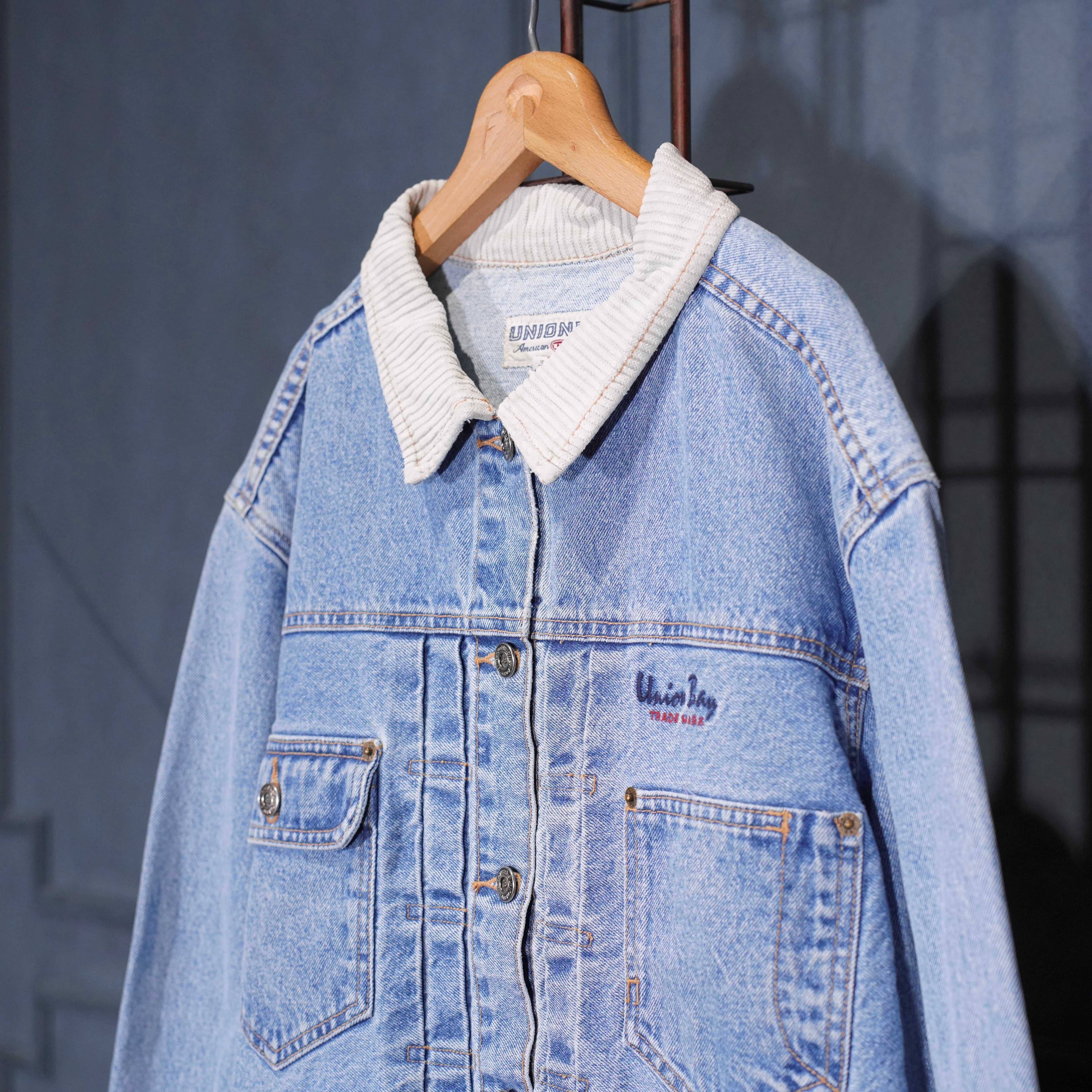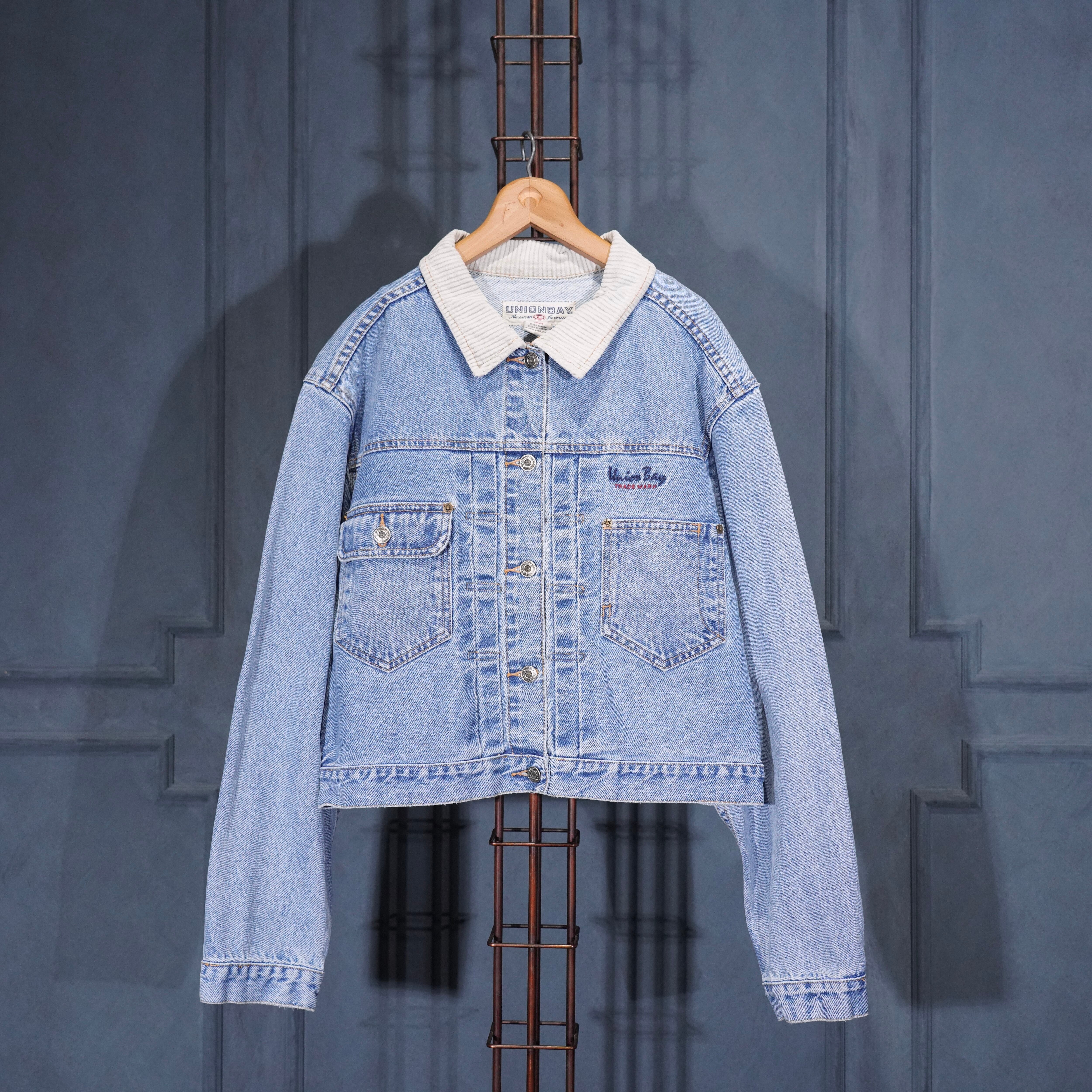 USA VINTAGE UNIONBAY SHORT LENGTH LOGO EMBROIDERY DESIGN DENIM JACKET/アメリカ古着ショート丈ロゴ刺繍デザインデニムジャケット