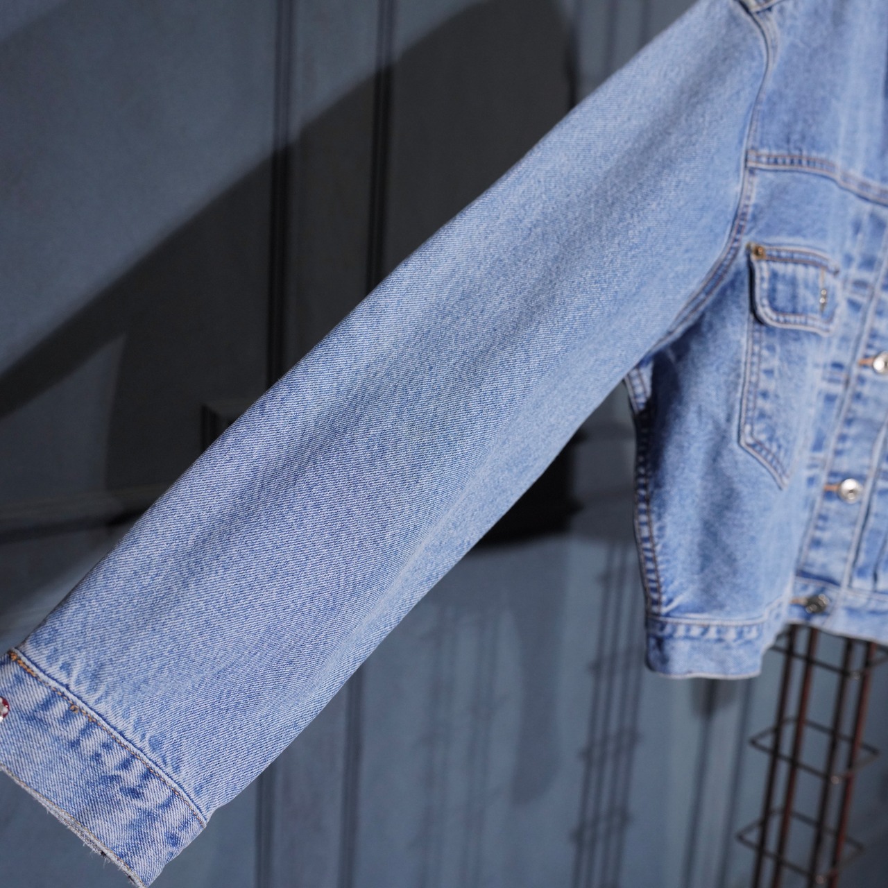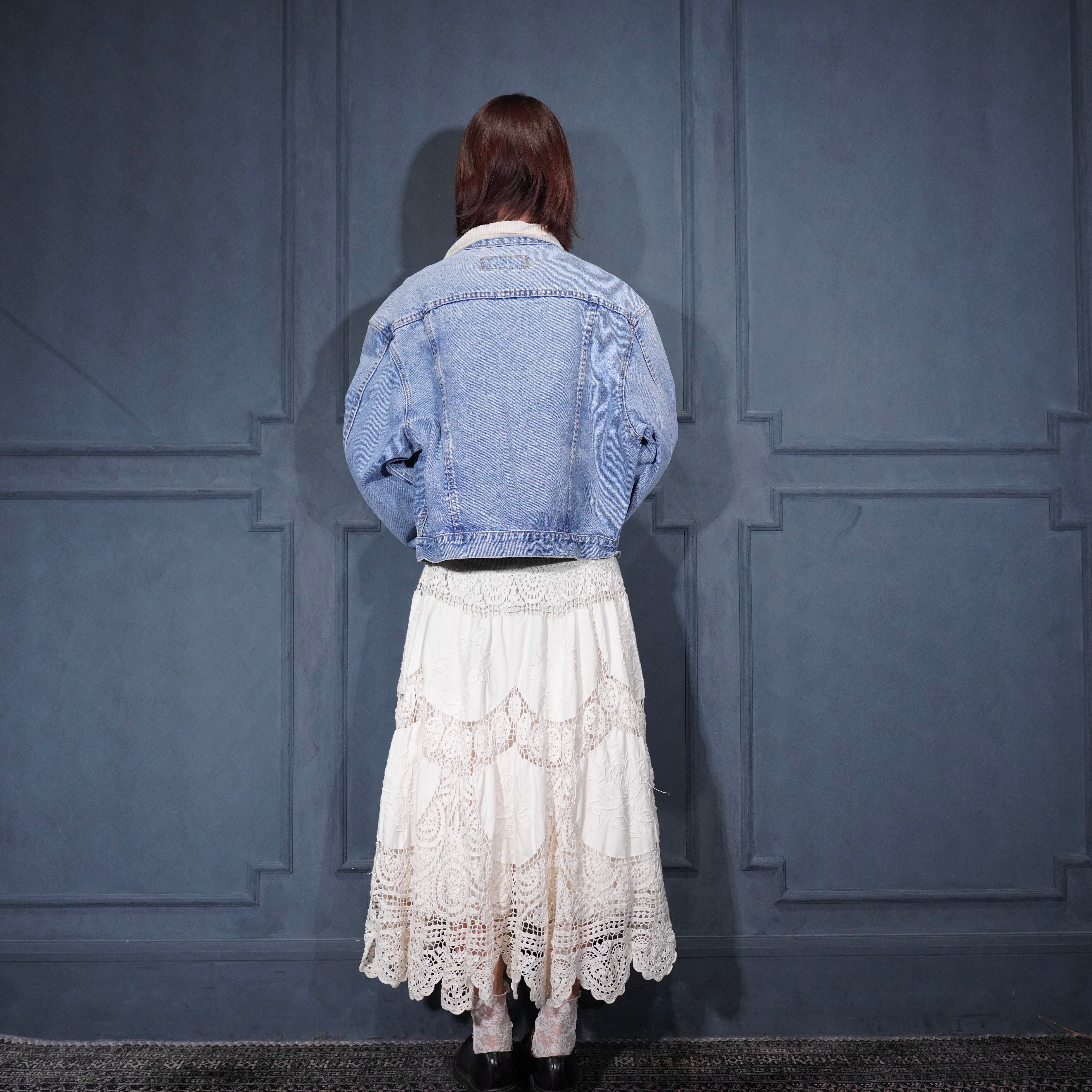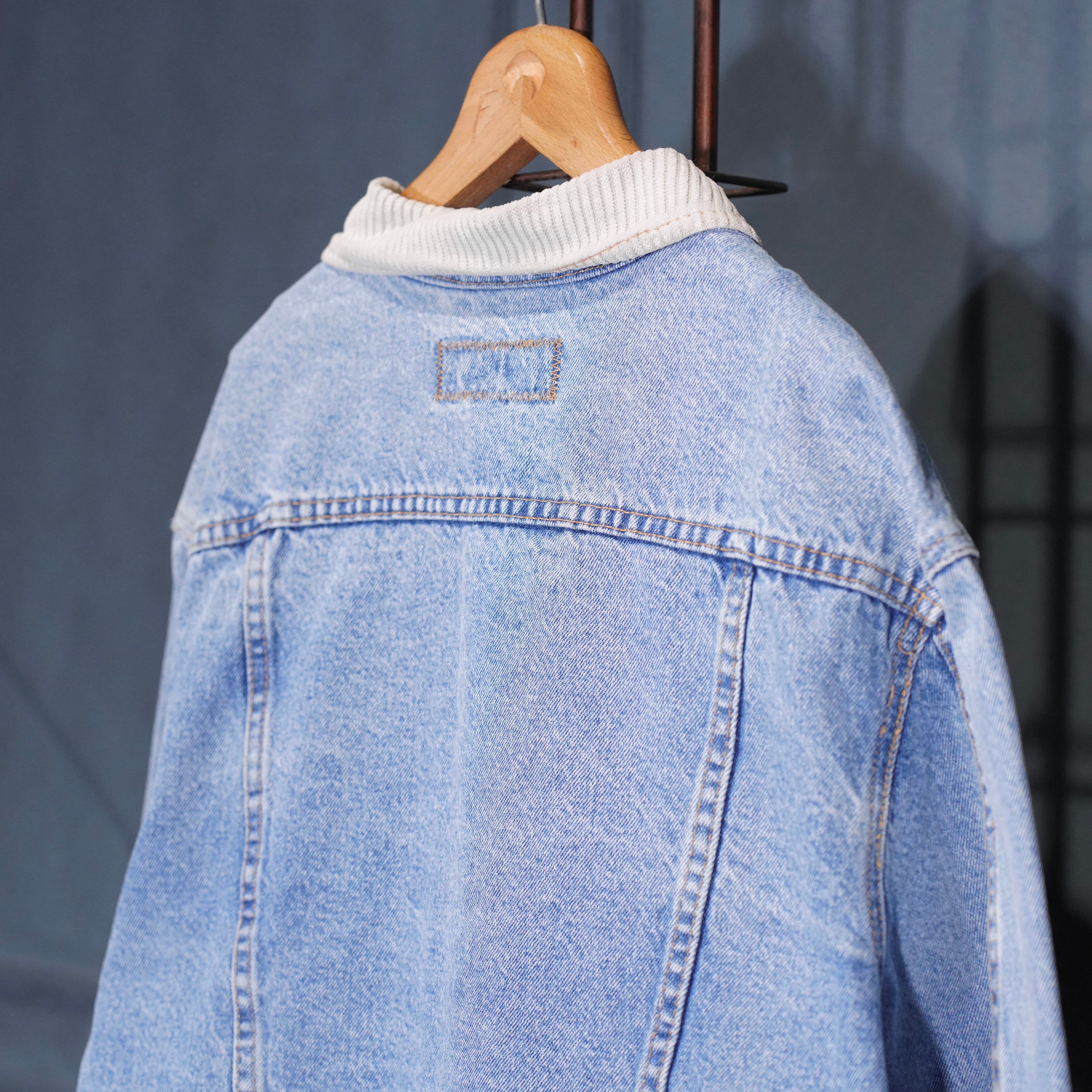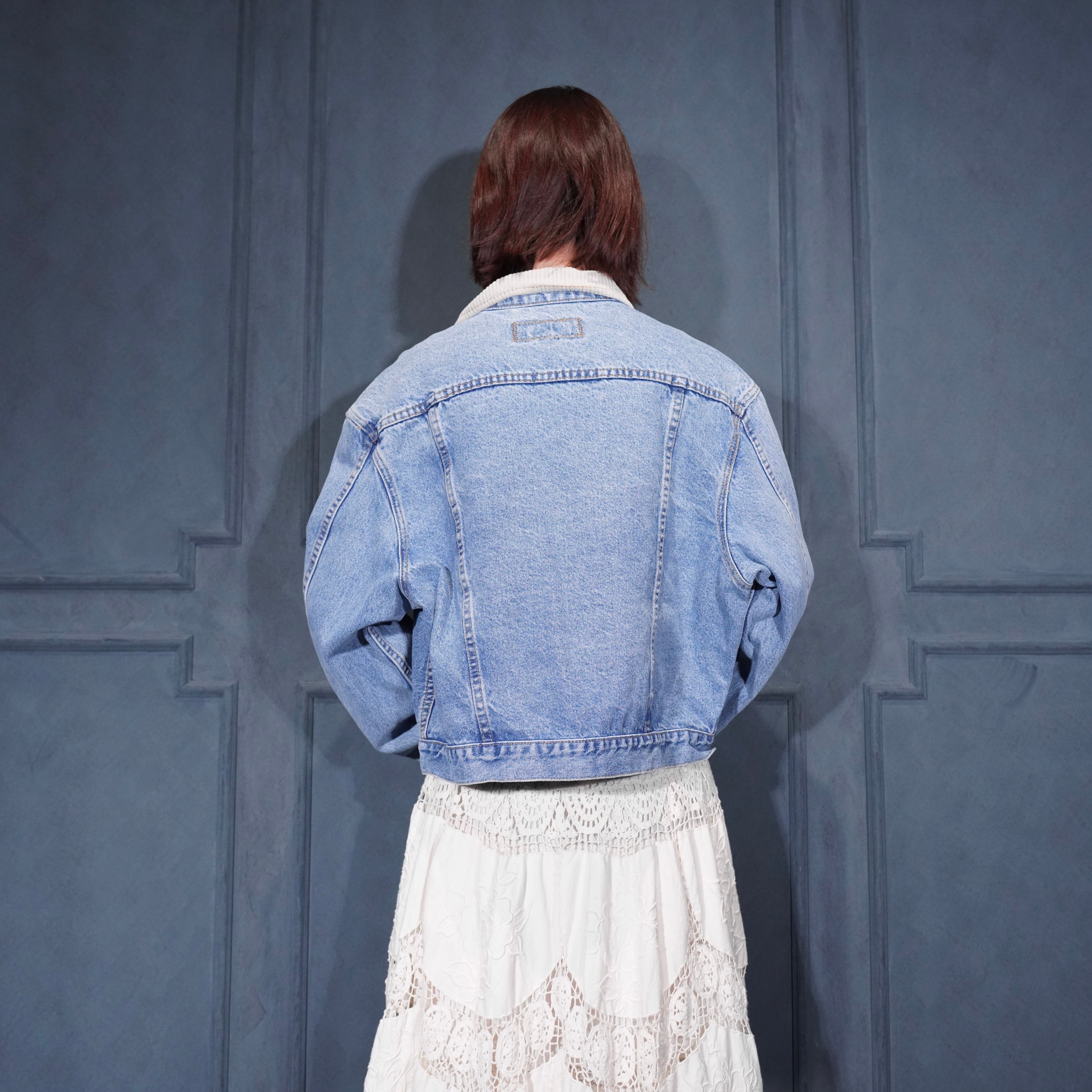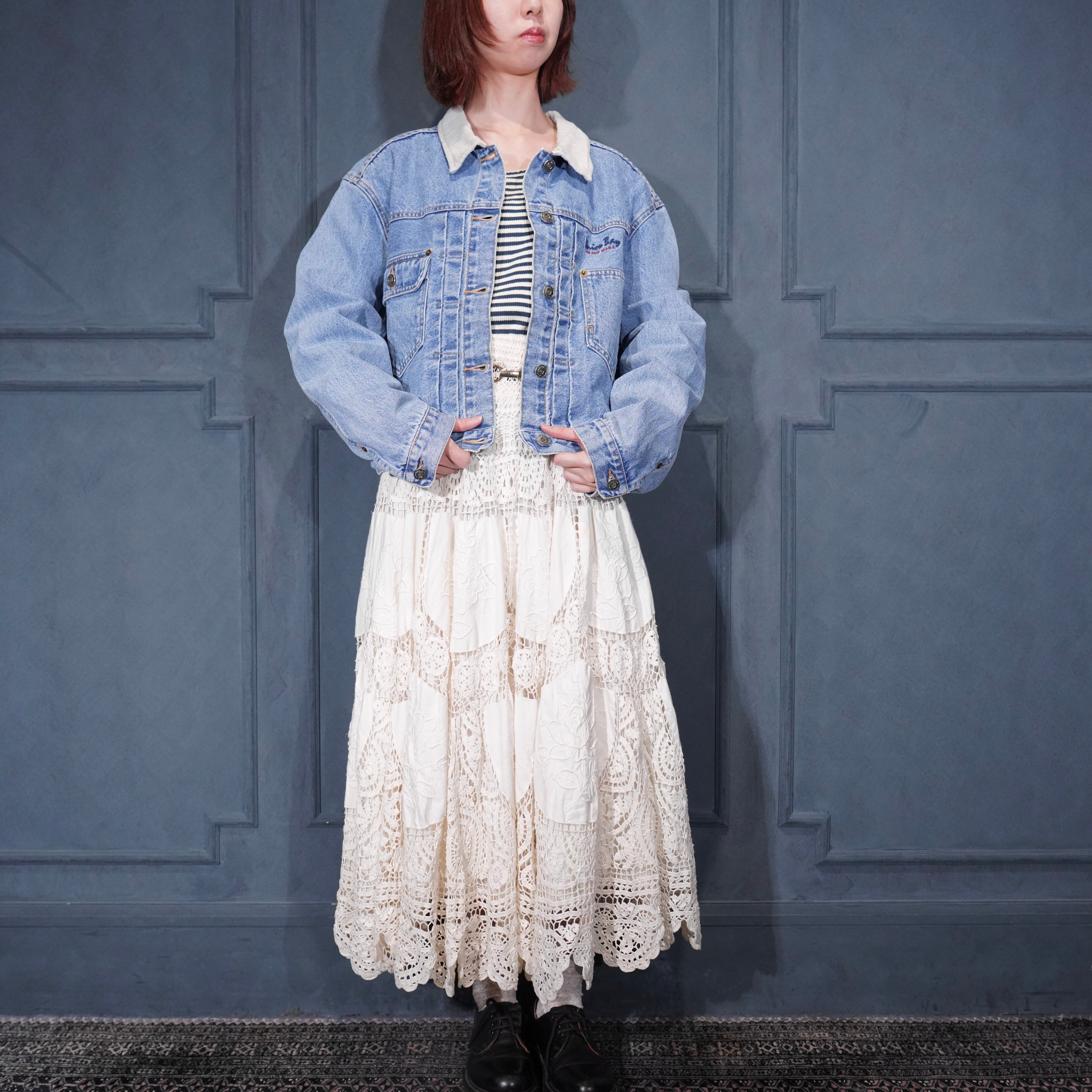 USA VINTAGE UNIONBAY SHORT LENGTH LOGO EMBROIDERY DESIGN DENIM JACKET/アメリカ古着ショート丈ロゴ刺繍デザインデニムジャケット