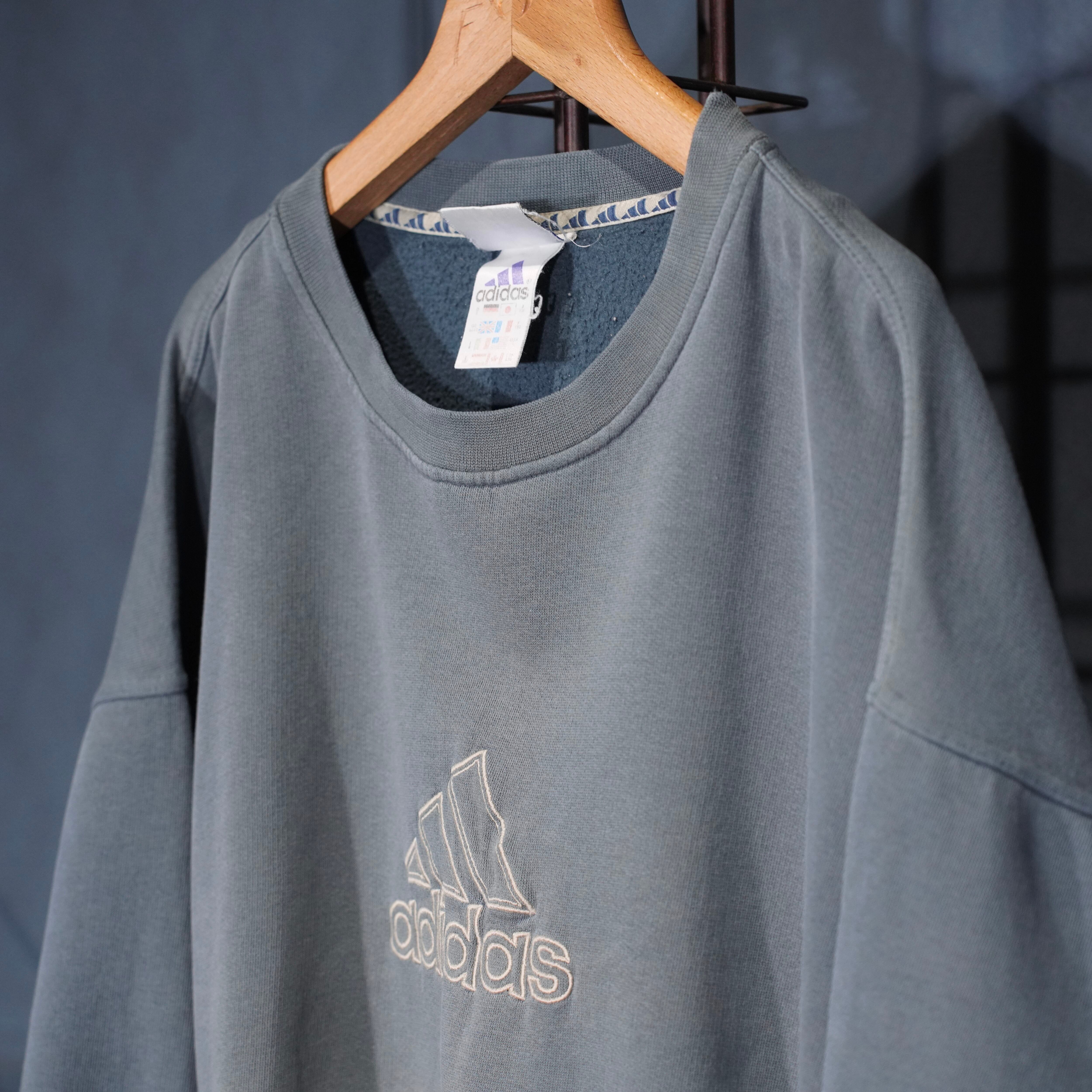 90's EU VINTAGE adidas LOGO EMBROIDERY FADED DESIGN SWEAT SHIRT MADE IN GREECE/90年代ヨーロッパ古着アディダスロゴ刺繍フェードデザインスウェット