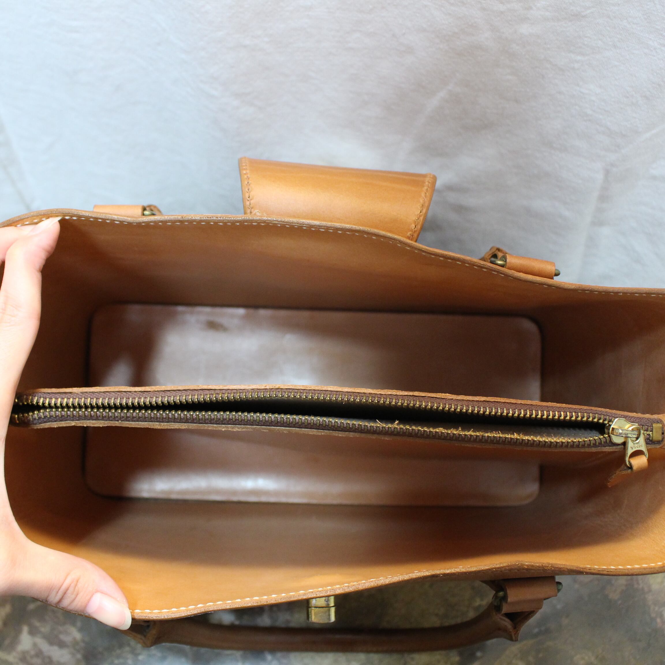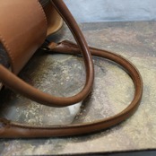 中でもレザーとしての人気が高いブライドルレザーを使用したバッグ。硬めですべすべとした質感が特徴で、非常に高級感があります。
