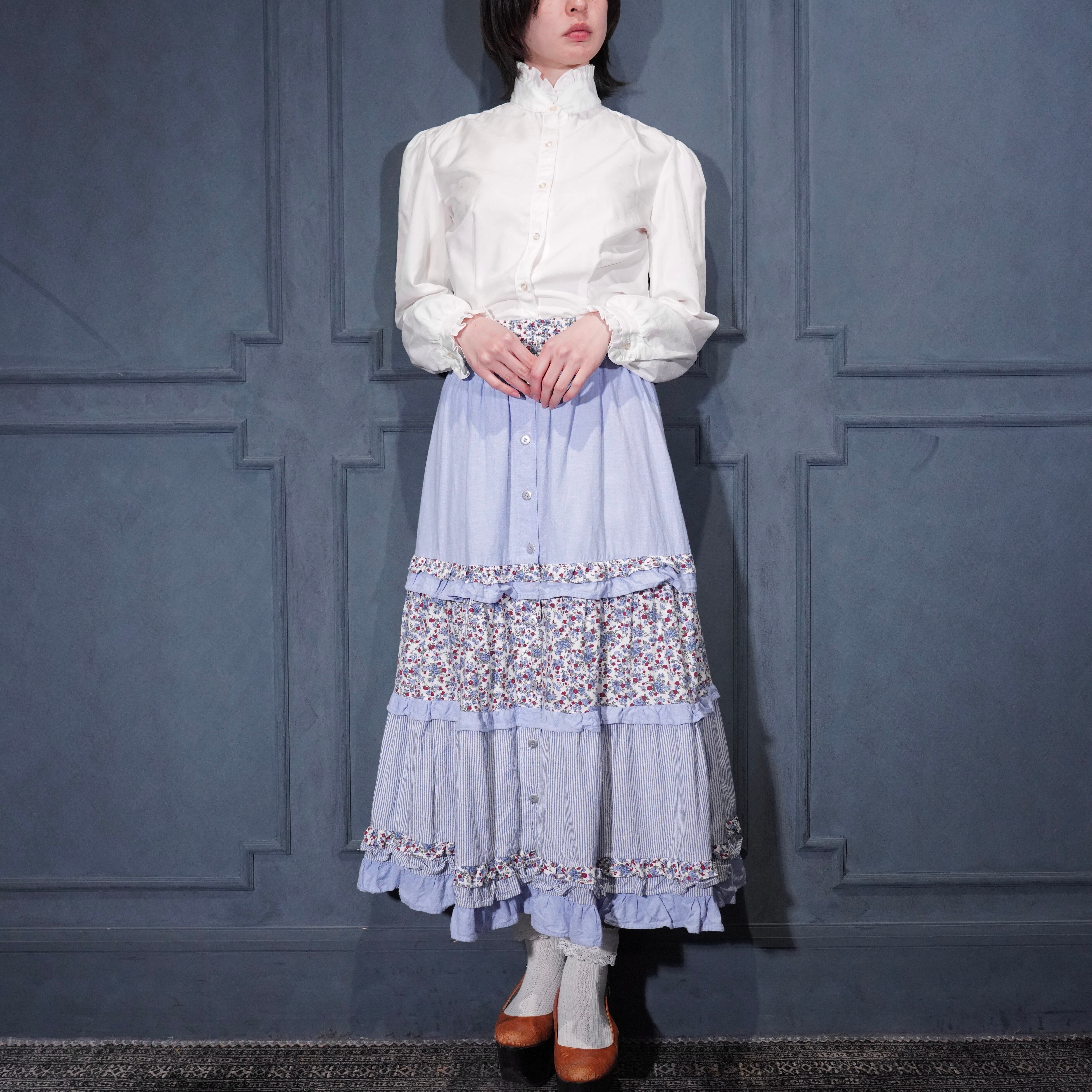 USA VINTAGE TRY1 FRILL COLLAR DESIGN BLOUSE/アメリカ古着フリル襟デザインブラウス