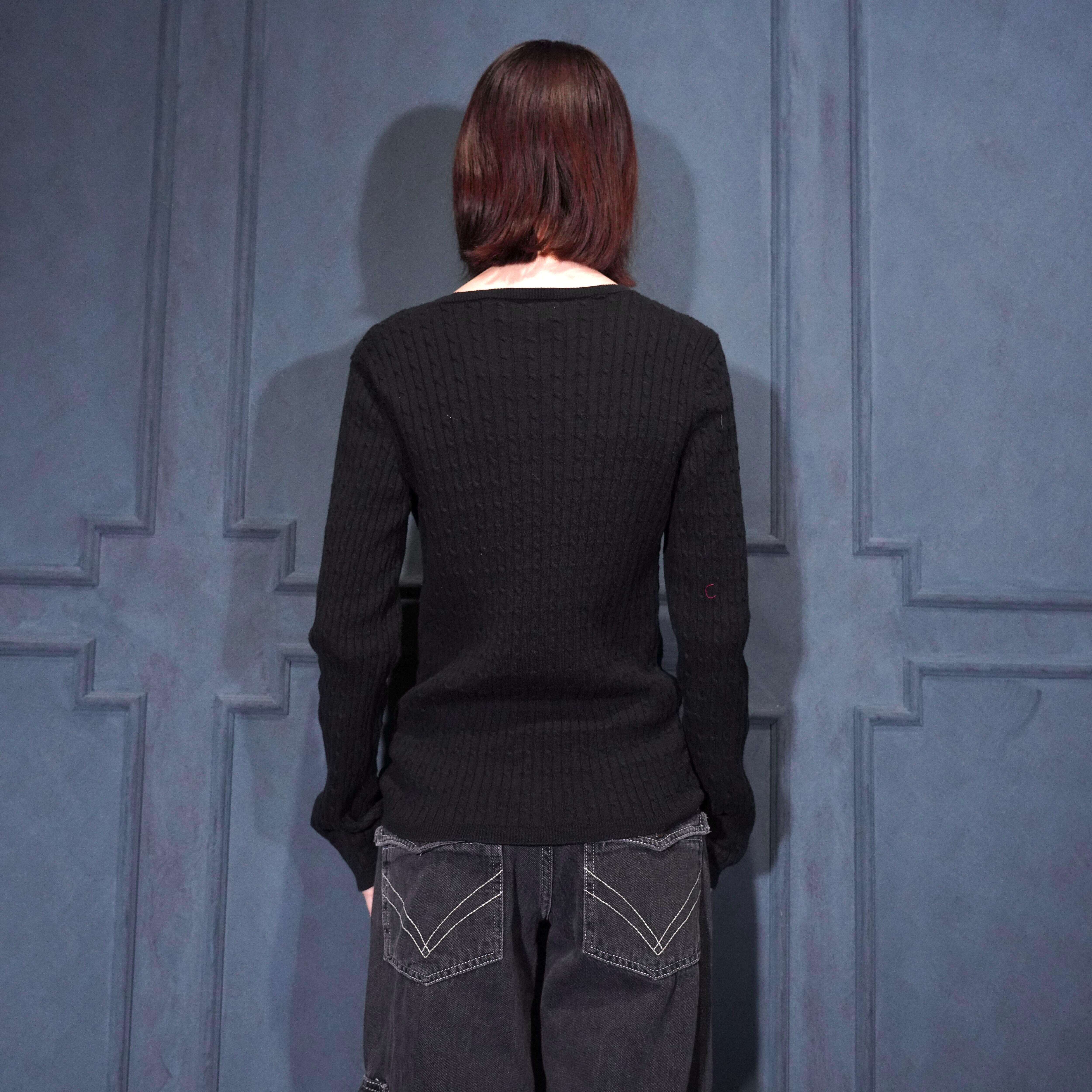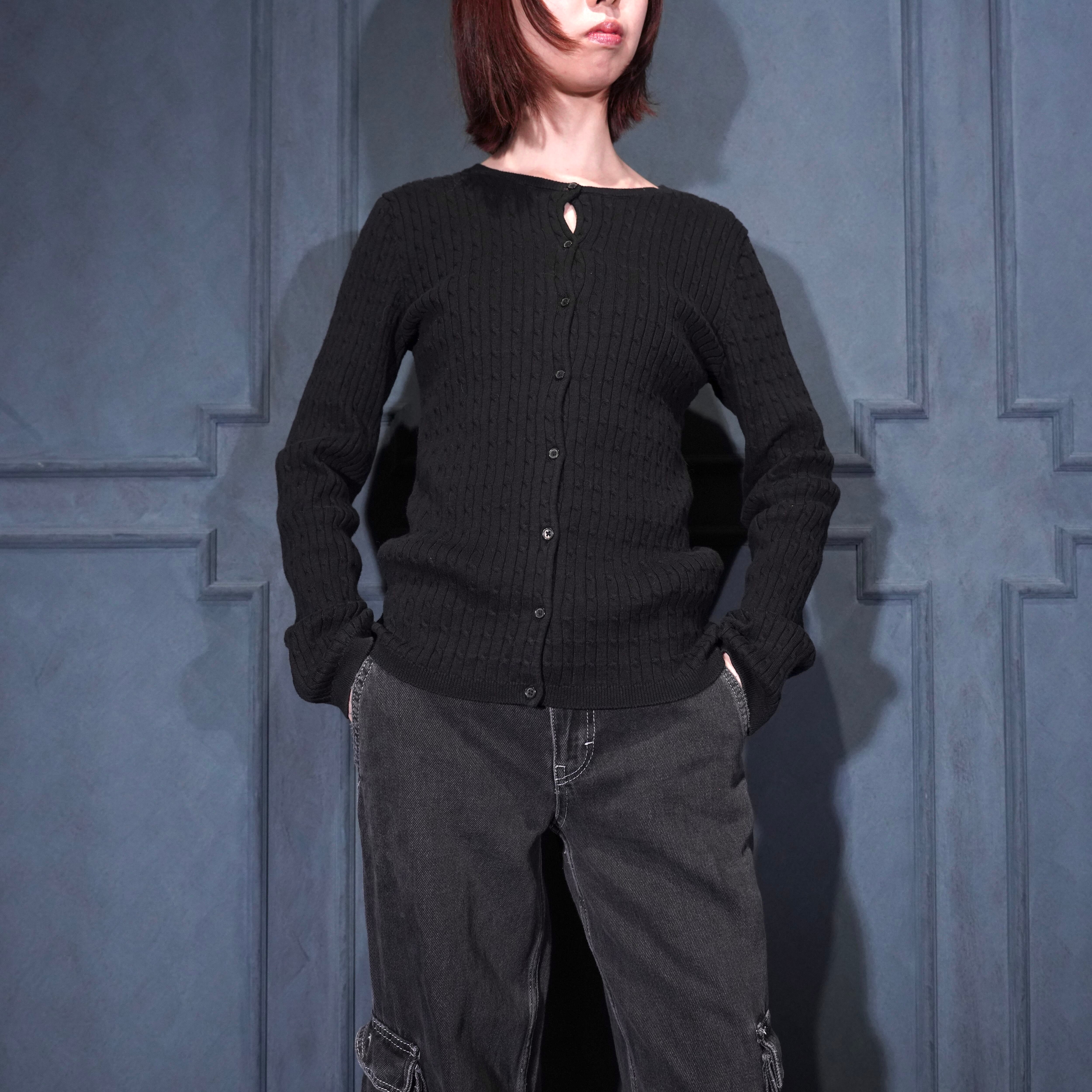 USA VINTAGE JONES SPORT WOVEN DESIGN STRETCH COTTON KNIT CARDIGAN/アメリカ古着織デザインストレッチコットンニットカーディガン
