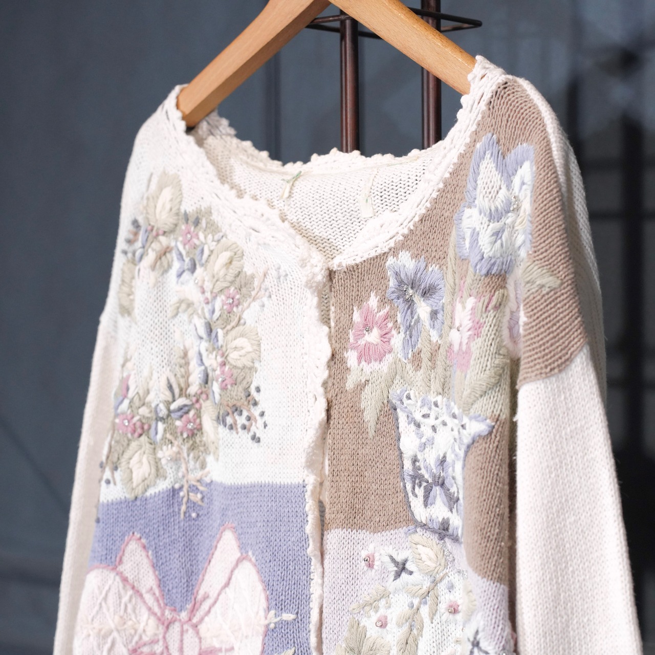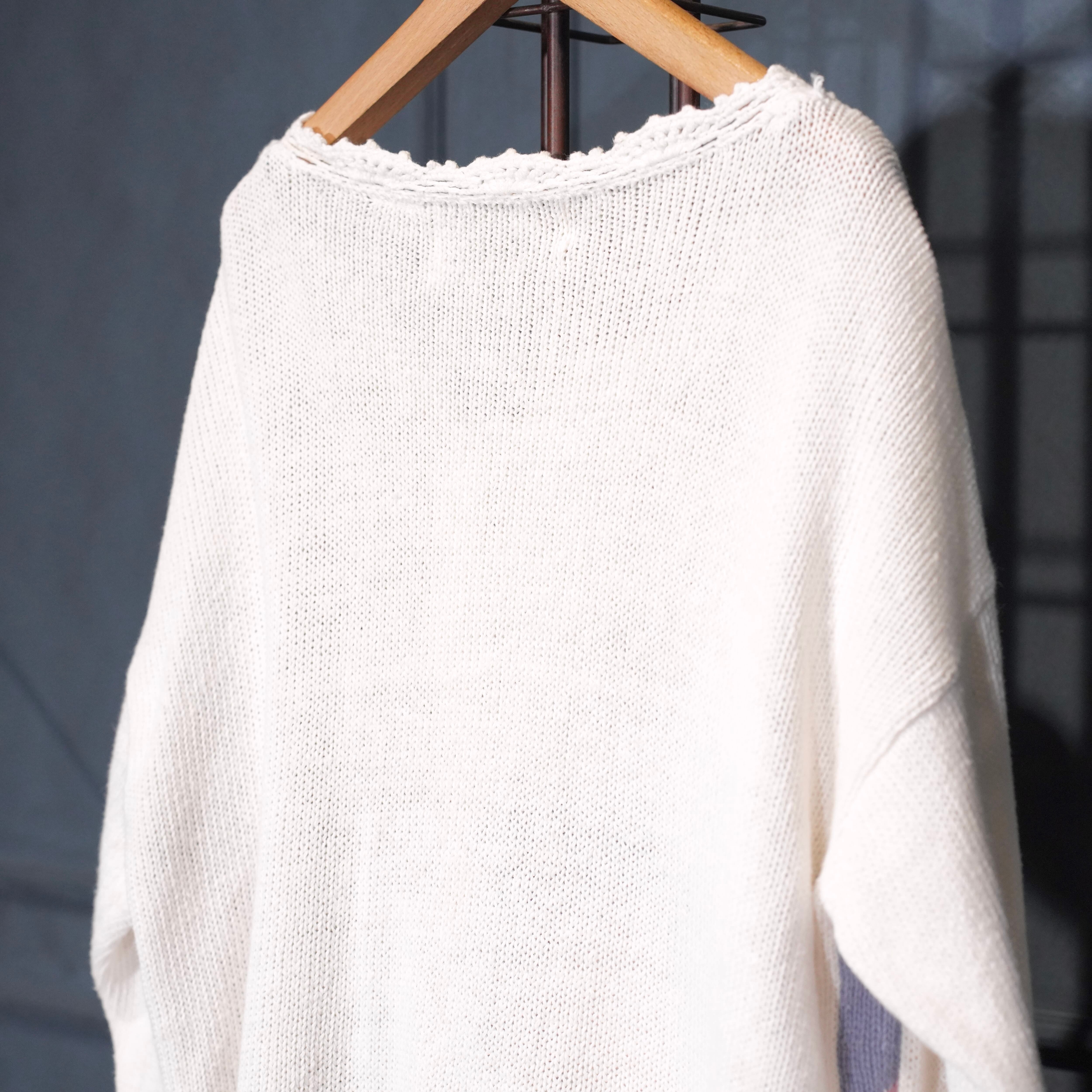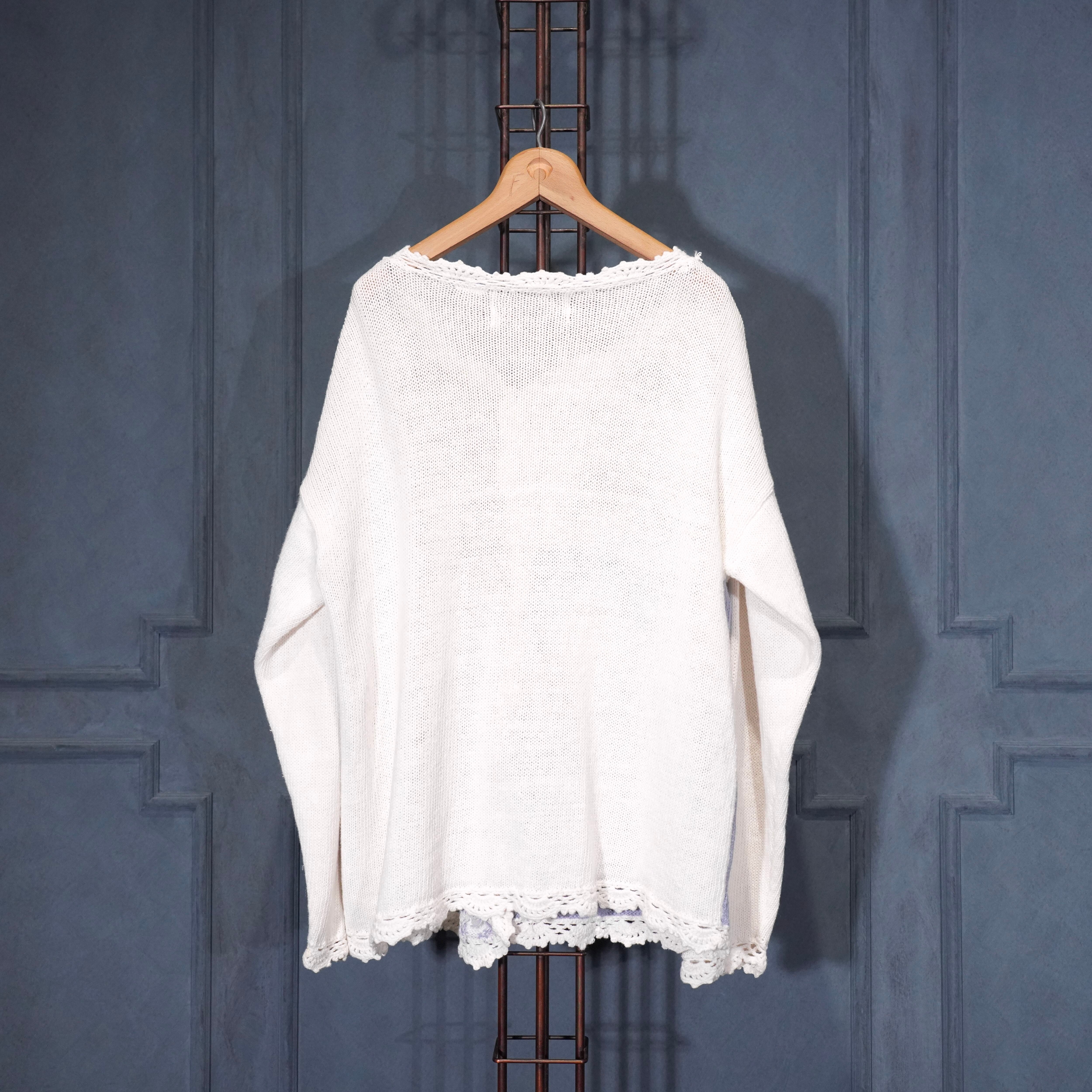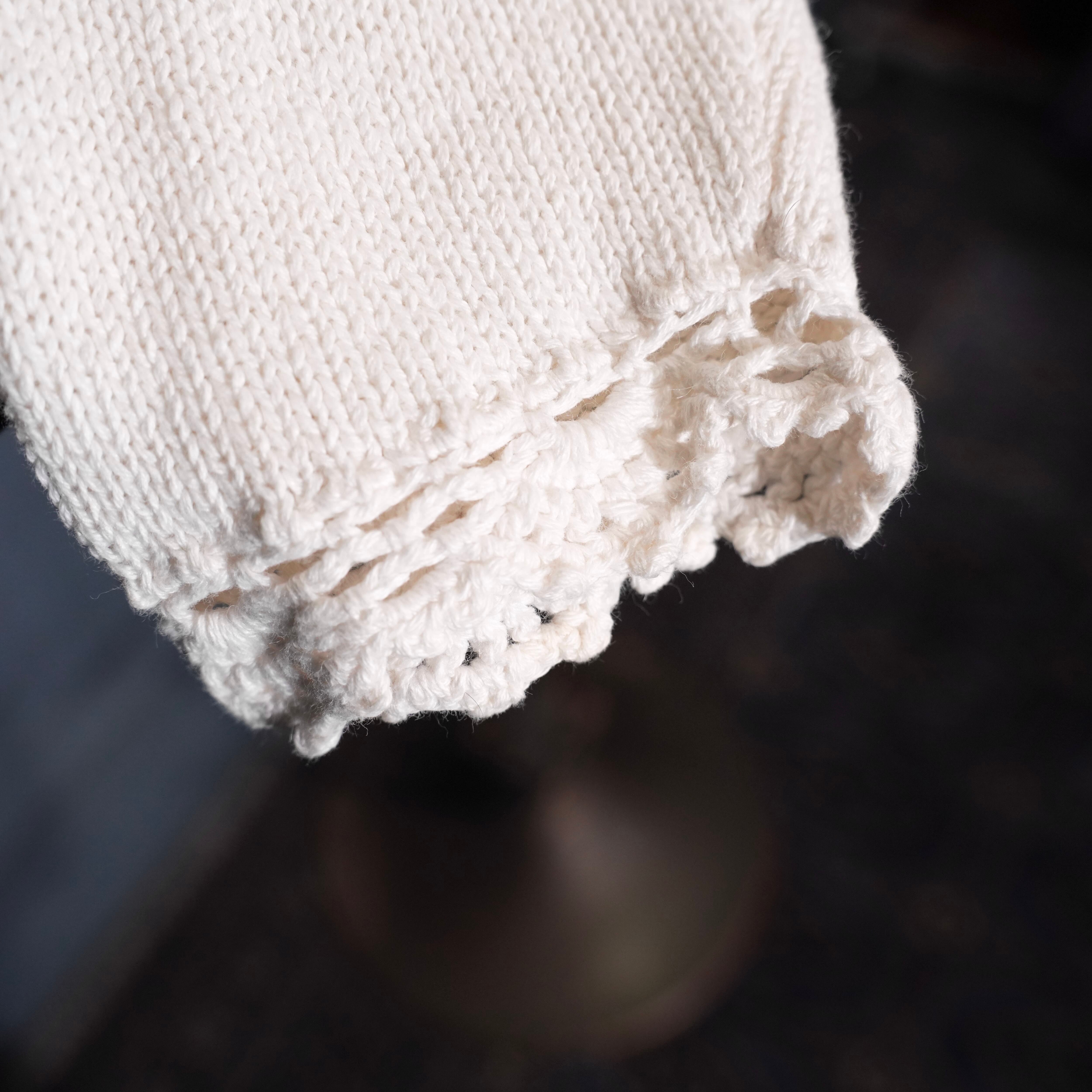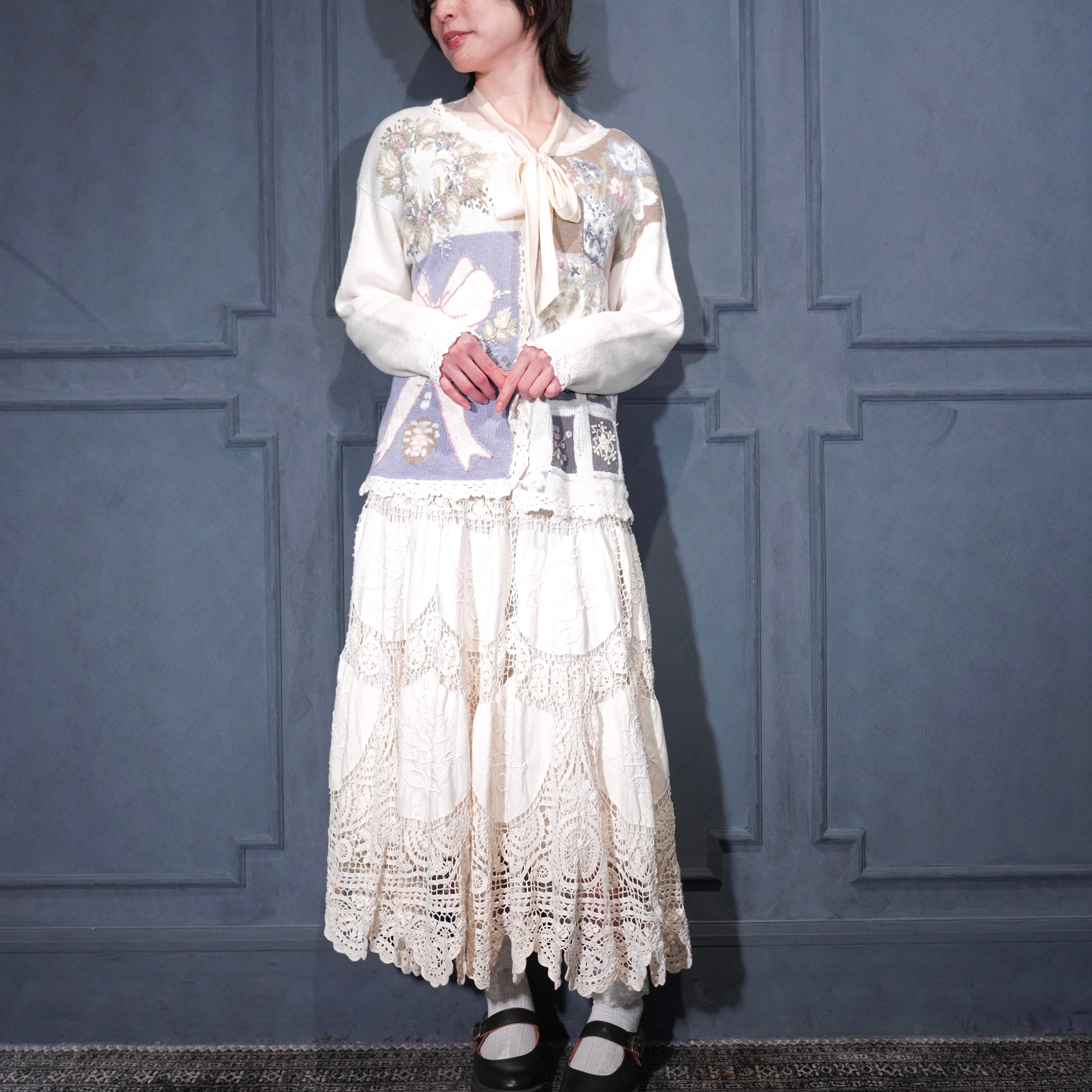 USA VINTAGE FLOWER EMBROIDERY DESIGN COTTON RAMIE HAND KNIT CARDIGAN/アメリカ古着お花刺繍デザインコットンラミーハンドニットカーディガン