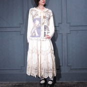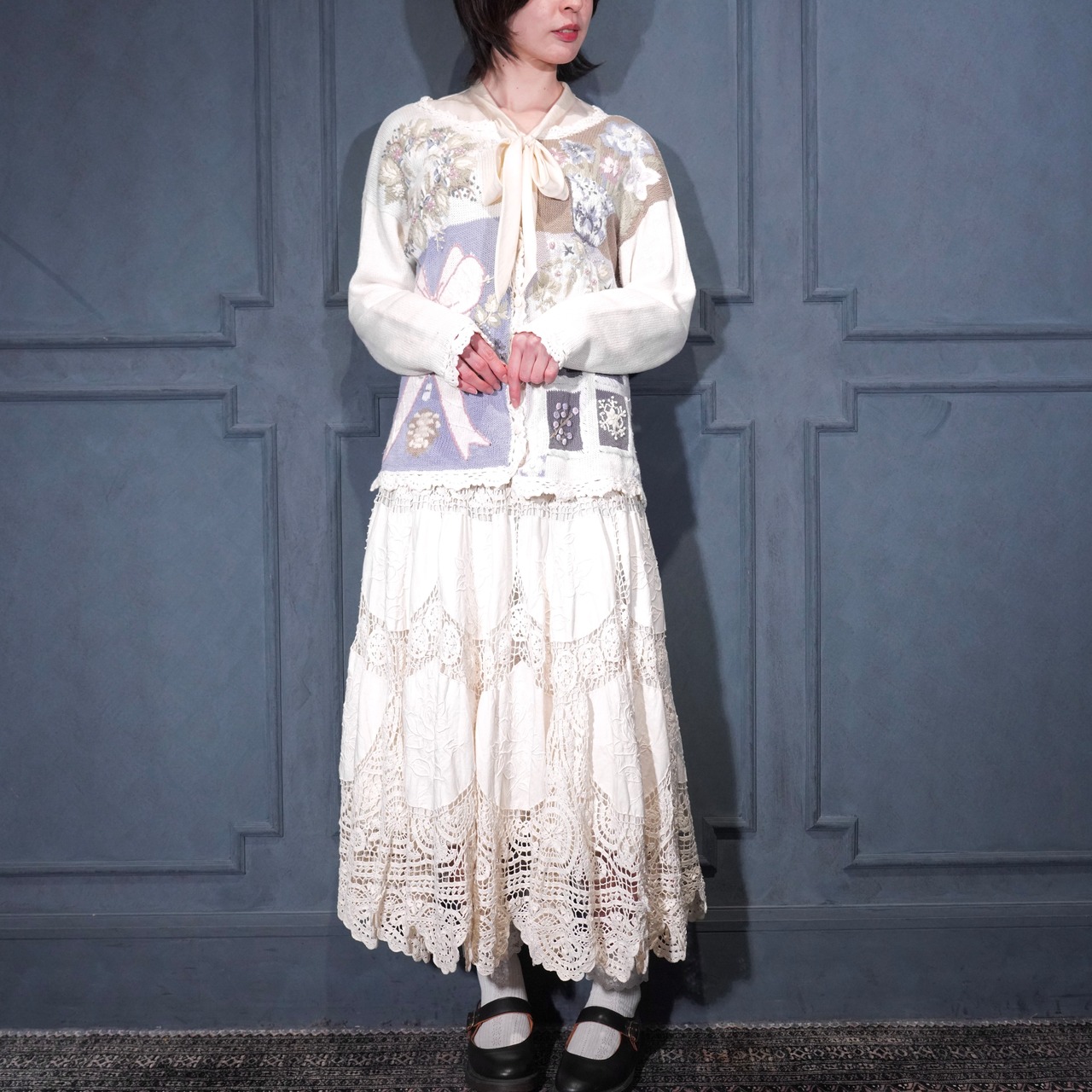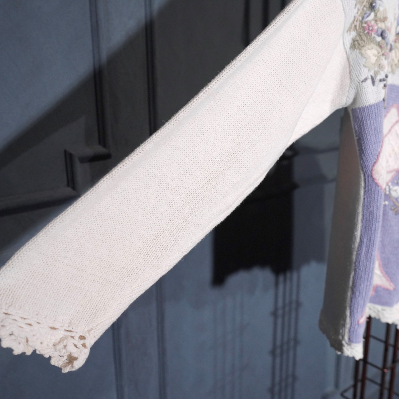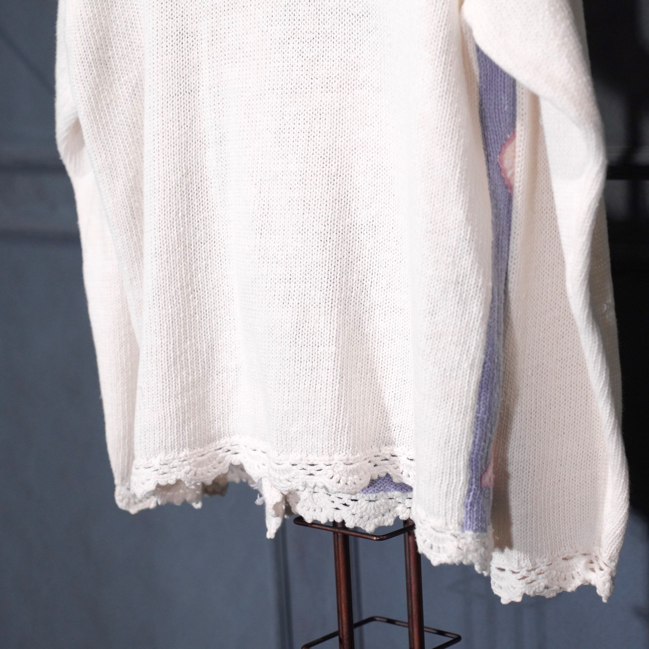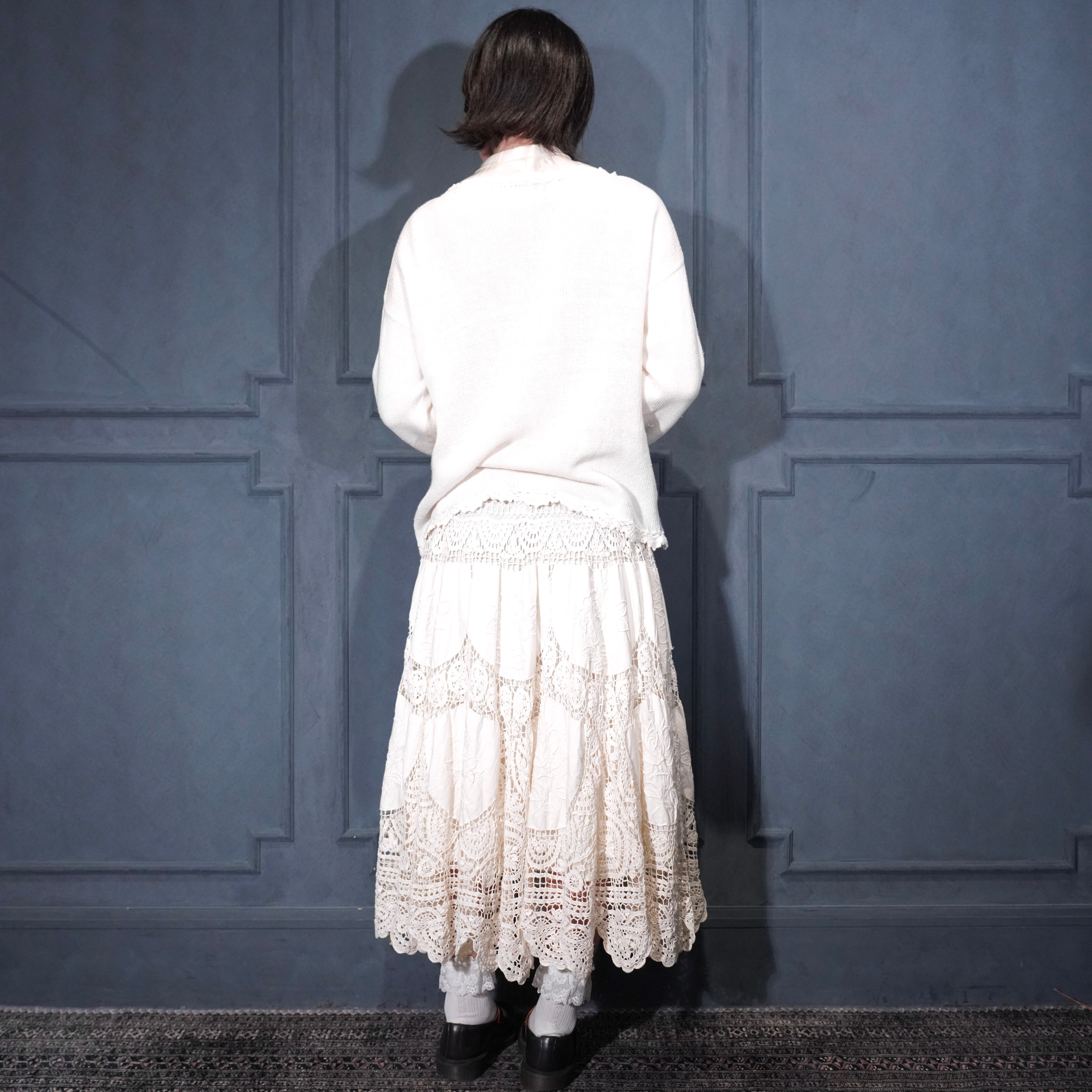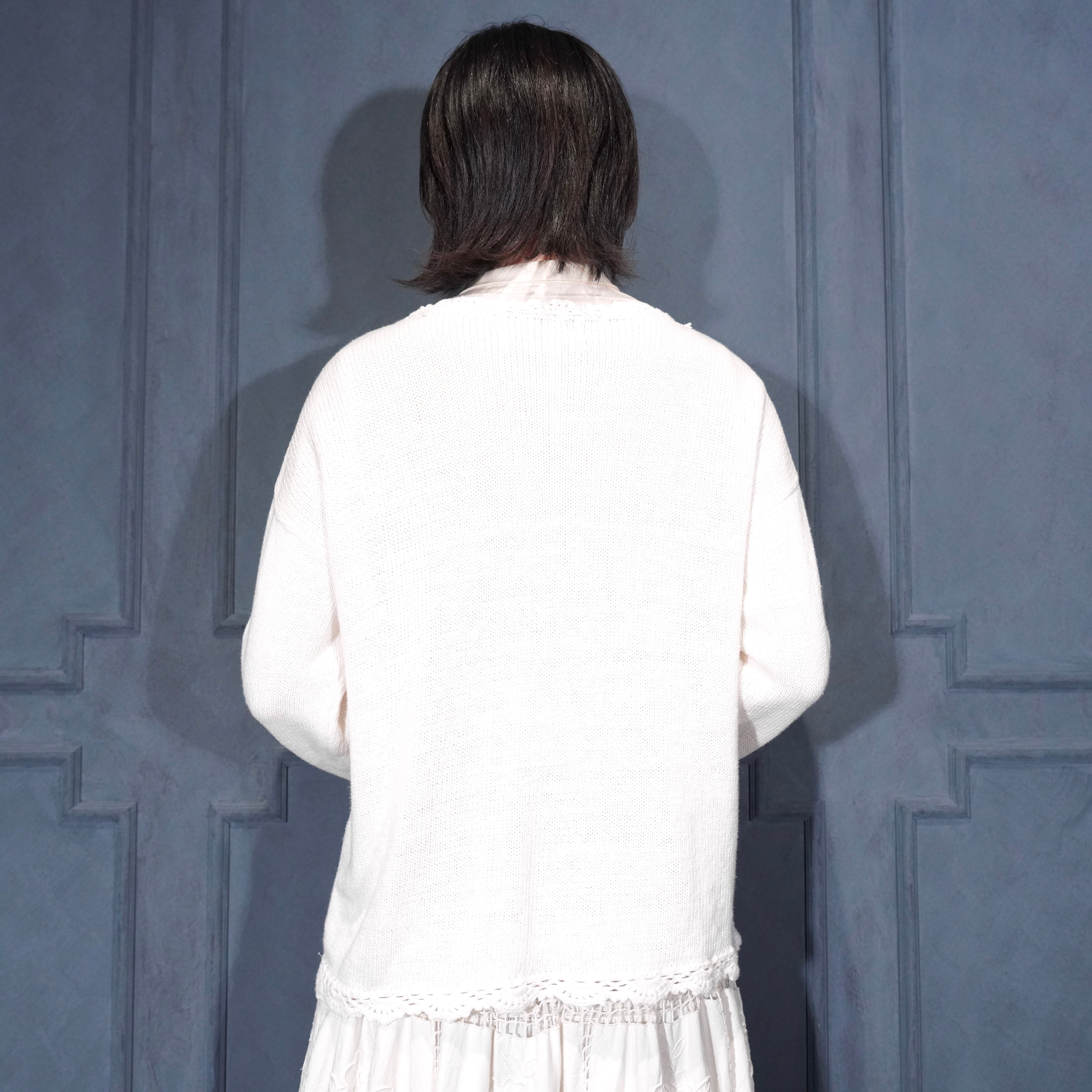 USA VINTAGE FLOWER EMBROIDERY DESIGN COTTON RAMIE HAND KNIT CARDIGAN/アメリカ古着お花刺繍デザインコットンラミーハンドニットカーディガン
