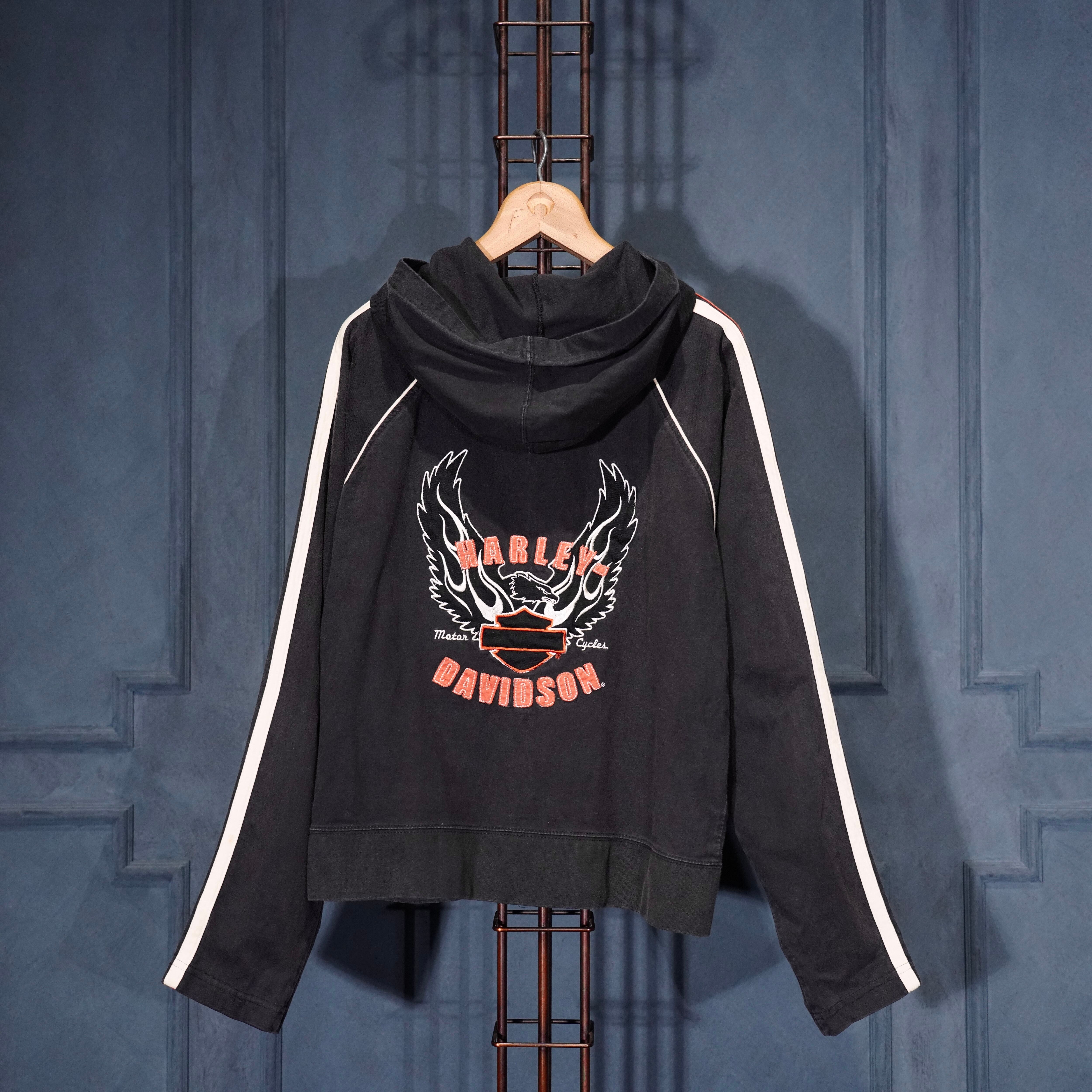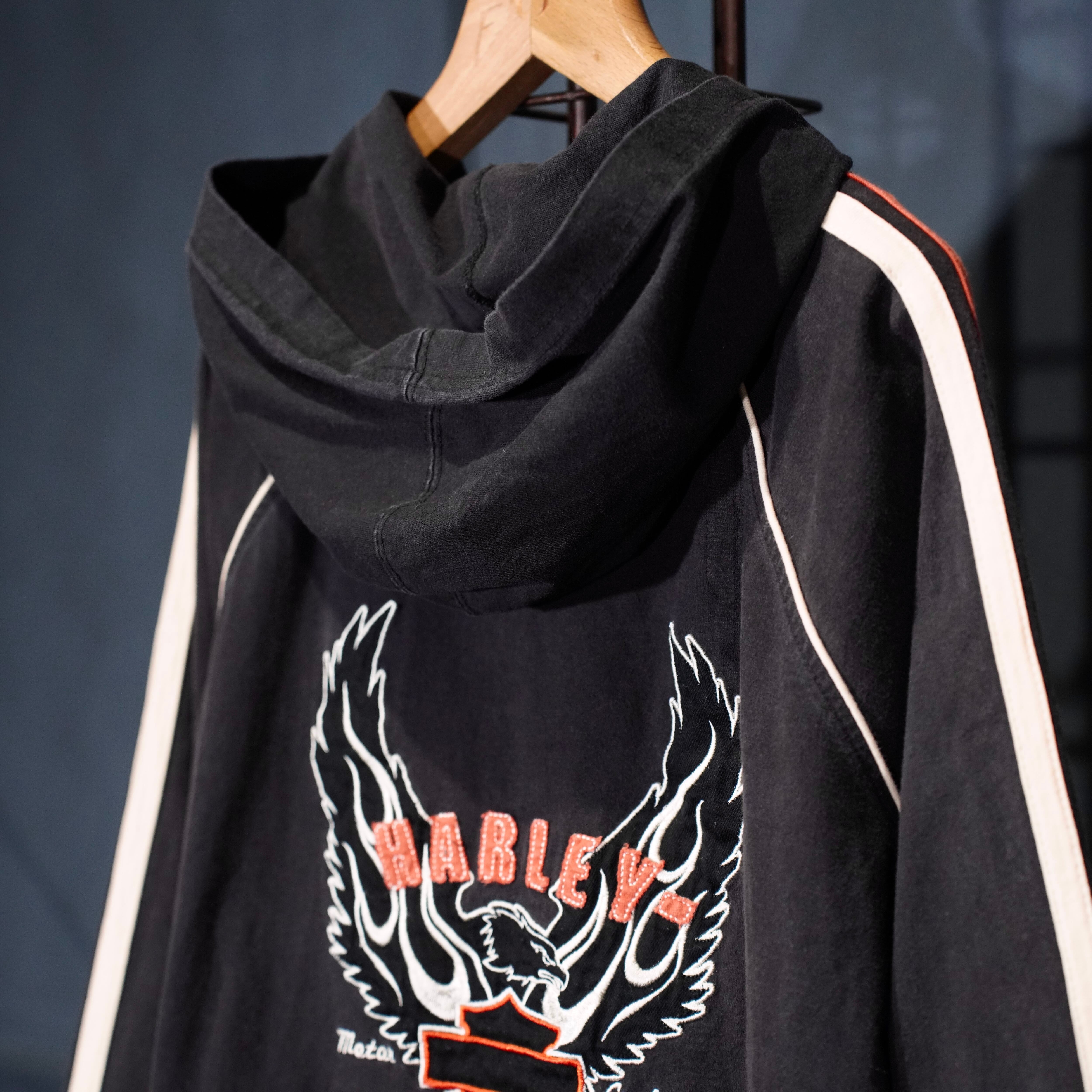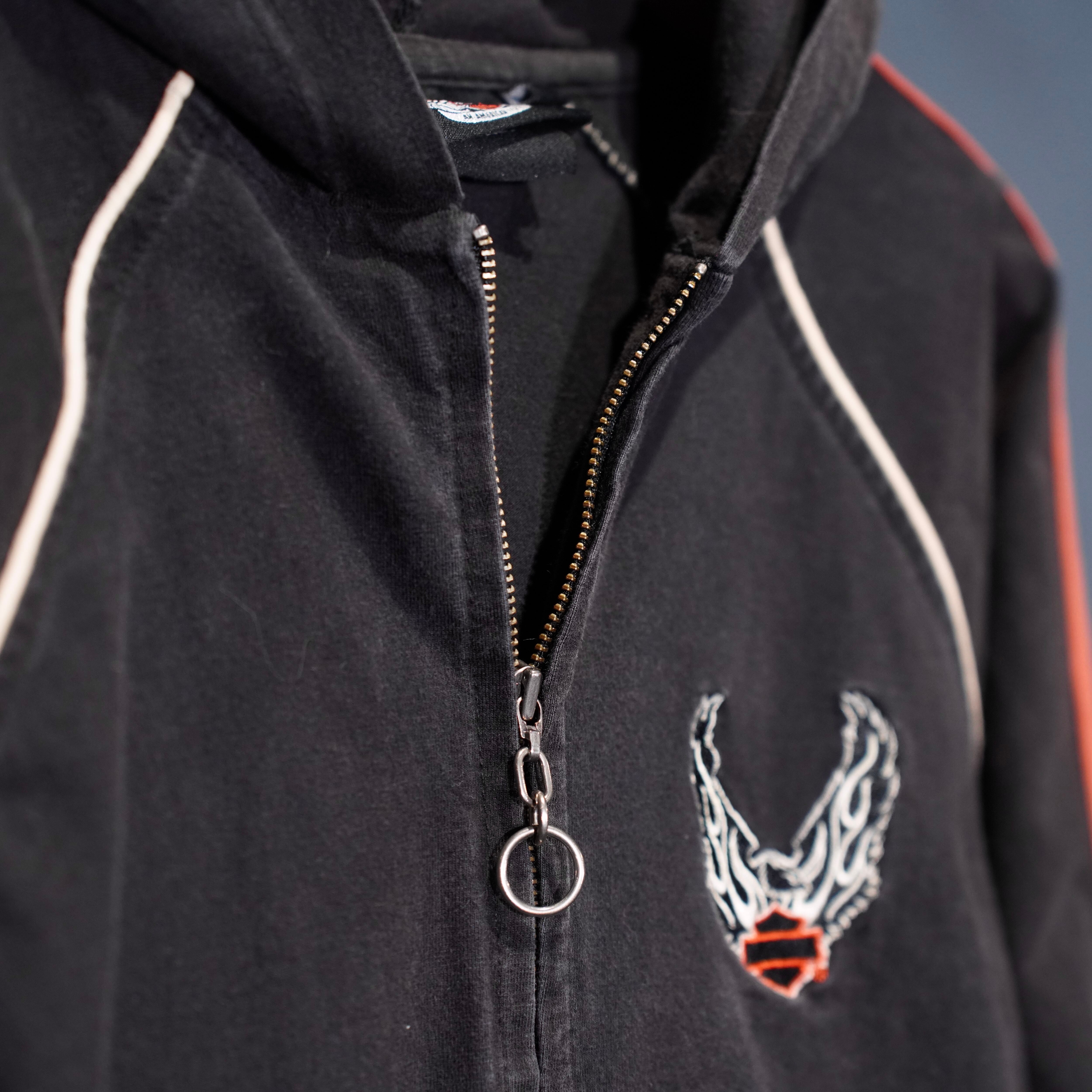 USA VINTAGE Harley Davidson LOGO EMBROIDERY DESIGN SWEAT ZIP UP HOODIE/アメリカ古着ハーレーダヴィッドソンロゴ刺繍デザインスウェットジップアップフーディ(パーカー)