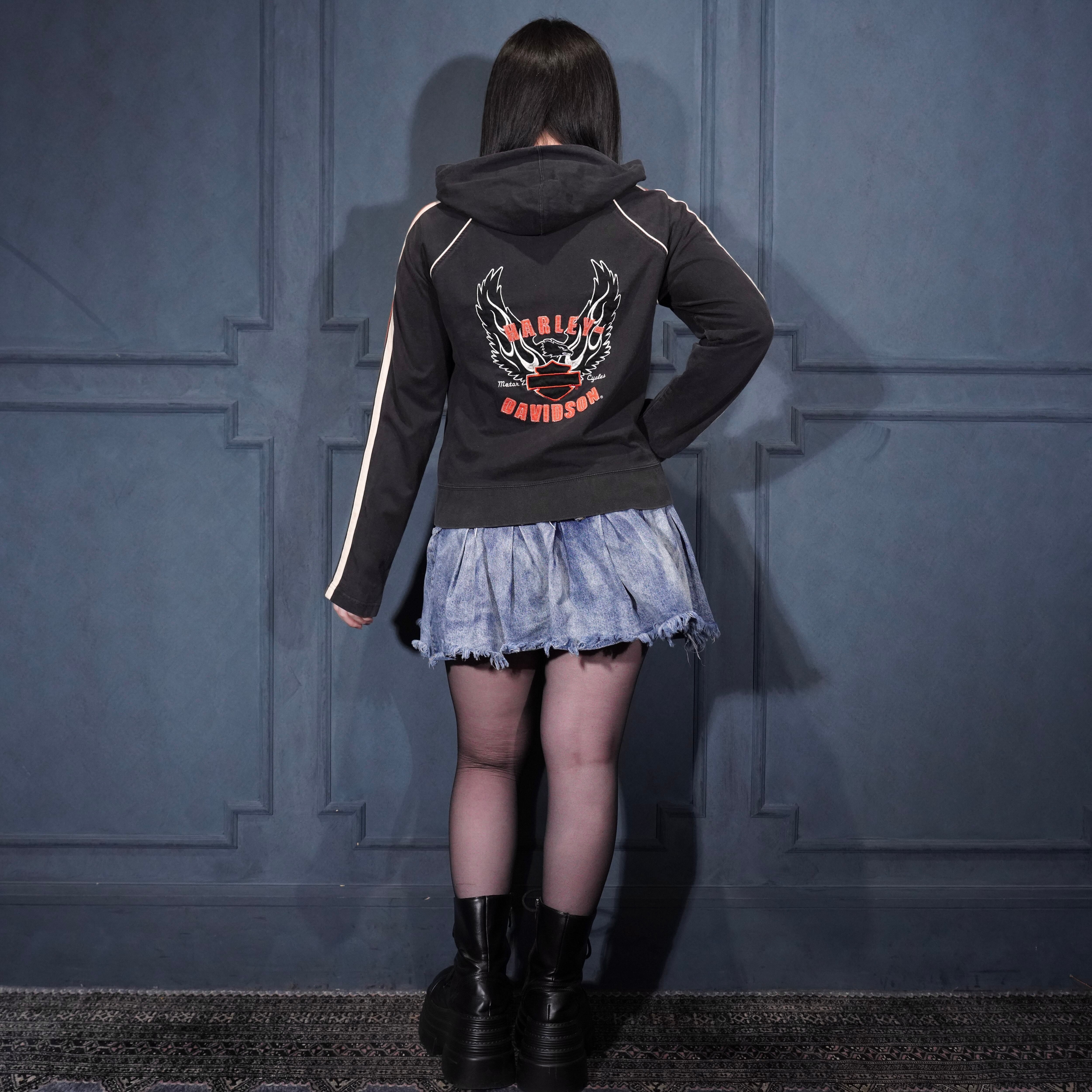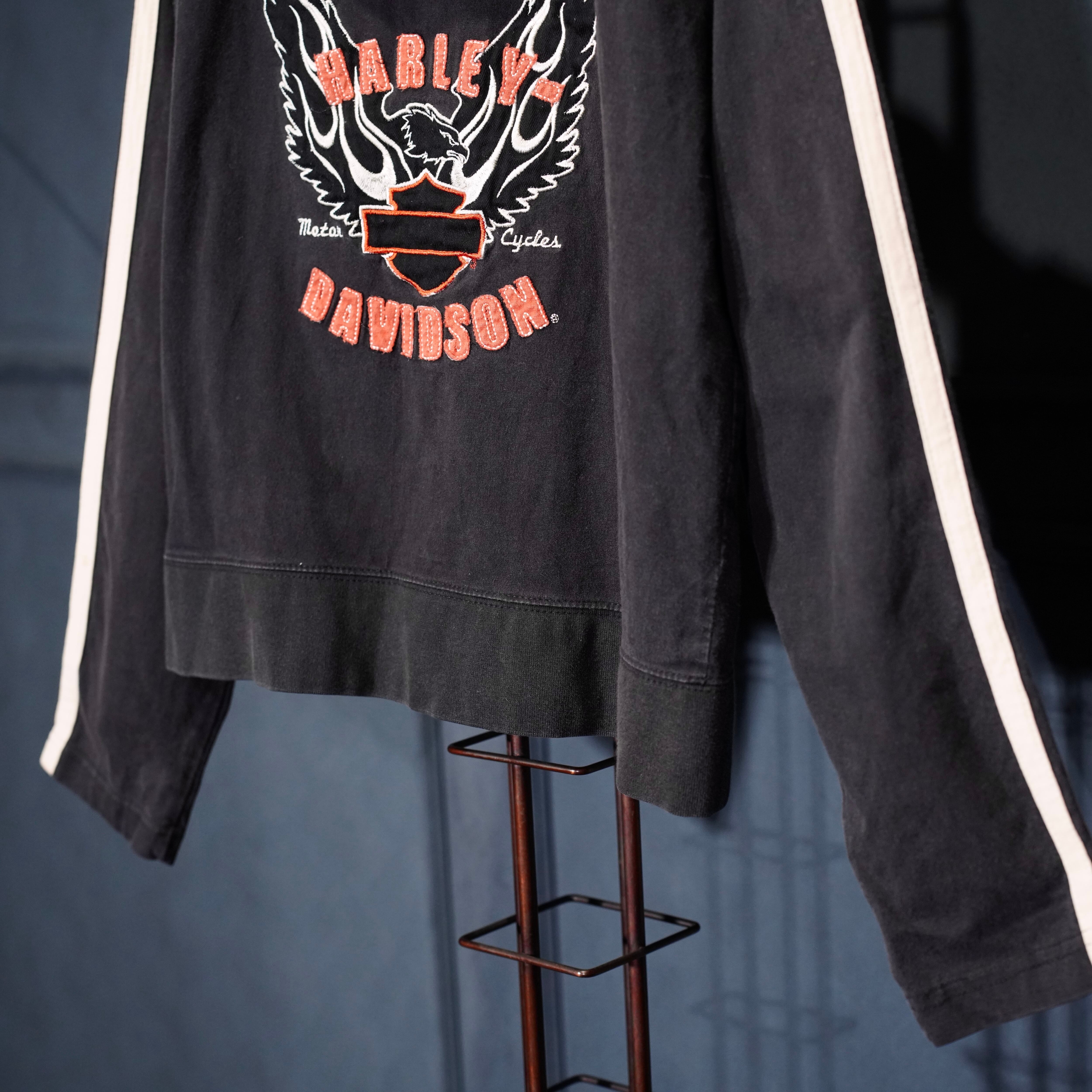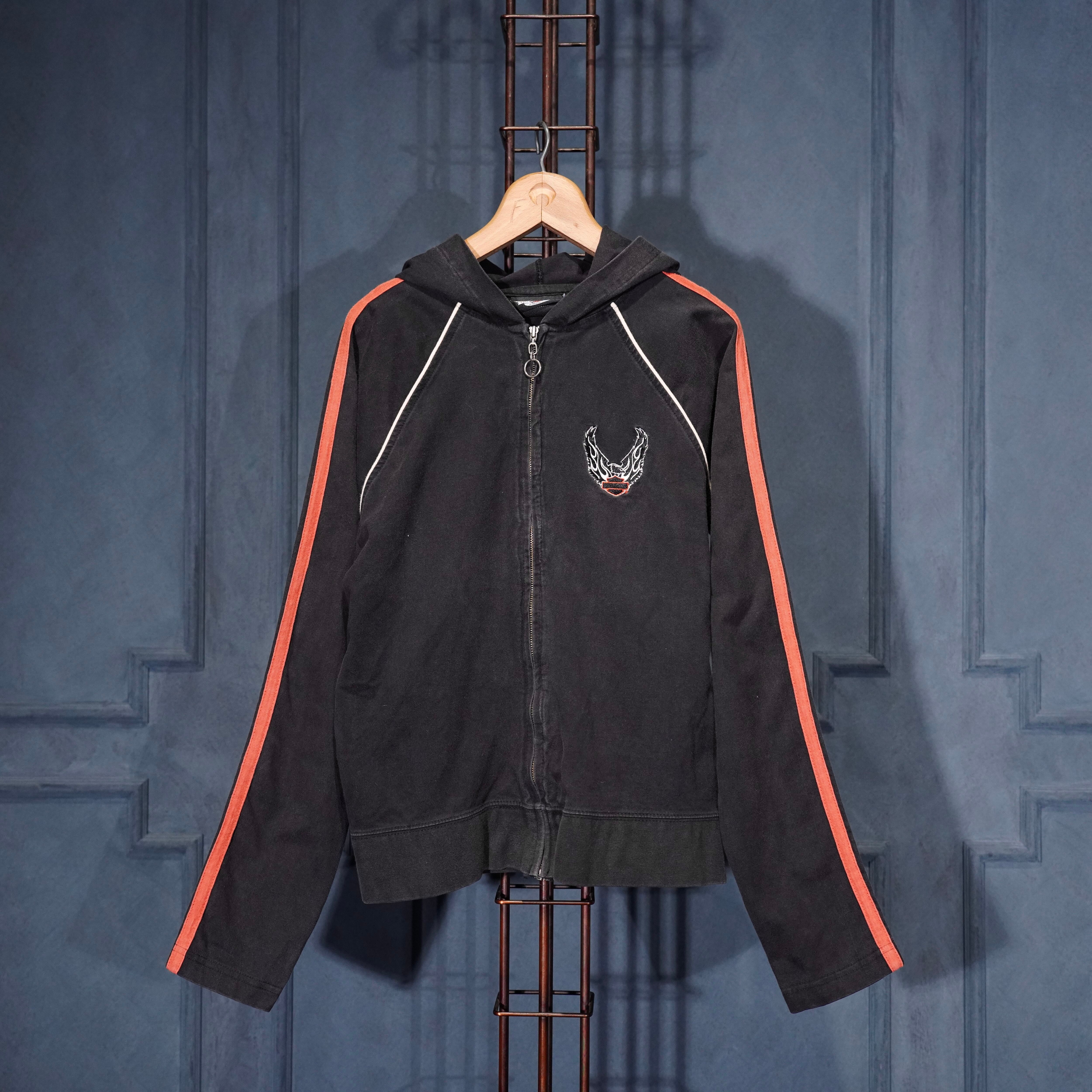 USA VINTAGE Harley Davidson LOGO EMBROIDERY DESIGN SWEAT ZIP UP HOODIE/アメリカ古着ハーレーダヴィッドソンロゴ刺繍デザインスウェットジップアップフーディ(パーカー)