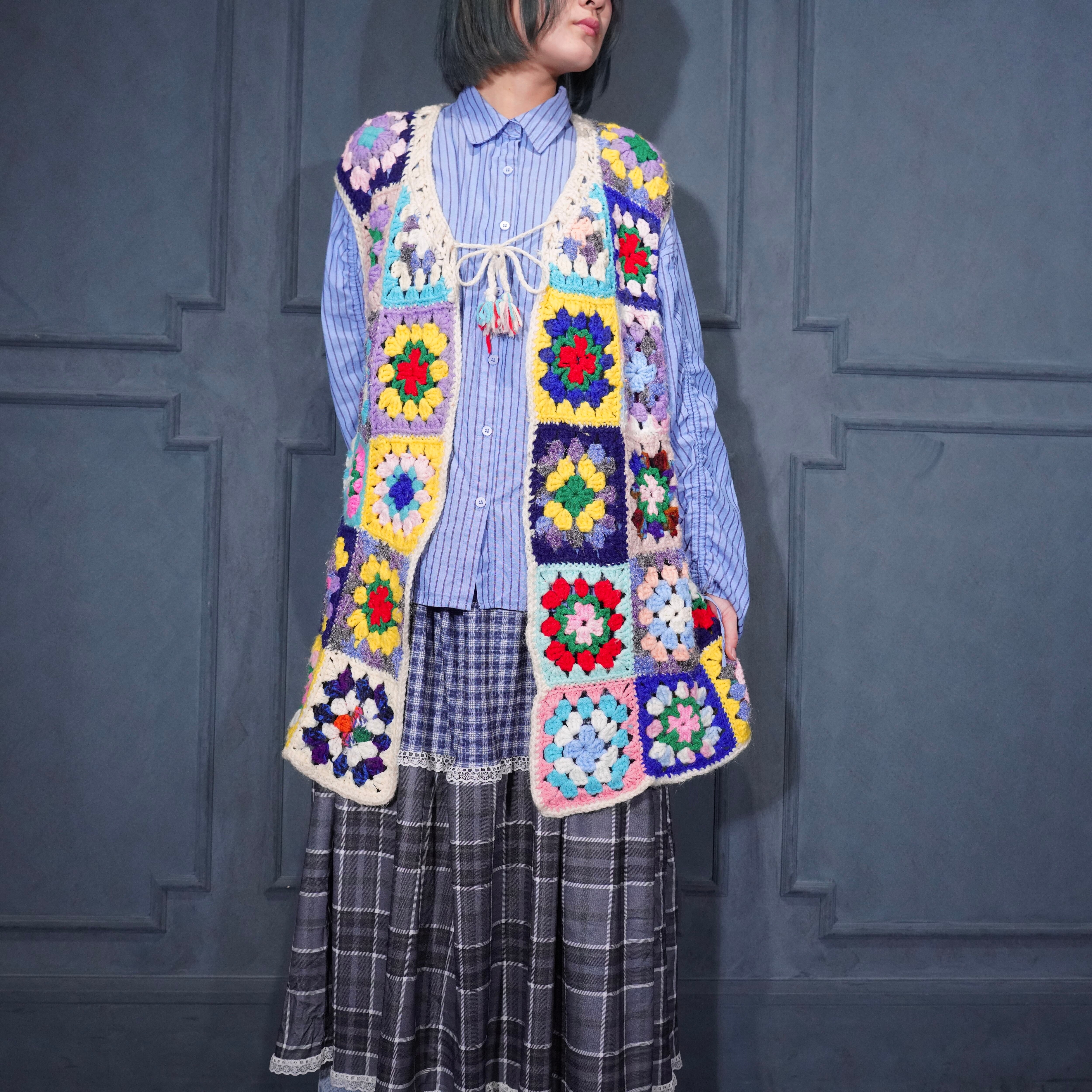 USA VINTAGE GRANNY SQUARE COLORFUL KNIT VEST/アメリカ古着グラニースクエアカラフルニットベスト