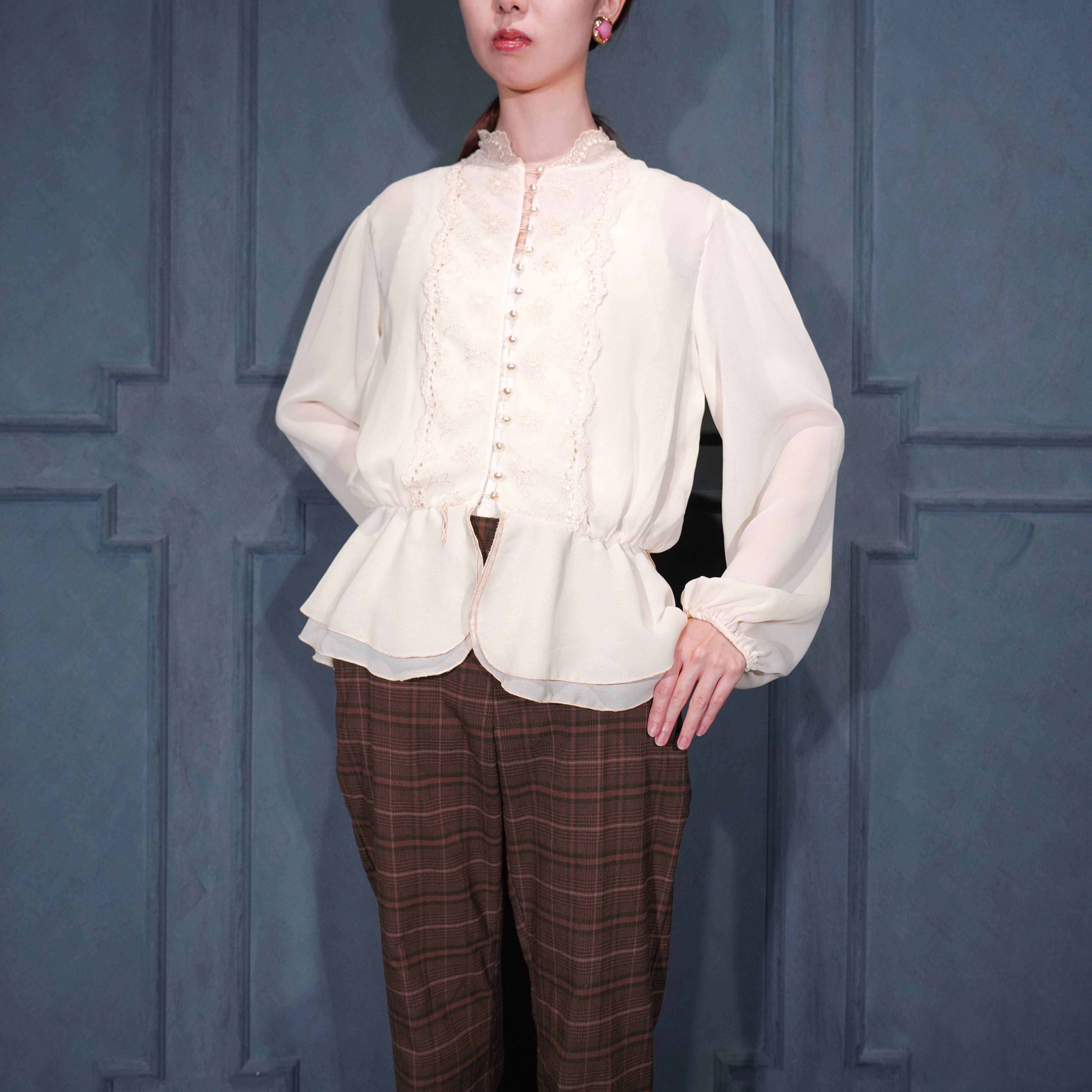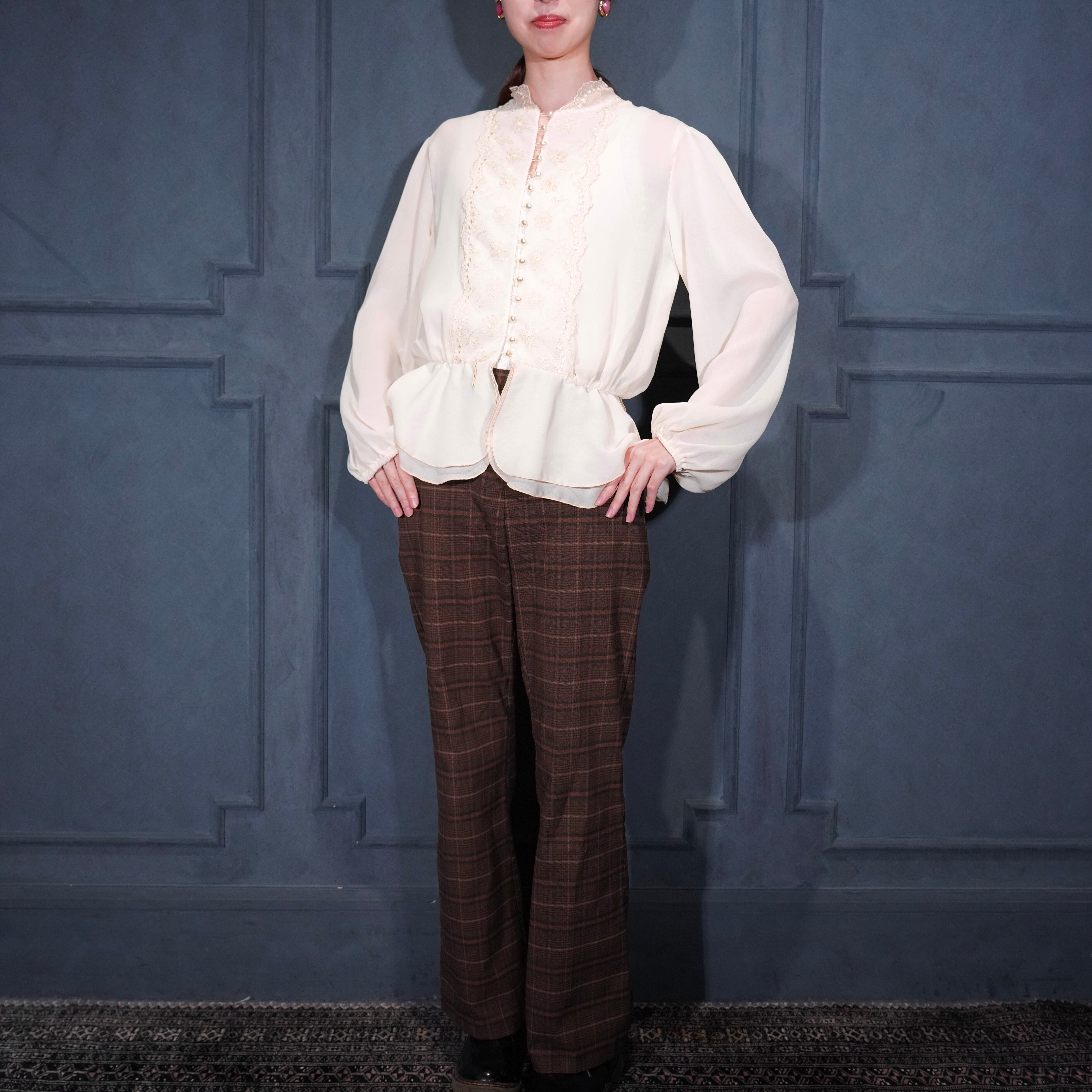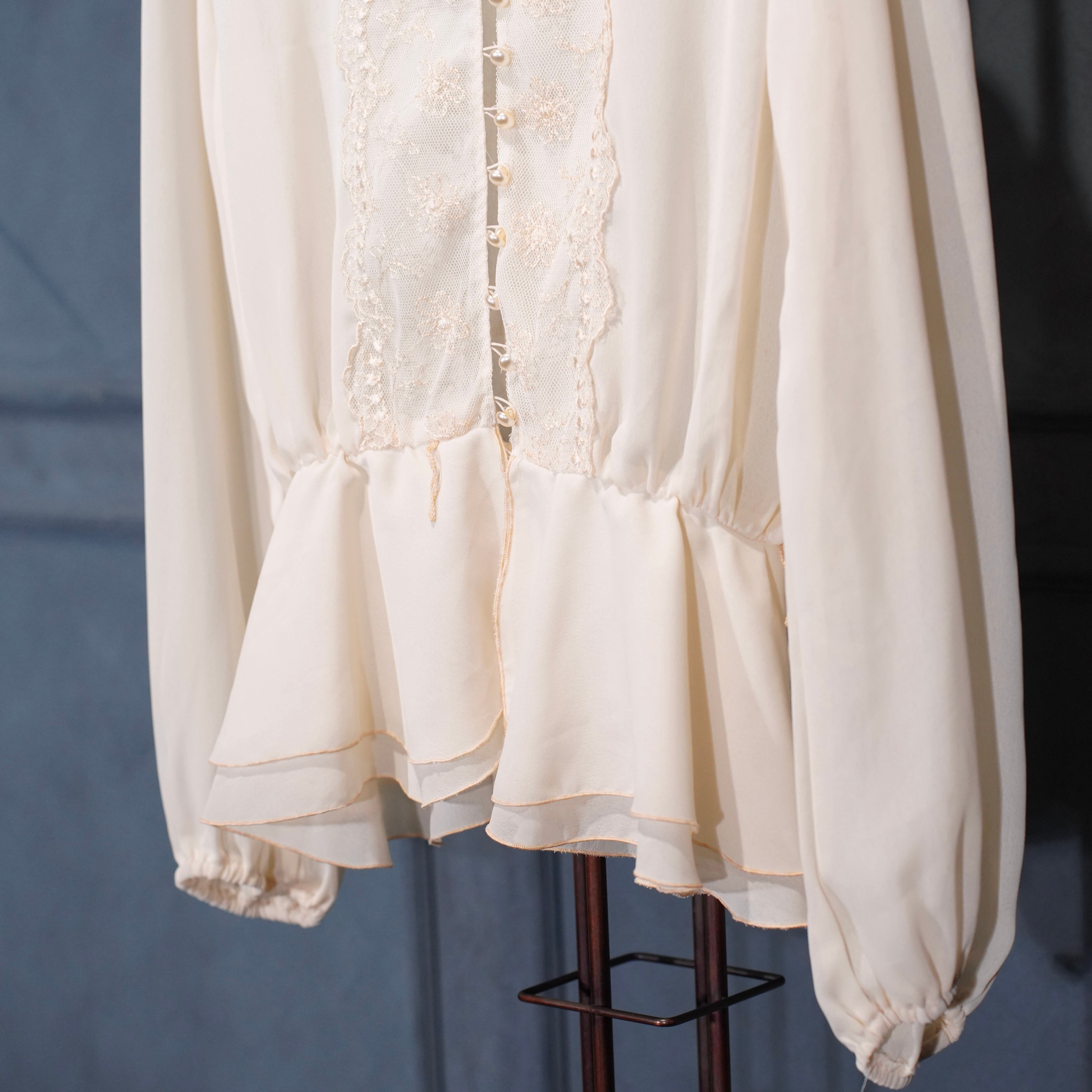 60’s〜 USA VINTAGE PEARL BUTTON LACE PEPLUM DESIGN BLOUSE/60年代アメリカ古着パールボタンレースペプラムデザインブラウス