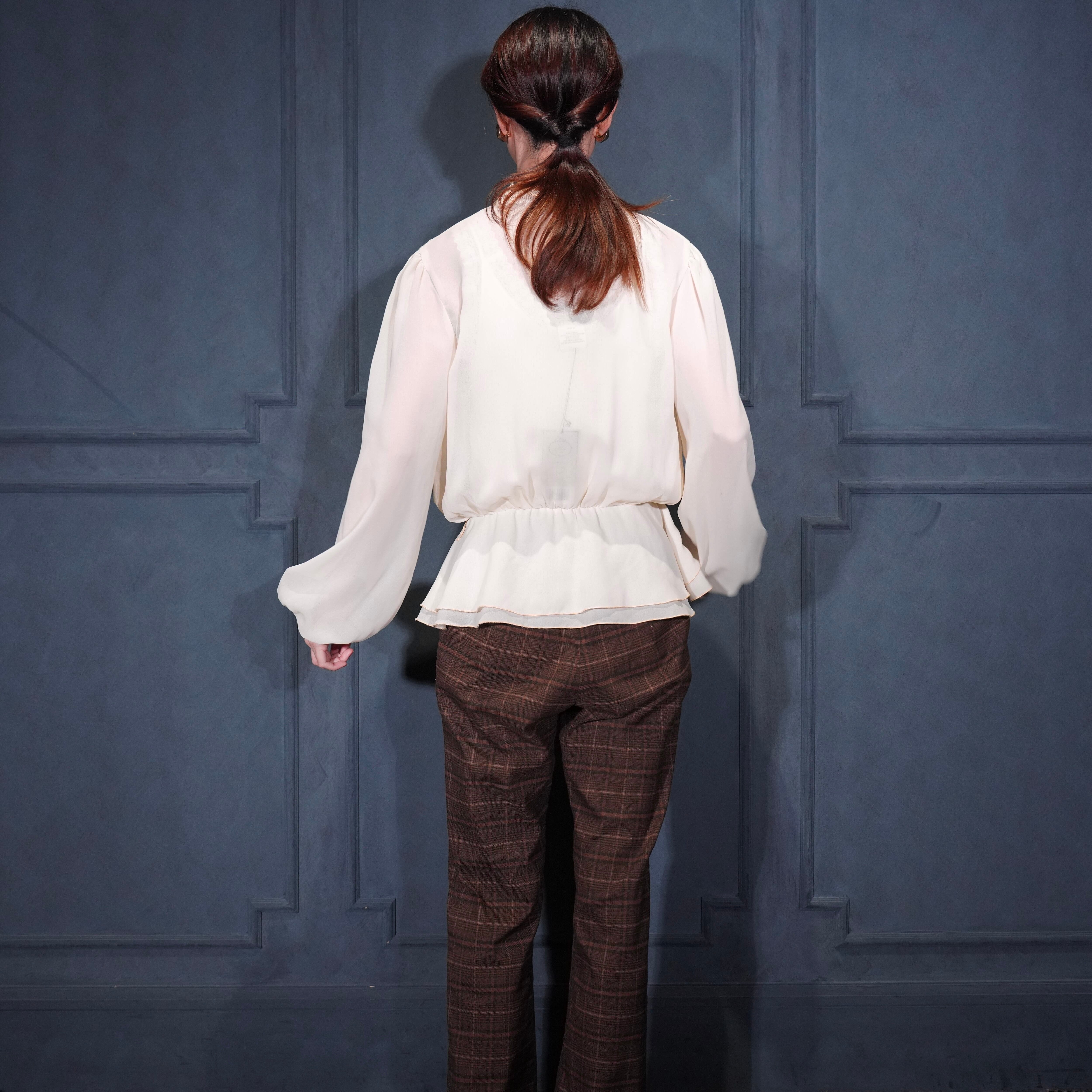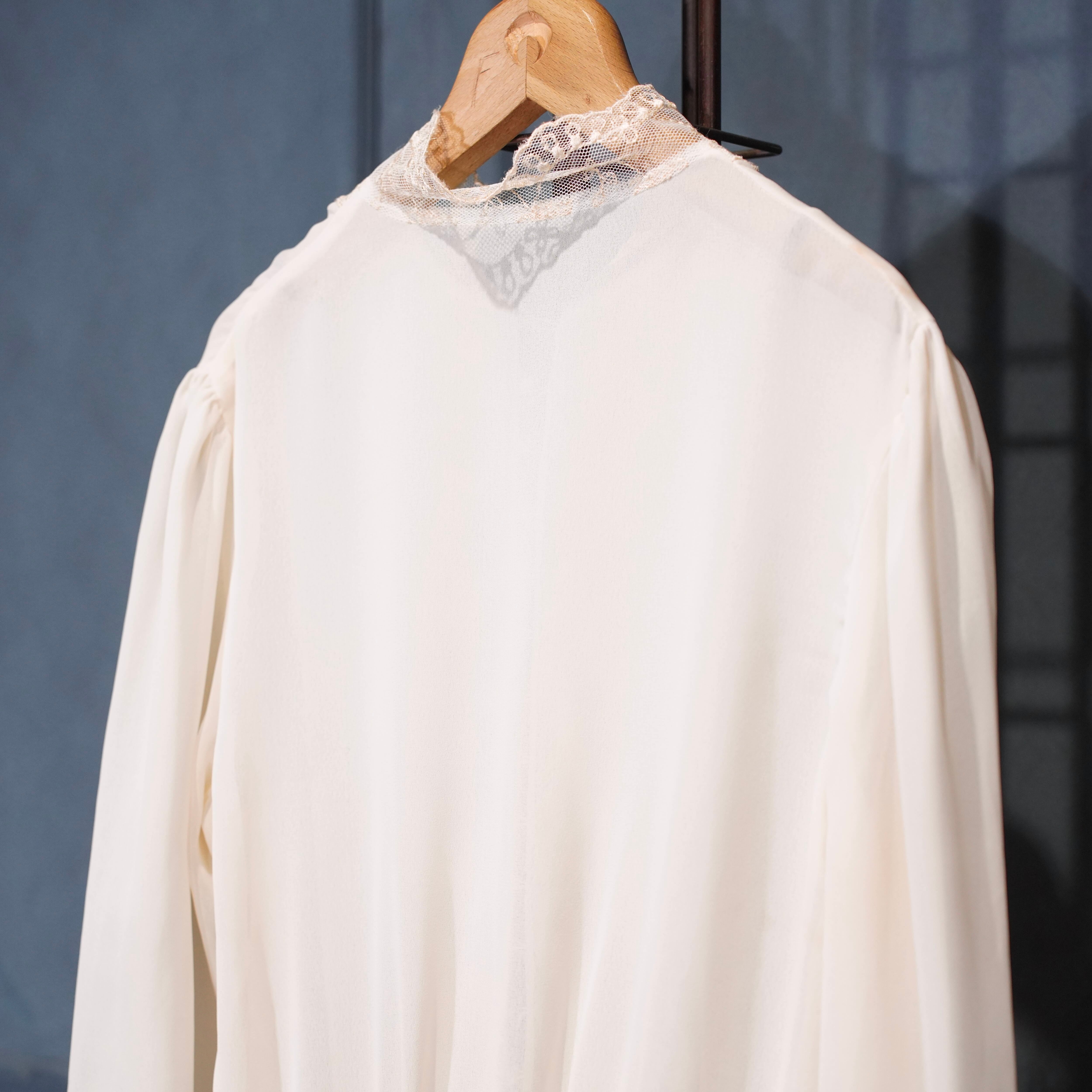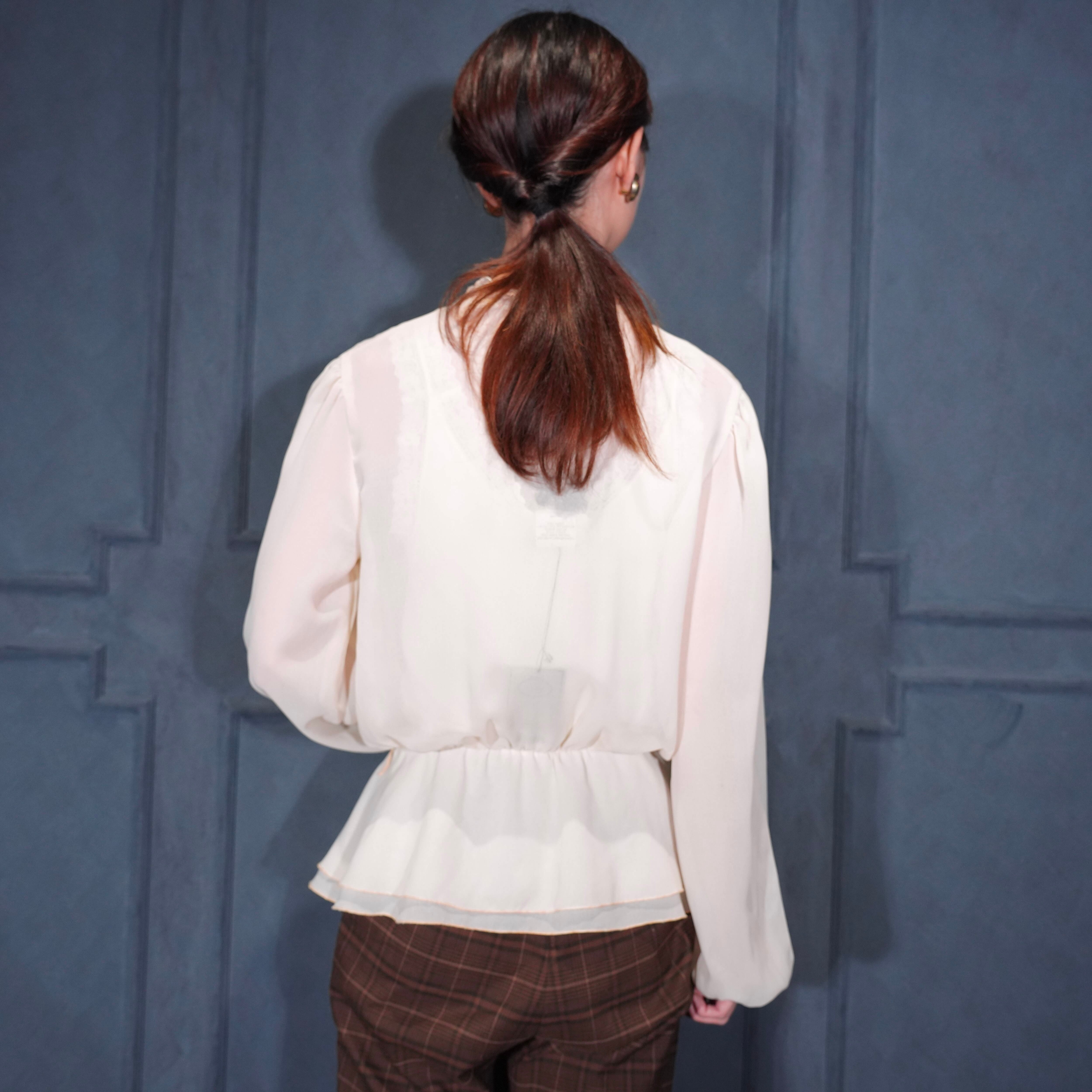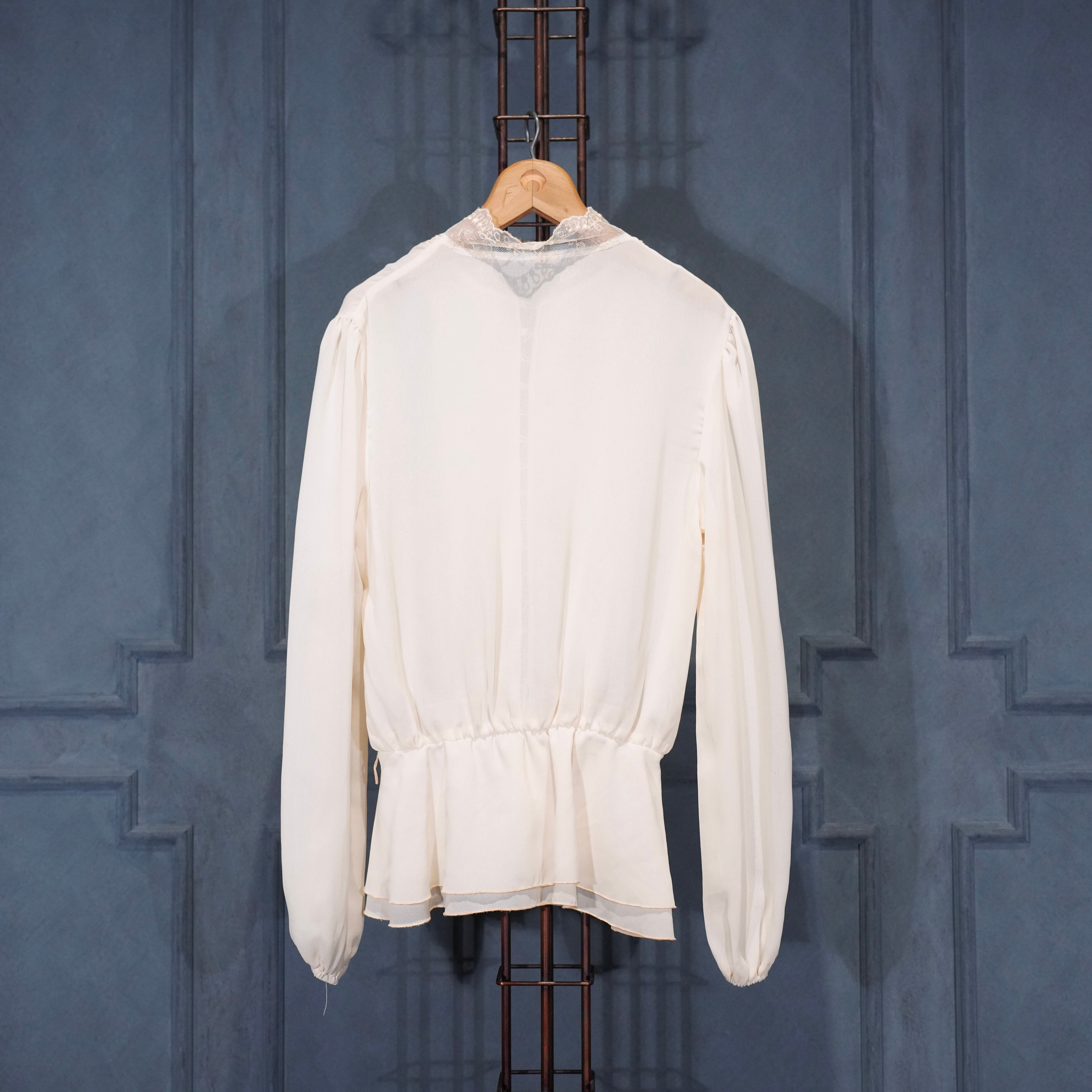 60’s〜 USA VINTAGE PEARL BUTTON LACE PEPLUM DESIGN BLOUSE/60年代アメリカ古着パールボタンレースペプラムデザインブラウス