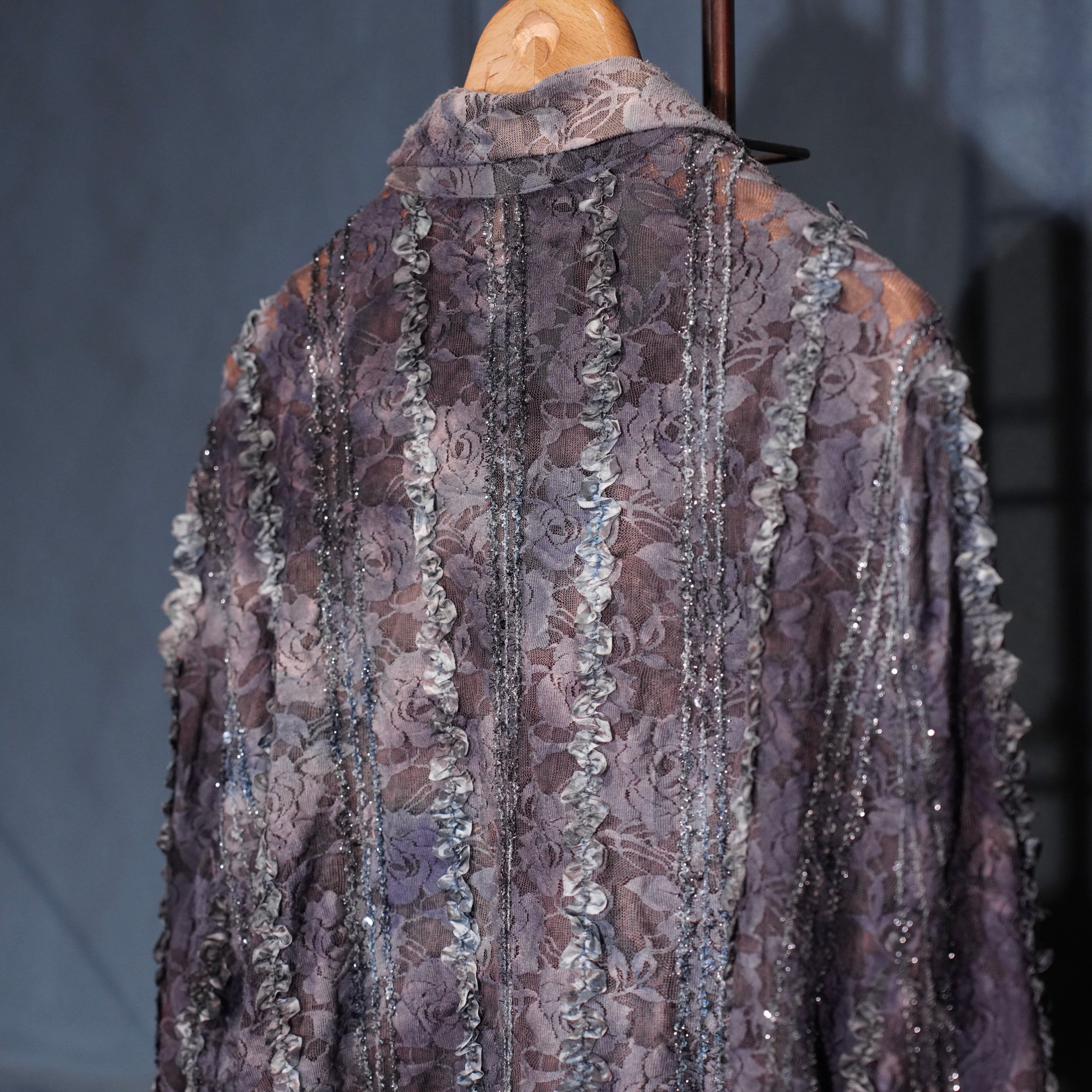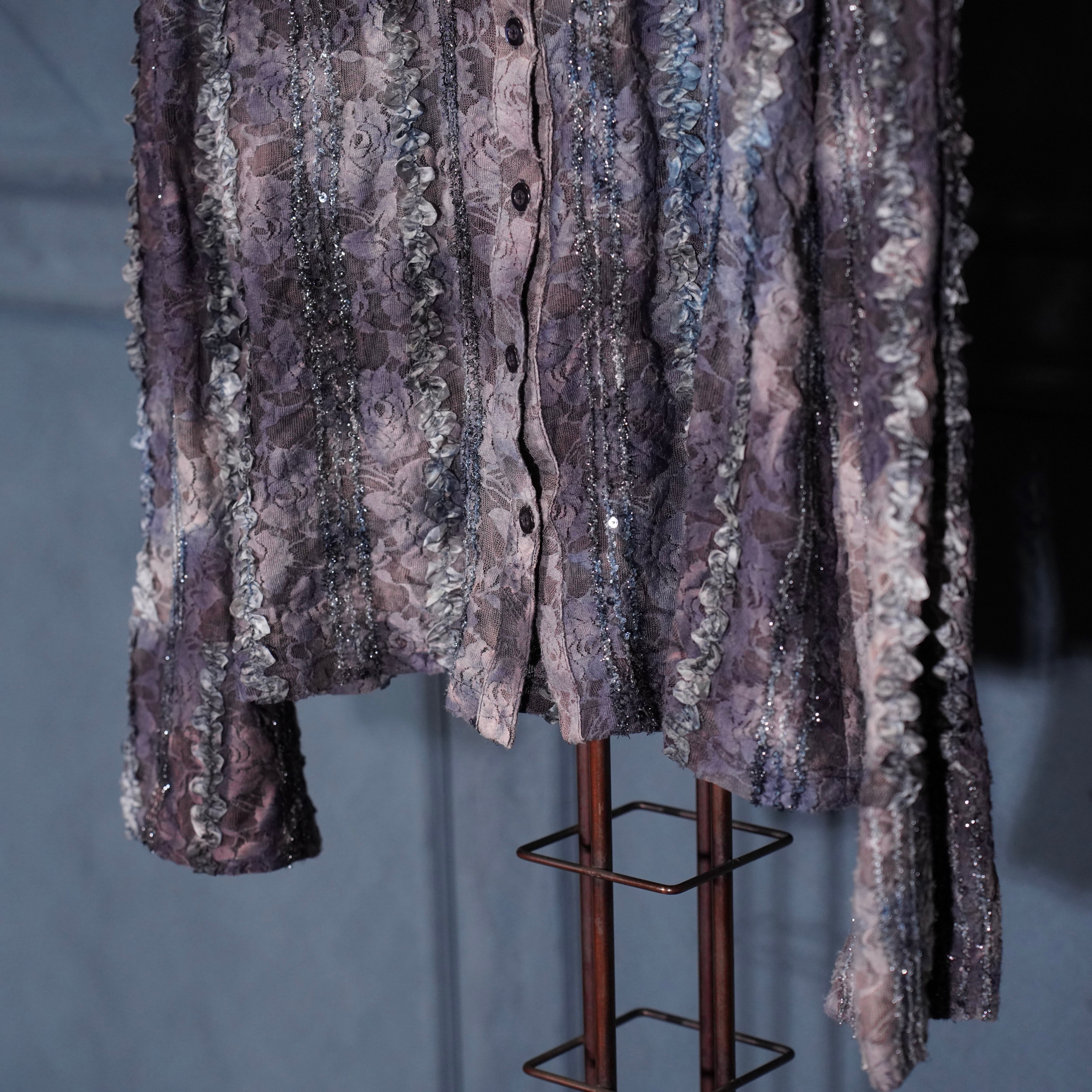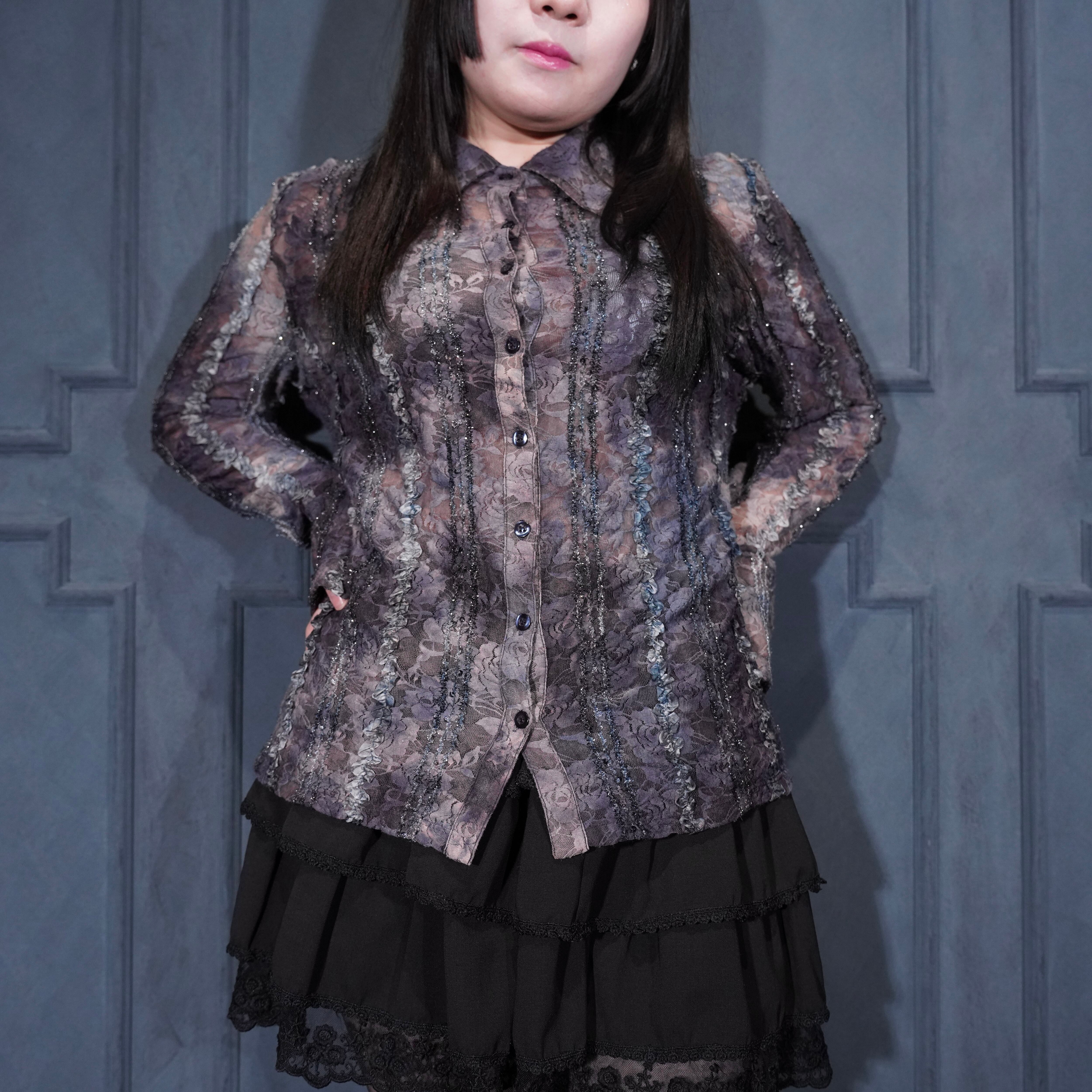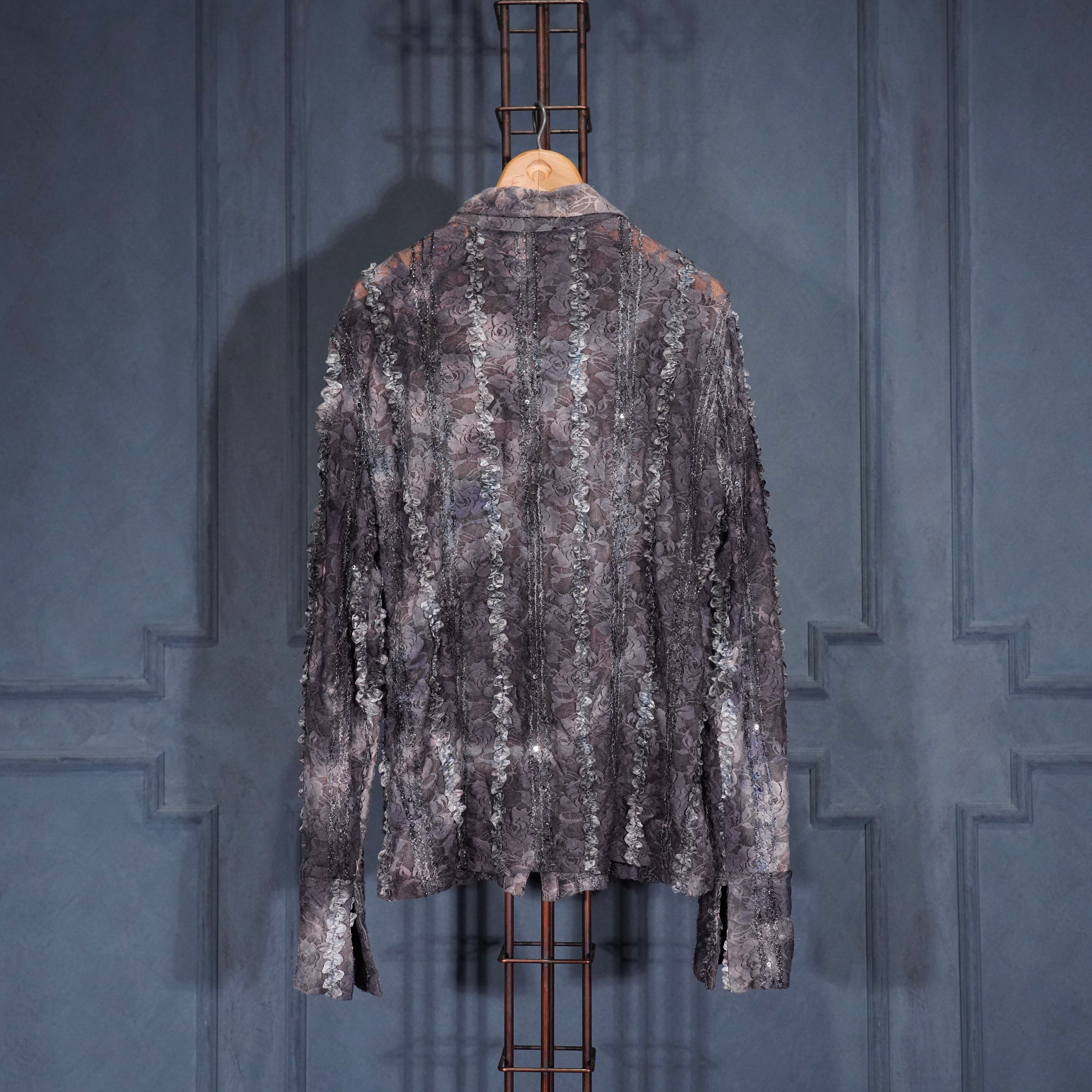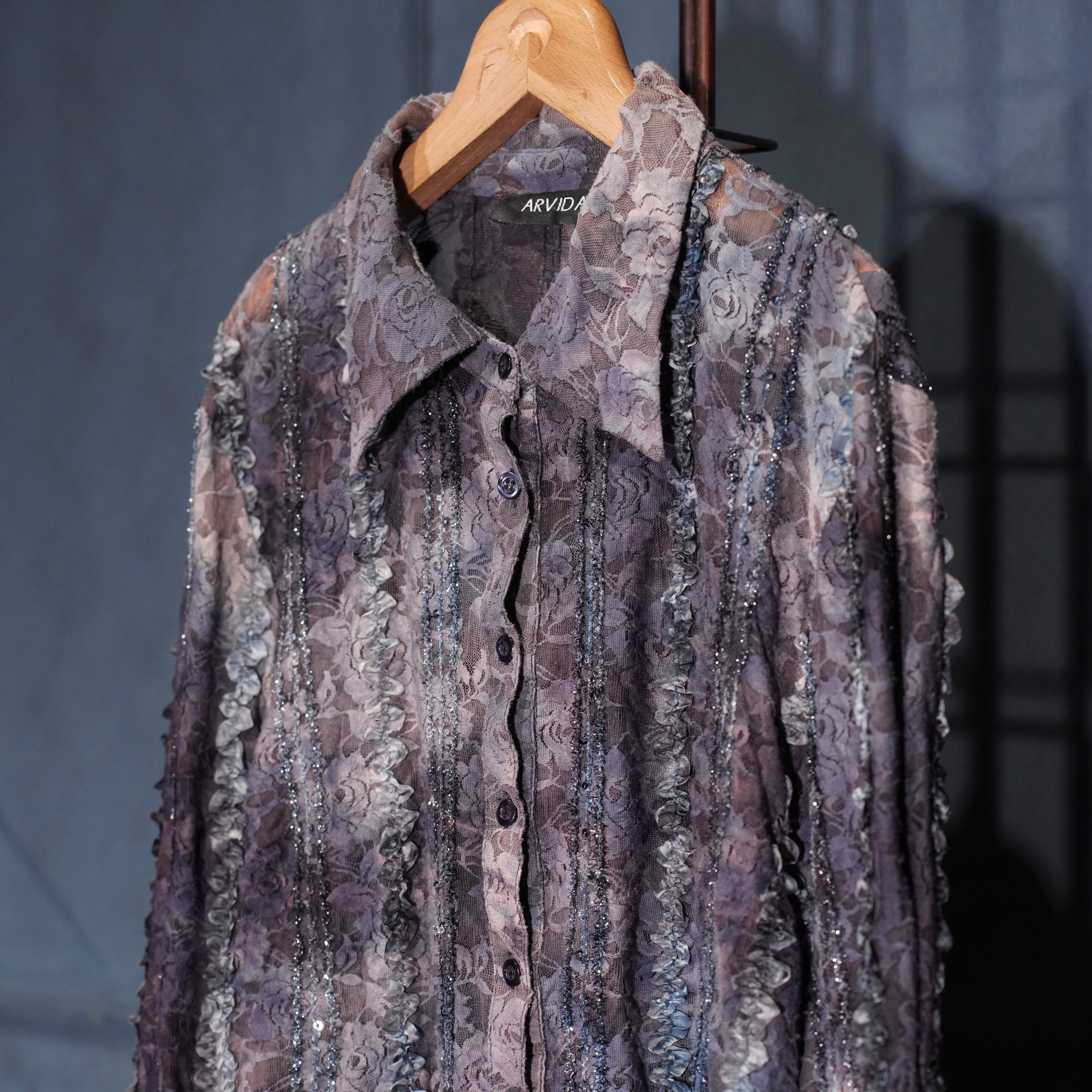 EU VINTAGE ARVIDA LACE GRADATION DESIGN SHIRT MADE IN BULGARIA/ヨーロッパ古着レースグラデーションデザインシャツ