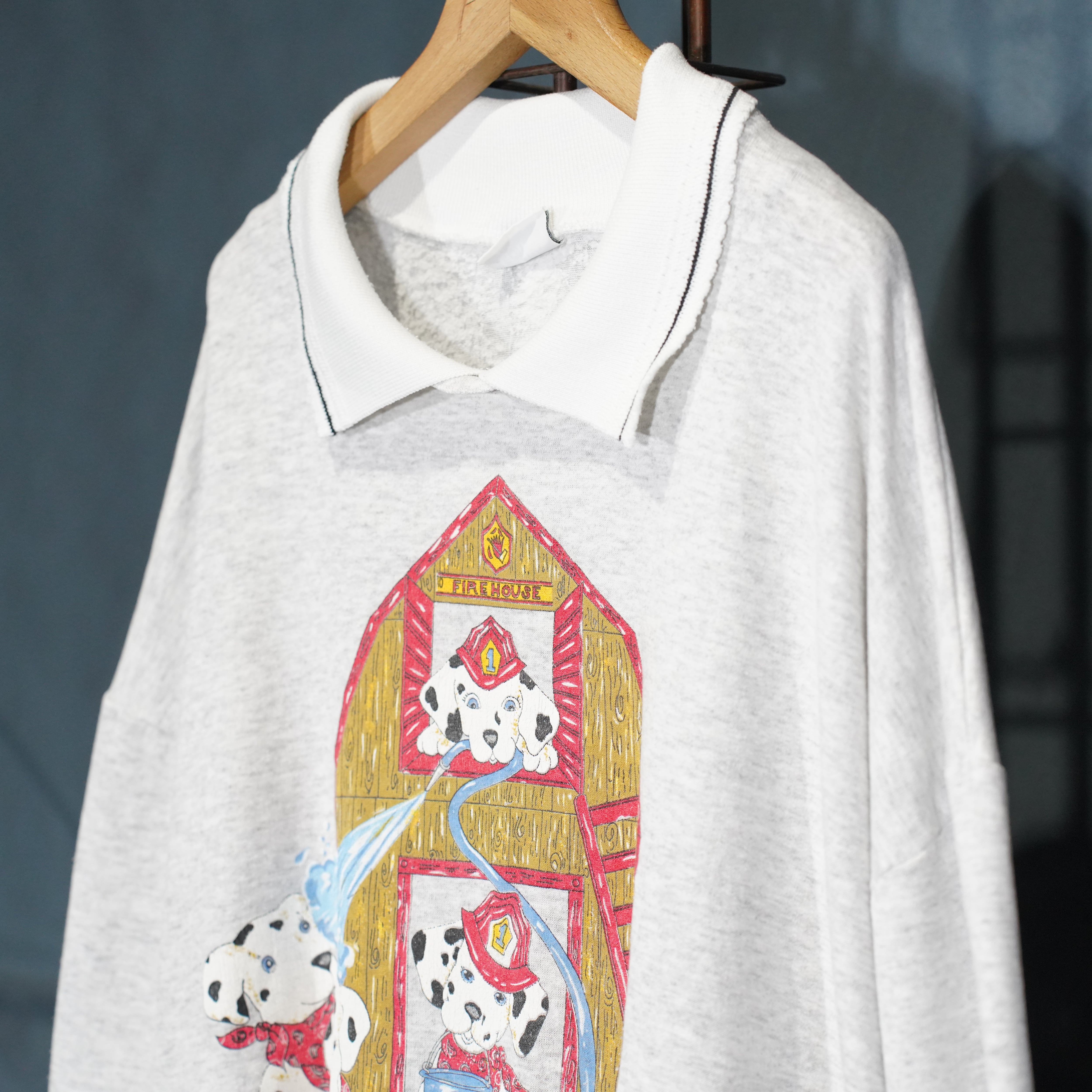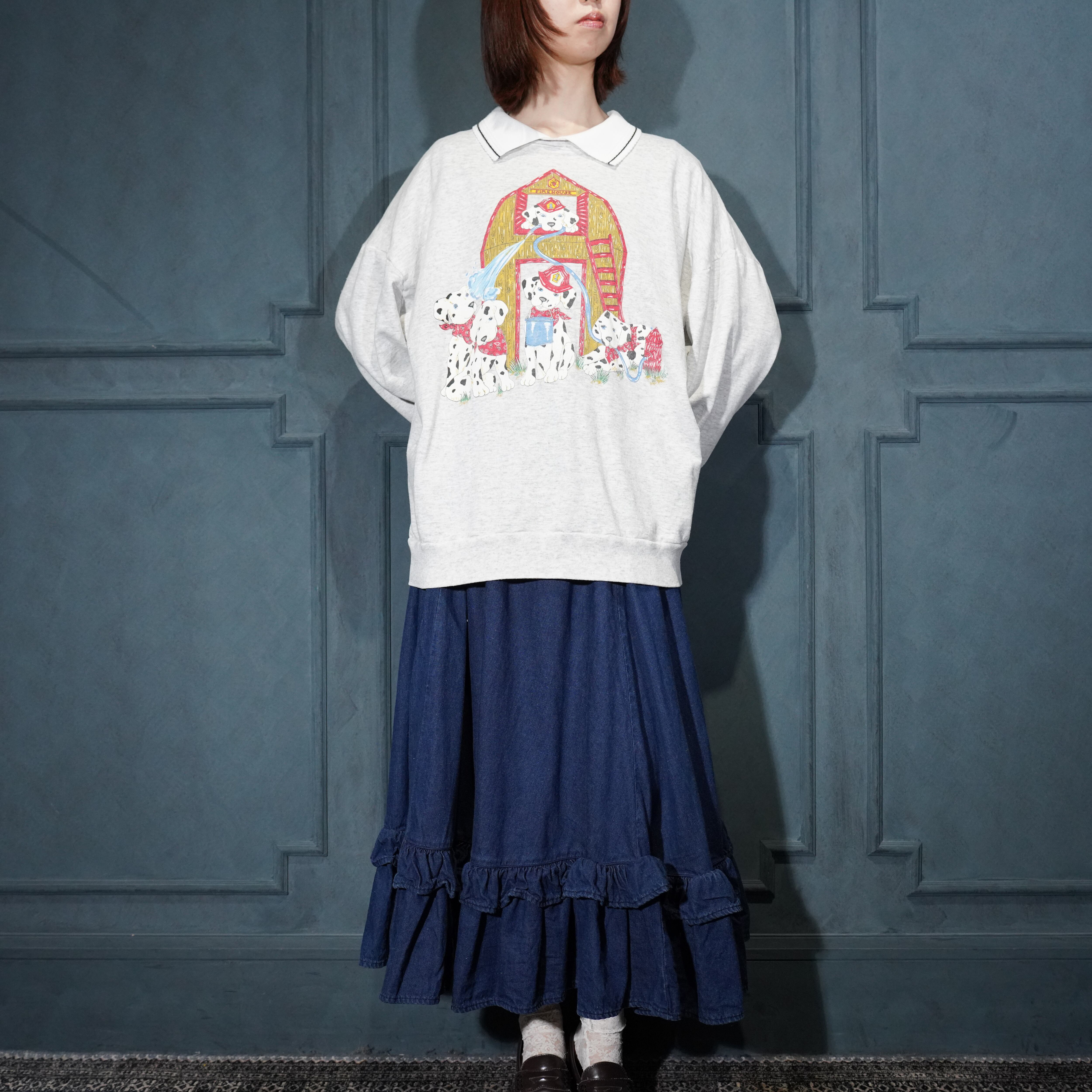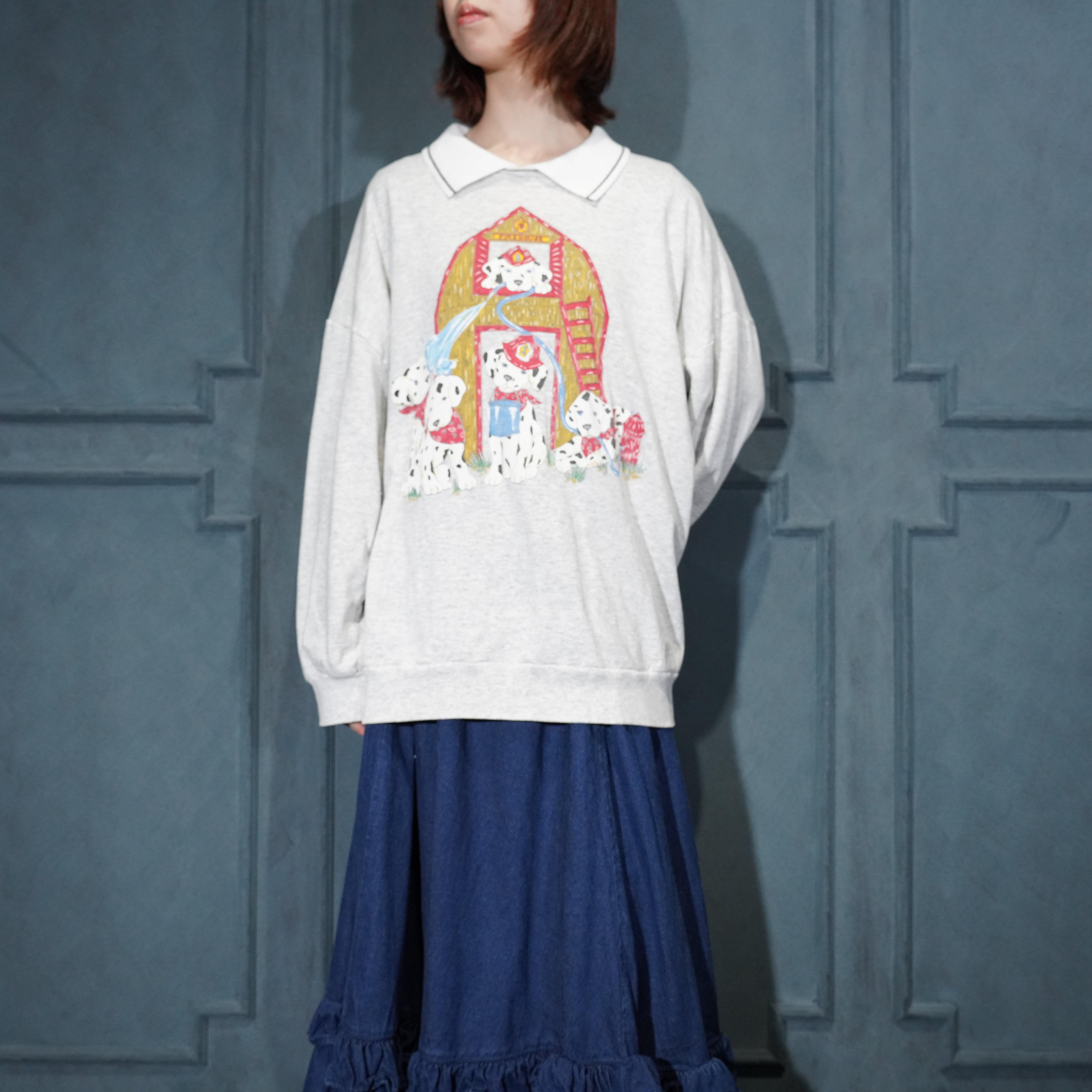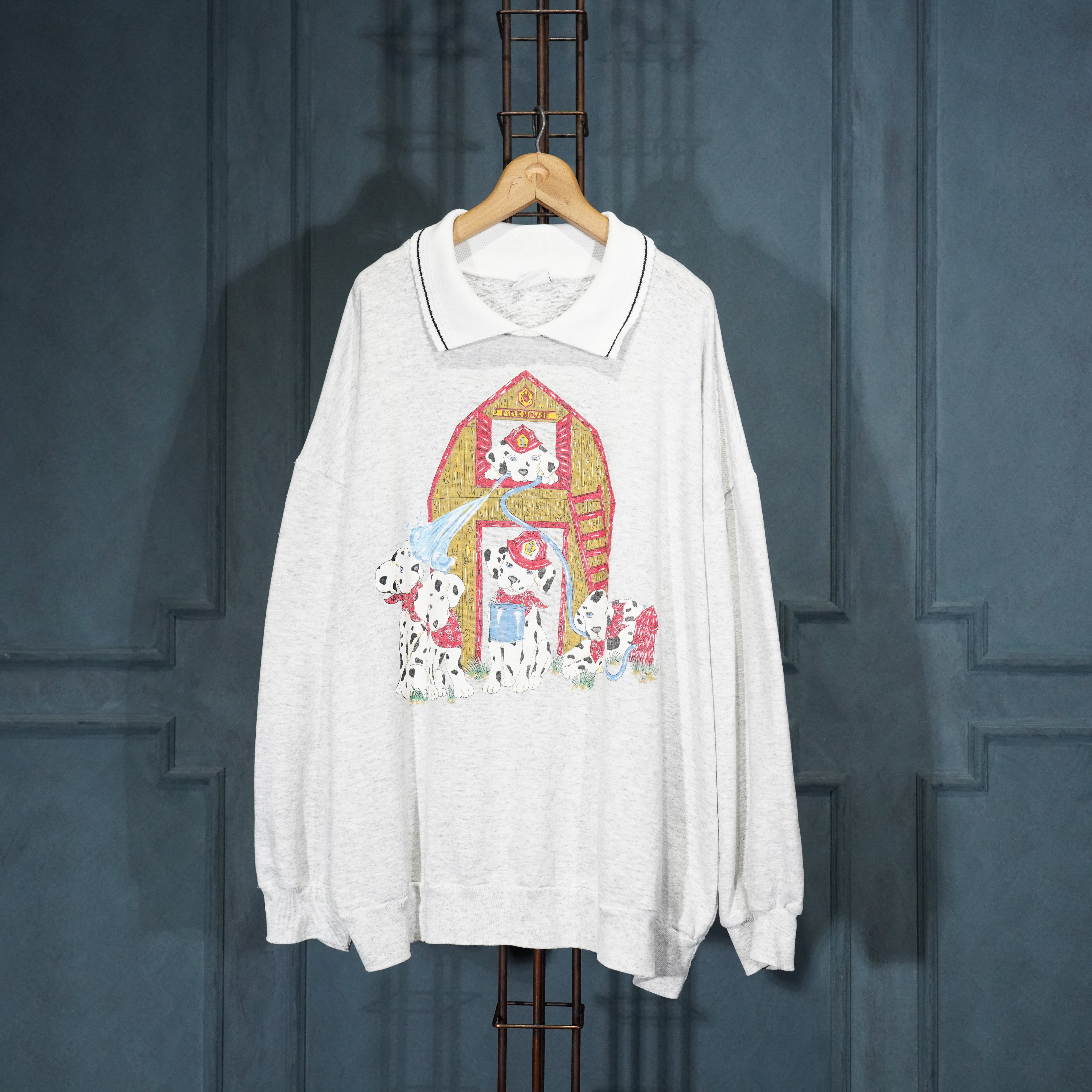 USA VINTAGE BASIC EDITIONS DOGS PRINT COLLAR DESIGN SWEAT SHIRT/アメリカ古着わんこプリント襟デザインスウェット
