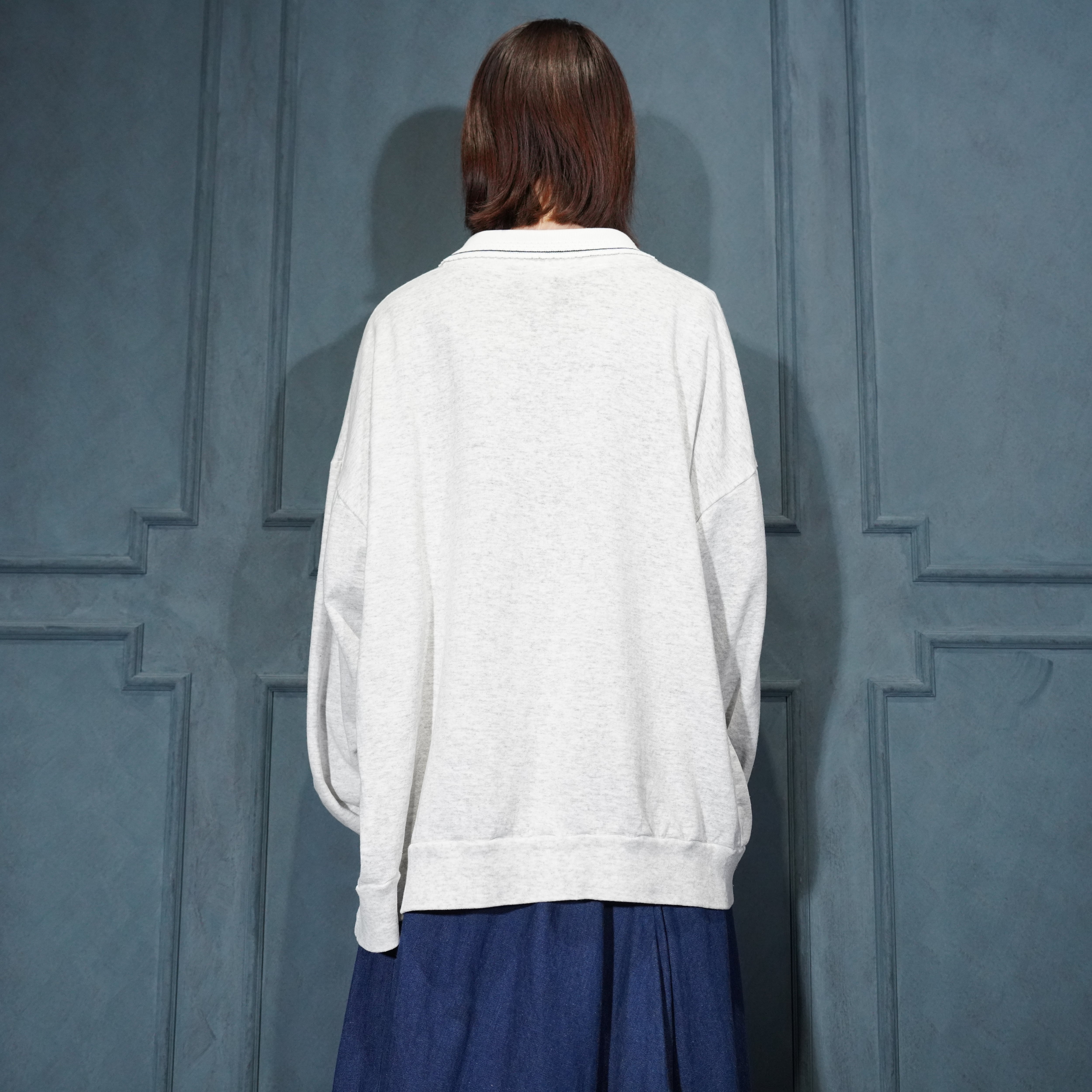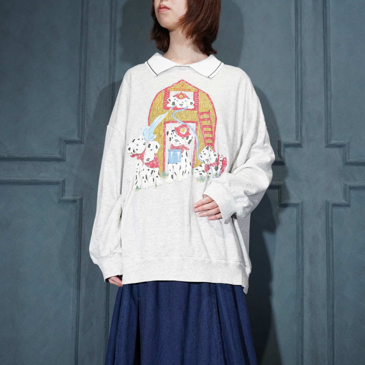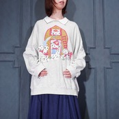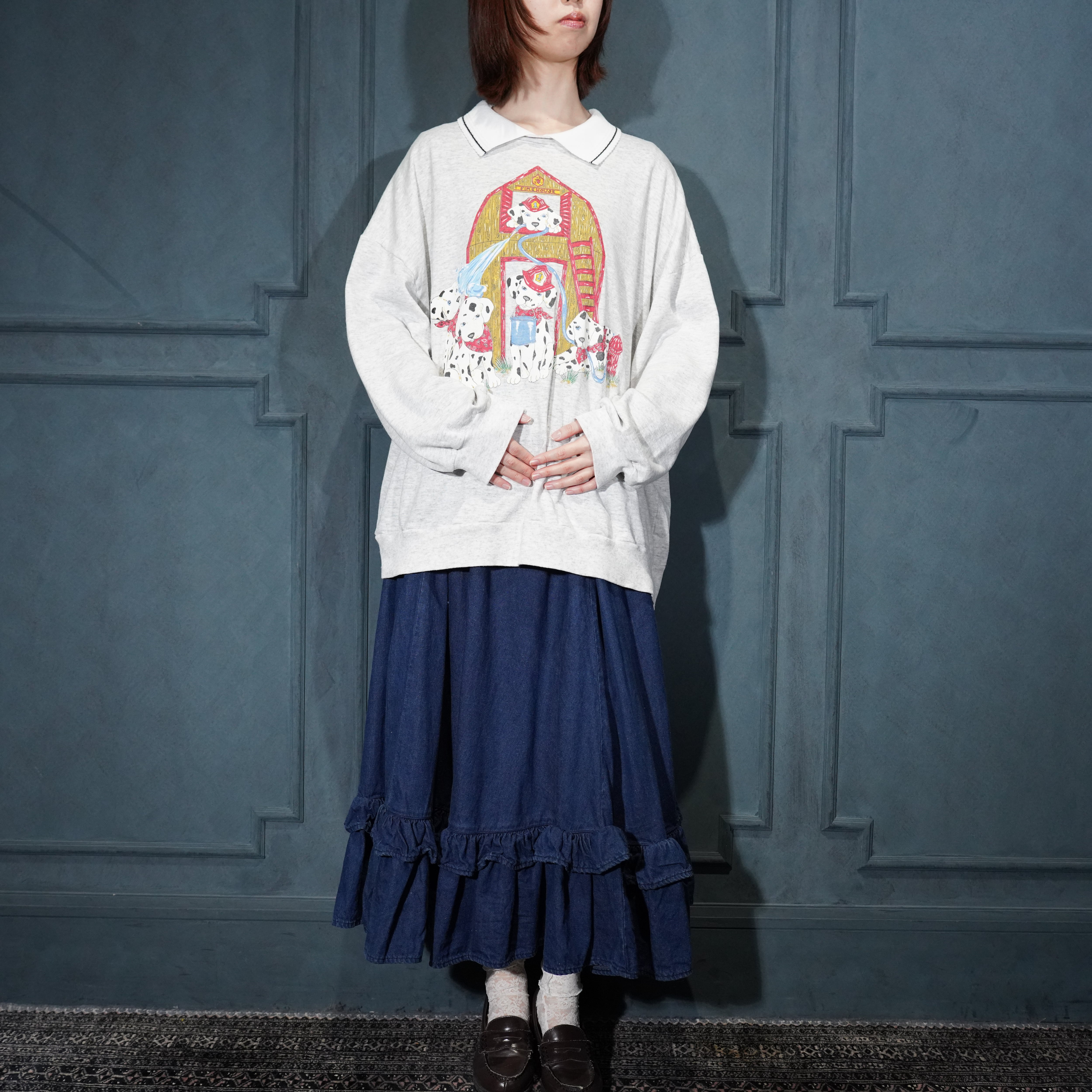 USA VINTAGE BASIC EDITIONS DOGS PRINT COLLAR DESIGN SWEAT SHIRT/アメリカ古着わんこプリント襟デザインスウェット