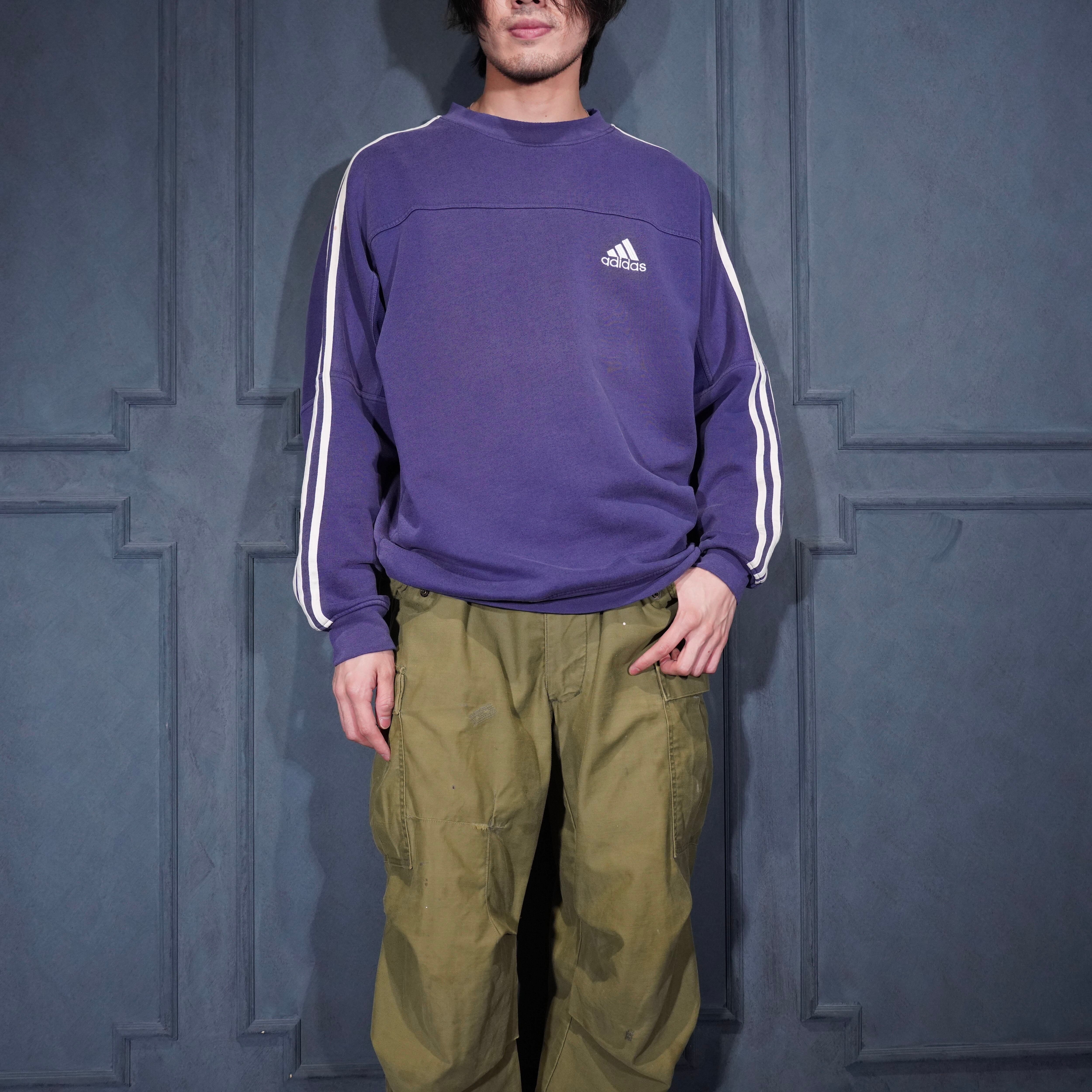 90's USA VINTAGE adidas LOGO EMBROIDERY FADED LINE DESIGN SWEAT SHIRT/90年代アメリカ古着アディダスロゴ刺繍フェードラインデザインスウェット