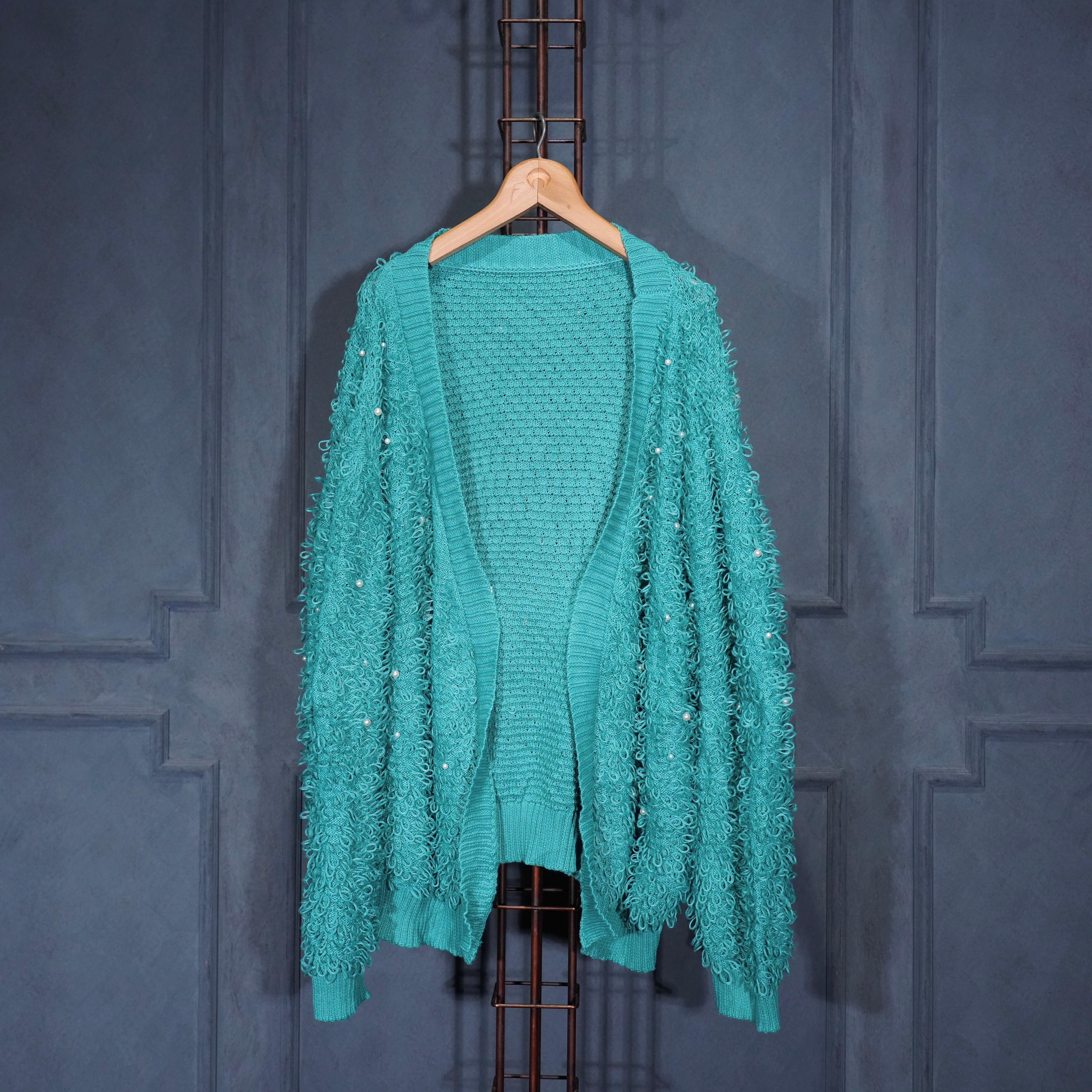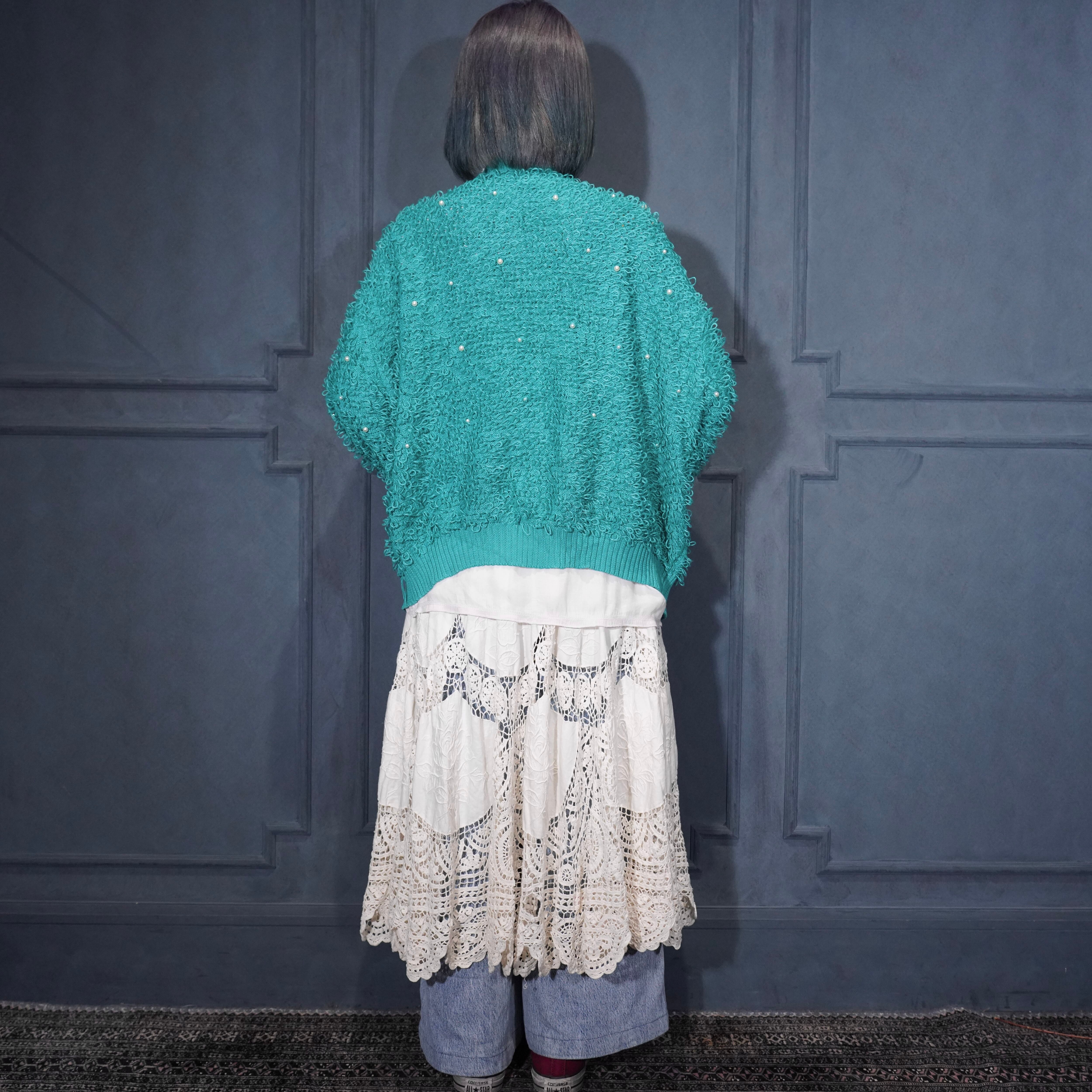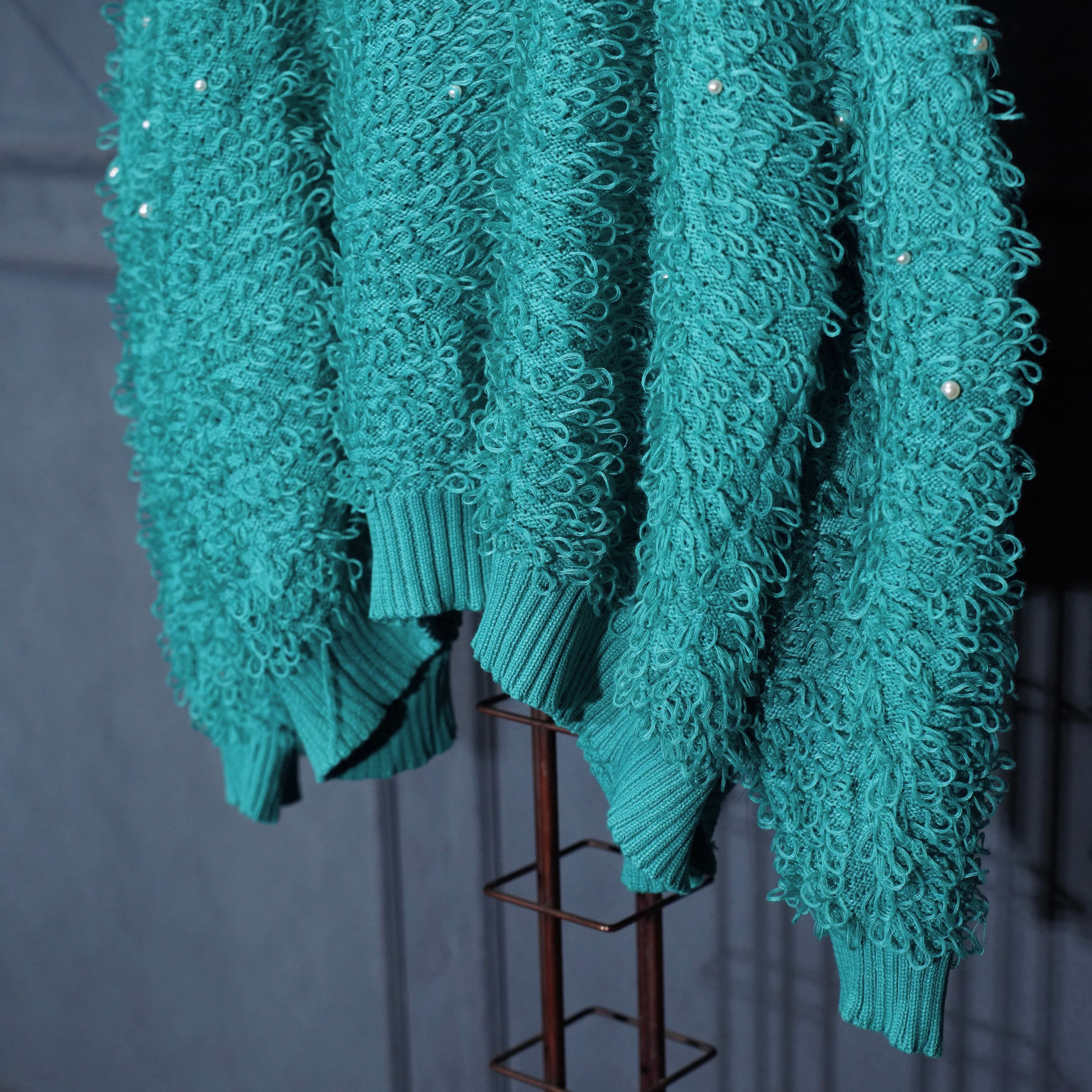 USA VINTAGE PEARL DESIGN SHAGGY KNIT CARDIGAN/アメリカ古着パールデザインシャギーニットカーディガン